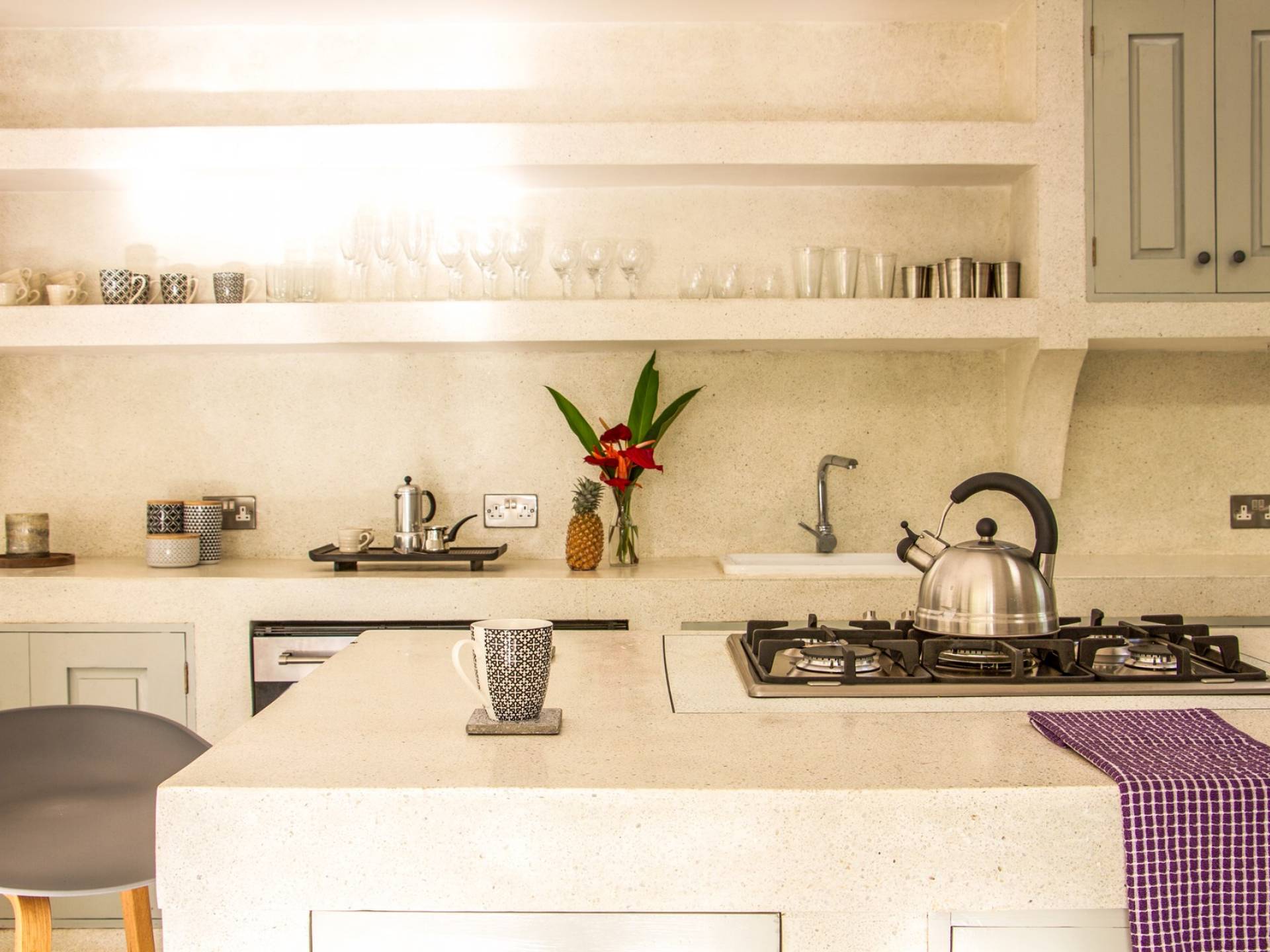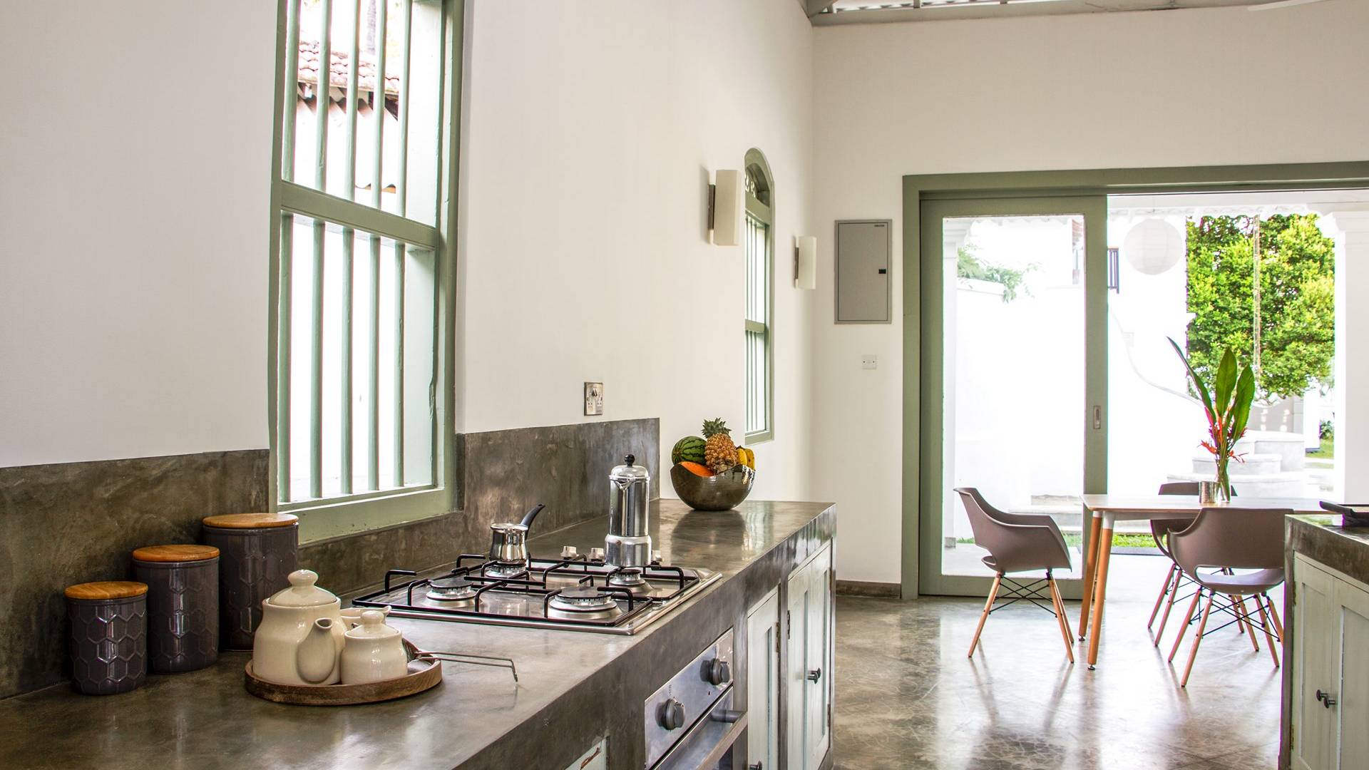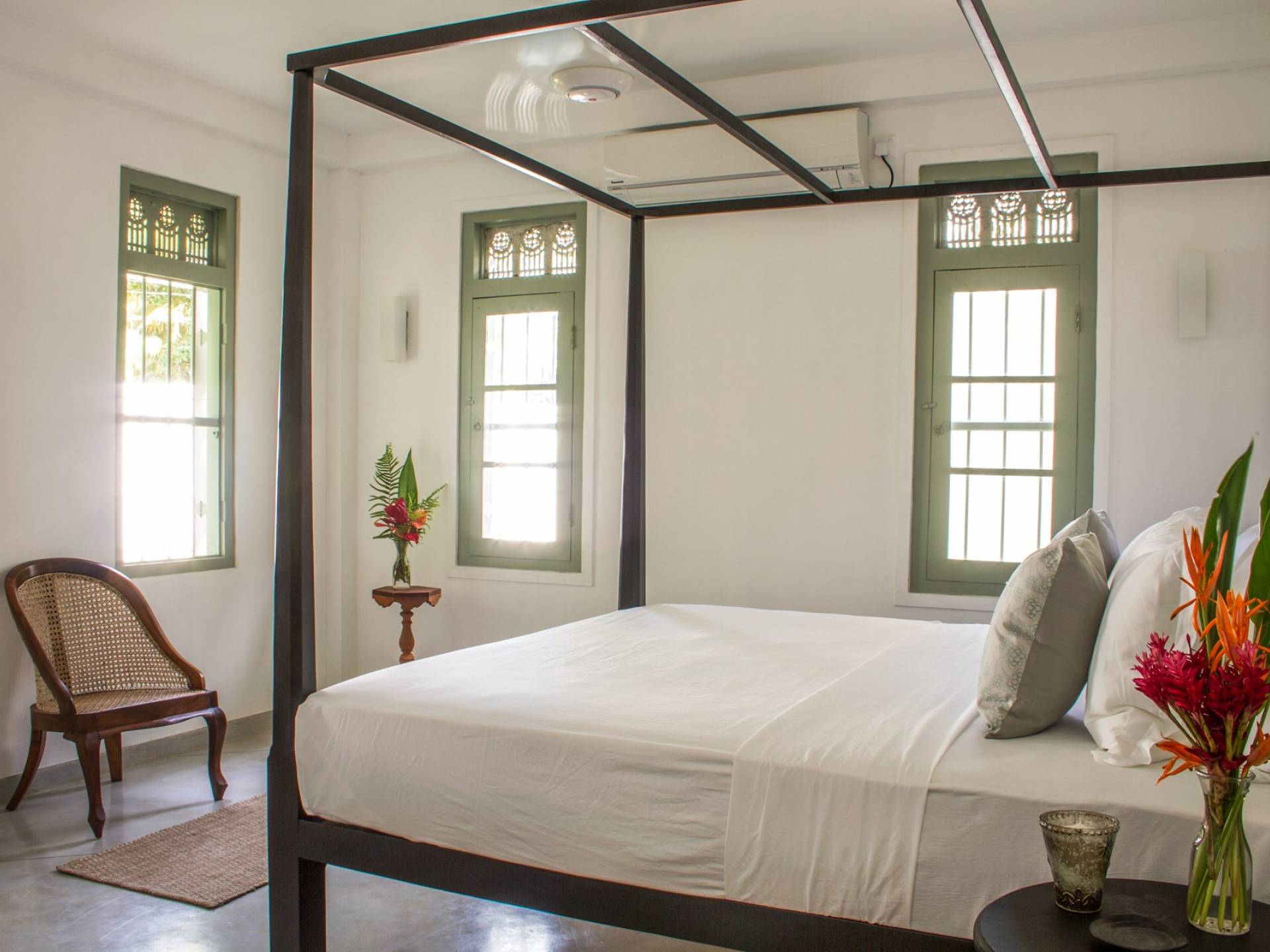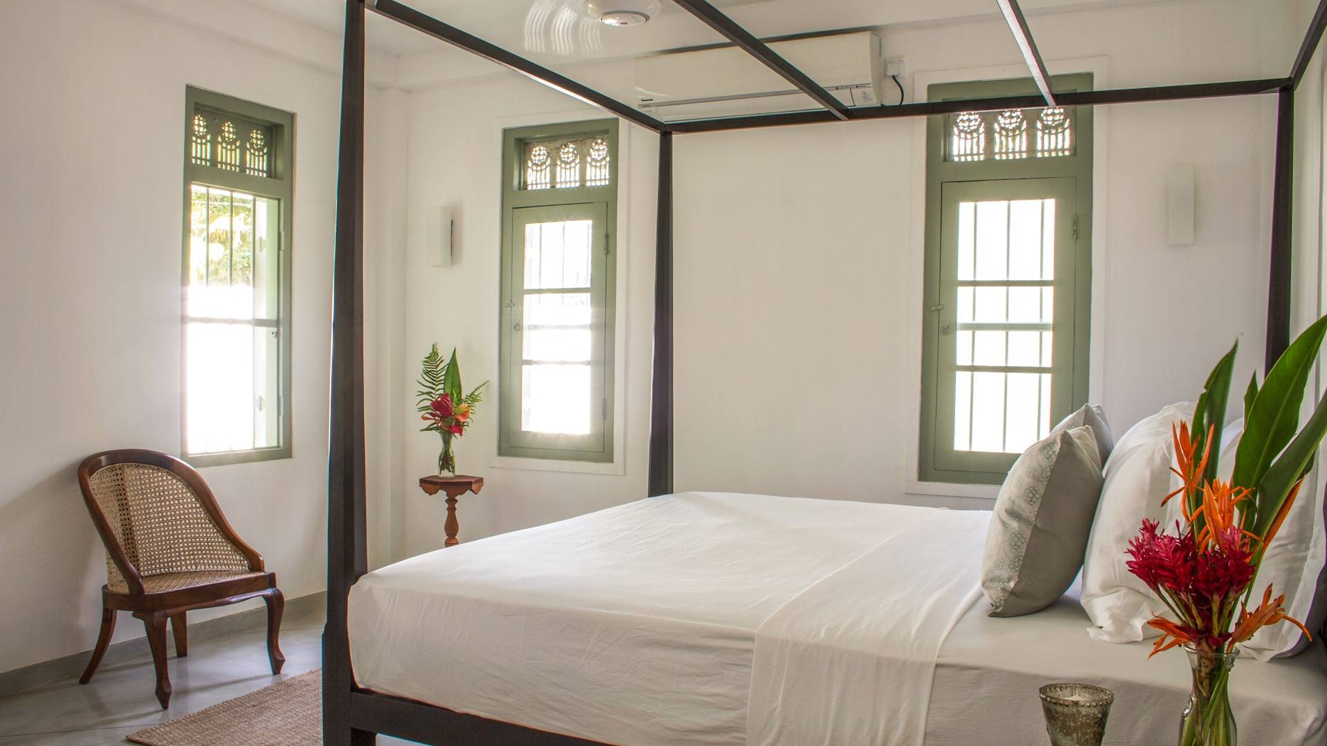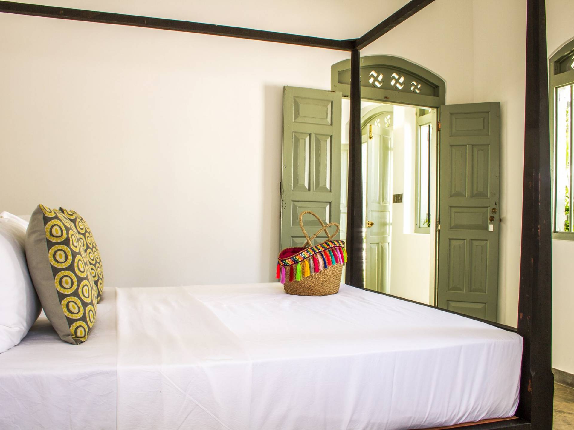 Главный дом является точным продолжением стиля, и его недавний ремонт проявляется в его современных удобствах и простых, но стильных интерьерах. Высокие потолки и перила из красного дерева создают ощущение элегантного колониализма. Войдя в главную гостиную, вы увидите два дивана и высокие французские окна, которые ведут на дорожку, ведущую к уединенной платформе для йоги или месту для медитации. Гостиная (с диваном и телевизором с плоским экраном) и жилая зона соединены с кухней открытой планировки и хорошо оборудованной. Отдельная прачечная и офис скрыты за высокими красивыми складскими дверями. Главная терраса проходит по всей длине виллы и обращена к ограниченному саду, обсаженному франжипани. Отличное место для трапезы и общего отдыха - это основное место приема пищи для всех гостей.