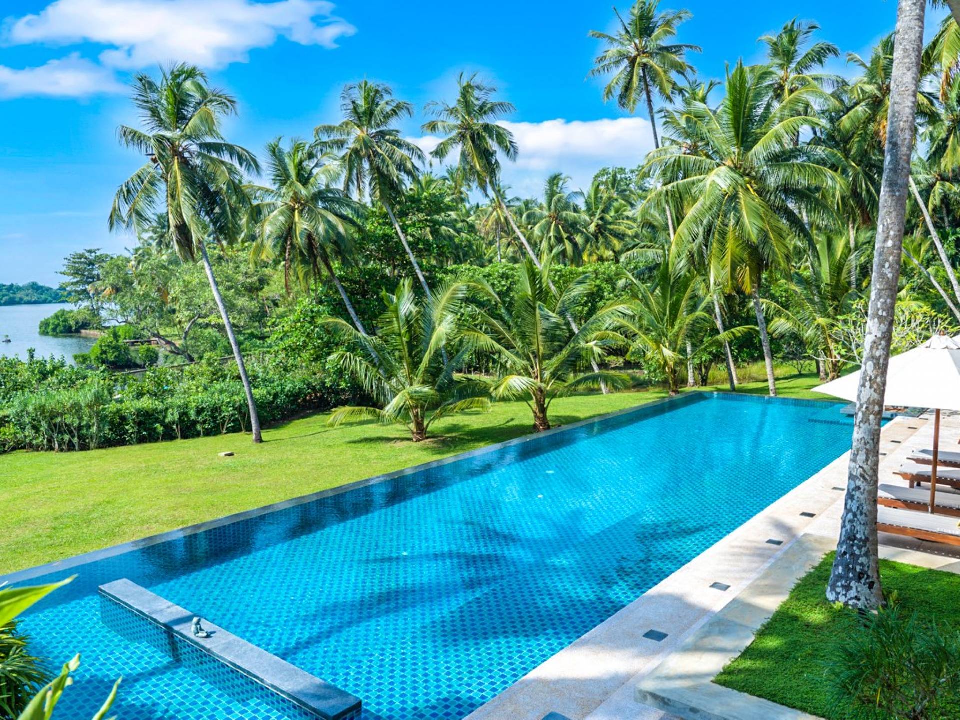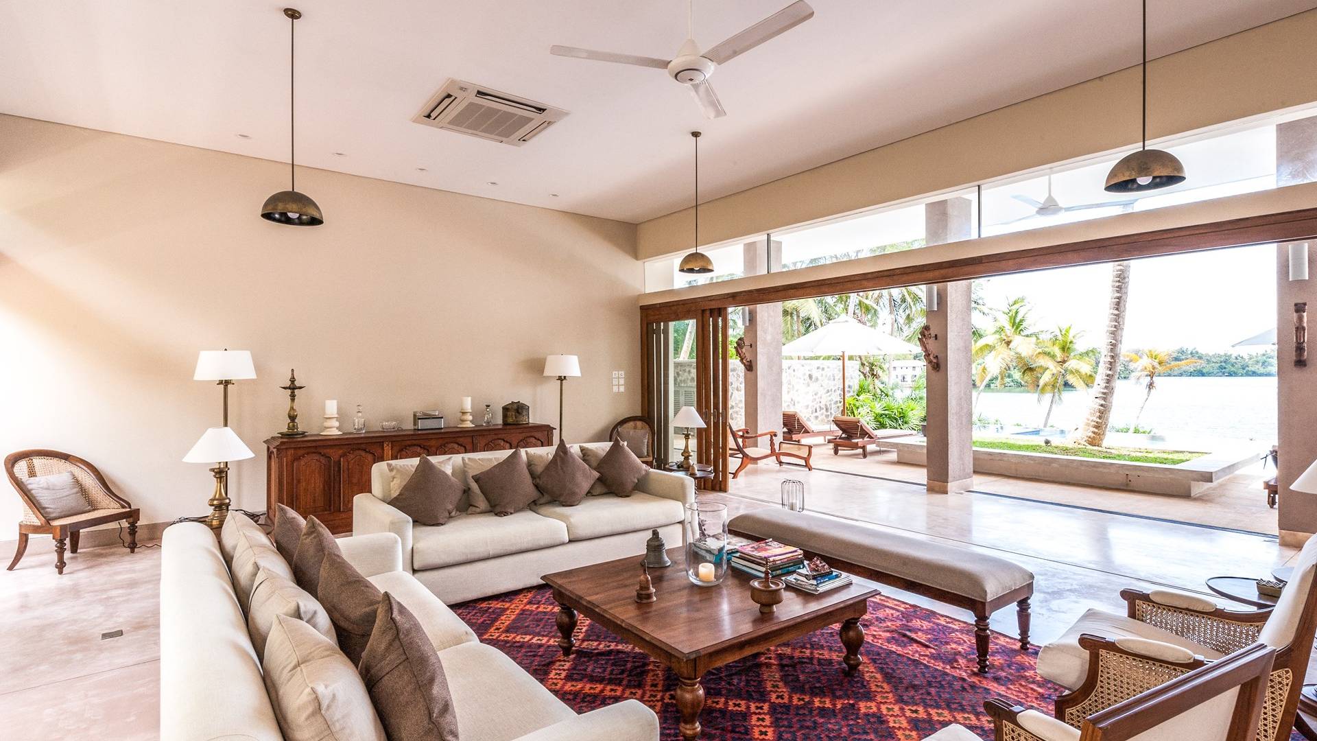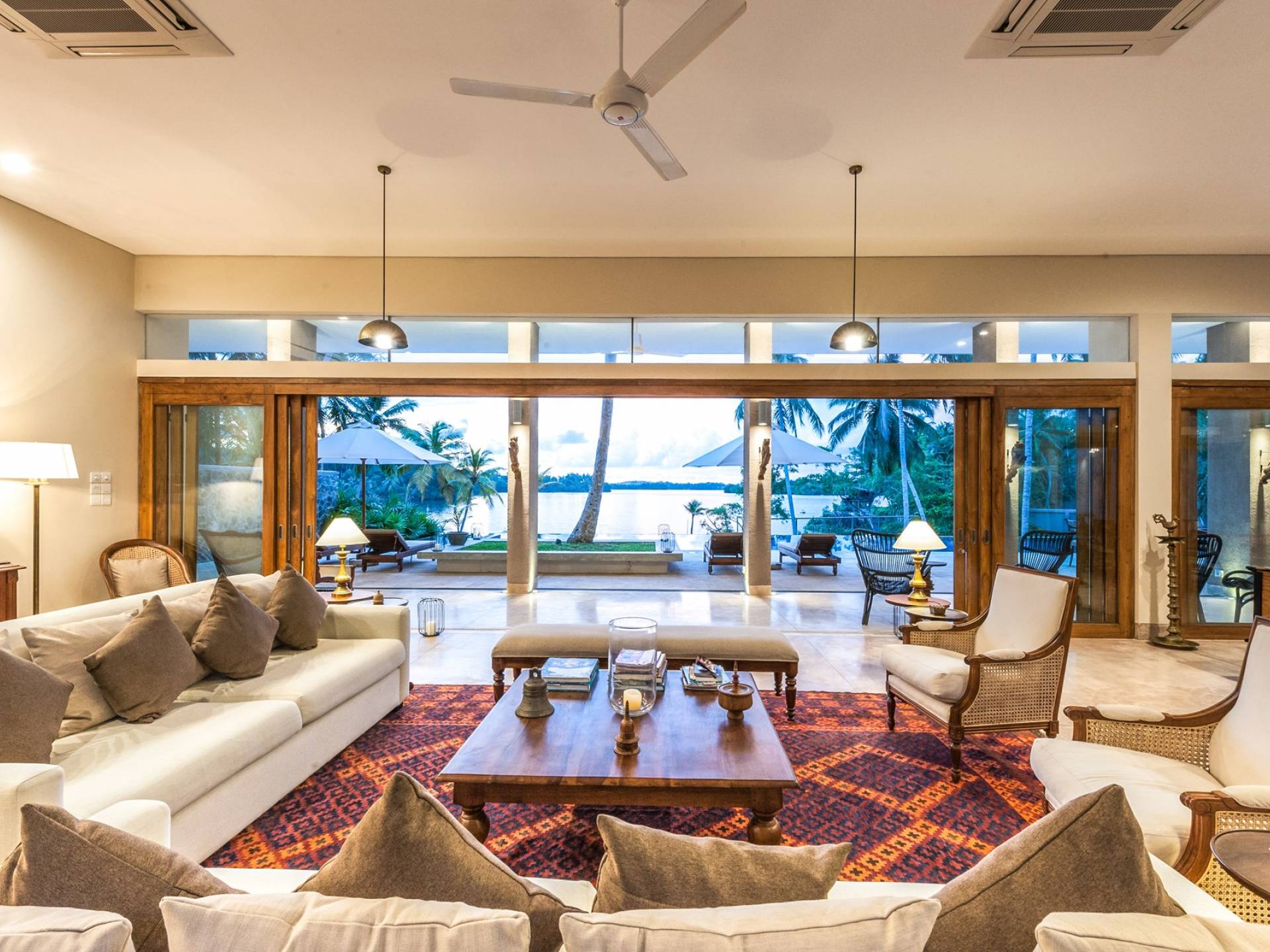 Поднявшись по дорожке, усаженной ананасами и франжипани, вы доберетесь до этого впечатляющего отеля и увидите потрясающе красивый и обширный вид на озеро Коггала. Войдя в этот современный линейный дом с облицовкой из тикового дерева, вы обнаружите зрелую элегантность интерьера с продуманной и последовательной цветовой палитрой, которая используется повсюду. Слева от вас вы попадаете в обширное пространство с феноменальными видами справа от вас, над бассейном и озером. В этом номере открытой планировки на первом этаже есть примыкающая обеденная зона и гостиная.