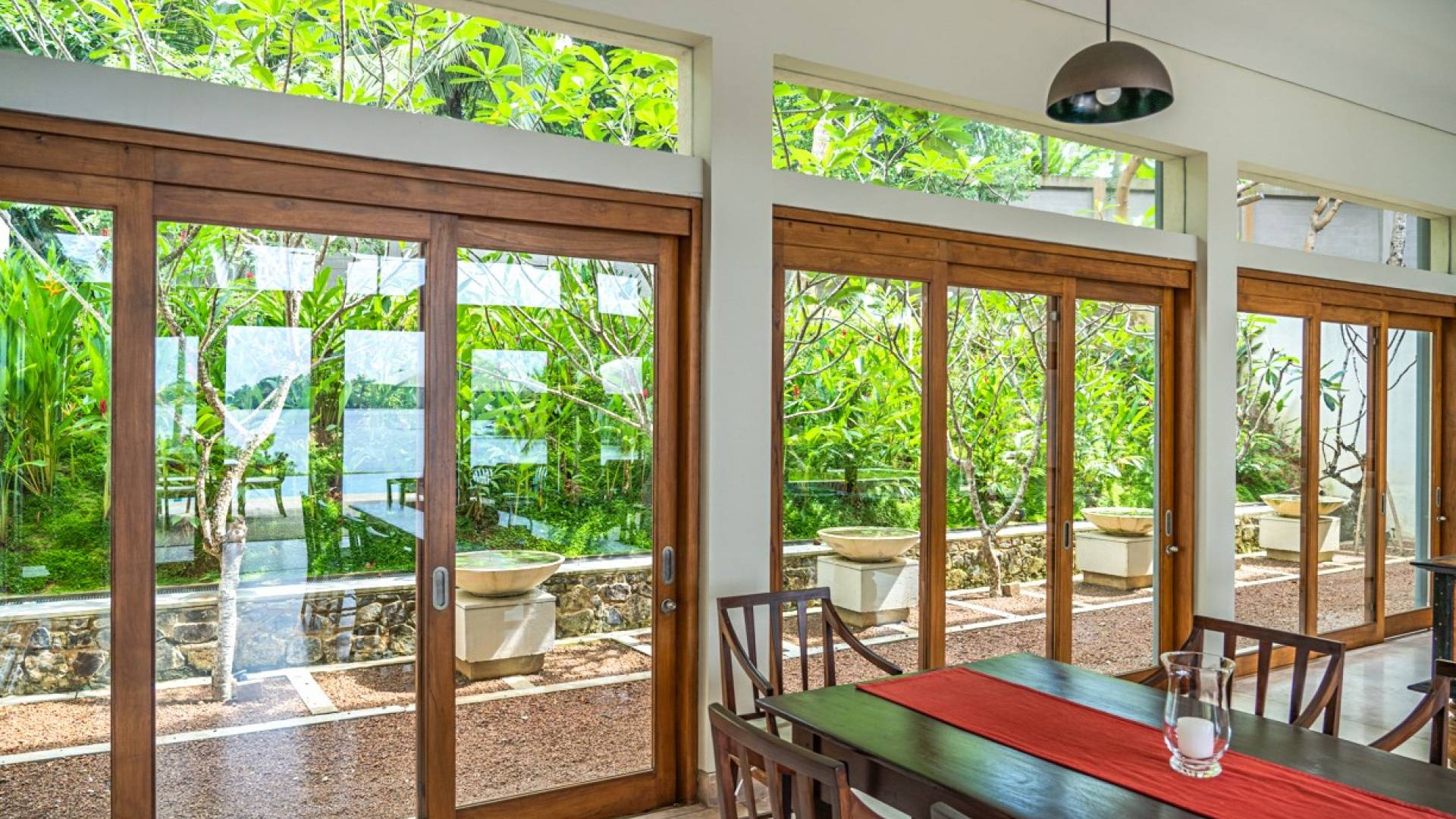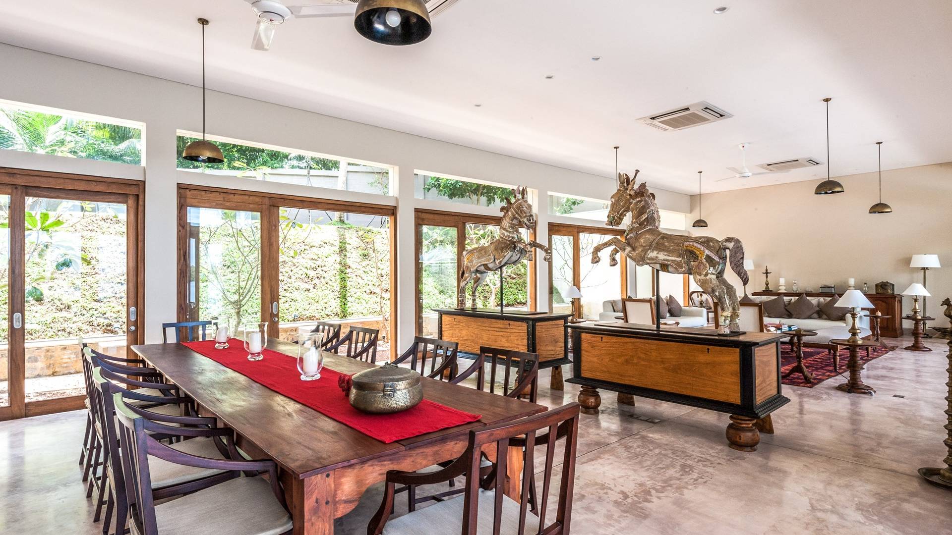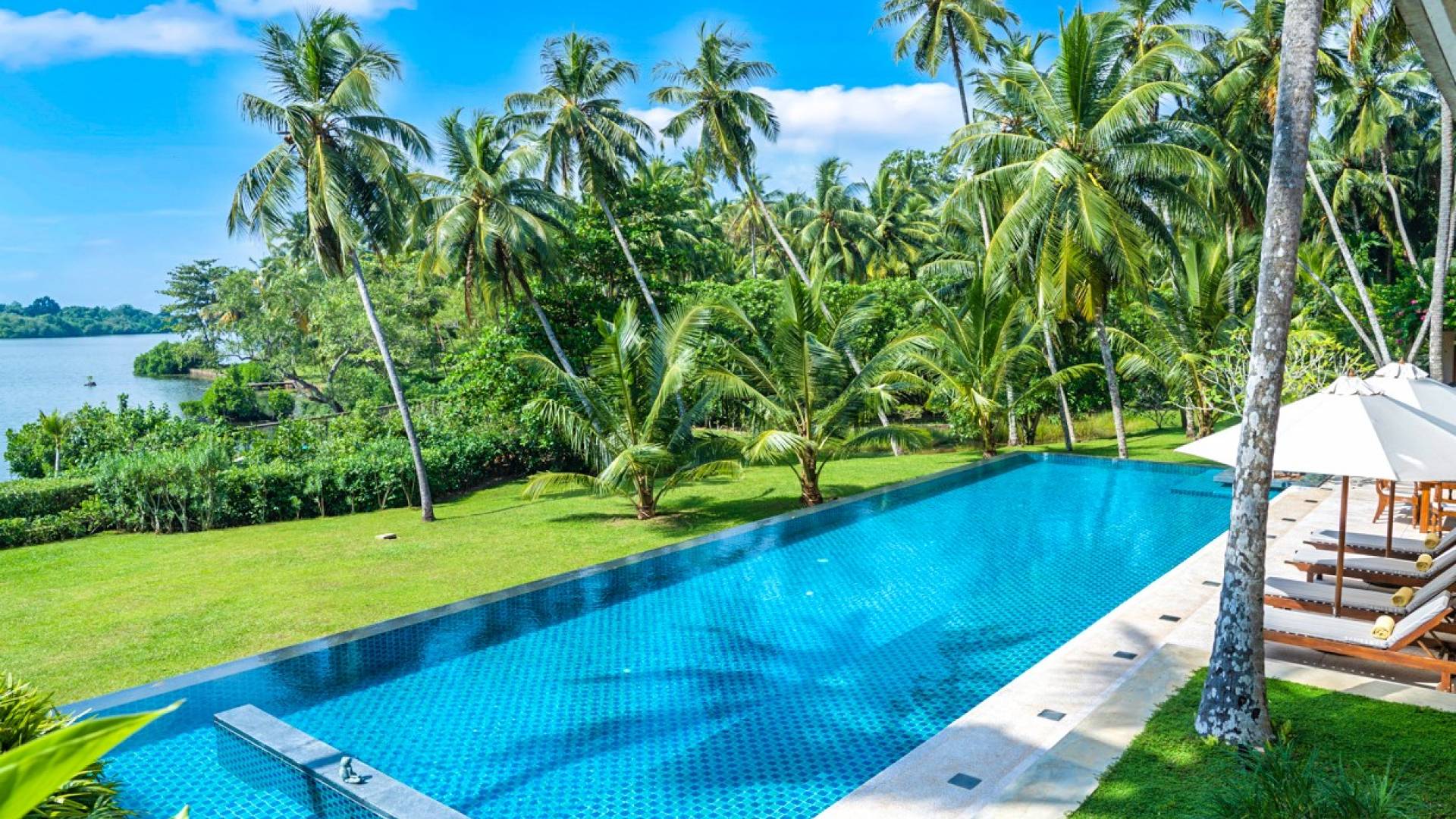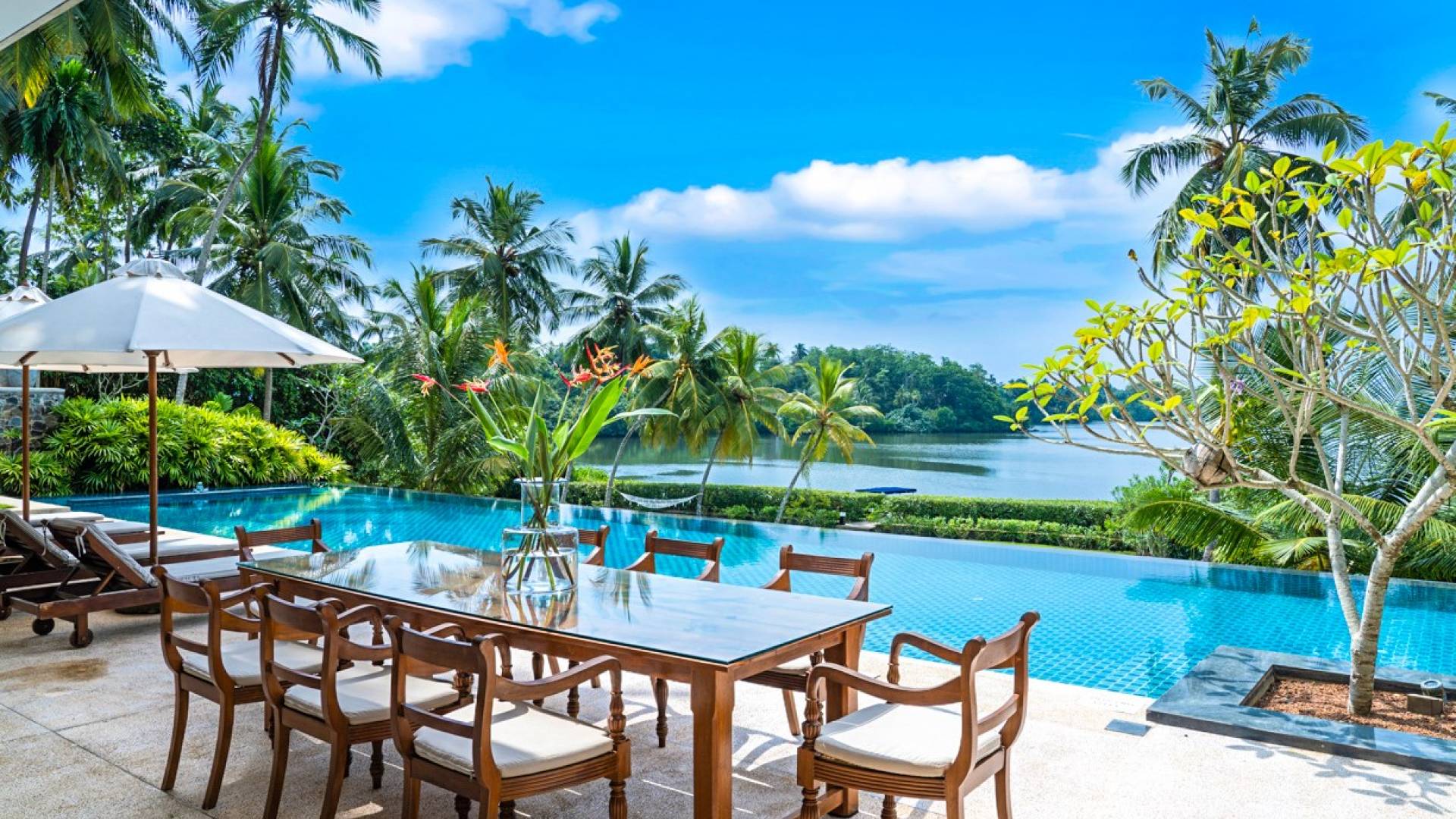 Поднявшись по дорожке, усаженной ананасами и франжипани, вы доберетесь до этого впечатляющего отеля и увидите потрясающе красивый и обширный вид на озеро Коггала. Войдя в этот современный линейный дом с облицовкой из тикового дерева, вы обнаружите зрелую элегантность интерьера с продуманной и последовательной цветовой палитрой, которая используется повсюду. Слева от вас вы попадаете в обширное пространство с феноменальными видами справа от вас, над бассейном и озером. В этом номере открытой планировки на первом этаже есть примыкающая обеденная зона и гостиная.