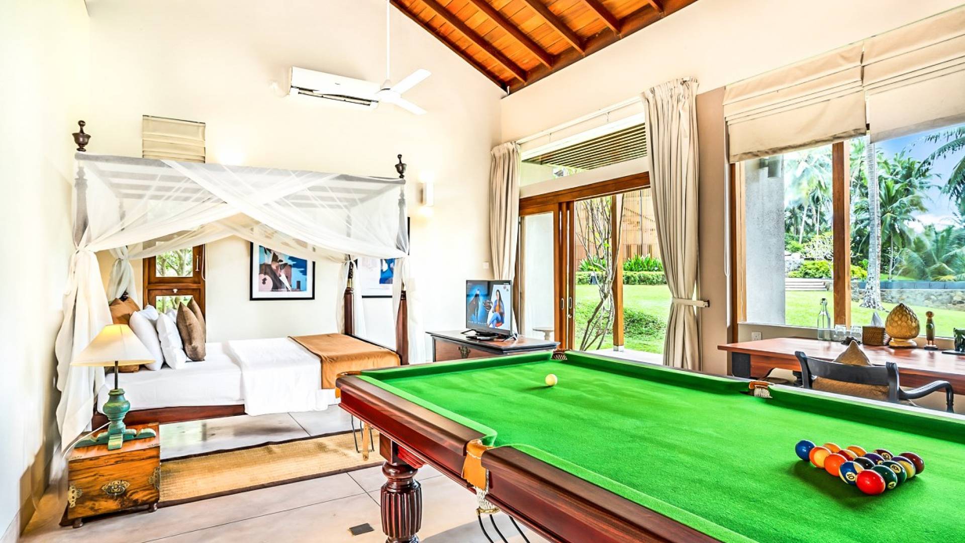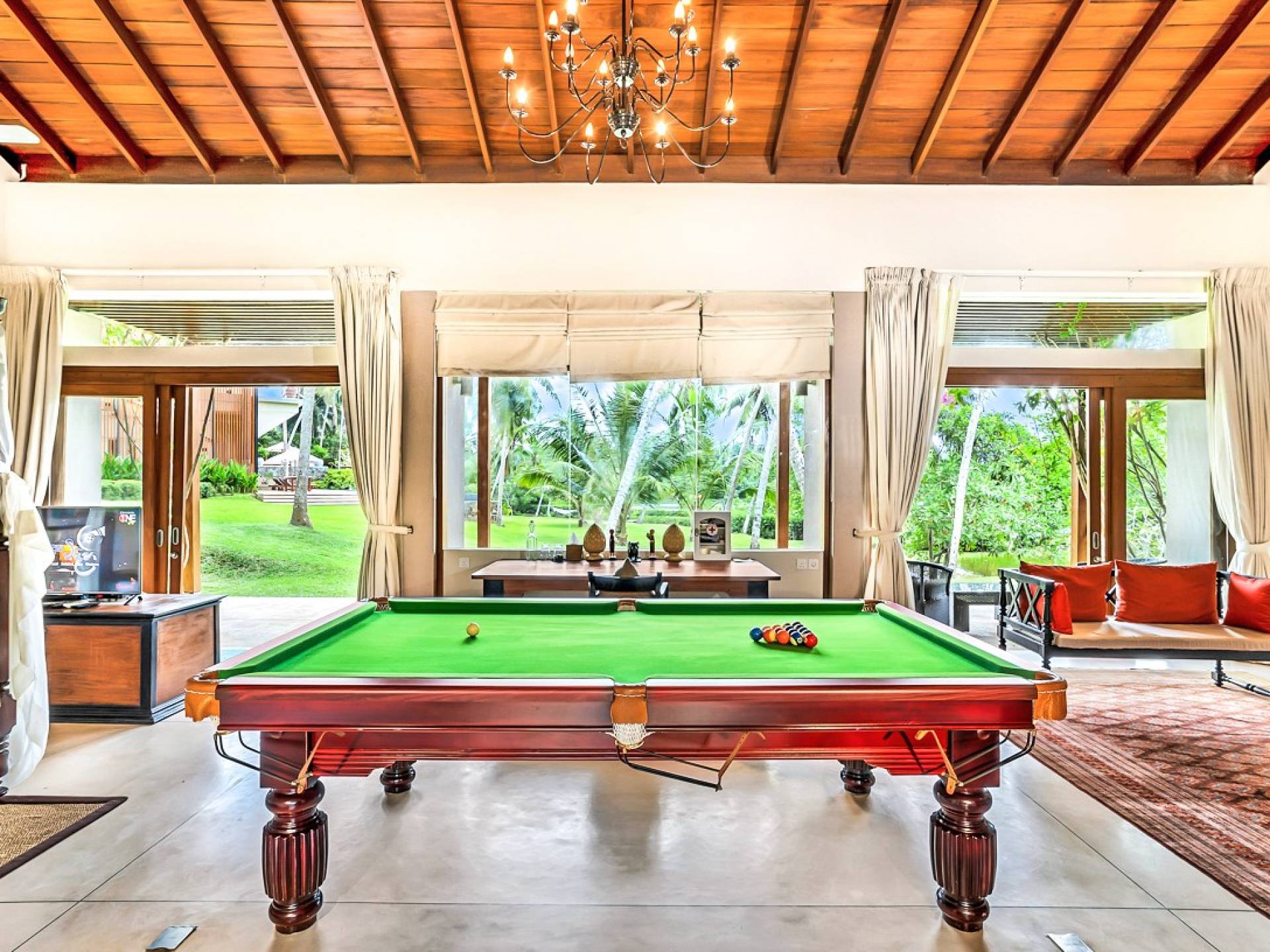 Отдельный люкс Garden с кондиционером отличается большим пространством и уединением. В нем есть кровать с балдахином и противомоскитной сеткой, собственная ванная комната, гардеробная, гостиная со спутниковым телевидением и бильярдный стол. Это идеальное место, чтобы уединиться, почитать книгу, поиграть в бильярд, посмотреть DVD или поработать с электронной почтой на длинном офисном столе. Кроме того, в нижней части передней стены есть крытое сиденье для дивана, с которого открывается впечатляющий нетронутый вид на главную виллу, бассейн и озеро. Всегда привлекательный пейзажный бассейн имеет три уровня, поэтому вы можете сидеть, плавать или валяться, как вам угодно. Большой тропический сад украшен гамаками, качающимися пальмами, розовыми бугенвиллеями, популярными растениями геликонии и деревьями франжипани. Есть 4 шезлонга и множество мест и вариантов, чтобы сидеть или лежать.