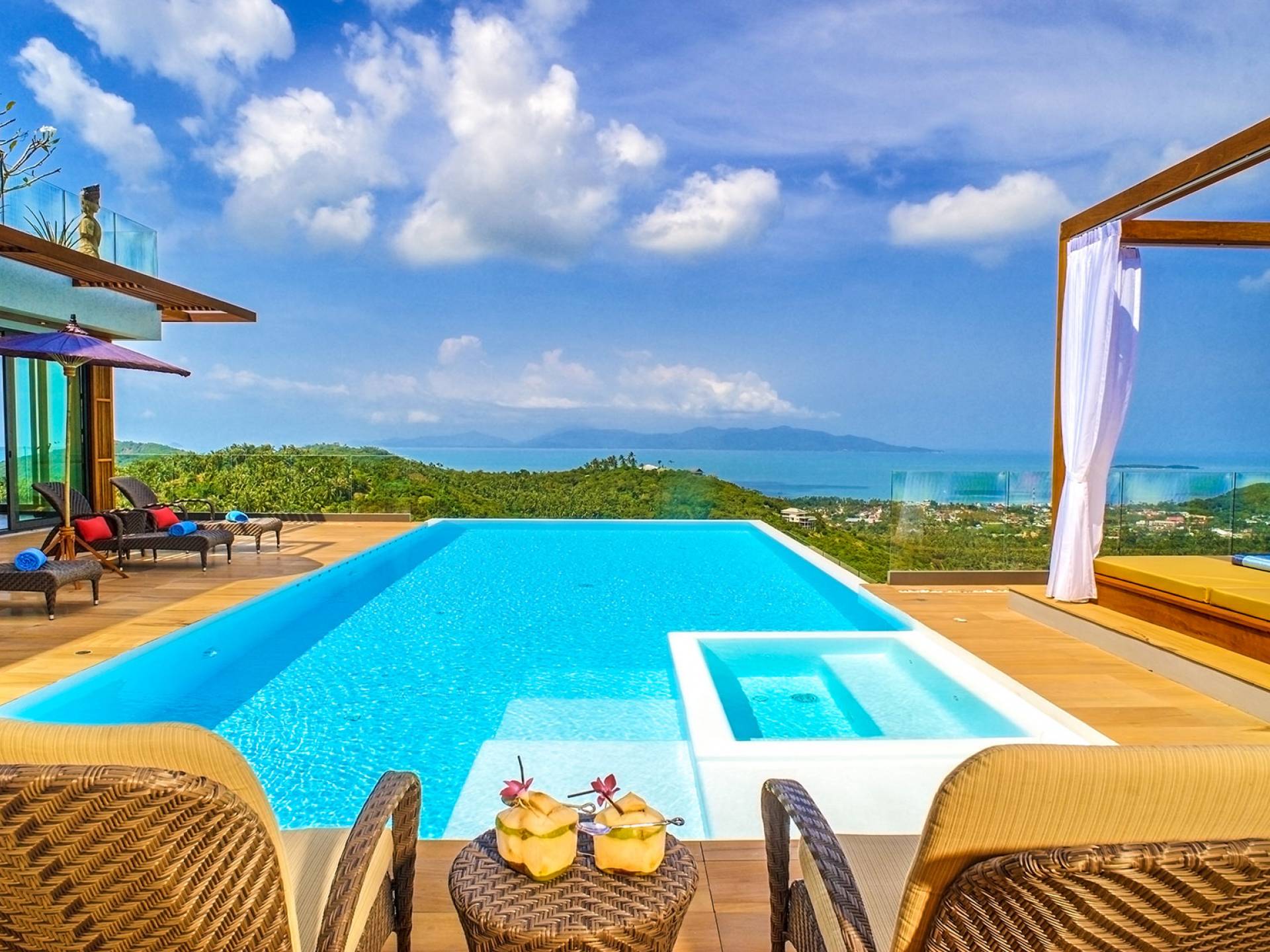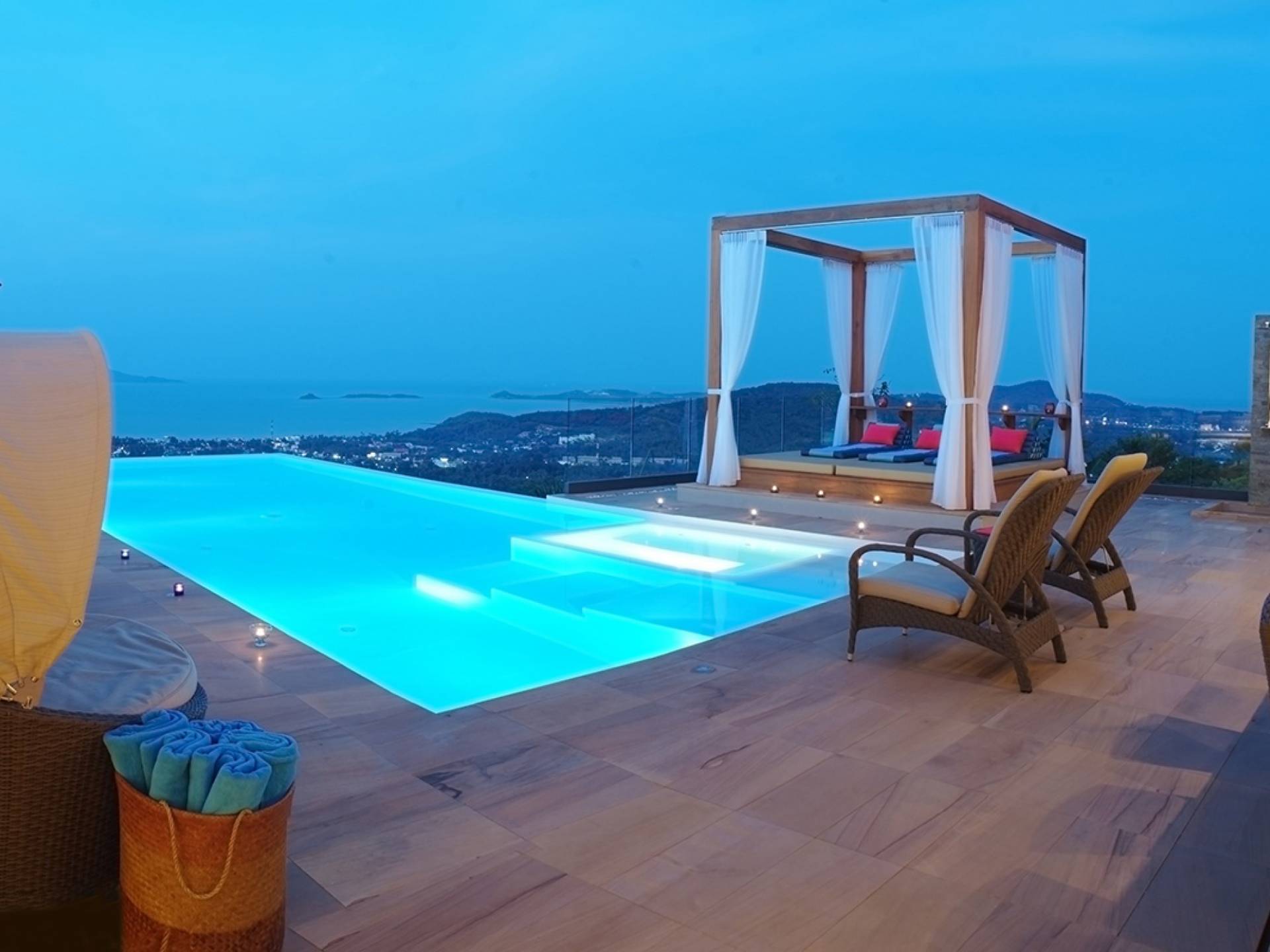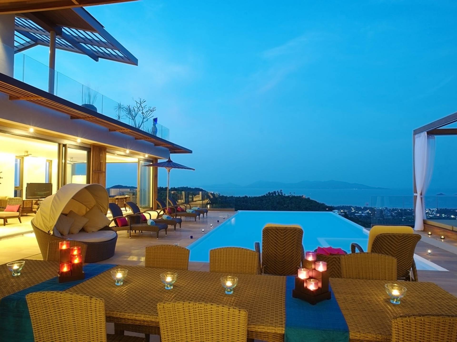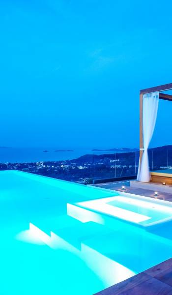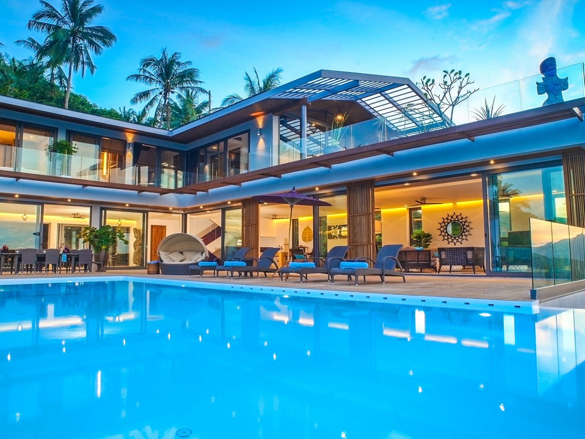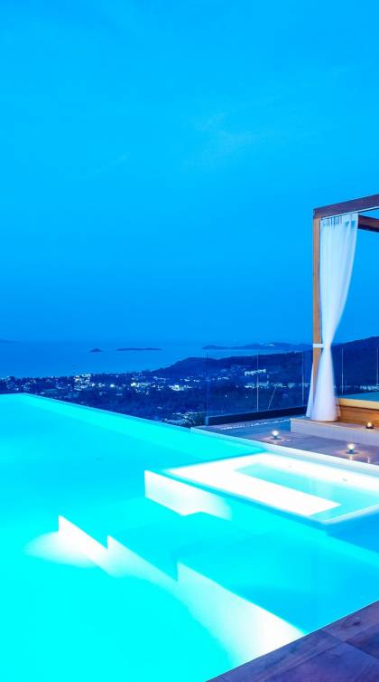 Эта роскошная вилла расположена на вершине холмов Бопхута. Из нее открывается великолепный вид на Сиамский залив, окаймленный изумрудными тропическими лесами и кокосами. Crystal Blue Villa Samui - это просторная вилла площадью 1000 квадратных метров в форме буквы L, расположенная на трех уровнях, на которой могут разместиться до двенадцати гостей, которые сразу почувствуют себя желанными и расслабленными. Из каждой комнаты виллы видны буйные джунгли, сказочный океан и яркое небо Самуи. Стоя на высотах Самуи, остров становится вашим собственным садом!