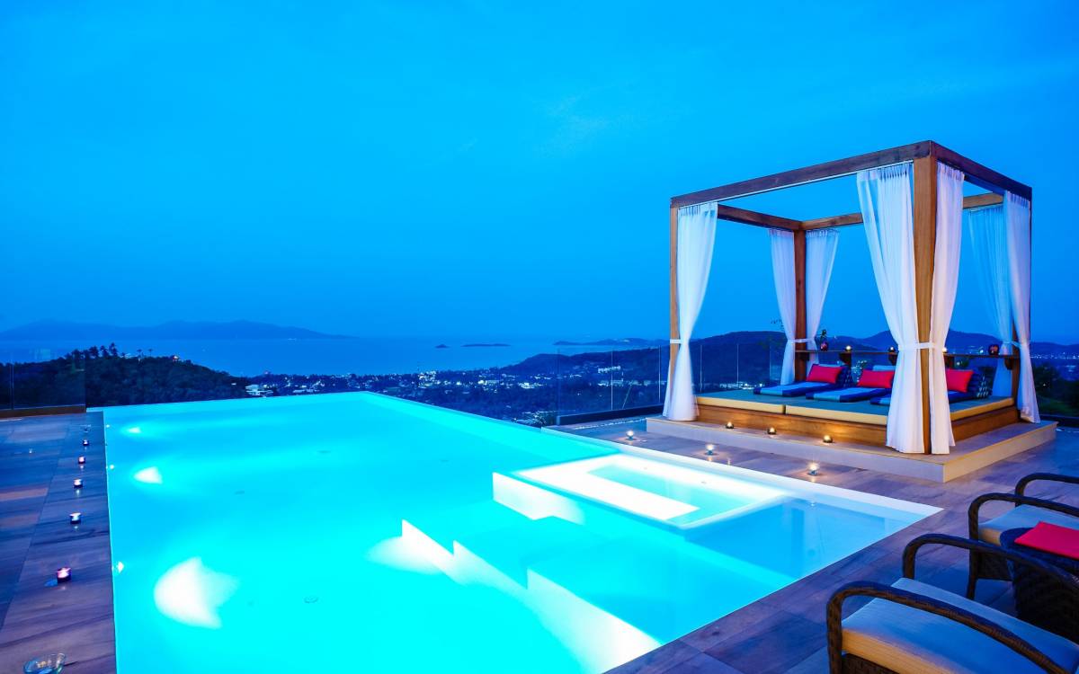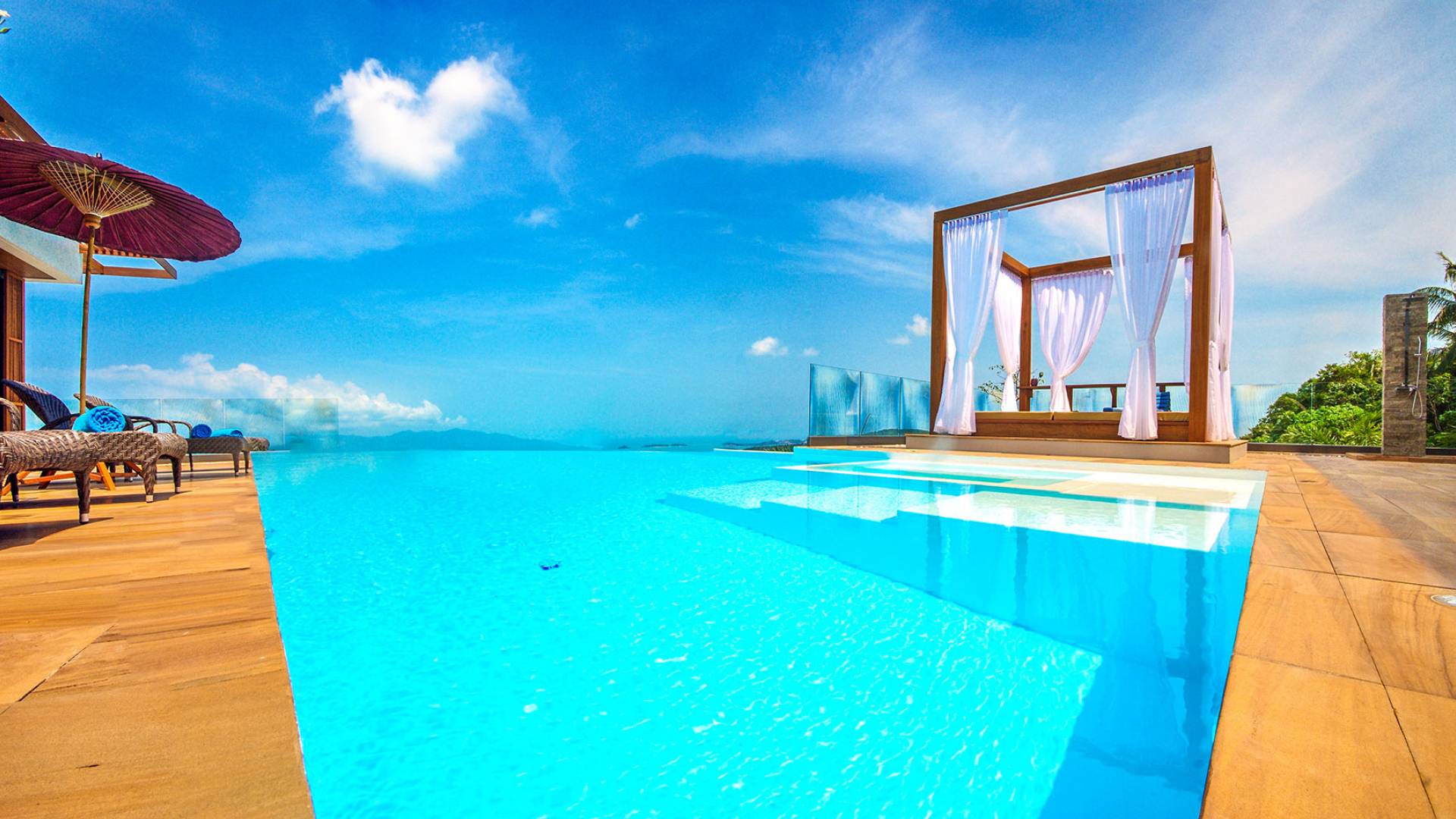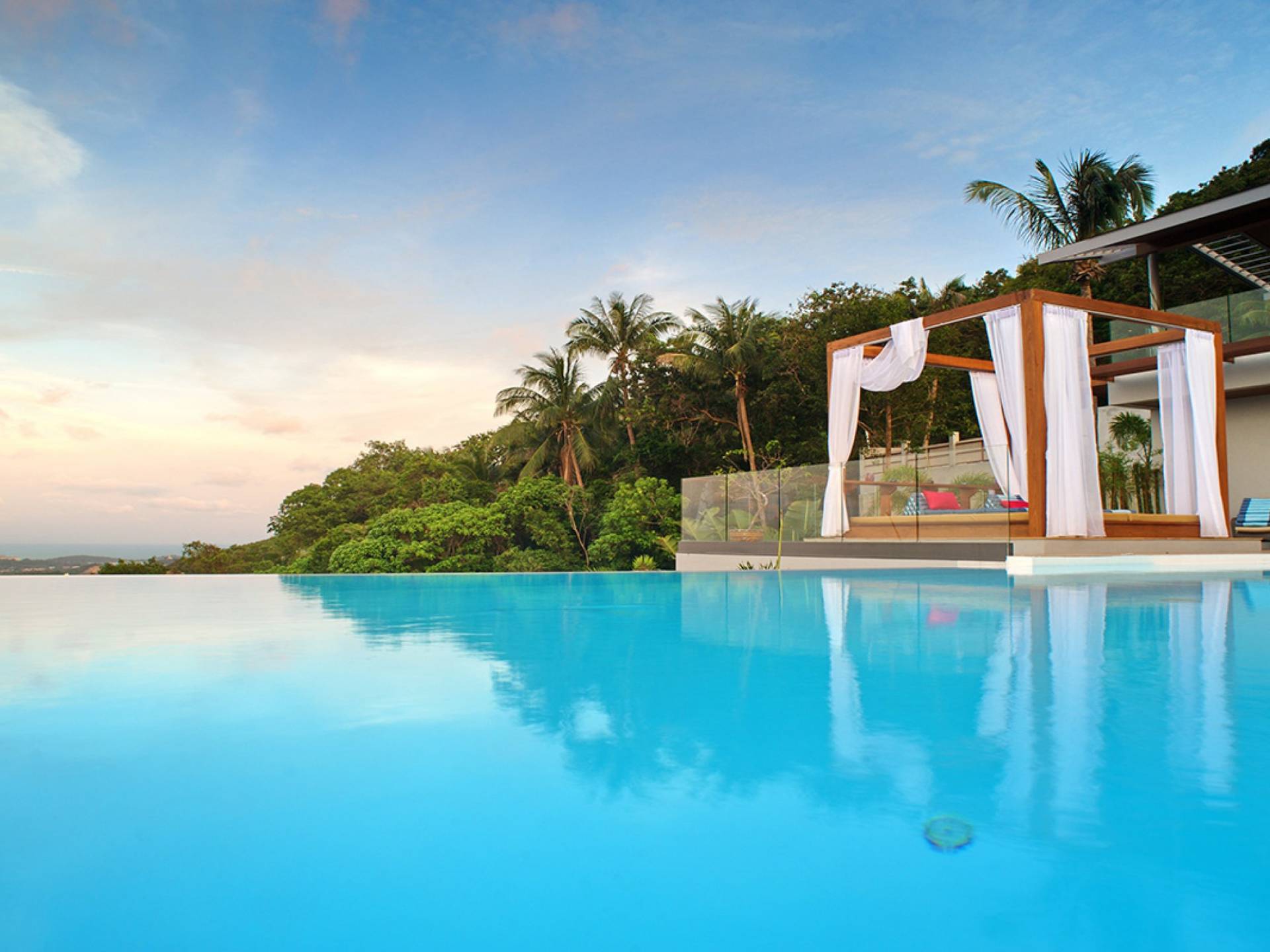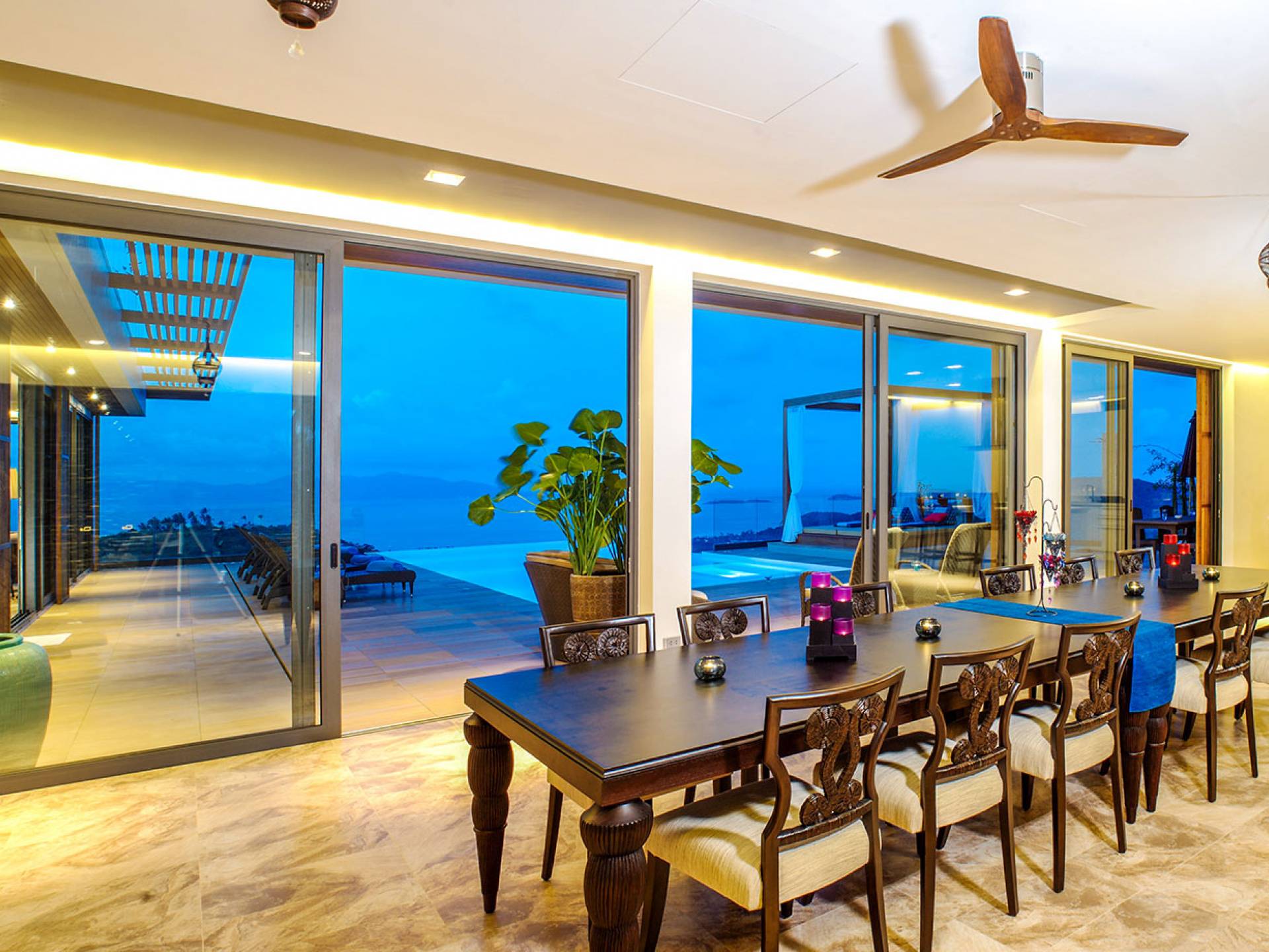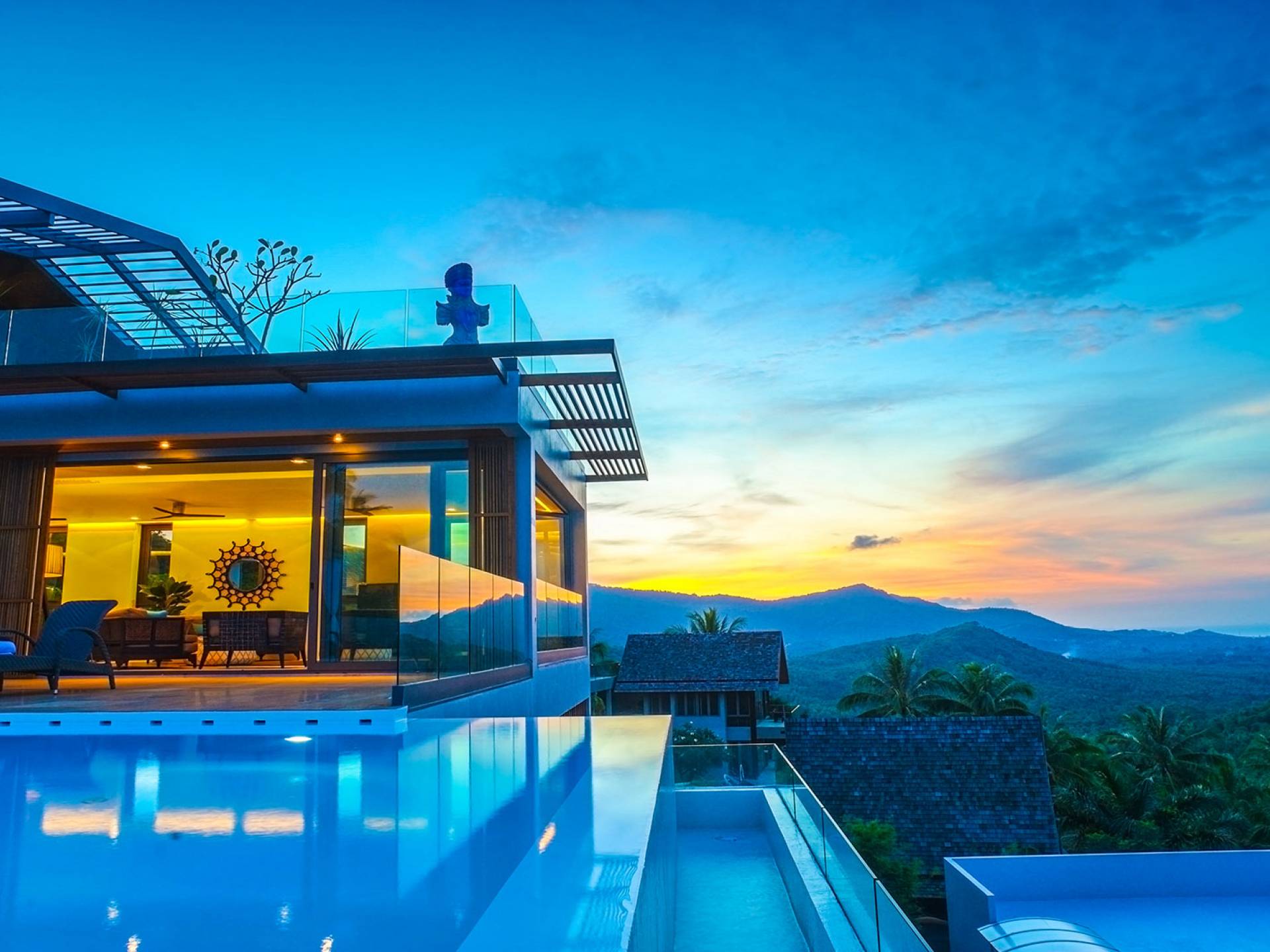 Эта роскошная вилла расположена на вершине холмов Бопхута. Из нее открывается великолепный вид на Сиамский залив, окаймленный изумрудными тропическими лесами и кокосами. Crystal Blue Villa Samui - это просторная вилла площадью 1000 квадратных метров в форме буквы L, расположенная на трех уровнях, на которой могут разместиться до двенадцати гостей, которые сразу почувствуют себя желанными и расслабленными. Из каждой комнаты виллы видны буйные джунгли, сказочный океан и яркое небо Самуи. Стоя на высотах Самуи, остров становится вашим собственным садом!