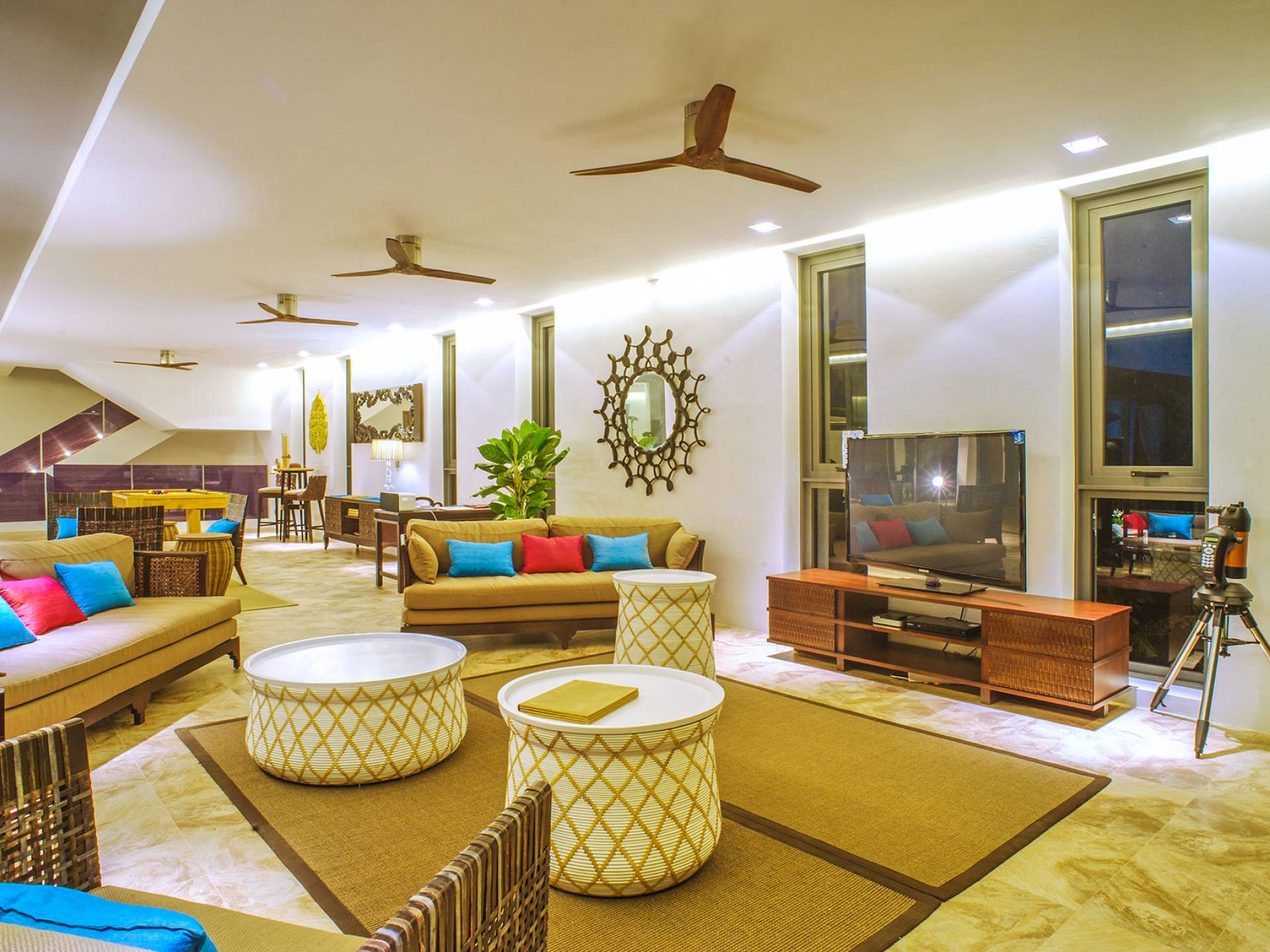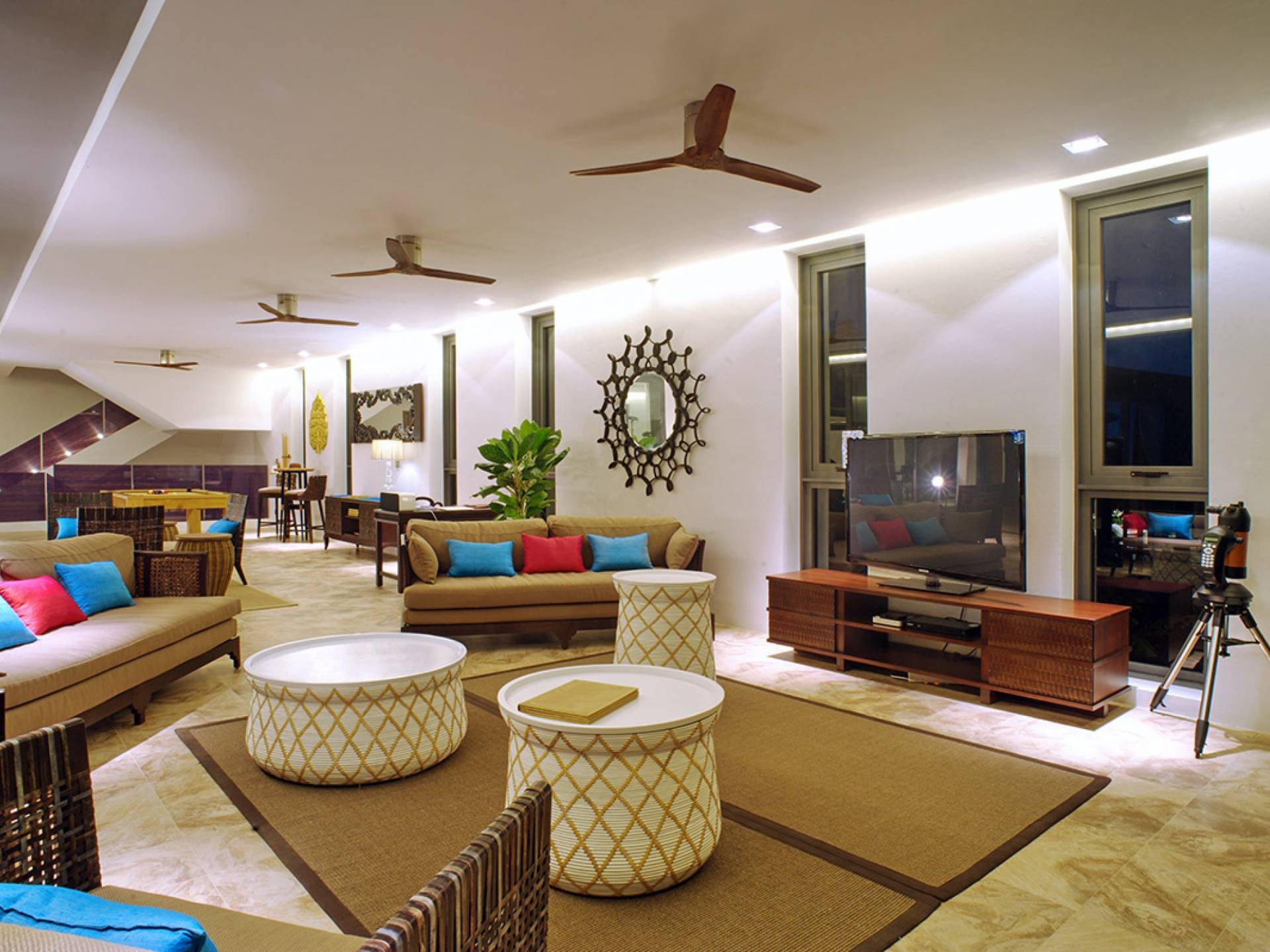В вечернее время роскошные шесть спален Crystal Blue Villa Samui вас сразу порадуют: высокие потолки, обшитые деревом, двуспальные кровати, письменный стол, встроенные шкафы, изысканный тайский декор, ванная комната с ванной, шезлонги в большая терраса приветствует вас каждое утро с фантастическим видом. Первый номер даже открывается на частной открытой крыше из белого песка! Спустившись по элегантной лестнице на нижний этаж, вы будете очарованы атмосферой, созданной удивительным внутренним садом. Слева от коридора с высоким потолком вы найдете открытый тренажерный зал, выходящий на боковой зеленый переулок, и еще три спальни. Опытная сервисная команда, преданная исключительно вашему вниманию, доступна круглосуточно в соседнем здании. Этот центр обслуживания включает в себя автосервис, центральную кухню, прачечную, сторожку и комнаты для пяти штатных сотрудников.