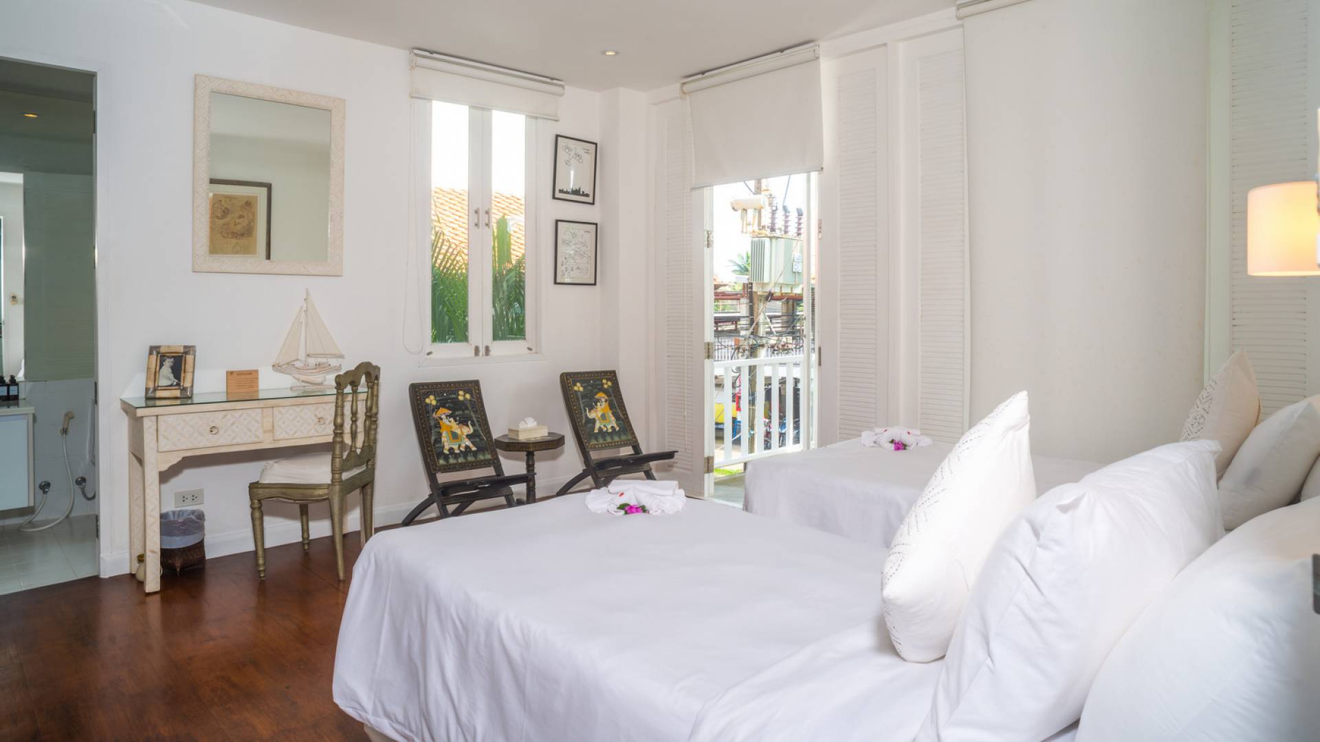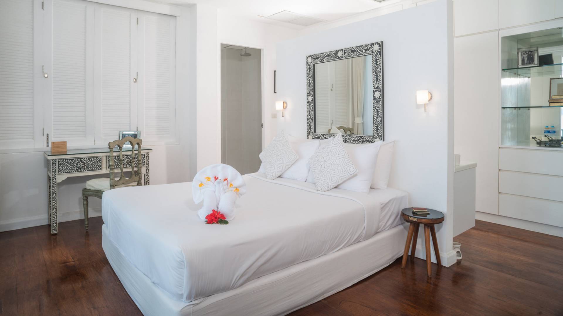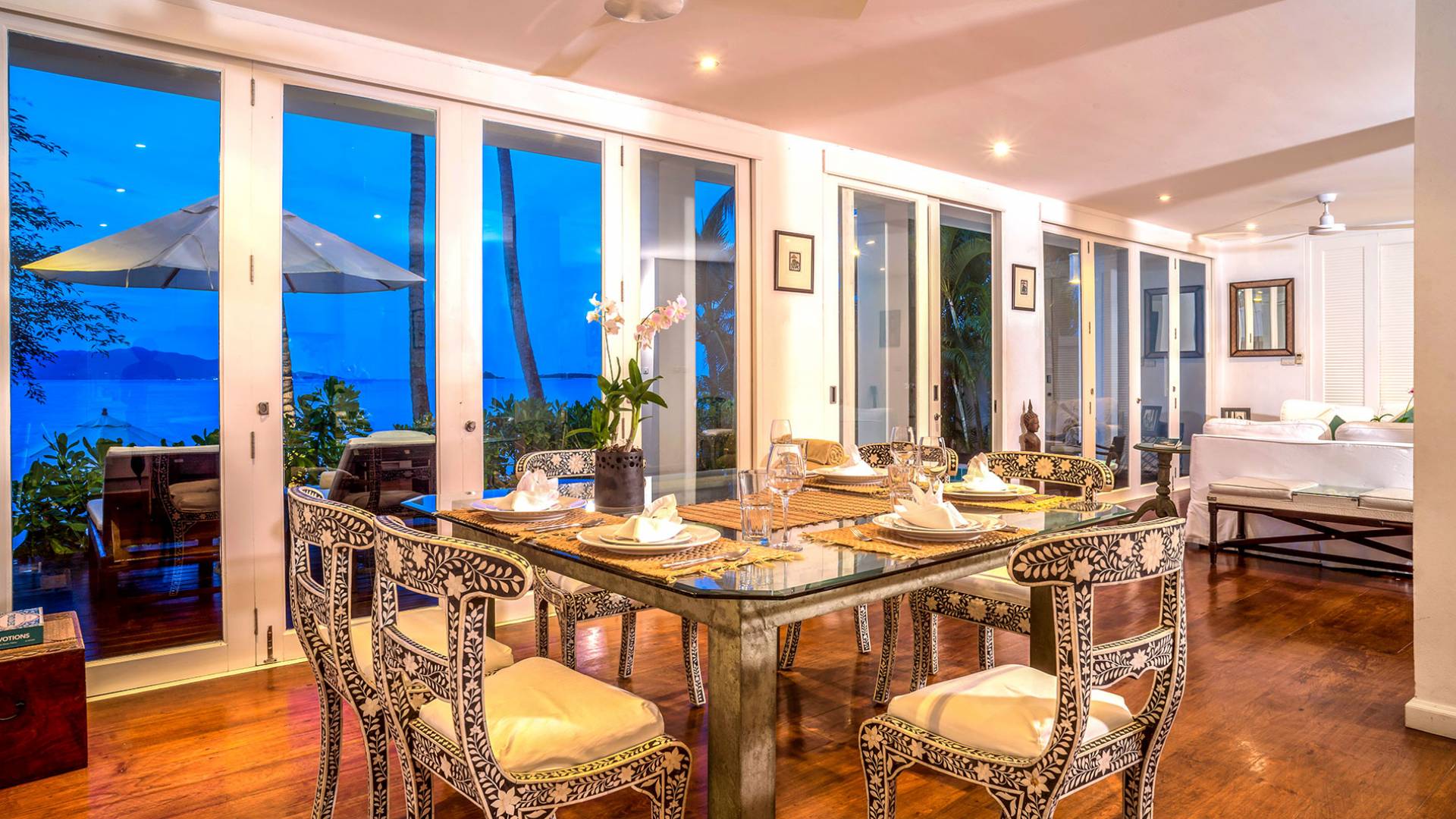Уникальный дизайн пляжных обедов, а также доступная кухня создали исключительную тайскую и интернациональную атмосферу. Завидное расположение, элегантный дизайн в колониальном стиле и великолепная мебель создают просто удивительный дом. Привлекает внимание внешний вид с его белым фасадом, контрастирующим со старинным дверным проемом Шаньси. Интерьер со вкусом дополняет внешний вид с белыми стенами и ставнями плантаций, контрастирующими с богатством и текстурой переработанных полов из тикового дерева. Каждая комната в доме тщательно обставлена в интимном индокитайском стиле с использованием предметов антиквариата и произведений искусства из Бирмы, Лаоса, Вьетнама, Камбоджи и, конечно же, Таиланда.