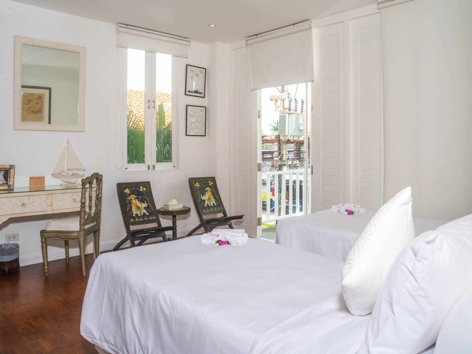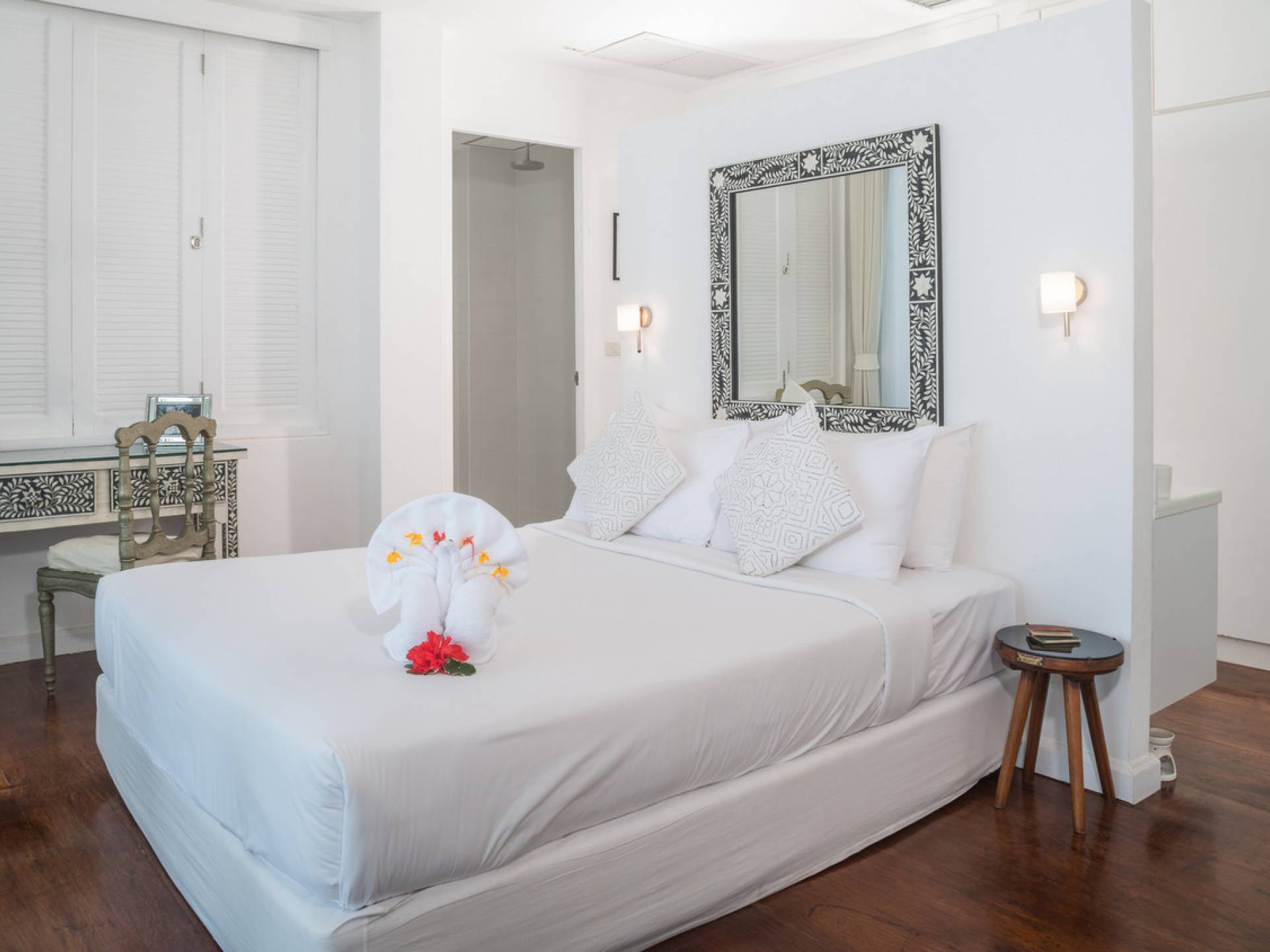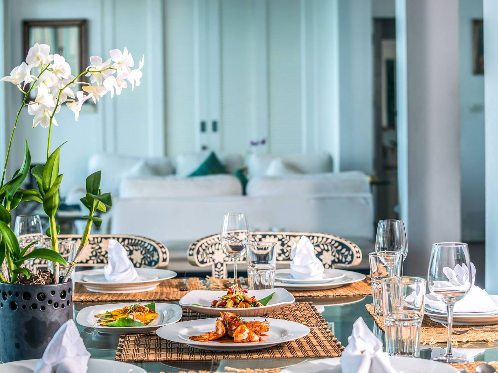 Уникальный дизайн пляжных обедов, а также доступная кухня создали исключительную тайскую и интернациональную атмосферу. Завидное расположение, элегантный дизайн в колониальном стиле и великолепная мебель создают просто удивительный дом. Привлекает внимание внешний вид с его белым фасадом, контрастирующим со старинным дверным проемом Шаньси. Интерьер со вкусом дополняет внешний вид с белыми стенами и ставнями плантаций, контрастирующими с богатством и текстурой переработанных полов из тикового дерева. Каждая комната в доме тщательно обставлена в интимном индокитайском стиле с использованием предметов антиквариата и произведений искусства из Бирмы, Лаоса, Вьетнама, Камбоджи и, конечно же, Таиланда.