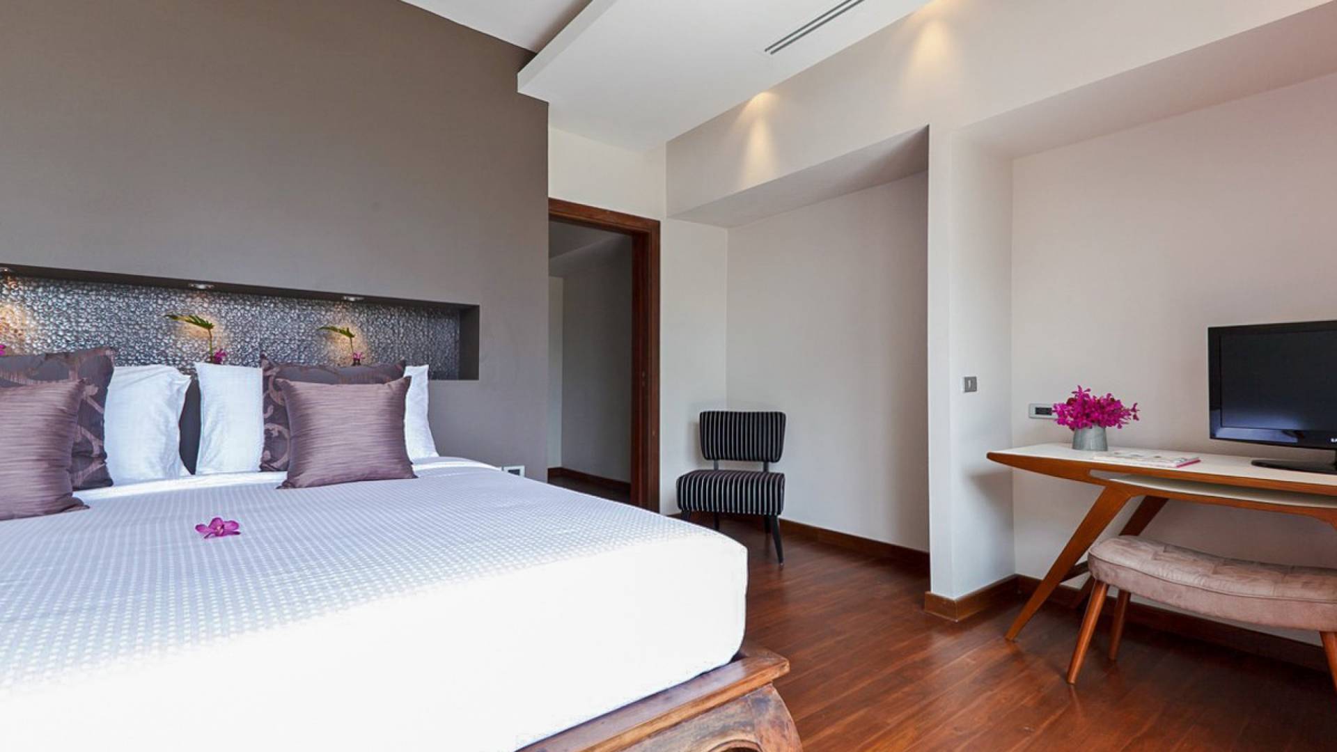 В номере с видом на океан есть 3 спальни с ванными комнатами (все с двуспальными кроватями) плюс дополнительная комната для няни или подростков. Второй этаж с видом на океан - идеальное место для тех гостей, которые хотят отдохнуть в тишине. В этом просторном лаундже есть кухня, столовая и гостиная, выходящие на террасу с видом на бассейн и Салу. На верхнем этаже находится главная спальня с кроватью размера «king-size» с балдахином, а также ванная комната, выходящая на балкон с двумя удобными креслами и прекрасным видом на море.