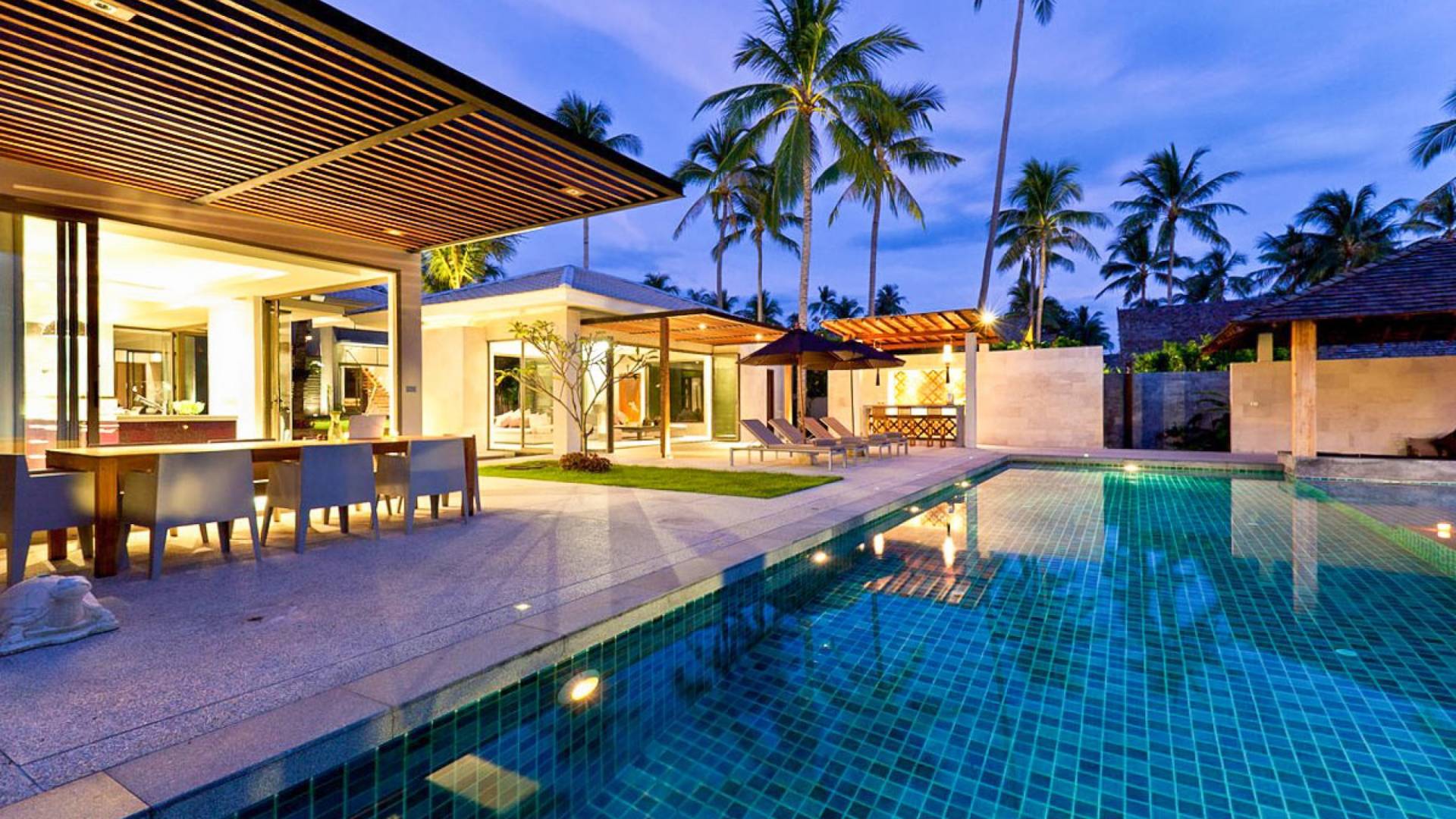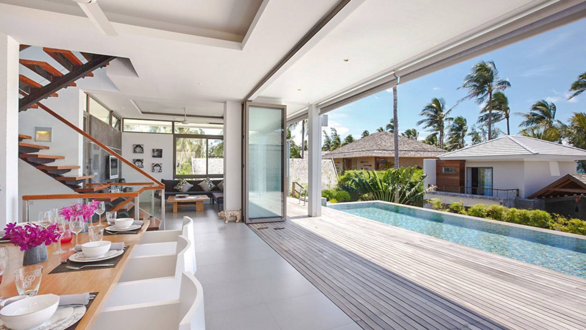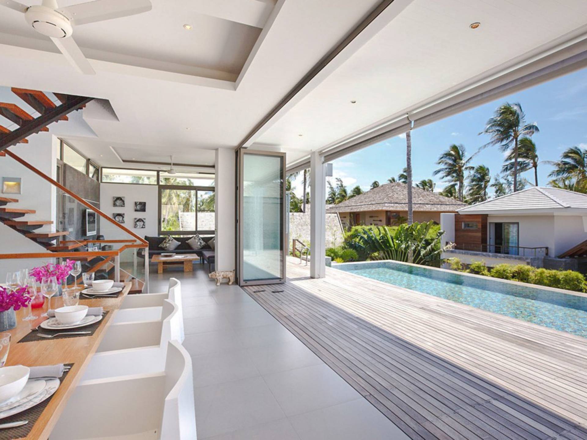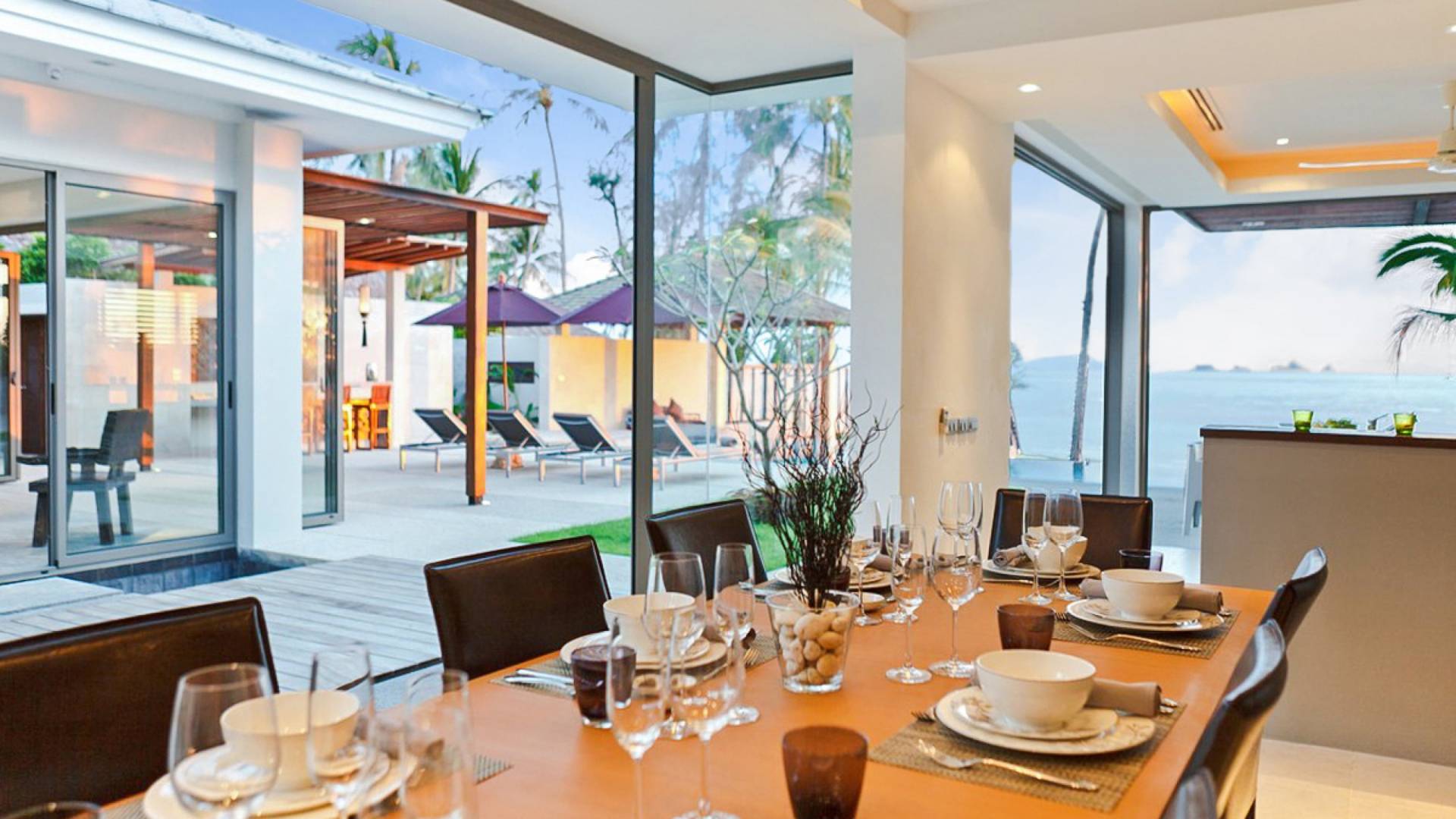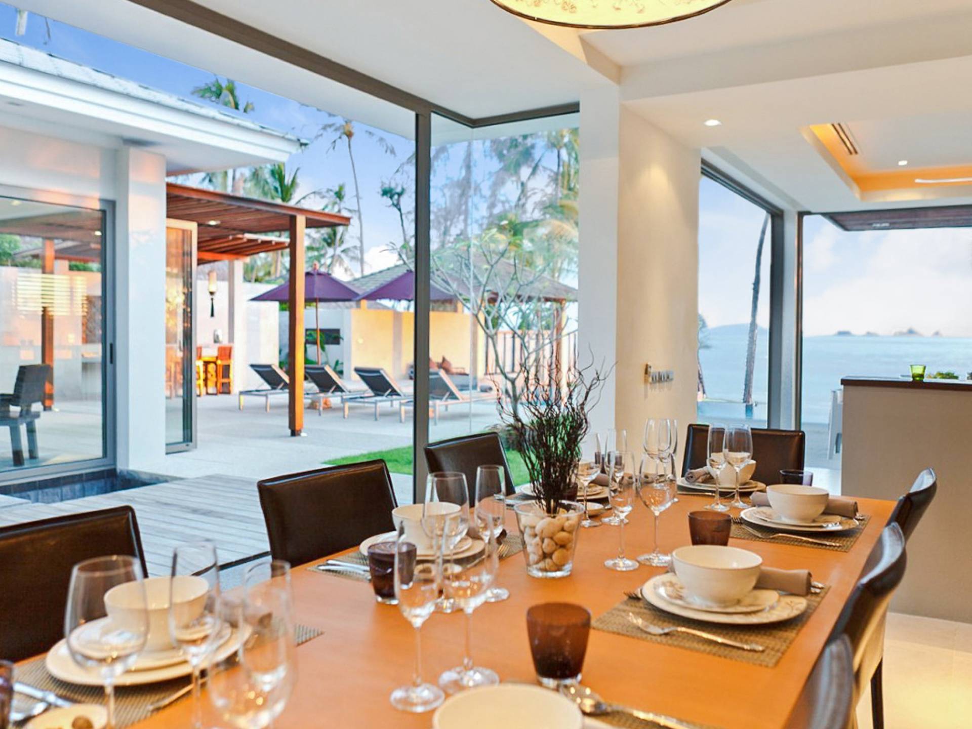 Оставшийся павильон включает кухню и столовую. Любителям еды понравится готовить или изучать тайскую кухню на этой современной и шикарной кухне! Из жилых и кухонно-обеденных павильонов открывается вид на пейзажный бассейн, белый песчаный пляж и знаменитые 5 островов морского национального парка Анг Тонг.