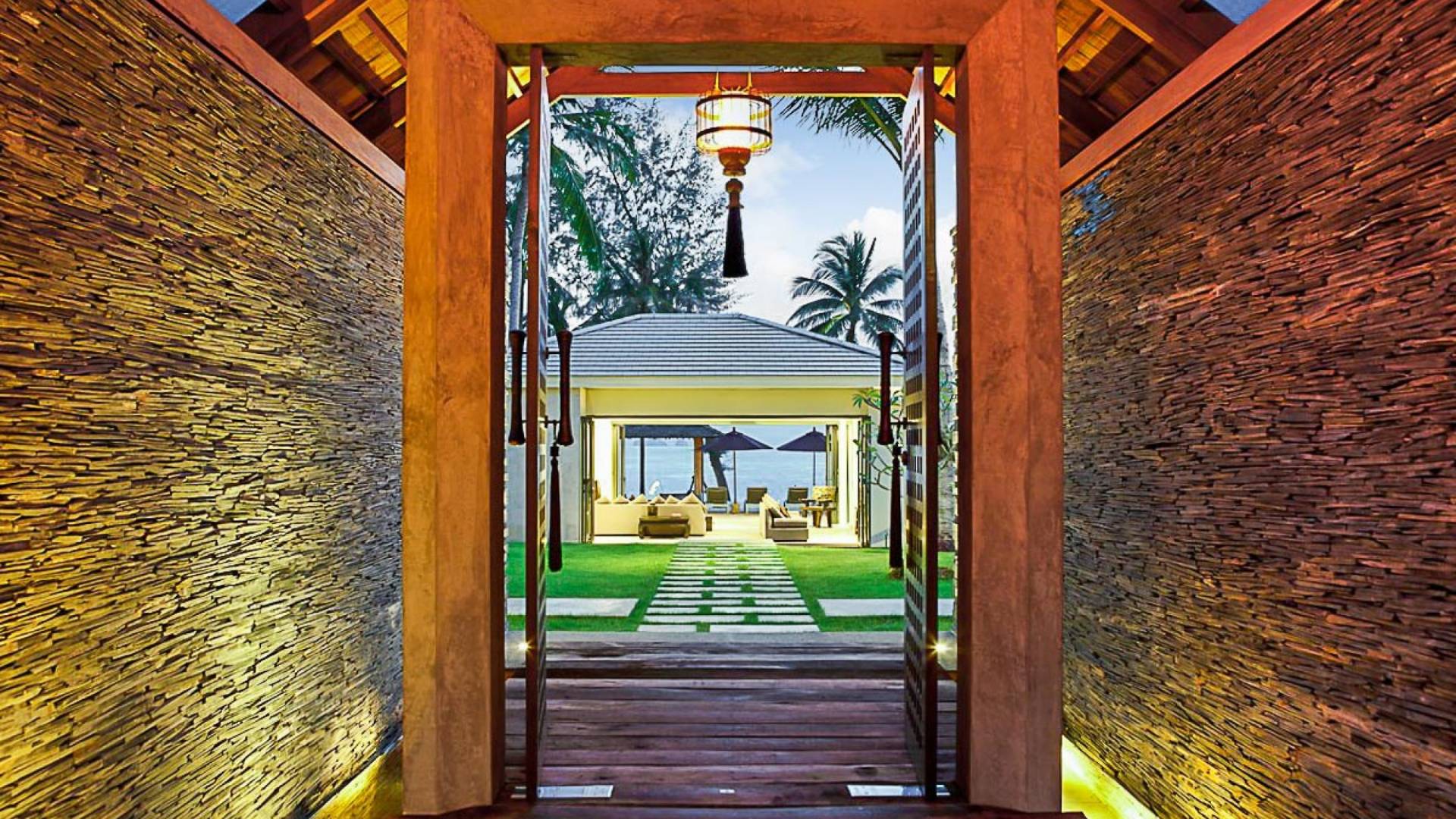 Блок «Береговая линия» состоит из 5 роскошных павильонов. Три из которых включают спальни (2 хозяина и 2 гостя). Одна из главных спален имеет потрясающий вид на сад и океан с роскошной ванной комнатой сзади (душ и ванна), ведущей прямо в частный сад «дзен», где можно насладиться расслабляющим массажем. Второй Мастер имеет более двух уровней. Комната для развлечений находится на нижнем этаже, а спальная зона с кроватью размера «king-size» с балдахином и собственной ванной комнатой (с душем и ванной) находится на верхнем этаже. Две дополнительные спальни для гостей с душем (одна кровать размера «king-size» с балдахином и 2 односпальные кровати) имеют вид на сад. В четвертом павильоне находится гостиная. На удобных диванах можно смотреть телевизор или читать книгу, а большие складывающиеся стеклянные двери открываются с двух сторон, позволяя гостям легко сочетать жизнь в помещении и на улице. Шедевром этого зала является впечатляющая статуя Будды высотой 2,50 м, которая подчеркивает азиатский дух этого отеля.