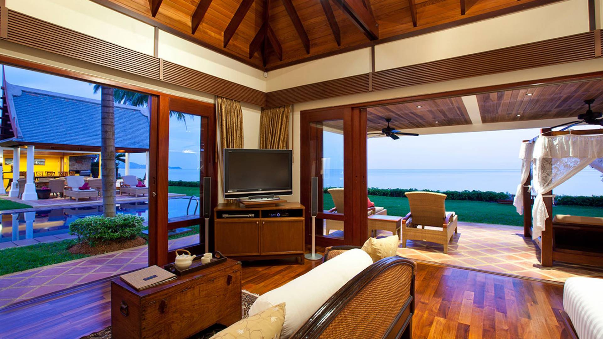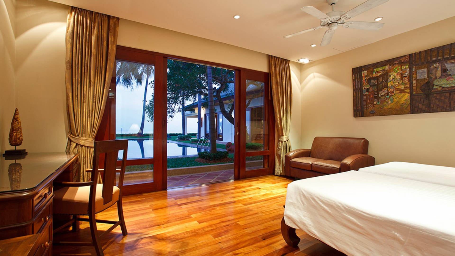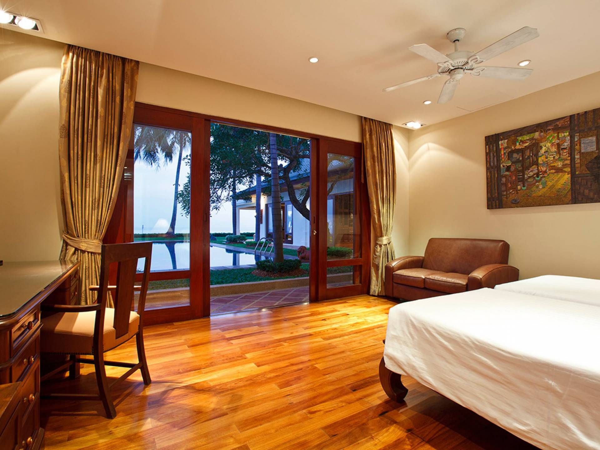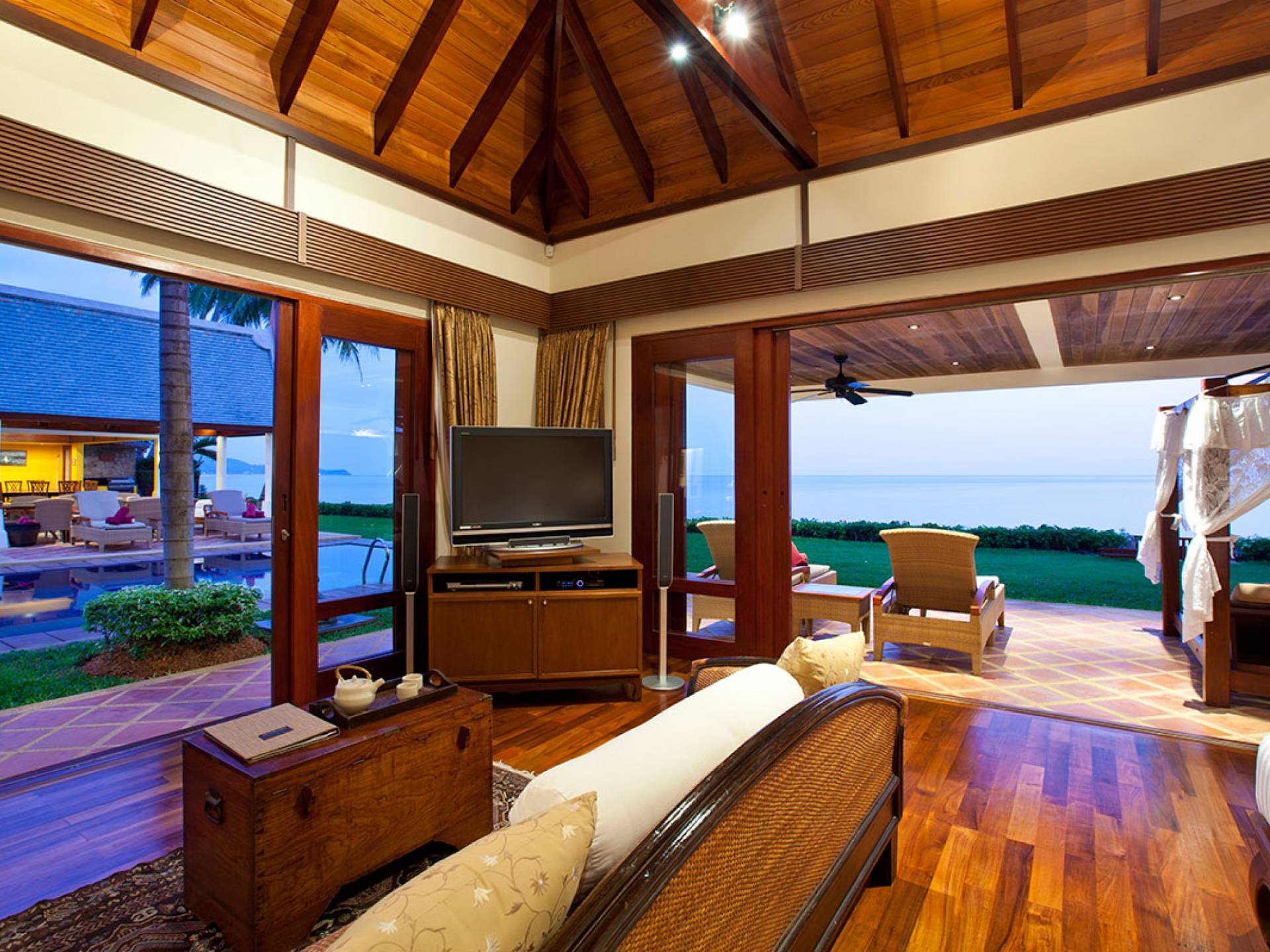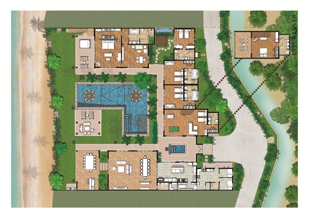 Каждая спальня расположена вокруг вашего очень большого частного бассейна; поэтому многие из вас могут наслаждаться видами на море из своих спален. У вас есть одно двухуровневое здание, в котором находится комната с двуспальной кроватью наверху и комната с двумя односпальными кроватями на нижнем этаже, а также игровая комната. К главной спальне примыкает дополнительный офис, который при необходимости может быть преобразован в дополнительное место для детей и дополнительные кровати. Вы также можете насладиться джакузи в главной ванной комнате!