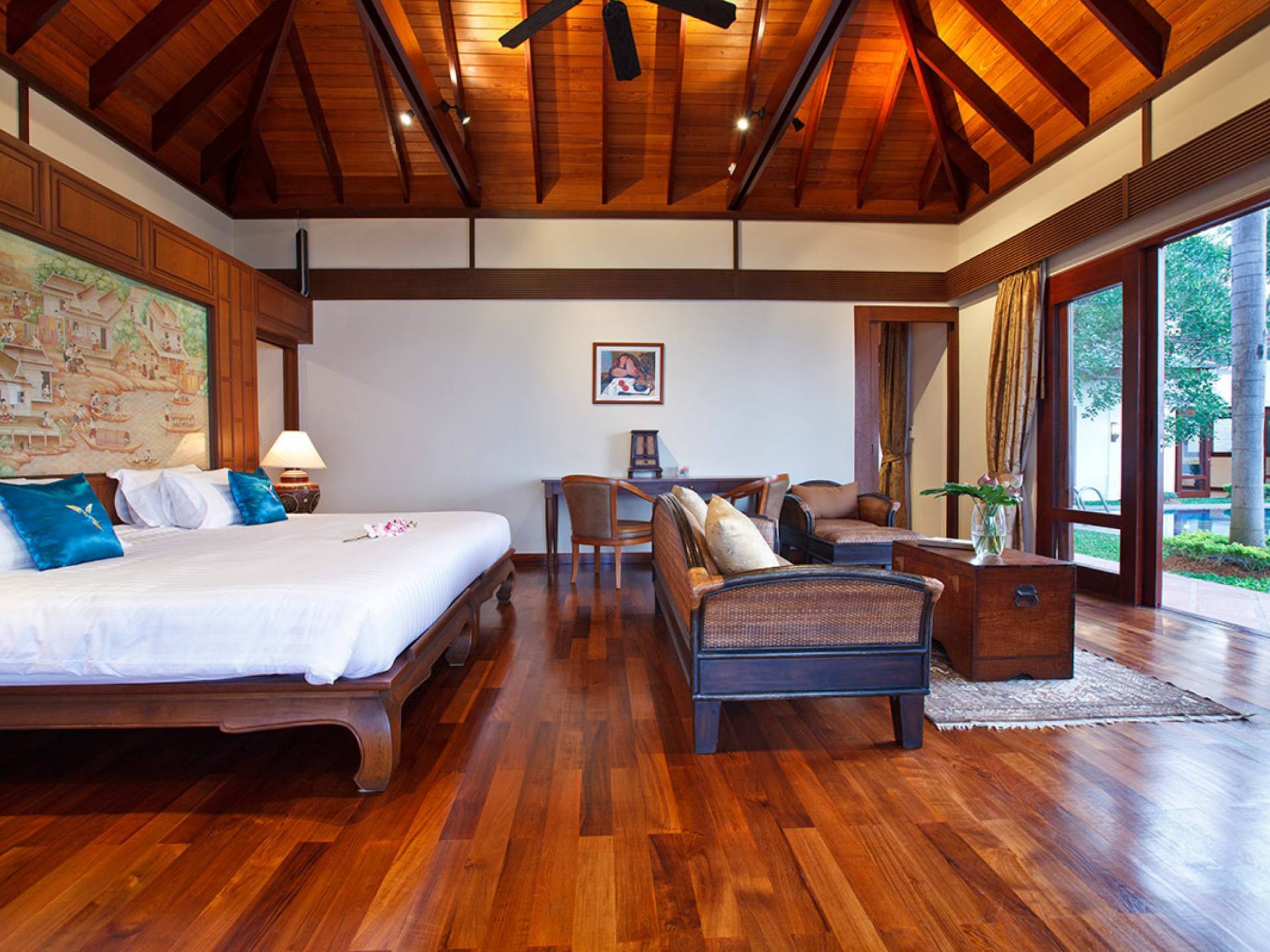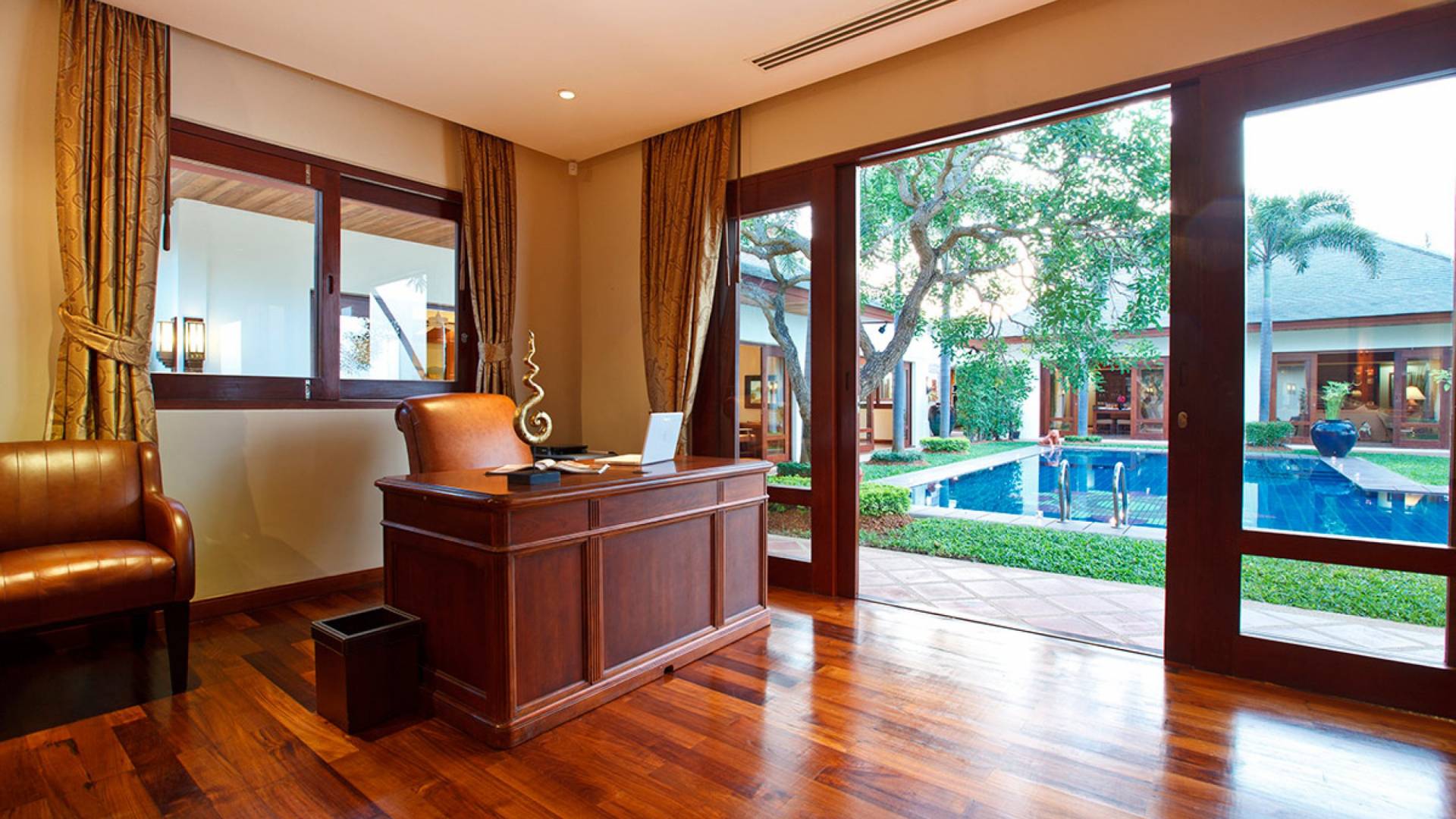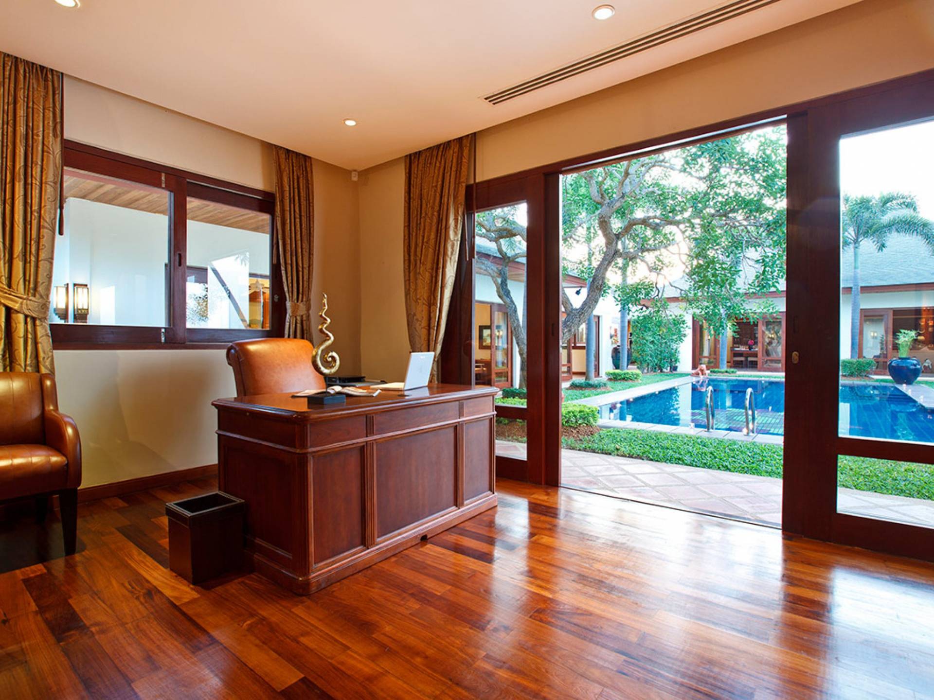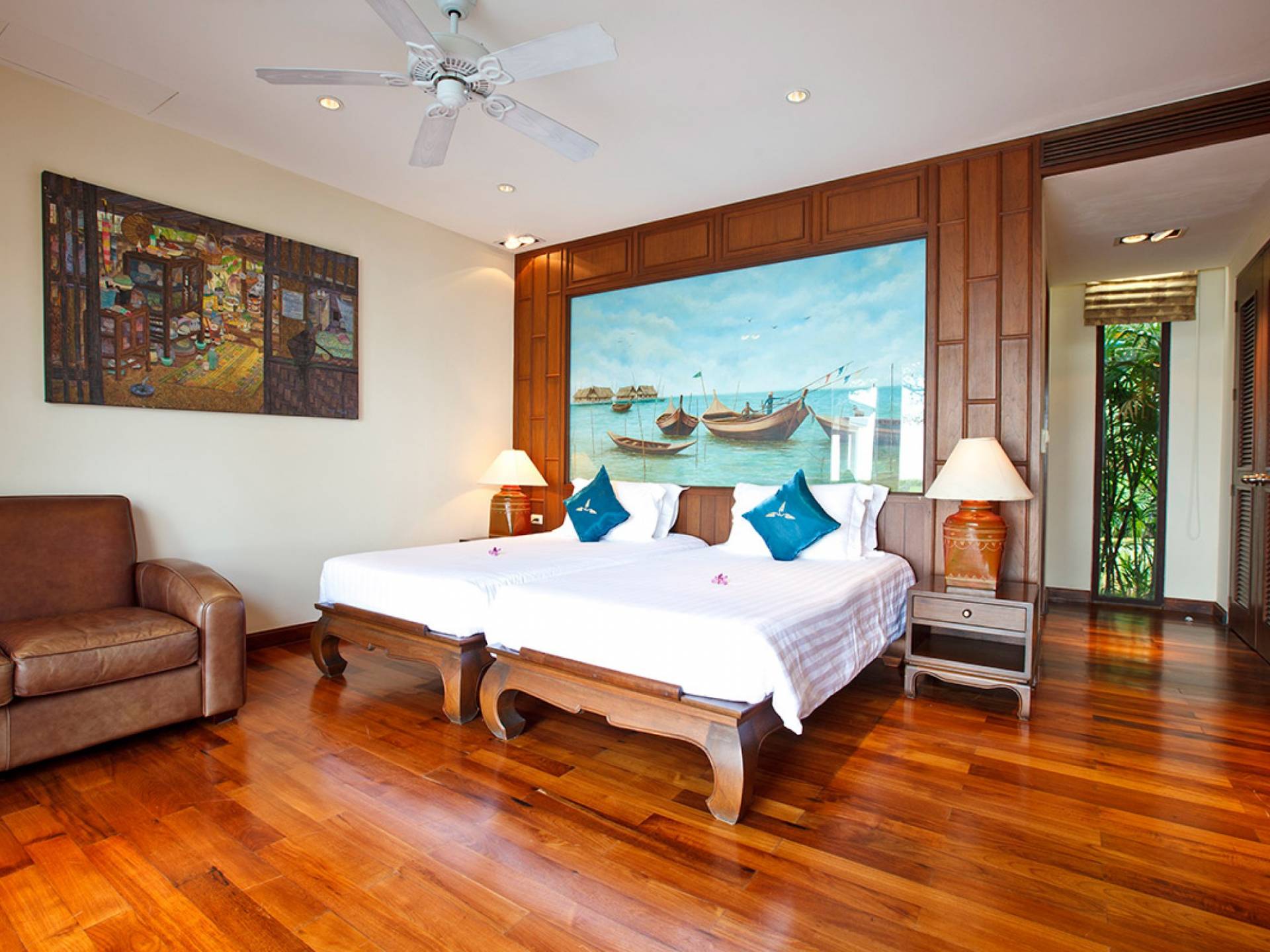 Каждая спальня расположена вокруг вашего очень большого частного бассейна; поэтому многие из вас могут наслаждаться видами на море из своих спален. У вас есть одно двухуровневое здание, в котором находится комната с двуспальной кроватью наверху и комната с двумя односпальными кроватями на нижнем этаже, а также игровая комната. К главной спальне примыкает дополнительный офис, который при необходимости может быть преобразован в дополнительное место для детей и дополнительные кровати. Вы также можете насладиться джакузи в главной ванной комнате!