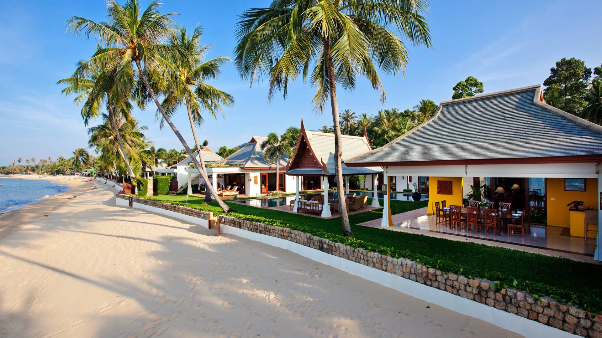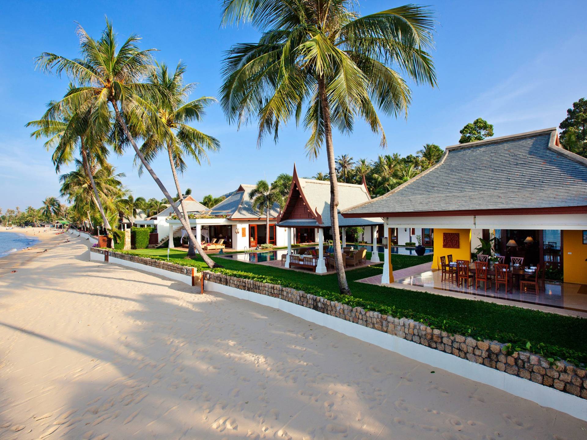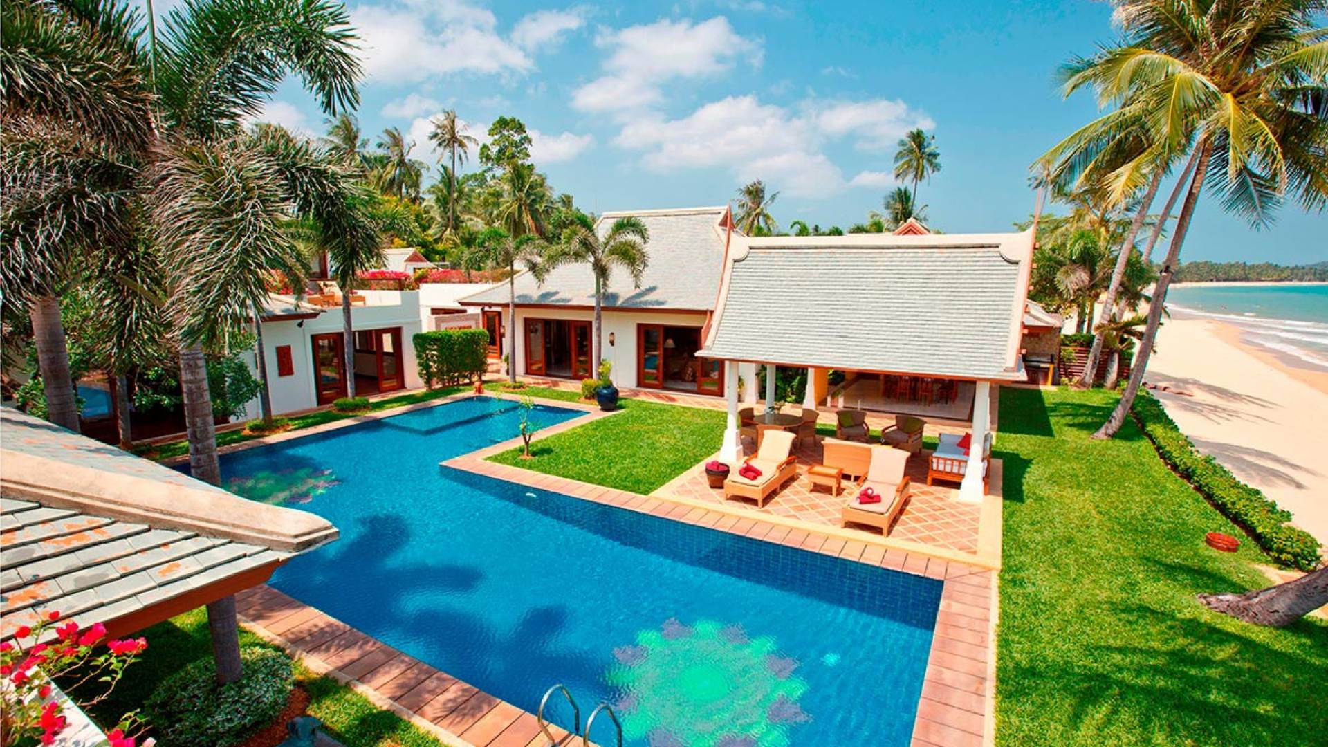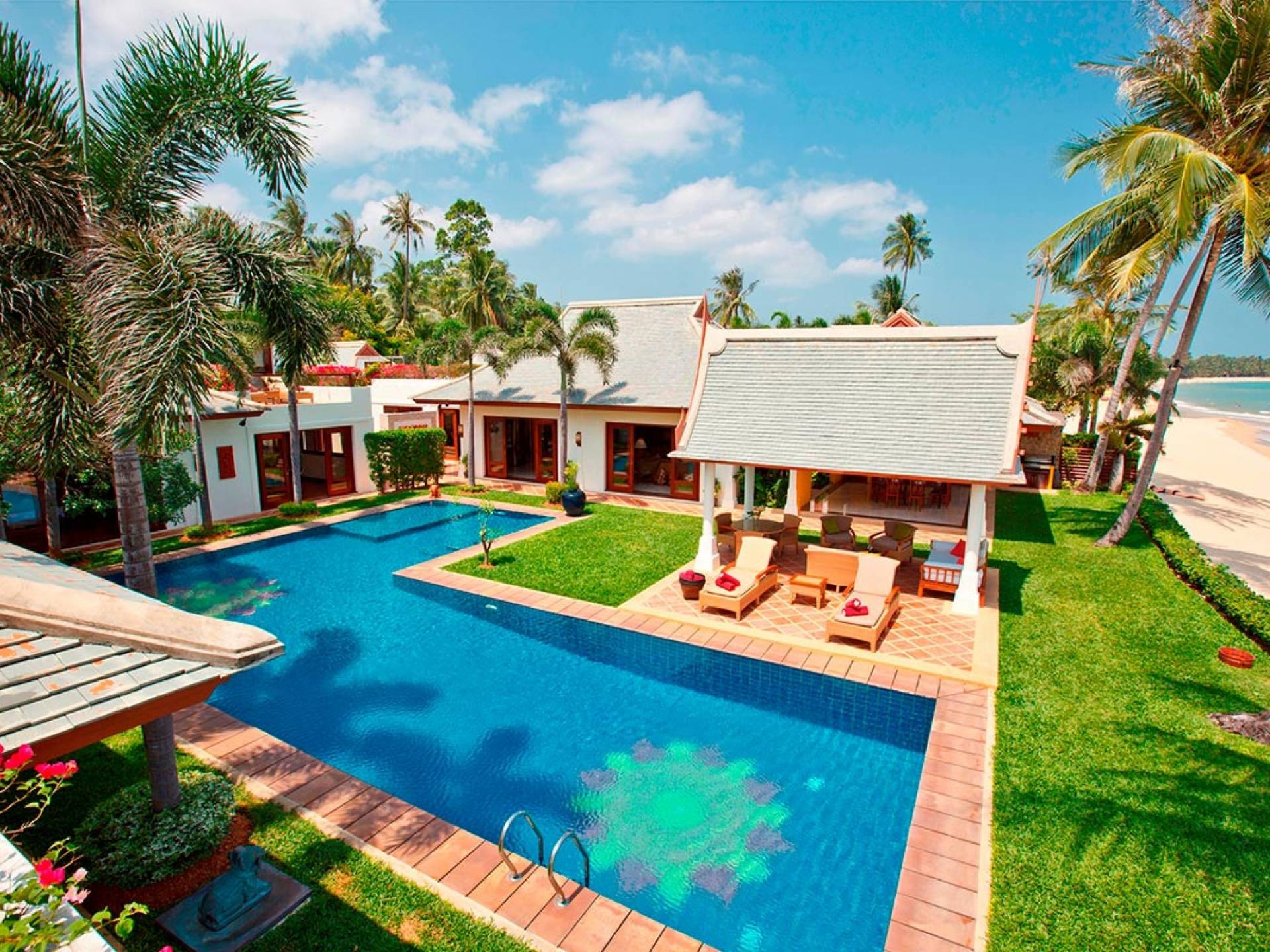 Miskawaan Villas Samui, что означает «Сад Будды», - это 11 роскошных вилл на берегу моря. 10 из них расположены с видом на потрясающие золотые пески Маенама, а один - на нетронутом пляже Банграк. Miskawaan Villas Samui - это идеальное место для отдыха босиком на роскошной вилле с друзьями, семьей или деловыми партнерами. Вилла Lotus в Miskawaan Villas Samui - это наша роскошная и величественная вилла с 6 спальнями на берегу моря и самая большая вилла в нашем поместье, где могут разместиться до 12 человек.