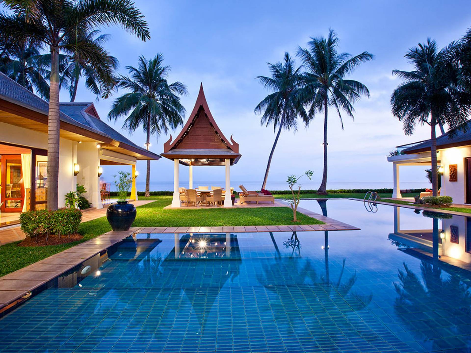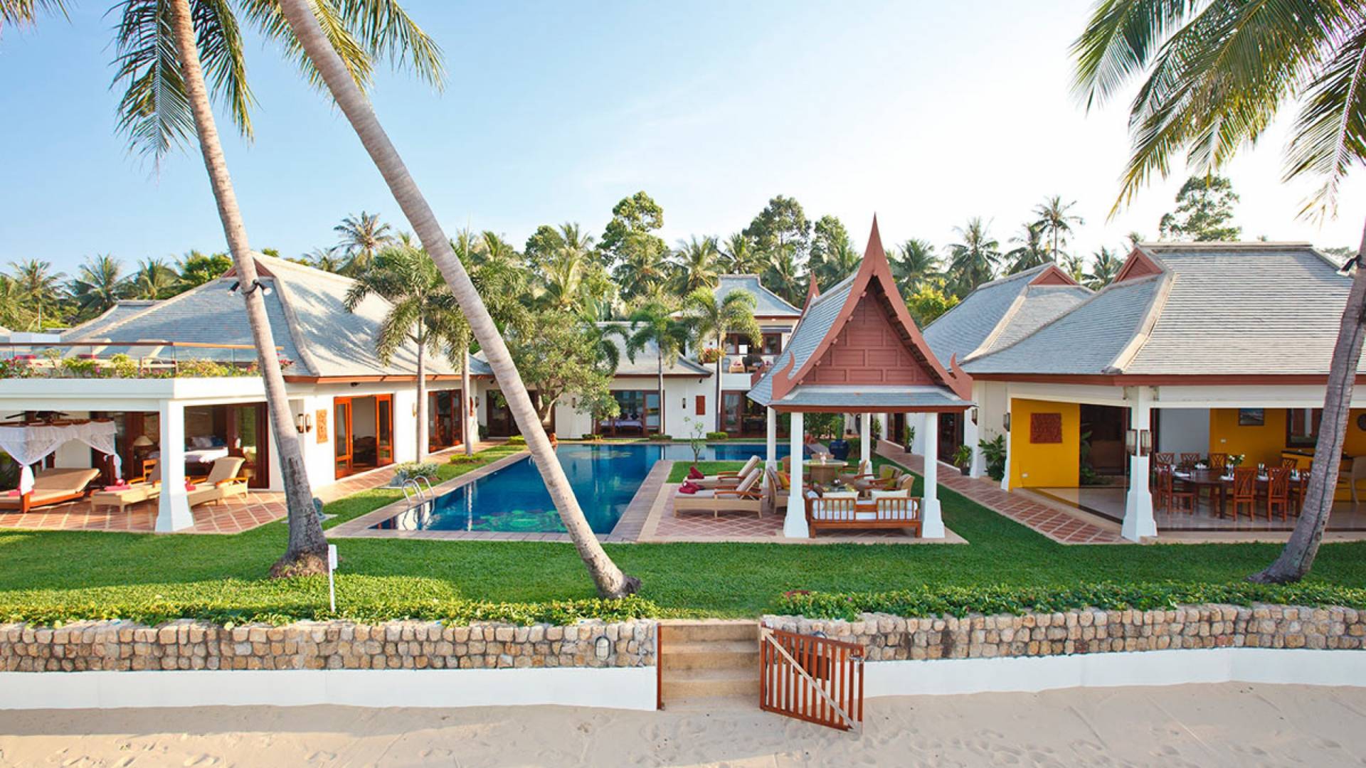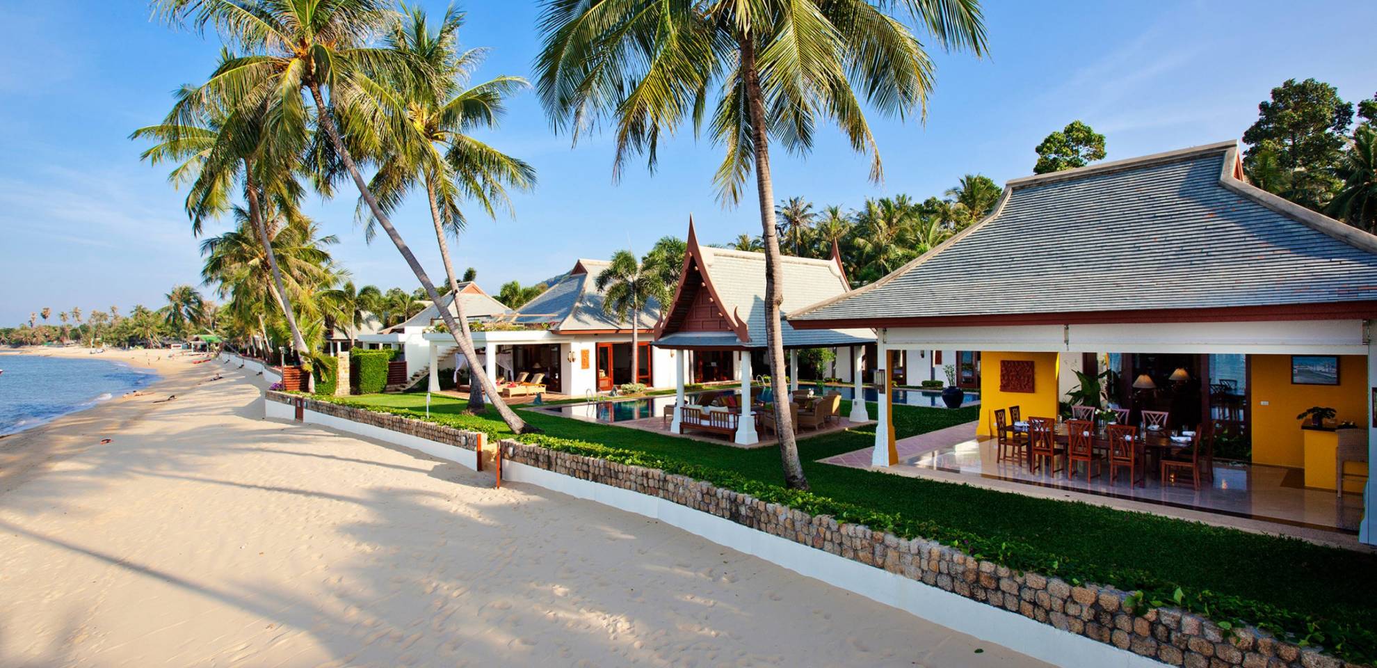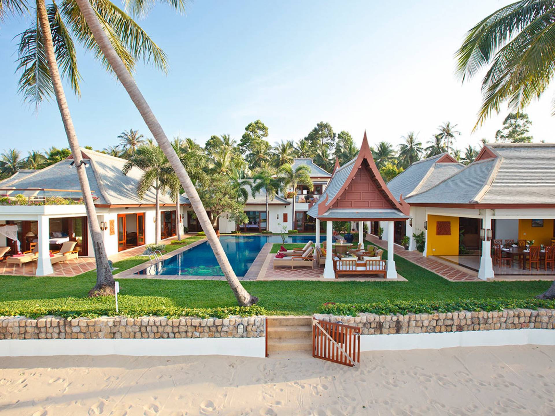 Miskawaan Villas Samui, что означает «Сад Будды», - это 11 роскошных вилл на берегу моря. 10 из них расположены с видом на потрясающие золотые пески Маенама, а один - на нетронутом пляже Банграк. Miskawaan Villas Samui - это идеальное место для отдыха босиком на роскошной вилле с друзьями, семьей или деловыми партнерами. Вилла Lotus в Miskawaan Villas Samui - это наша роскошная и величественная вилла с 6 спальнями на берегу моря и самая большая вилла в нашем поместье, где могут разместиться до 12 человек.
