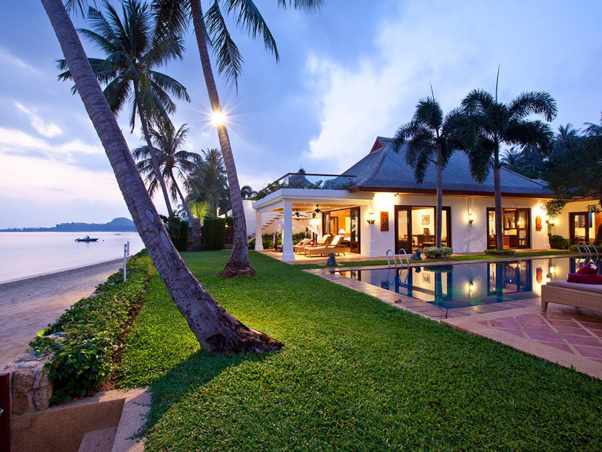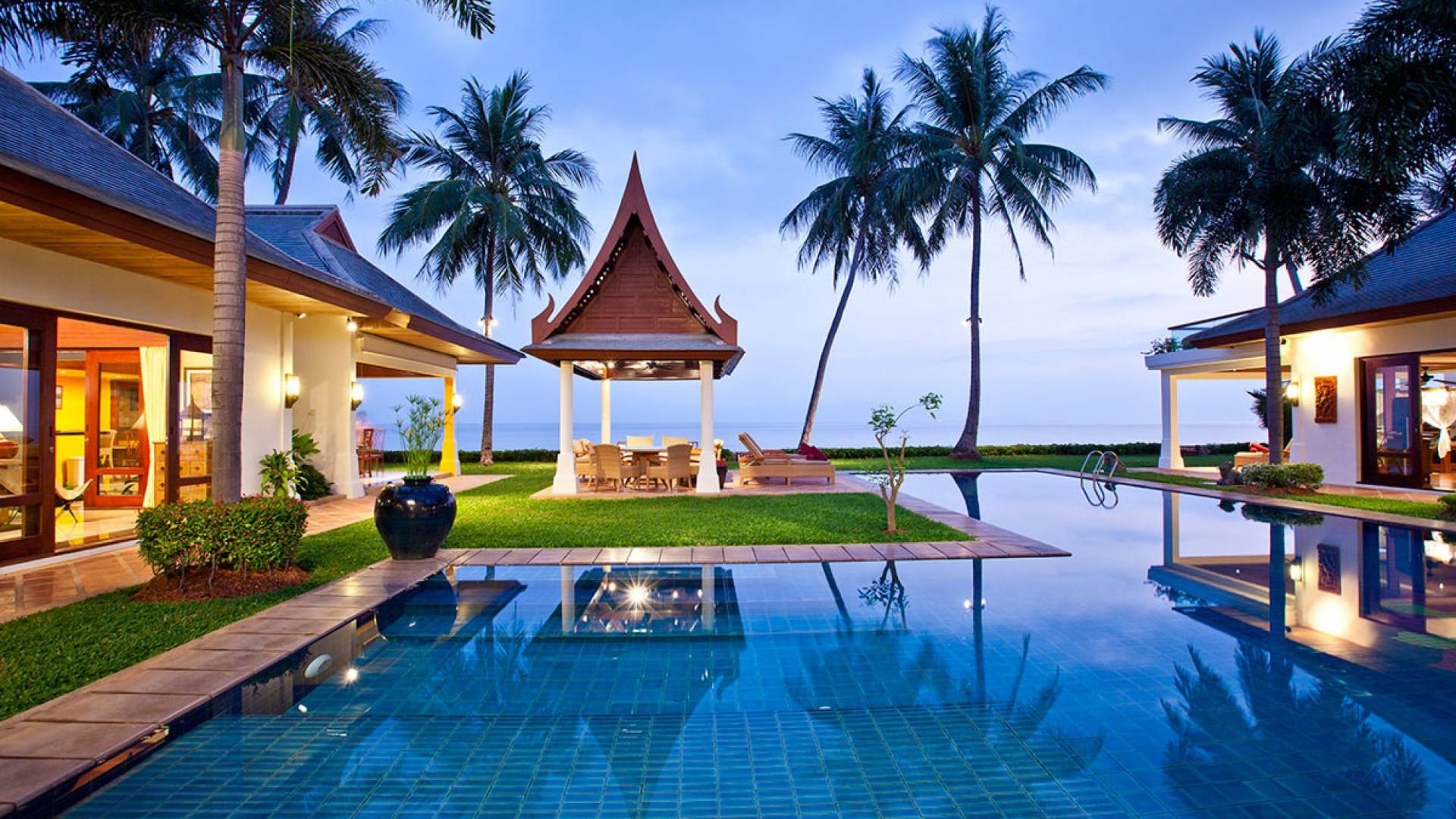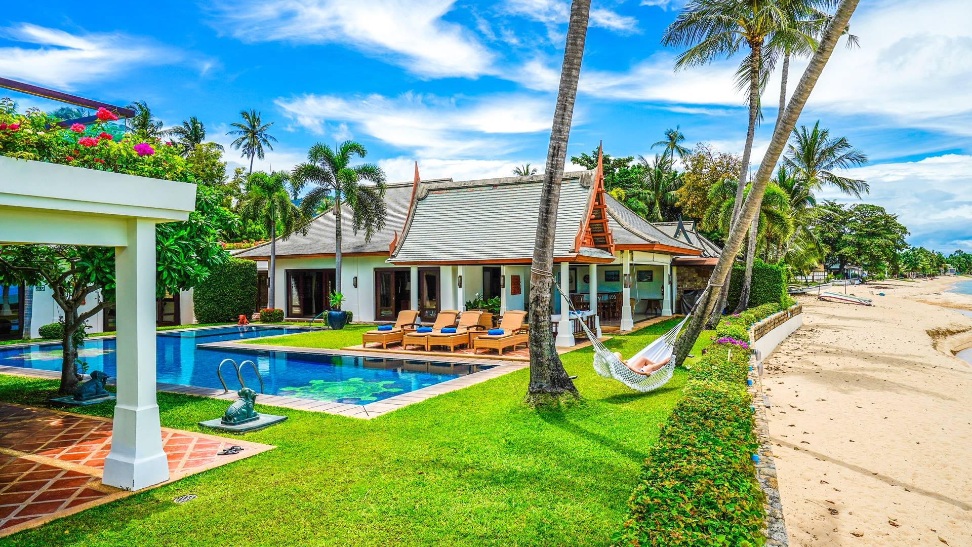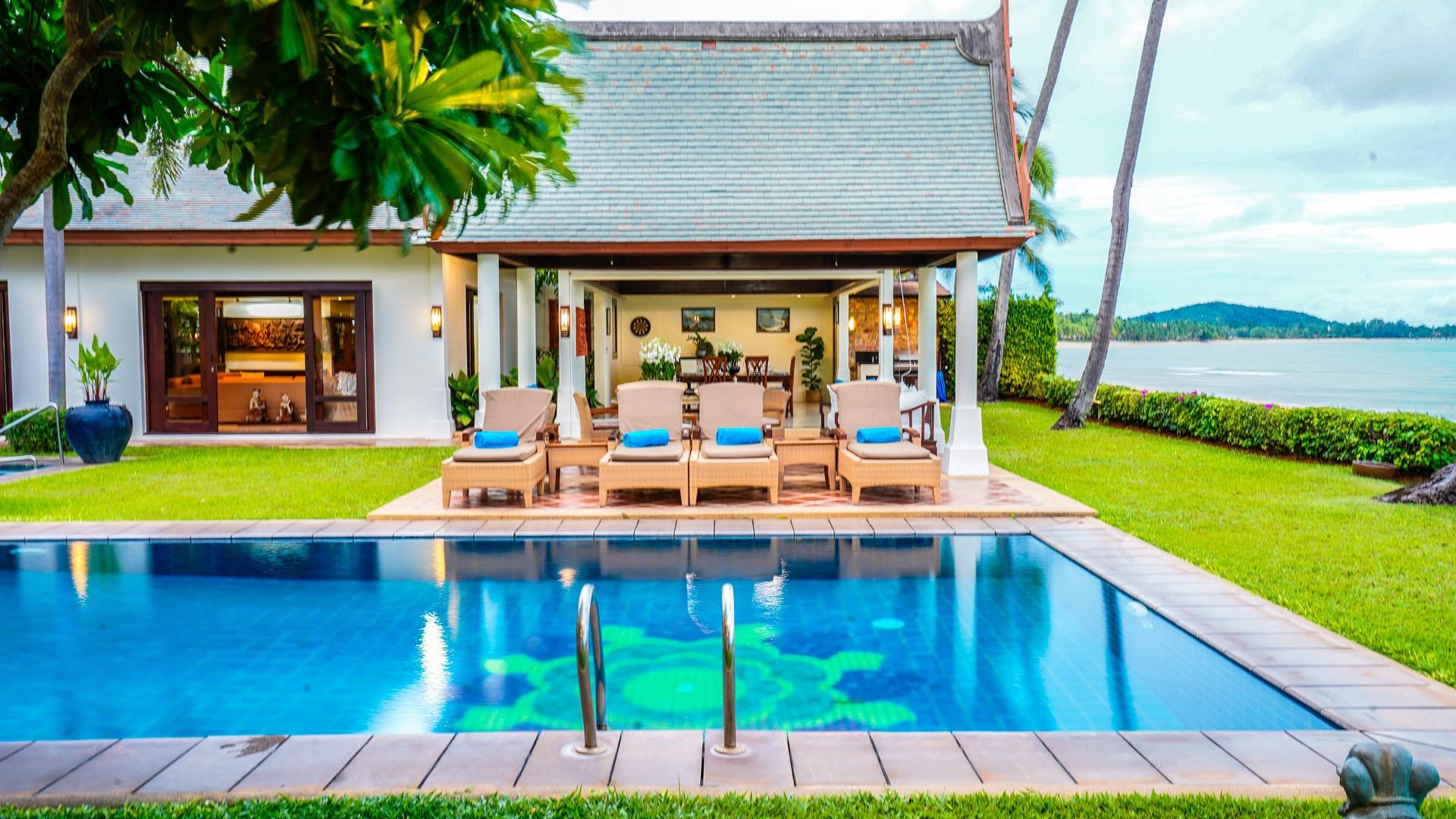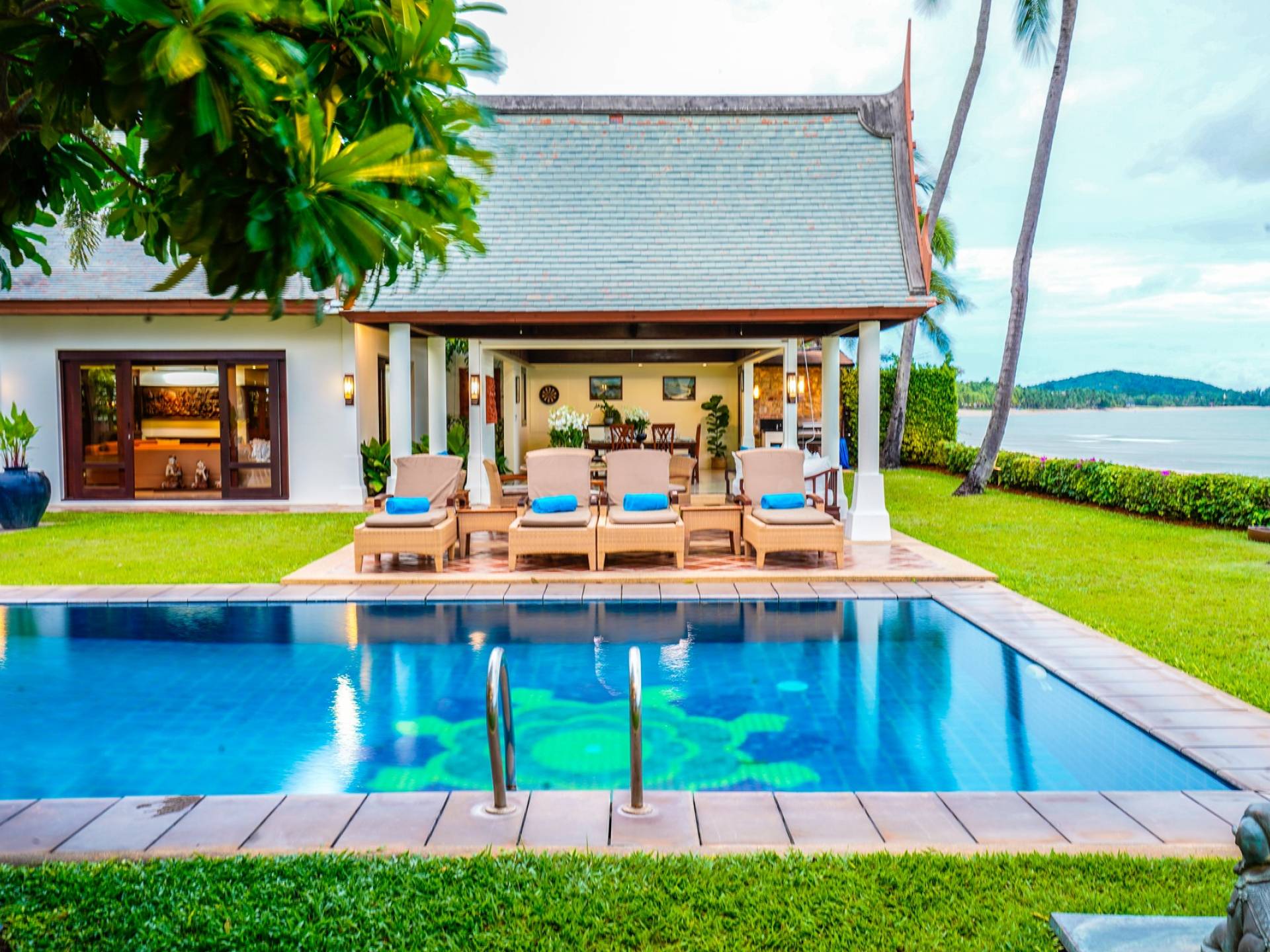 Miskawaan Villas Samui, что означает «Сад Будды», - это 11 роскошных вилл на берегу моря. 10 из них расположены с видом на потрясающие золотые пески Маенама, а один - на нетронутом пляже Банграк. Miskawaan Villas Samui - это идеальное место для отдыха босиком на роскошной вилле с друзьями, семьей или деловыми партнерами. Вилла Lotus в Miskawaan Villas Samui - это наша роскошная и величественная вилла с 6 спальнями на берегу моря и самая большая вилла в нашем поместье, где могут разместиться до 12 человек.