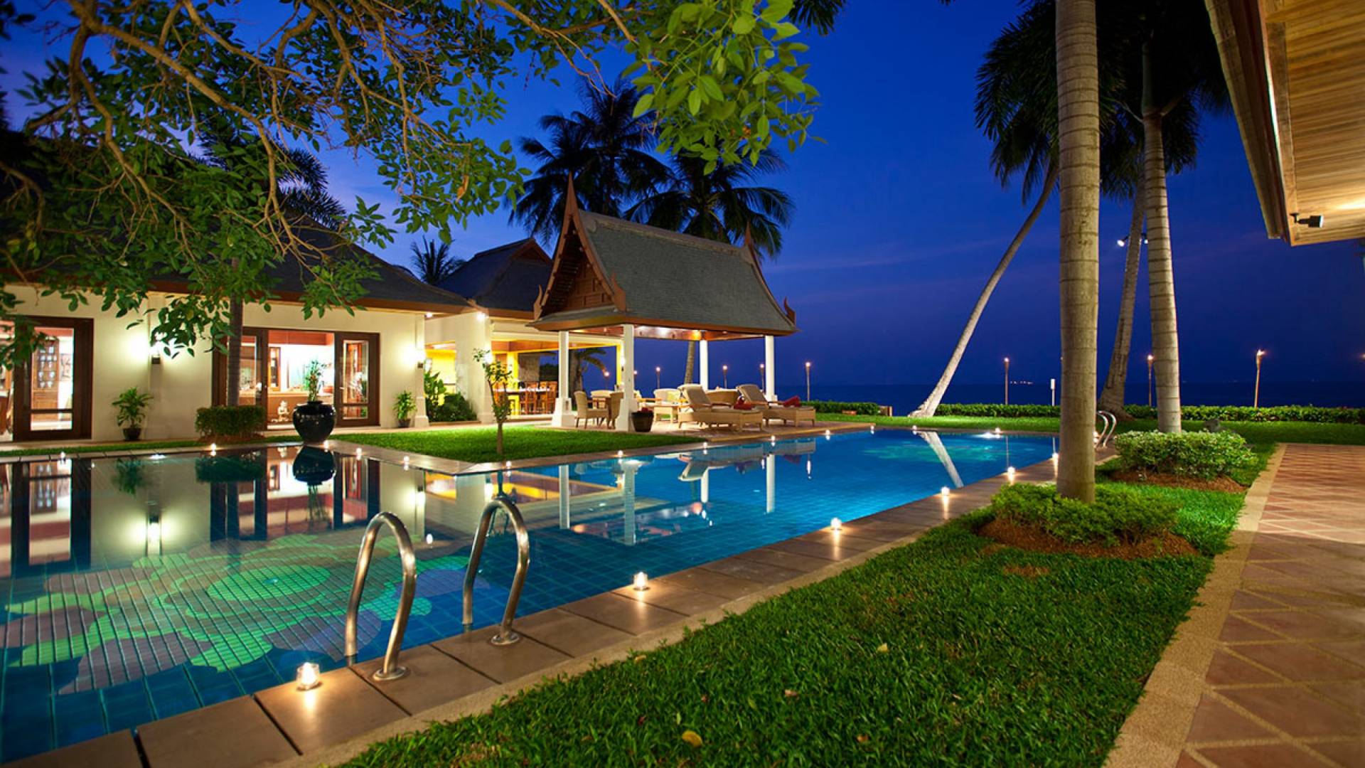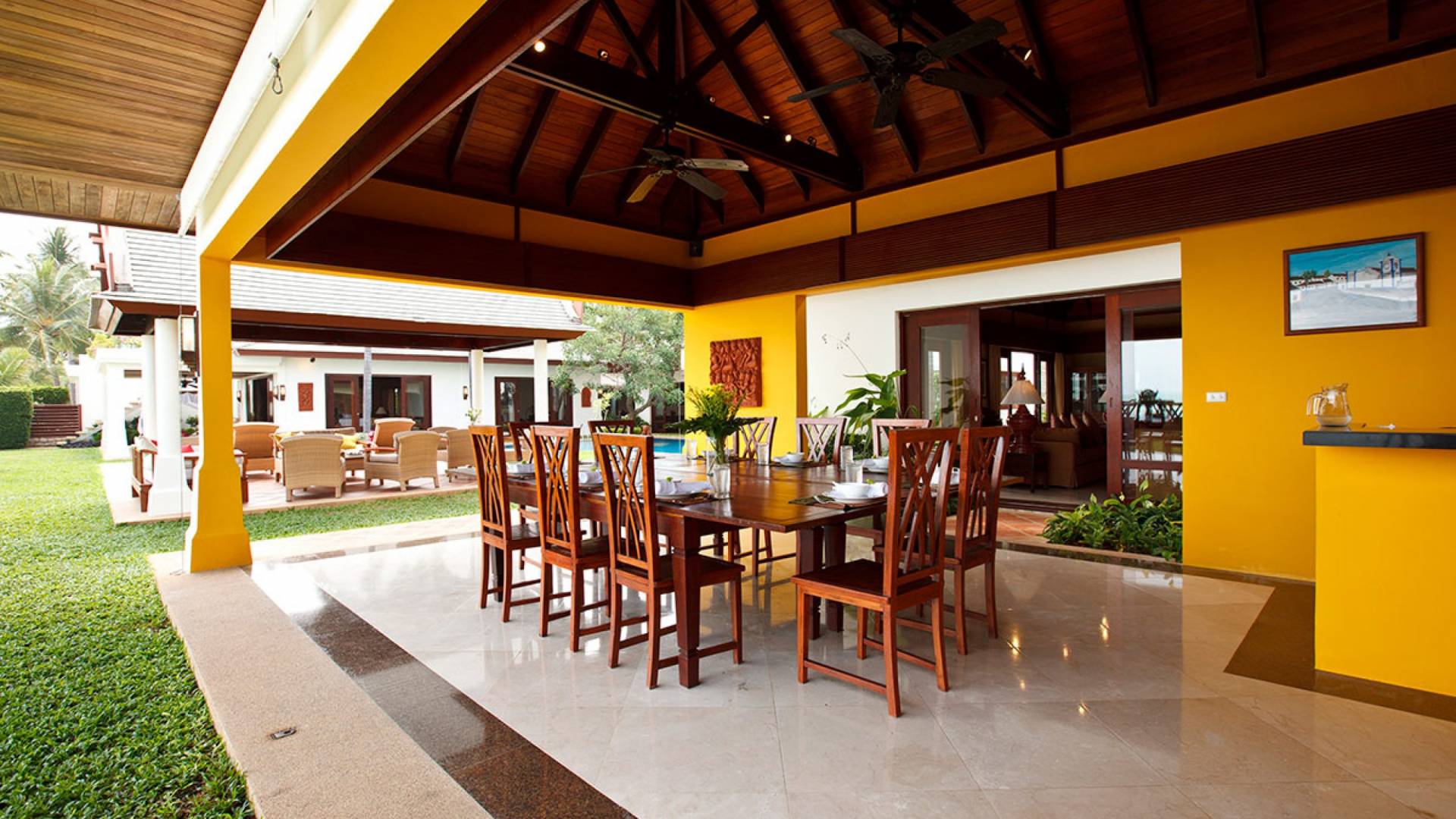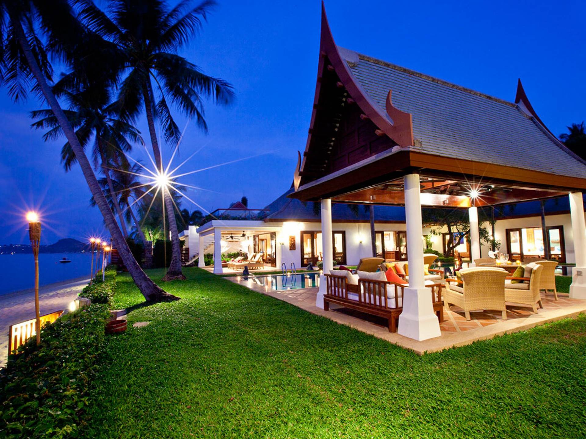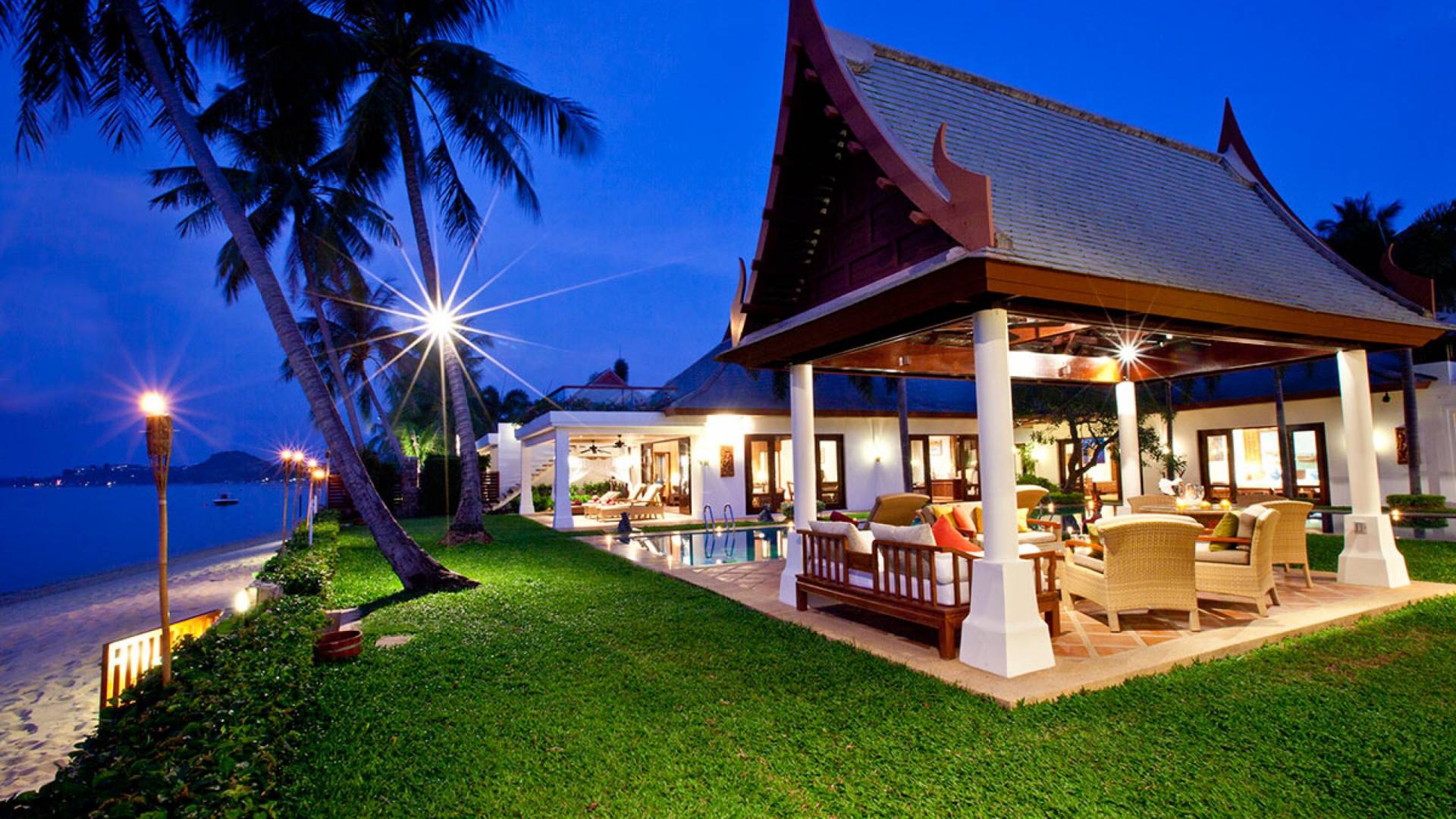 Miskawaan Villas Samui, что означает «Сад Будды», - это 11 роскошных вилл на берегу моря. 10 из них расположены с видом на потрясающие золотые пески Маенама, а один - на нетронутом пляже Банграк. Miskawaan Villas Samui - это идеальное место для отдыха босиком на роскошной вилле с друзьями, семьей или деловыми партнерами. Вилла Lotus в Miskawaan Villas Samui - это наша роскошная и величественная вилла с 6 спальнями на берегу моря и самая большая вилла в нашем поместье, где могут разместиться до 12 человек.