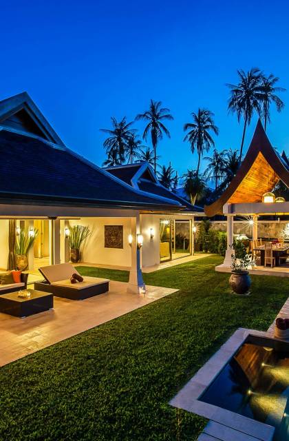 Miskawaan Villas Samui, что означает «Сад Будды», представляет собой 11 роскошных вилл на берегу моря. 10 номеров расположены с видом на потрясающие золотые пески Маенама, а один - на нетронутом пляже Банграк. Miskawaan Villas Samui - это идеальное место для отдыха босиком на роскошной вилле с друзьями, семьей или деловыми партнерами. Вилла Sila at Miskawaan Villas Samui - это роскошная вилла на берегу моря в аренду с 7 спальнями и частным бассейном, вмещающая до 14 человек.