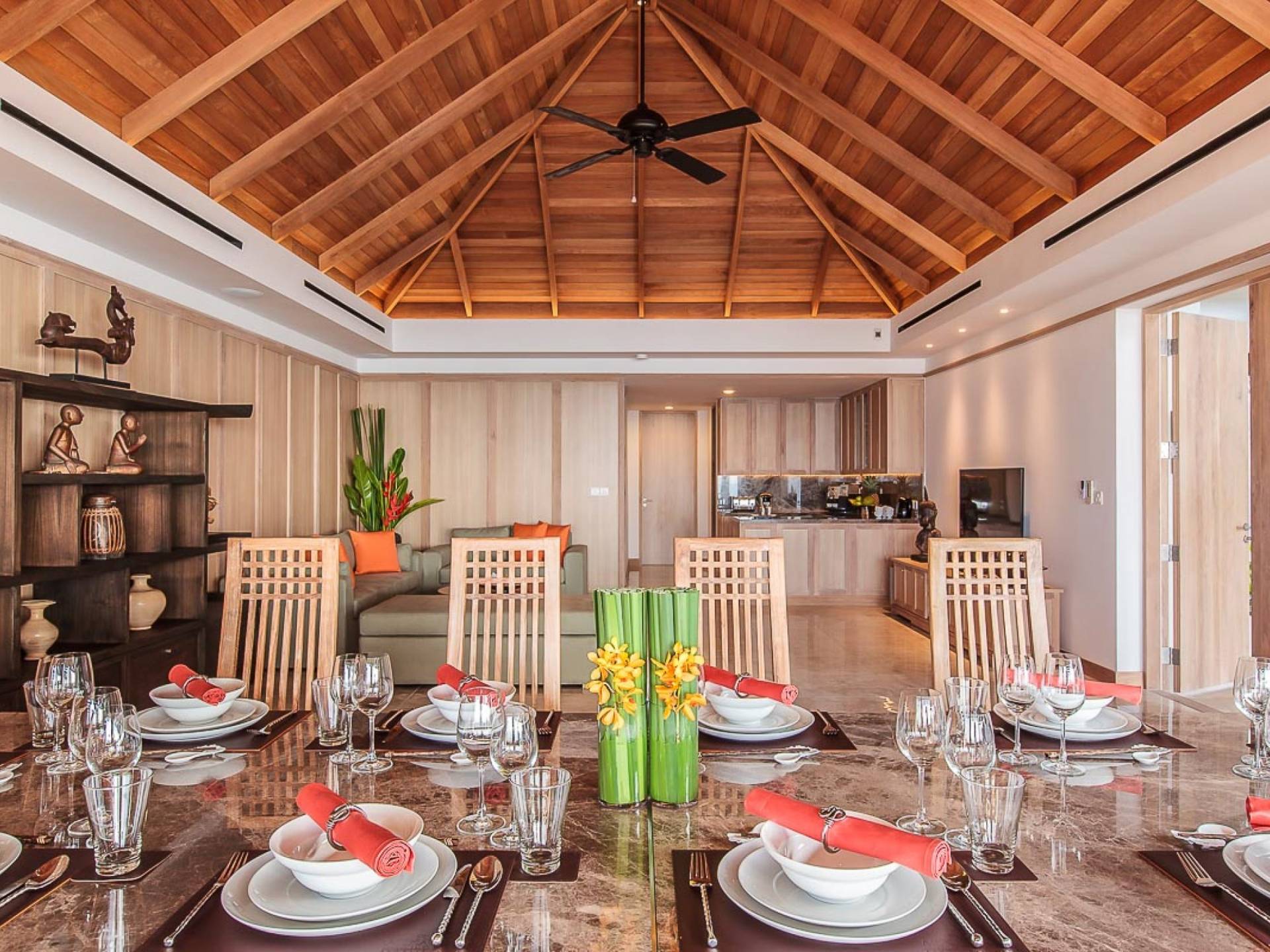 На вилле Sila at Miskawaan Villas Samui есть большой частный бассейн, гостиная, кухня, обеденная зона в помещении и обеденная зона на открытом воздухе с тайской сала. О, и не забывая о двух личных менеджерах виллы, поварах и горничных! На верхнем этаже вы можете пользоваться тренажерным залом и сауной. Это общая территория с нашей соседней виллой Wayu.