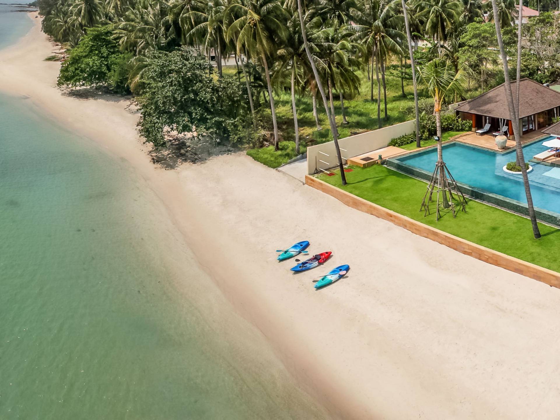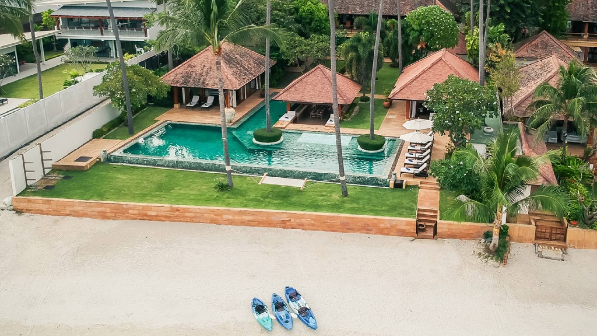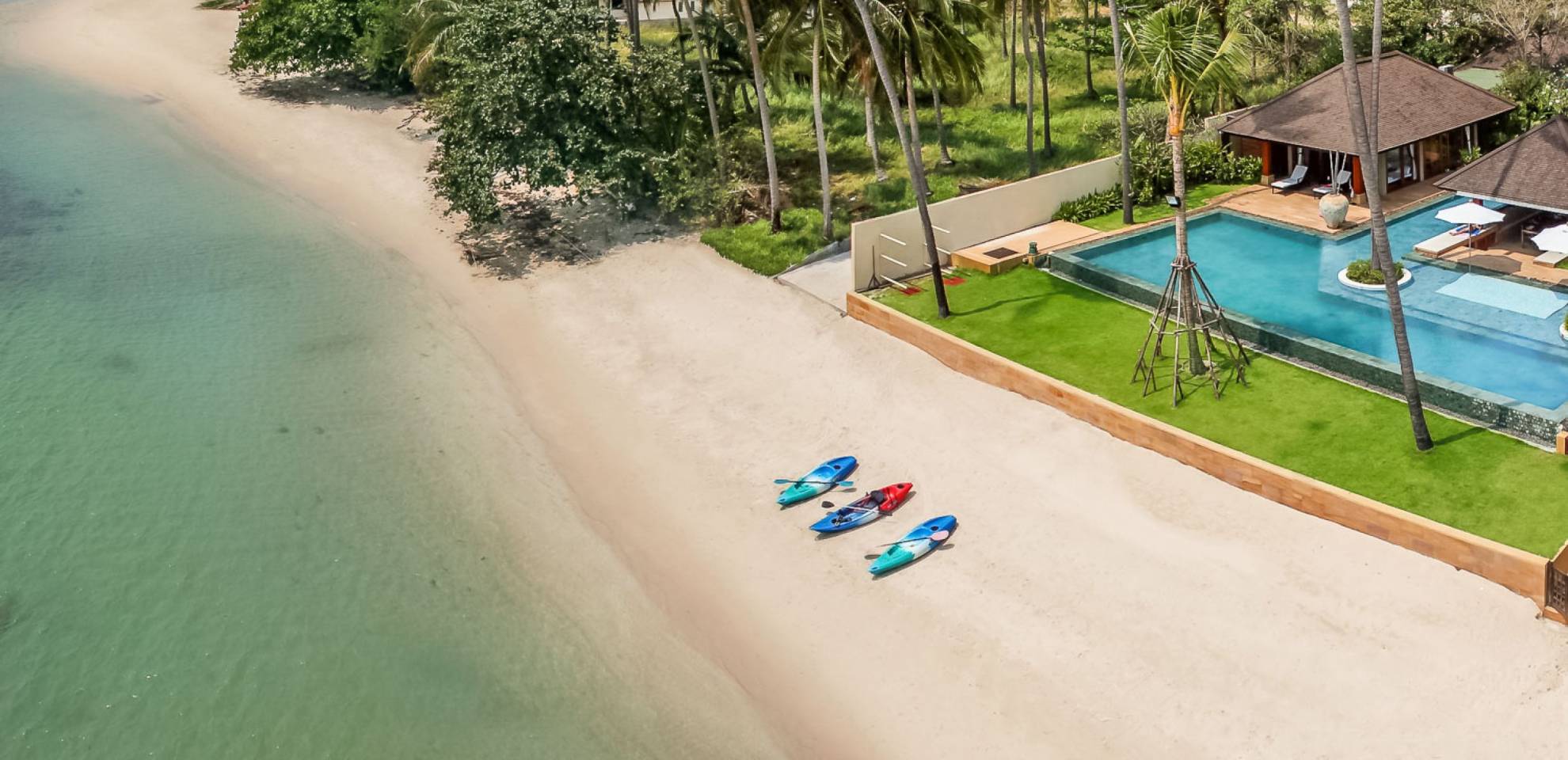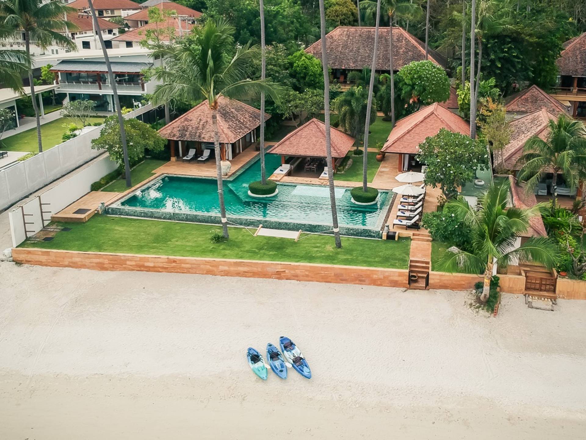 В этом дальнем конце отеля манят золотые пески тихого пляжа Лаем Сор. Это дополняется большим бассейном дома, который находится прямо над пляжем, с уникальными инкрустированными скамейками для загара, обеденным павильоном на открытом воздухе, а также кухней для барбекю для теплых вечеров на Самуи.