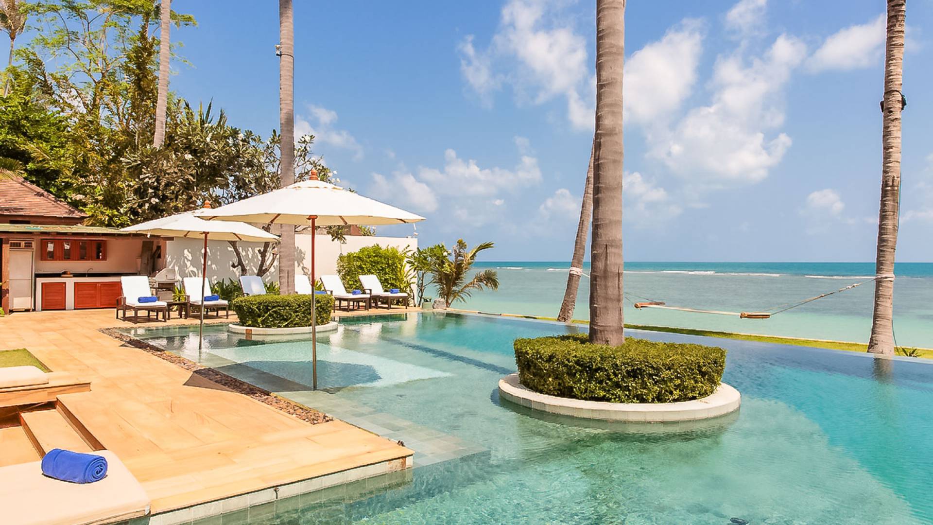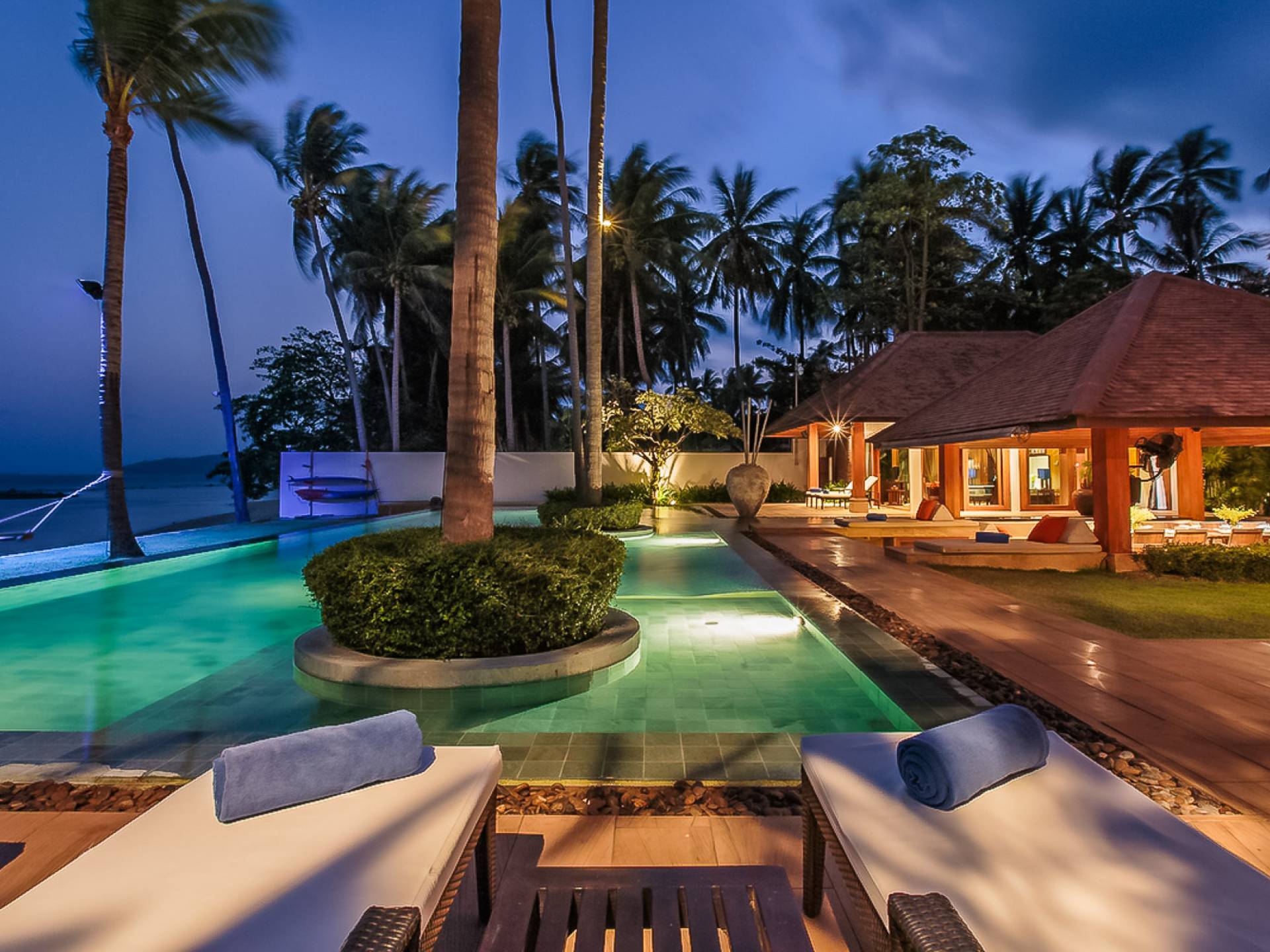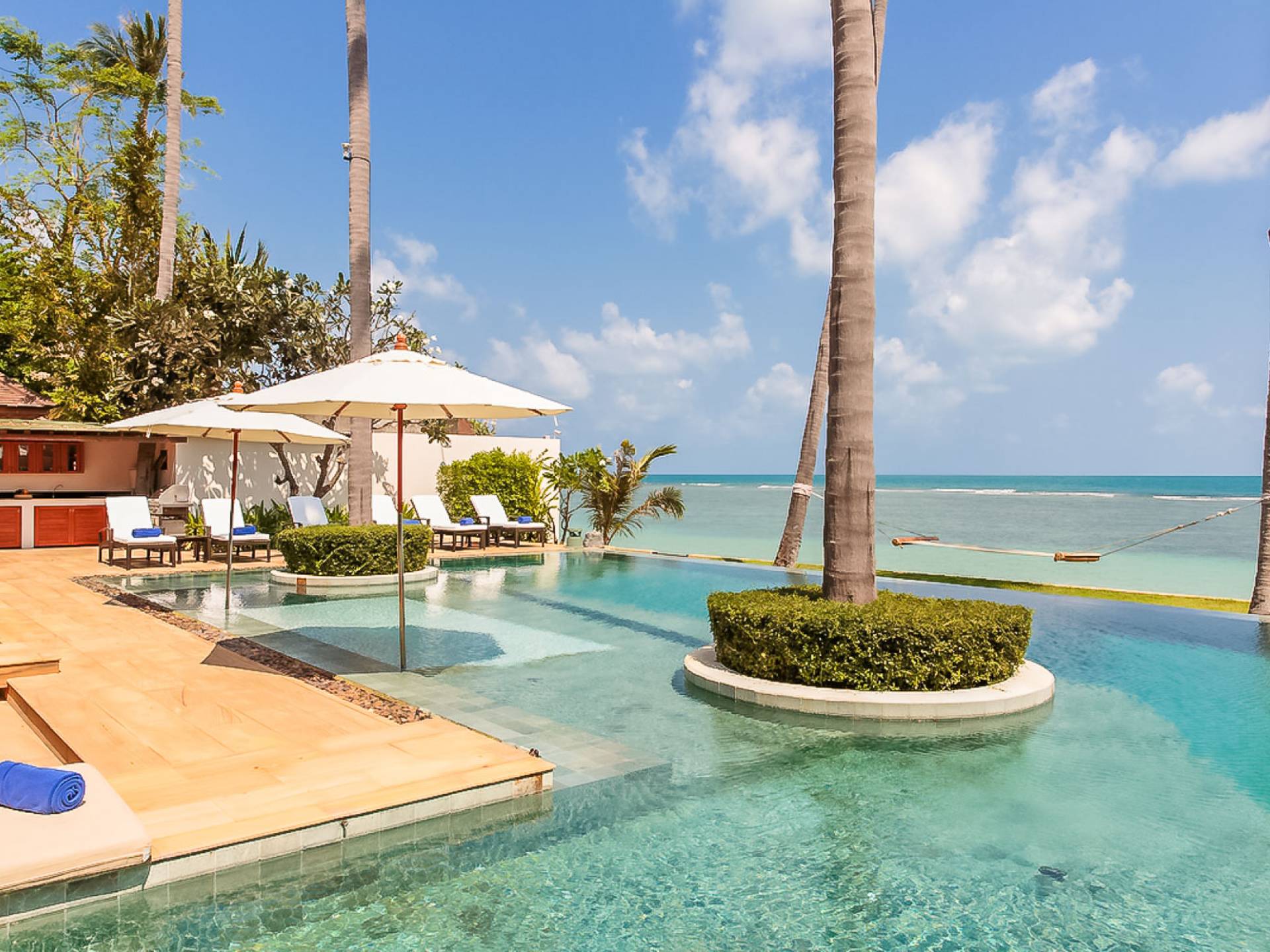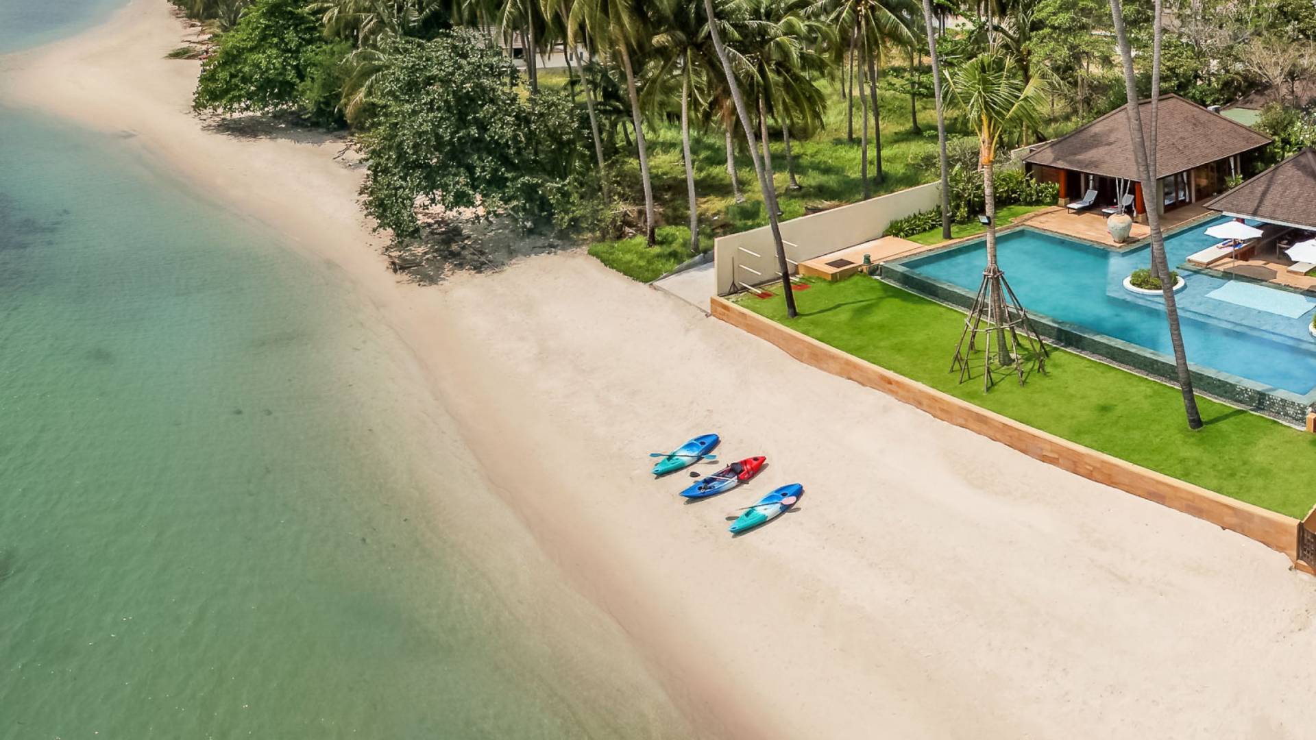 В этом дальнем конце отеля манят золотые пески тихого пляжа Лаем Сор. Это дополняется большим бассейном дома, который находится прямо над пляжем, с уникальными инкрустированными скамейками для загара, обеденным павильоном на открытом воздухе, а также кухней для барбекю для теплых вечеров на Самуи.