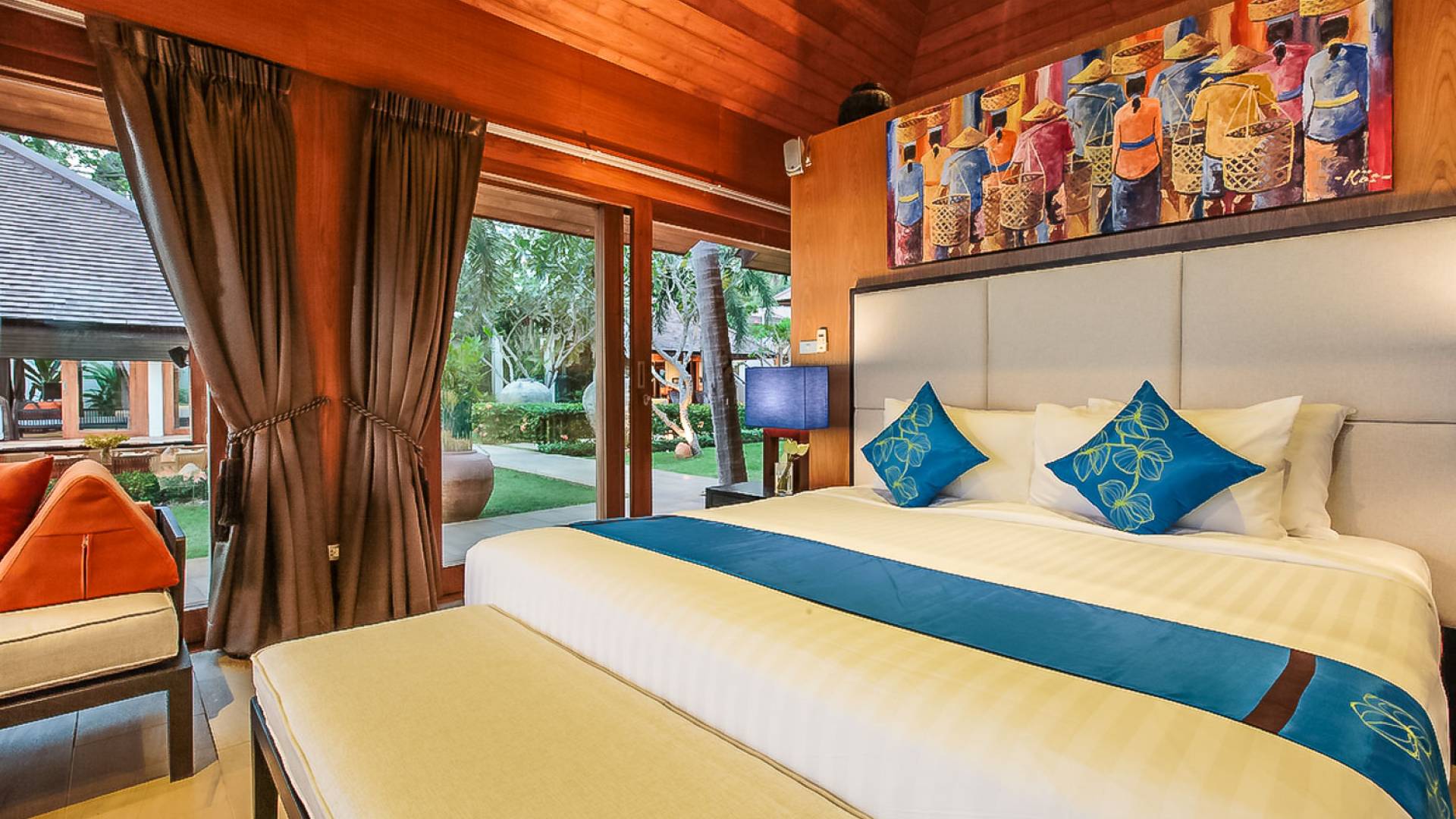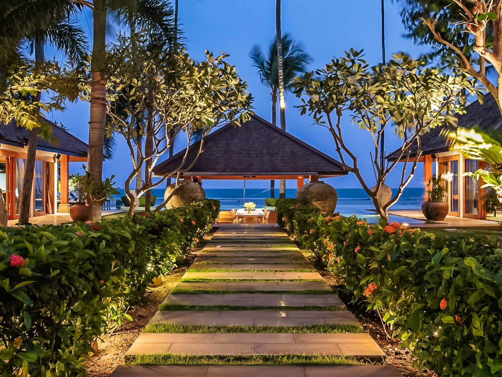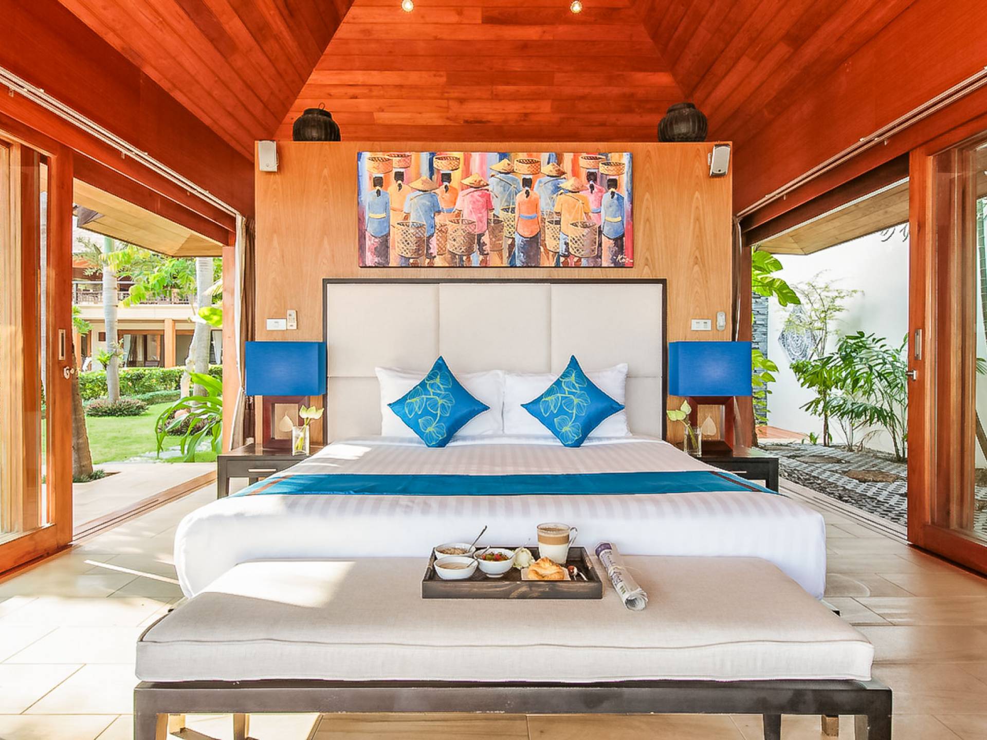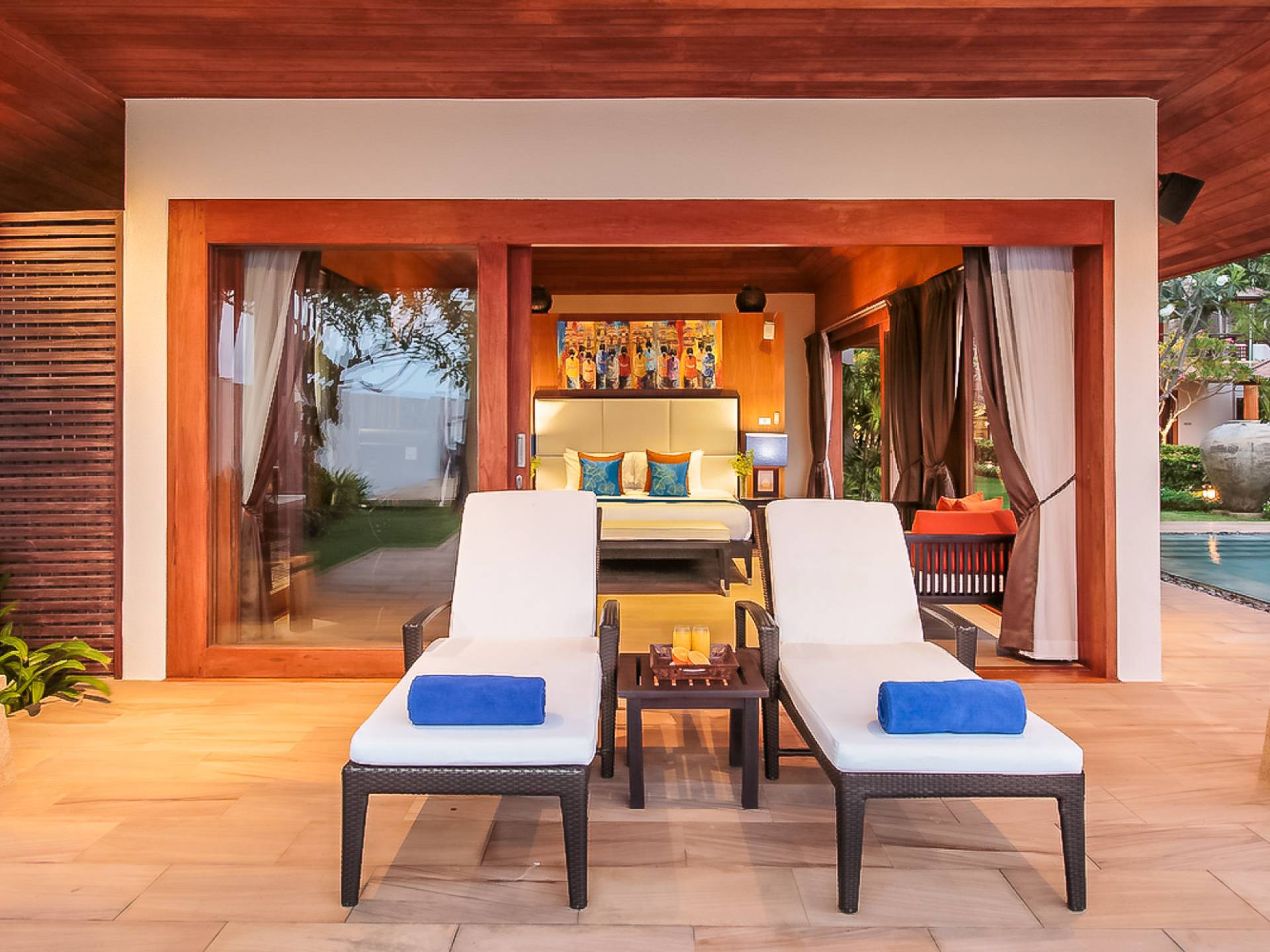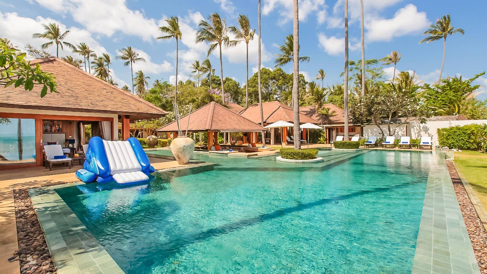 Войдя на территорию виллы, вы попадете в резиденцию над тихим ступенчатым прудом, наполненным рыбой кой, и с потрясающим видом на сверкающий вдалеке океан. Главный вход на виллу ведет прямо в просторный интерьер совмещенной гостиной / столовой / кухни. Этот грандиозный номер, расположенный на втором уровне главного дома, создает непринужденную атмосферу благодаря использованию пространства, дизайну открытой планировки и потрясающему виду, которым можно любоваться со всех сторон благодаря дополнительному использованию окон во всю длину. простор здания. В этой зоне находятся огромная кухня для гурманов, обеденный стол на 12 человек, пригодный для застолья, а также гостиная / развлекательная зона, оформленная в современном тайском стиле и являющаяся одним из главных украшений этого отеля; ультрасовременная аудио / визуальная система, оснащенная плазменным телевизором и технологией объемного звука, которая подключена к каждой части дома (внутри и снаружи), так что ваши любимые мелодии можно будет слушать, где бы вы ни находились!