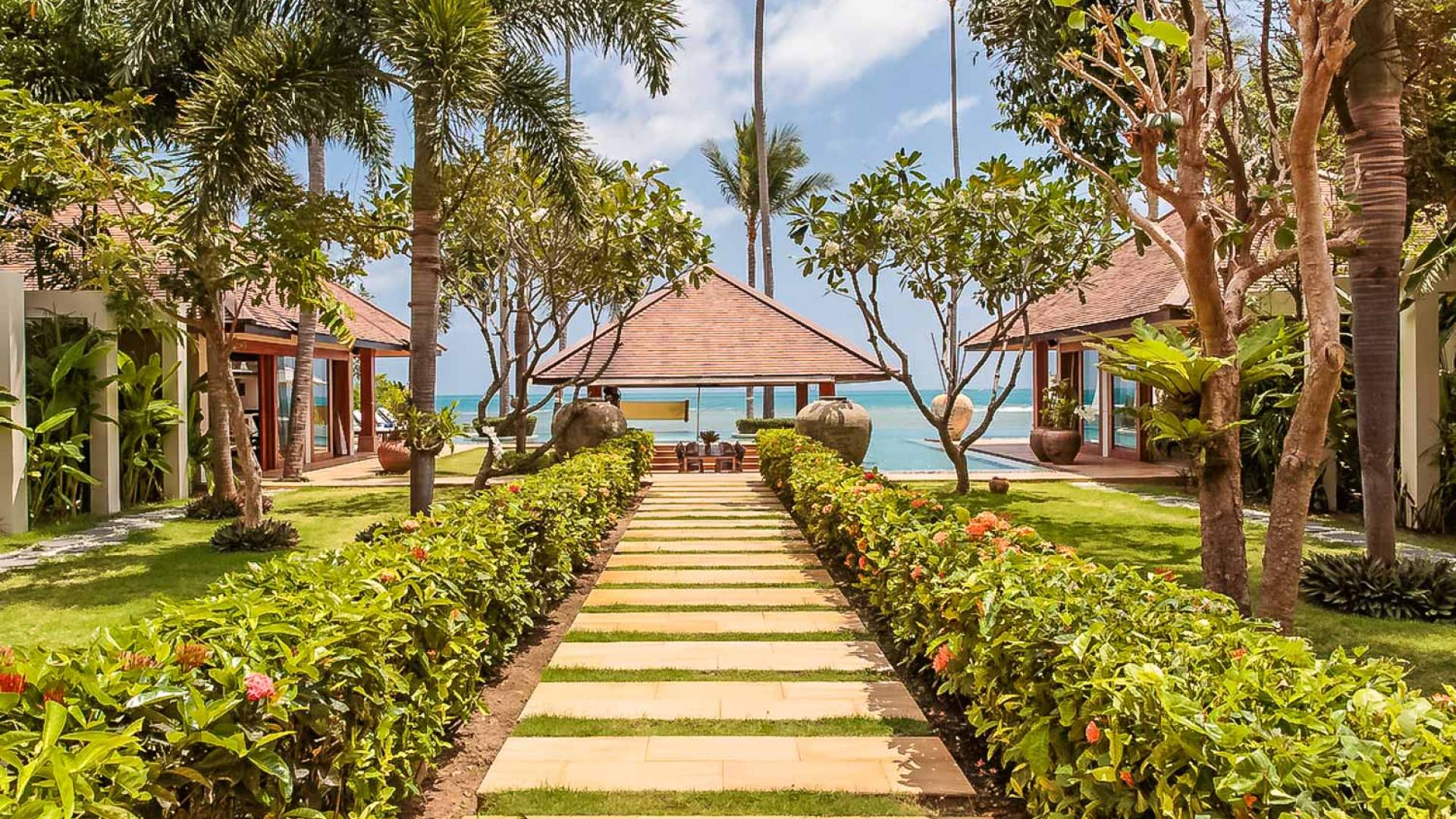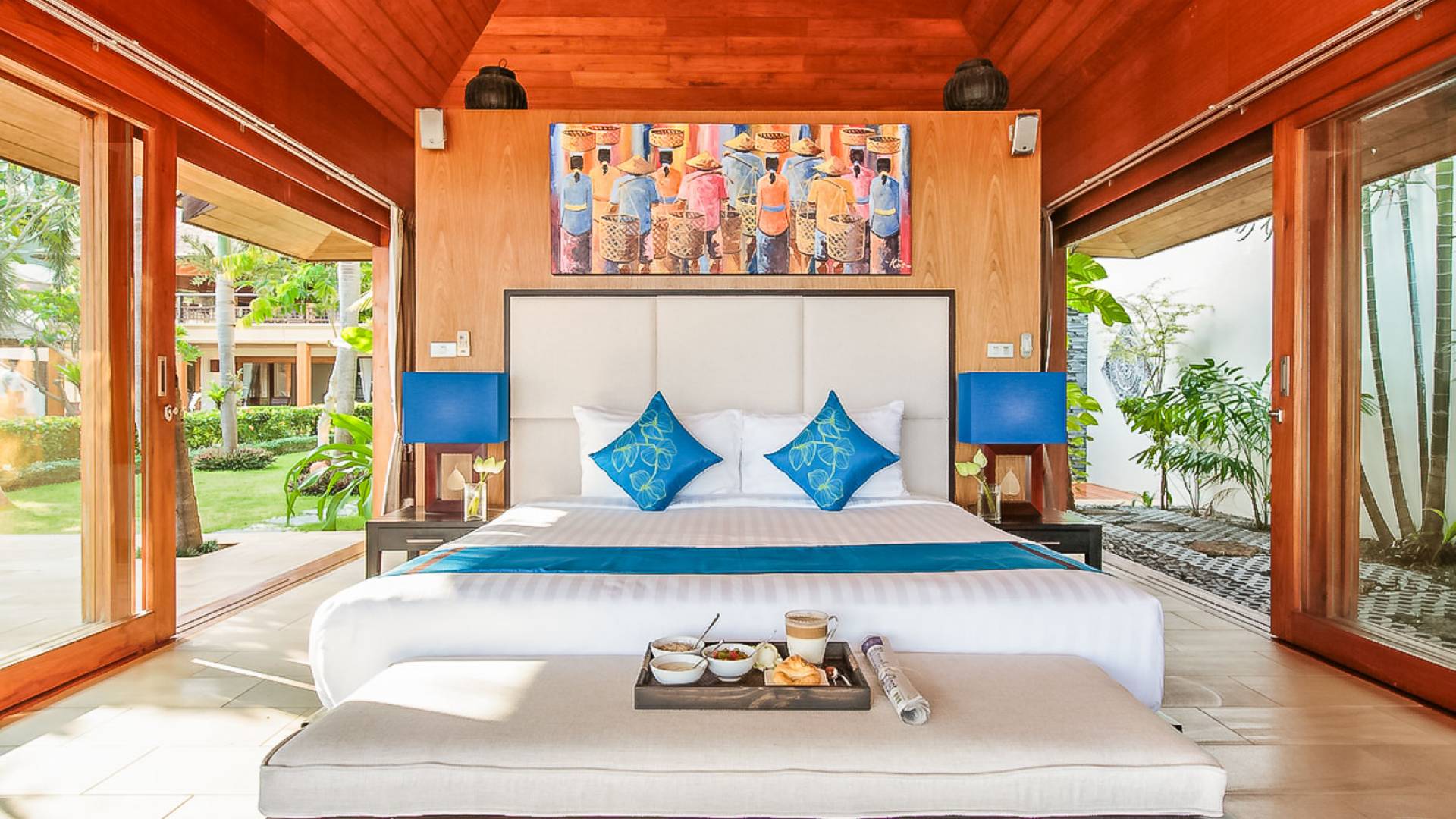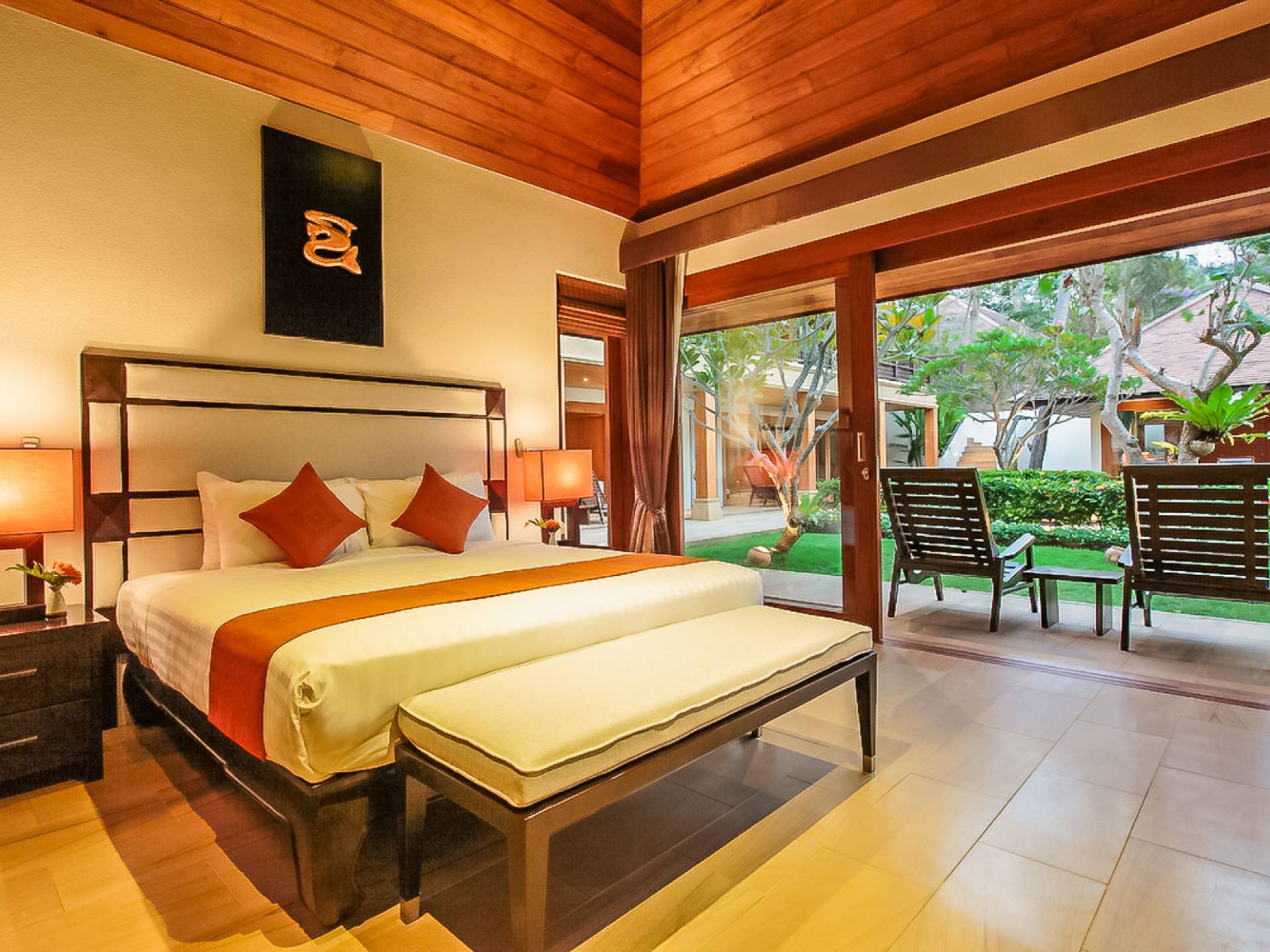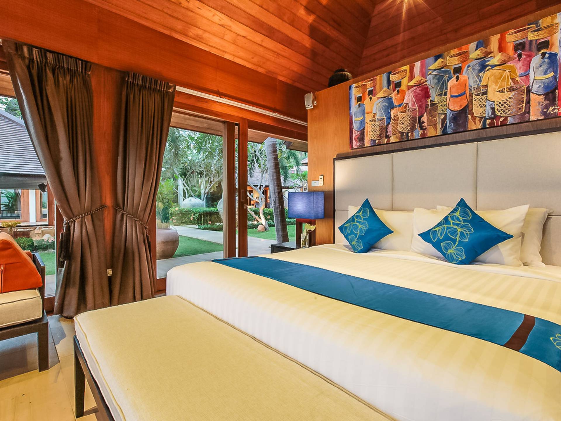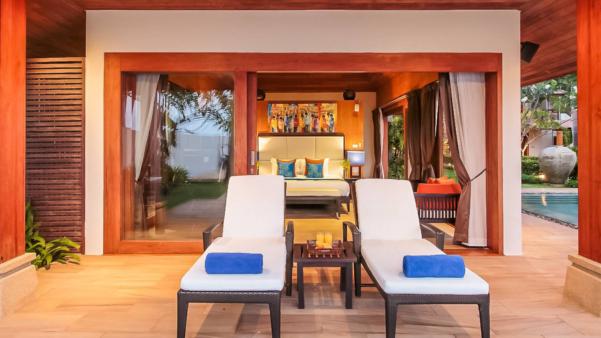 Войдя на территорию виллы, вы попадете в резиденцию над тихим ступенчатым прудом, наполненным рыбой кой, и с потрясающим видом на сверкающий вдалеке океан. Главный вход на виллу ведет прямо в просторный интерьер совмещенной гостиной / столовой / кухни. Этот грандиозный номер, расположенный на втором уровне главного дома, создает непринужденную атмосферу благодаря использованию пространства, дизайну открытой планировки и потрясающему виду, которым можно любоваться со всех сторон благодаря дополнительному использованию окон во всю длину. простор здания. В этой зоне находятся огромная кухня для гурманов, обеденный стол на 12 человек, пригодный для застолья, а также гостиная / развлекательная зона, оформленная в современном тайском стиле и являющаяся одним из главных украшений этого отеля; ультрасовременная аудио / визуальная система, оснащенная плазменным телевизором и технологией объемного звука, которая подключена к каждой части дома (внутри и снаружи), так что ваши любимые мелодии можно будет слушать, где бы вы ни находились!