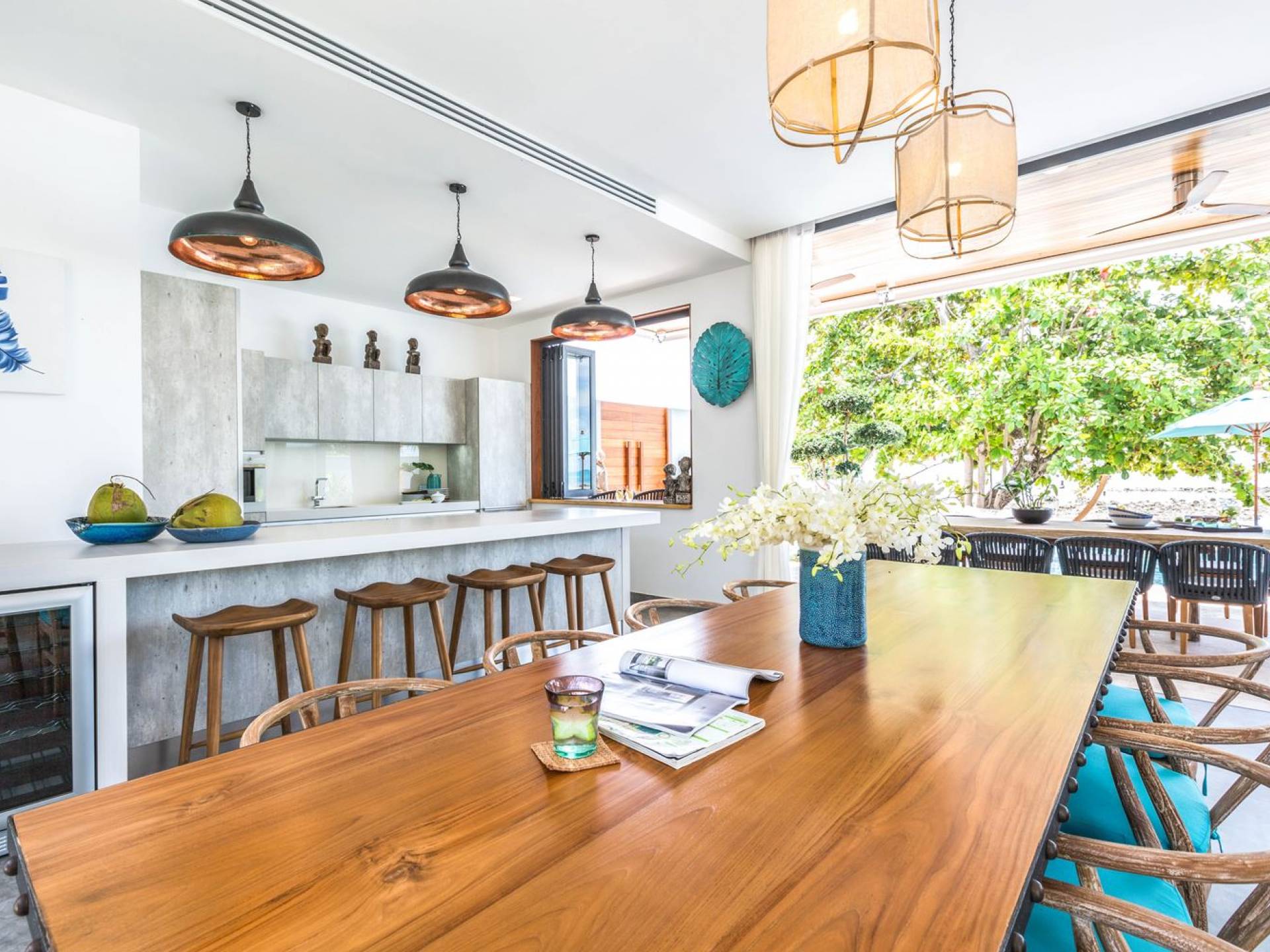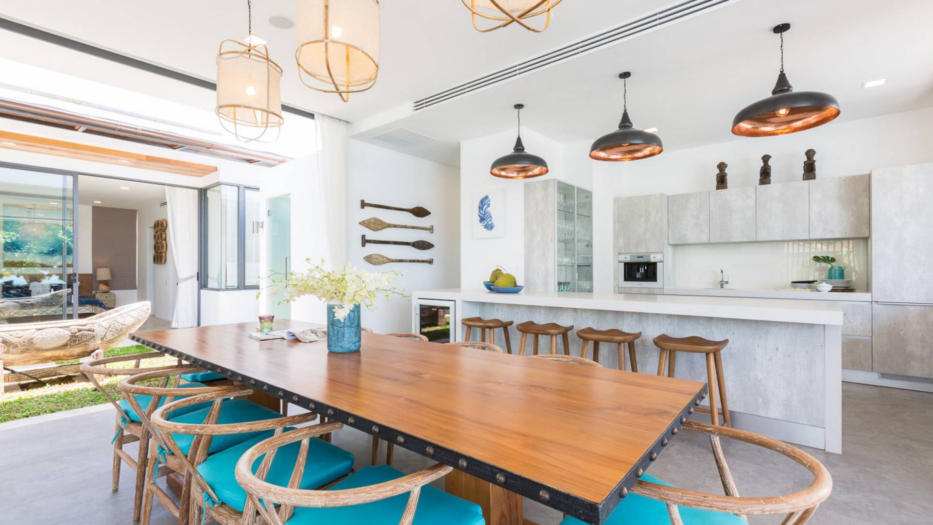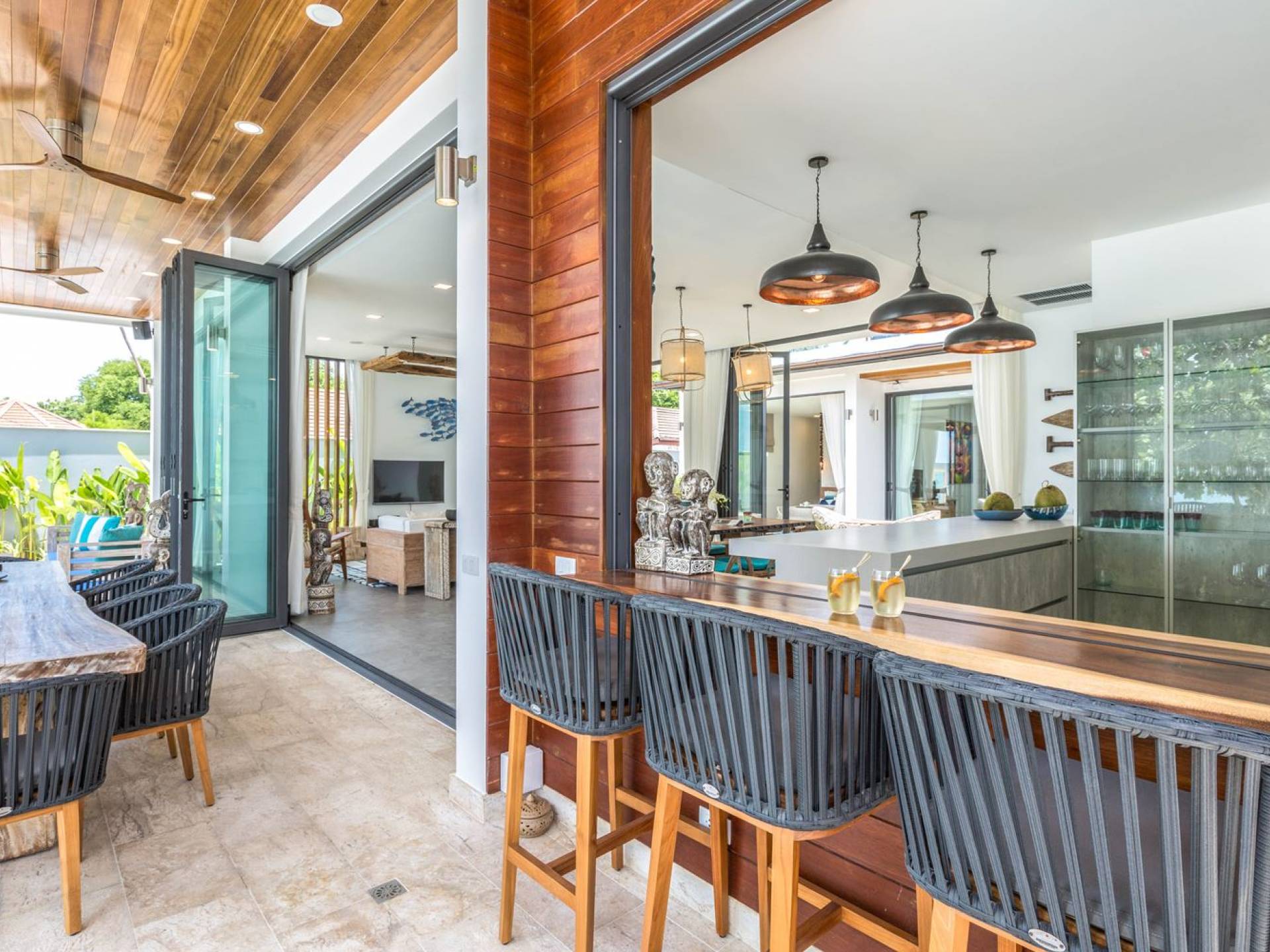 Напротив двора расположены гостиная и столовая открытой планировки. В обеденном зале с комфортом могут разместиться 12 человек. Чтобы перекусить в течение дня или приготовить любимые блюда ребенка, встроенная кухня виллы Suma, изготовленная по индивидуальному заказу, оснащена всеми необходимыми кухонными принадлежностями и техникой. От восхитительных тайских блюд до барбекю из морепродуктов, пасты и салатов, опытный тайский шеф-повар приготовит аппетитные блюда, которые удовлетворят самые привередливые вкусы. Шесть спален с ванными комнатами на вилле Suma обеспечивают максимальное уединение, пространство и вид на море. Во всех светлых, светлых и просторных спальнях есть кровати размера "king-size" и свежее постельное белье из египетского хлопка. Высокие потолки и четкие современные линии с шикарной мебелью и современной сантехникой создают спокойную и домашнюю атмосферу. На втором этаже есть отдельная детская двухъярусная комната со смежными дверями, ведущими в одну из спален для взрослых, чтобы дети были в пределах легкой досягаемости.
