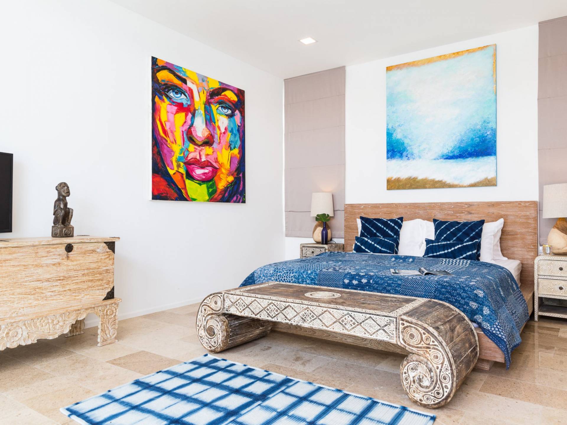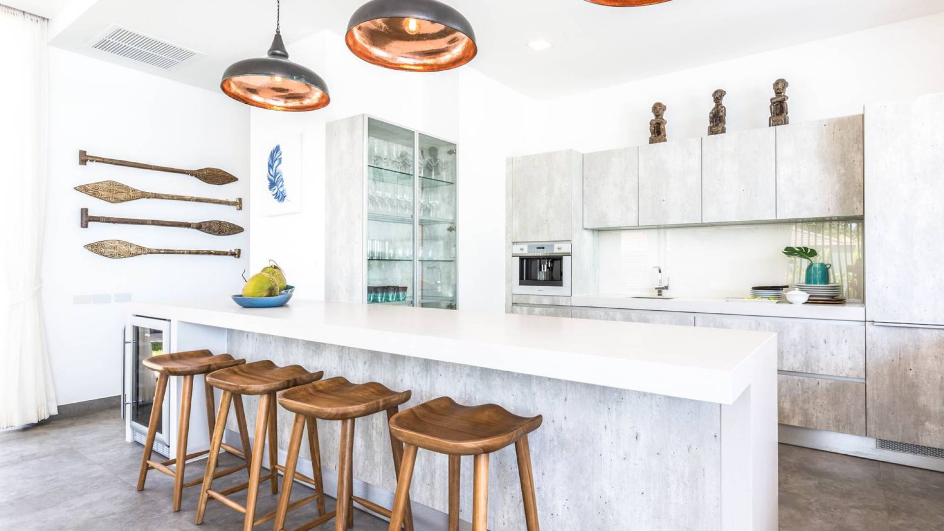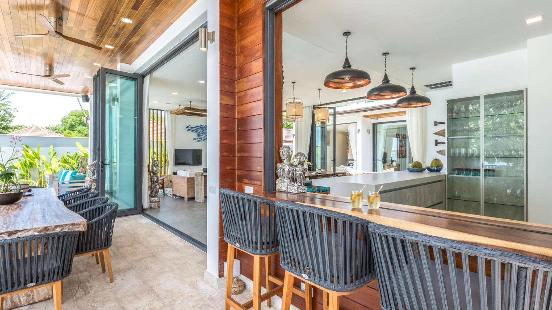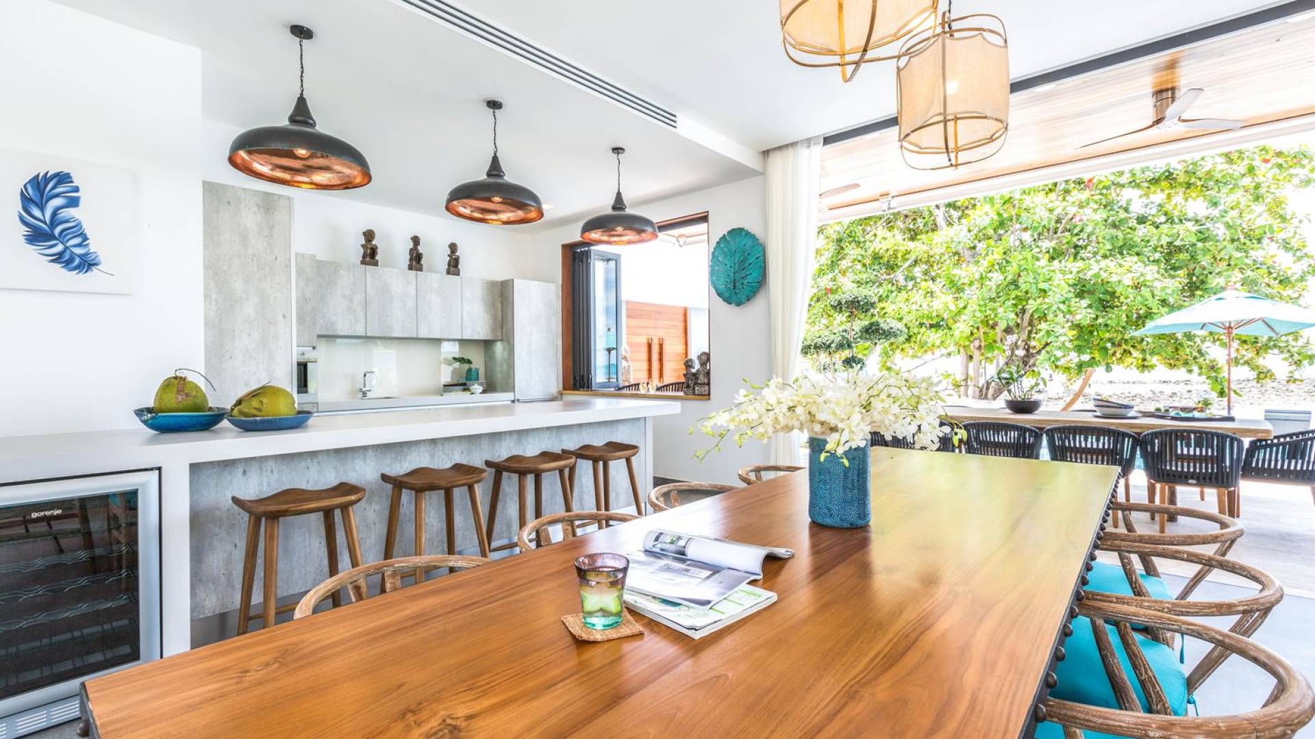 Напротив двора расположены гостиная и столовая открытой планировки. В обеденном зале с комфортом могут разместиться 12 человек. Чтобы перекусить в течение дня или приготовить любимые блюда ребенка, встроенная кухня виллы Suma, изготовленная по индивидуальному заказу, оснащена всеми необходимыми кухонными принадлежностями и техникой. От восхитительных тайских блюд до барбекю из морепродуктов, пасты и салатов, опытный тайский шеф-повар приготовит аппетитные блюда, которые удовлетворят самые привередливые вкусы. Шесть спален с ванными комнатами на вилле Suma обеспечивают максимальное уединение, пространство и вид на море. Во всех светлых, светлых и просторных спальнях есть кровати размера "king-size" и свежее постельное белье из египетского хлопка. Высокие потолки и четкие современные линии с шикарной мебелью и современной сантехникой создают спокойную и домашнюю атмосферу. На втором этаже есть отдельная детская двухъярусная комната со смежными дверями, ведущими в одну из спален для взрослых, чтобы дети были в пределах легкой досягаемости.
