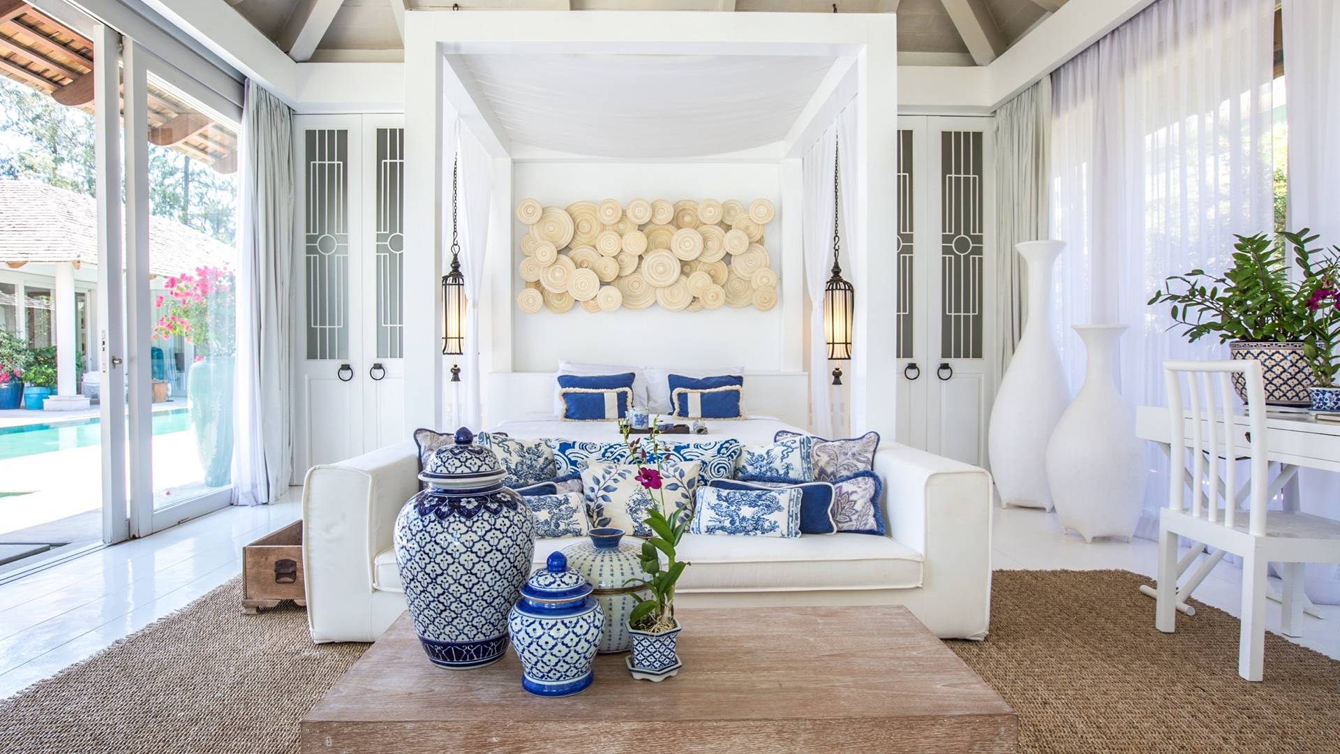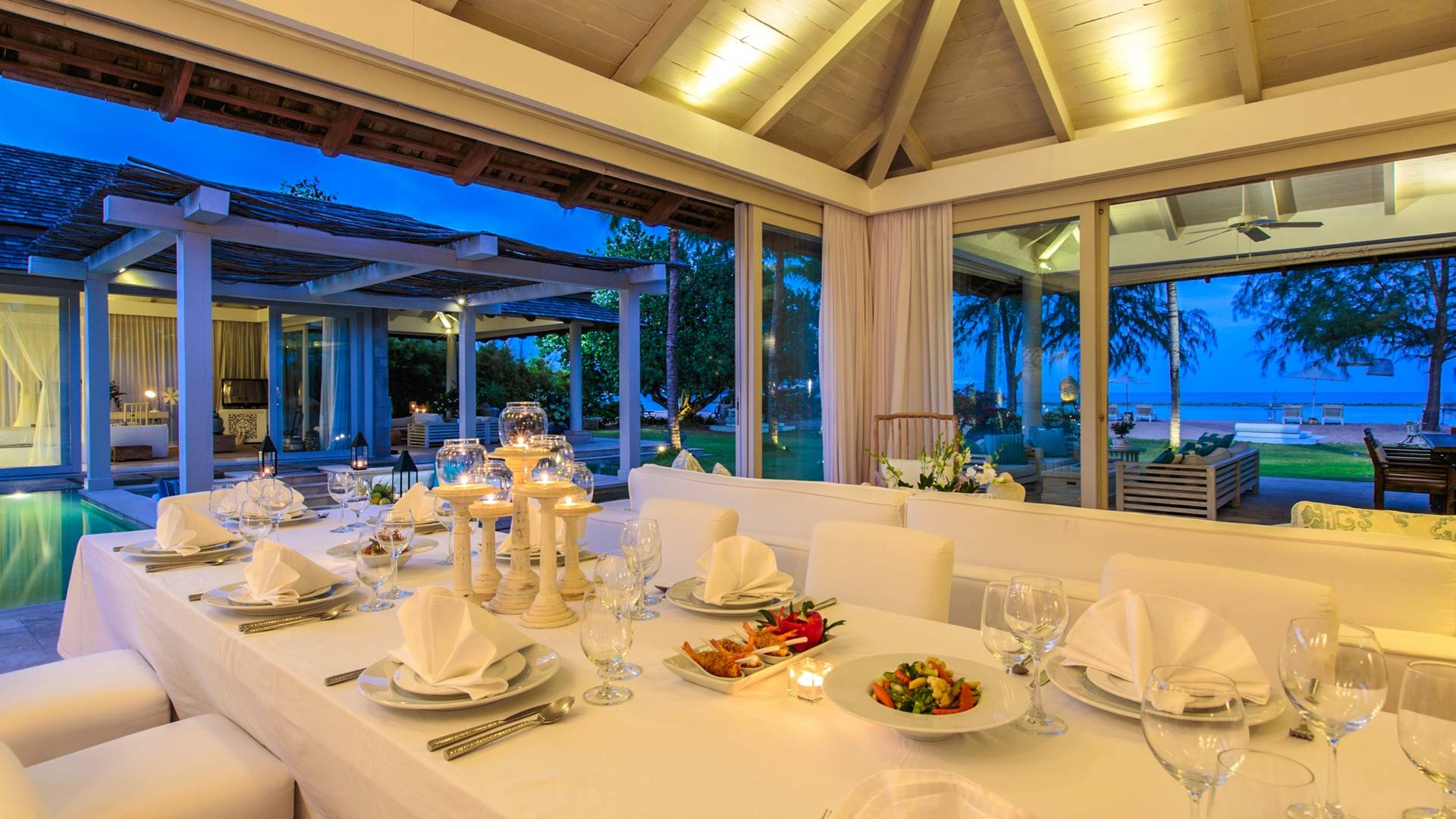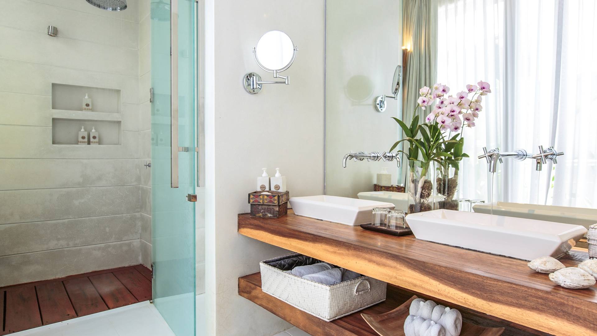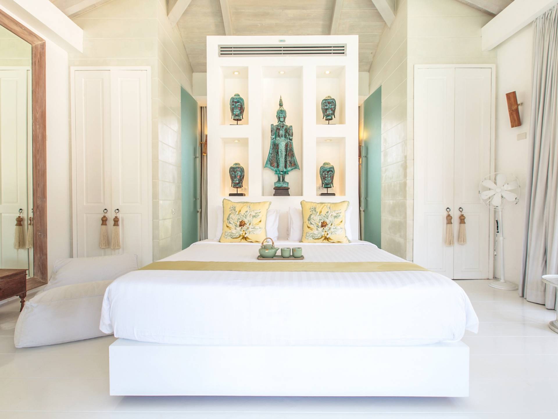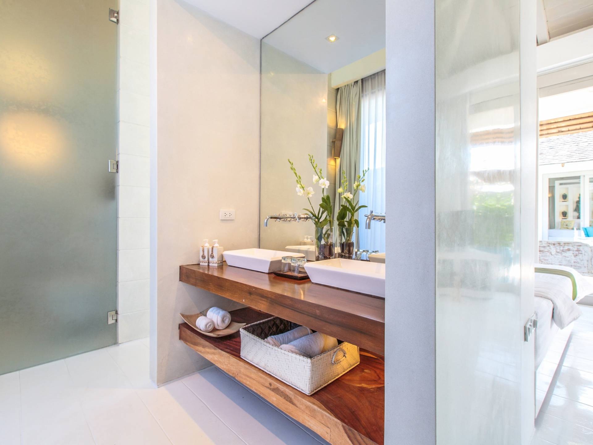 Напротив главной спальни, с правой стороны, современная кухня и столовая выходят на океан. В гостиной есть еще одна обеденная зона на улице. Резиденция состоит из трех павильонов, расположенных вокруг великолепного 23-метрового плавательного бассейна, облицованного балийскими зелеными камнями. Бассейн окружает огромную крытую беседку с удобными креслами. В дальнем конце бассейн становится мельче и позволяет маленьким детям безопасно плавать. Элегантно обставленные спальни оснащены кроватями размера "king-size", ЖК-телевизором с Netflix, встроенными шкафами, персональными сейфами, мини-барами и большими зеркалами. Каждая спальня имеет собственную ванную комнату с тропическим душем, двумя раковинами и небольшим частным садом с тропическими растениями с тропическим душем на открытом воздухе или роскошной ванной из терраццо. Все спальни выходят на бассейн и имеют прямой доступ к террасе у бассейна.