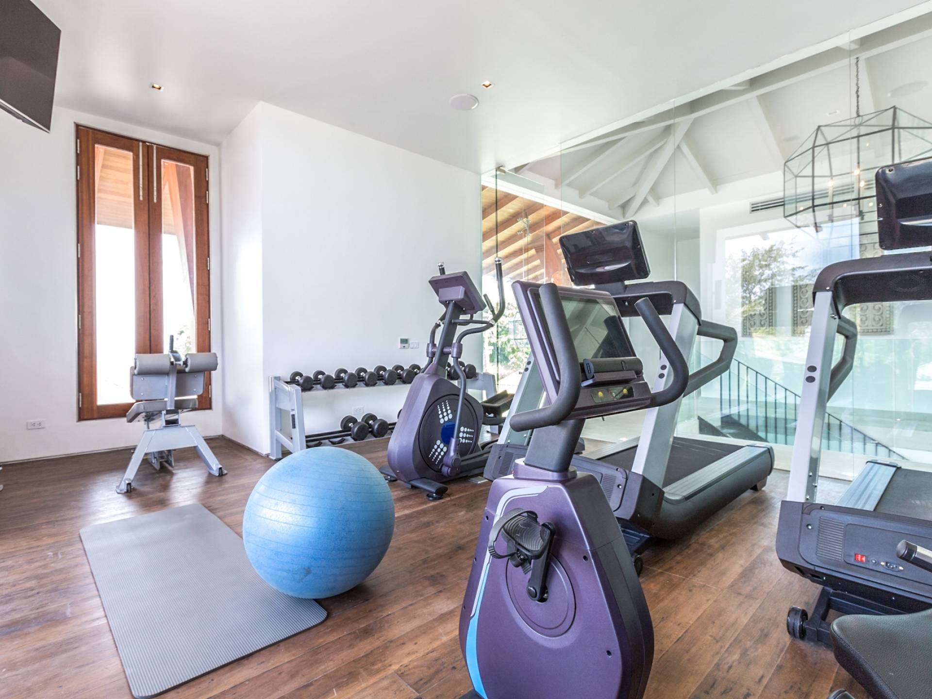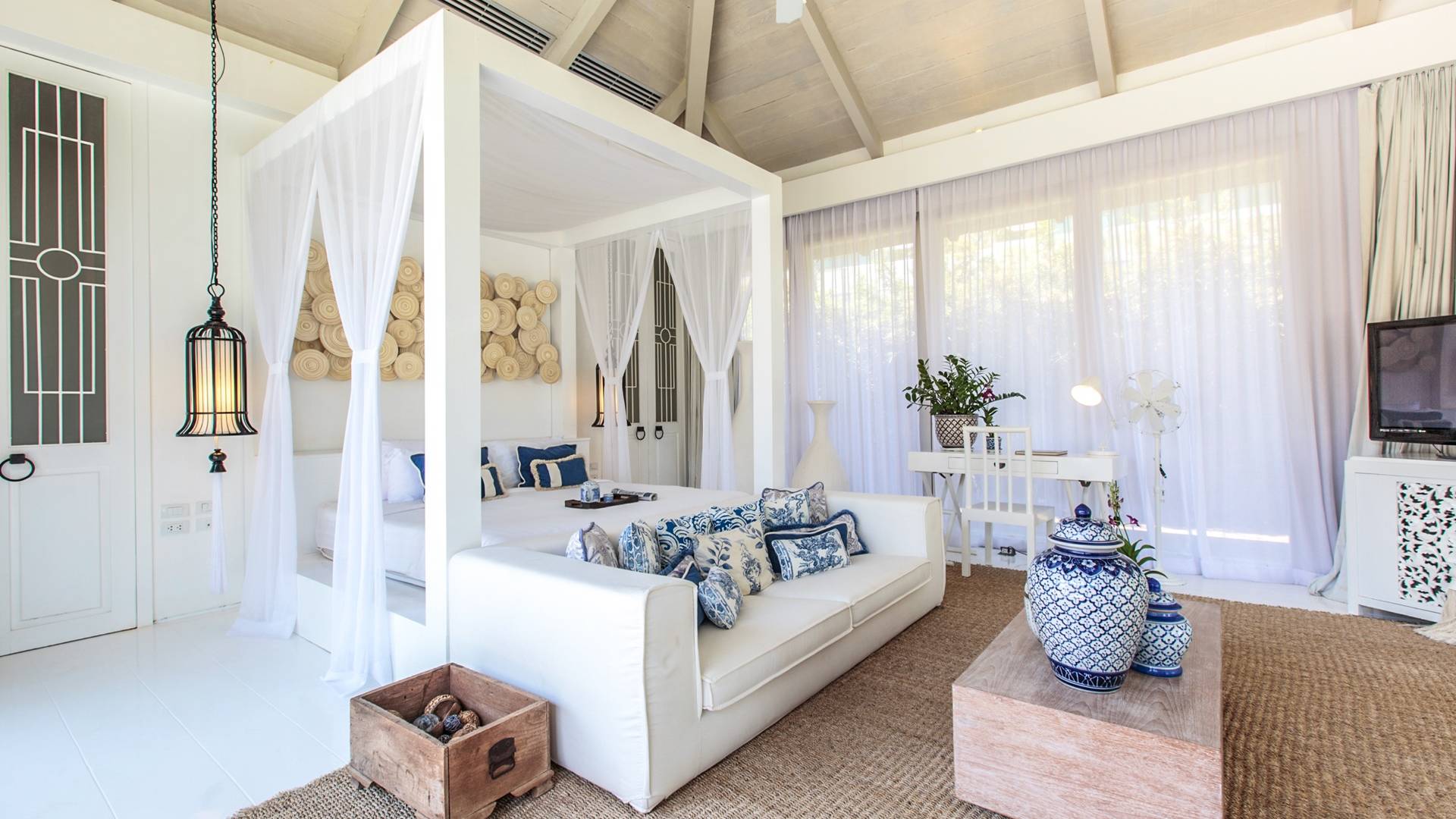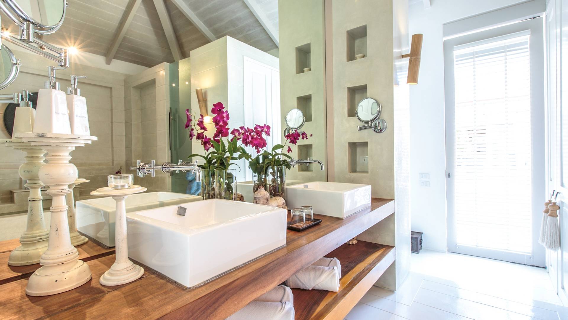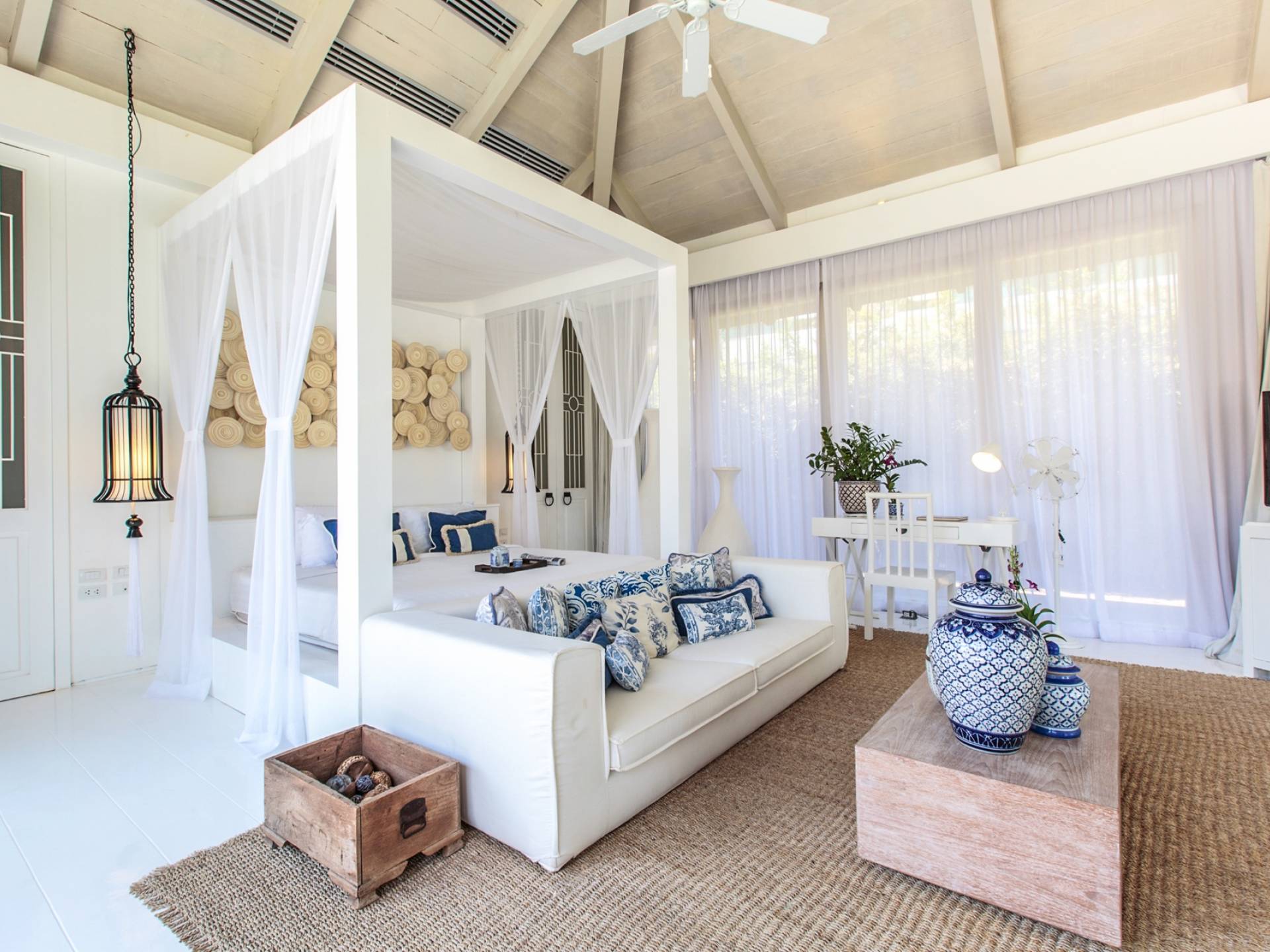 Напротив главной спальни, с правой стороны, современная кухня и столовая выходят на океан. В гостиной есть еще одна обеденная зона на улице. Резиденция состоит из трех павильонов, расположенных вокруг великолепного 23-метрового плавательного бассейна, облицованного балийскими зелеными камнями. Бассейн окружает огромную крытую беседку с удобными креслами. В дальнем конце бассейн становится мельче и позволяет маленьким детям безопасно плавать. Элегантно обставленные спальни оснащены кроватями размера "king-size", ЖК-телевизором с Netflix, встроенными шкафами, персональными сейфами, мини-барами и большими зеркалами. Каждая спальня имеет собственную ванную комнату с тропическим душем, двумя раковинами и небольшим частным садом с тропическими растениями с тропическим душем на открытом воздухе или роскошной ванной из терраццо. Все спальни выходят на бассейн и имеют прямой доступ к террасе у бассейна.