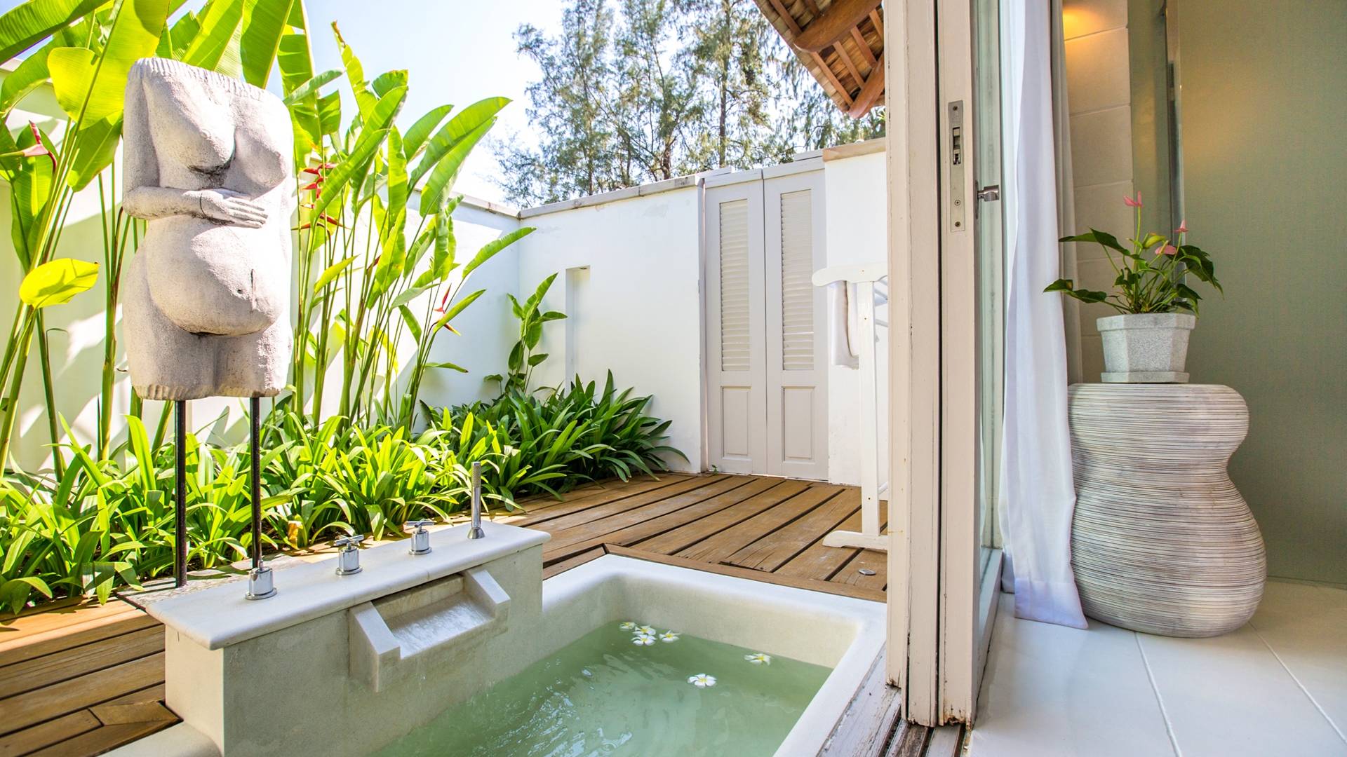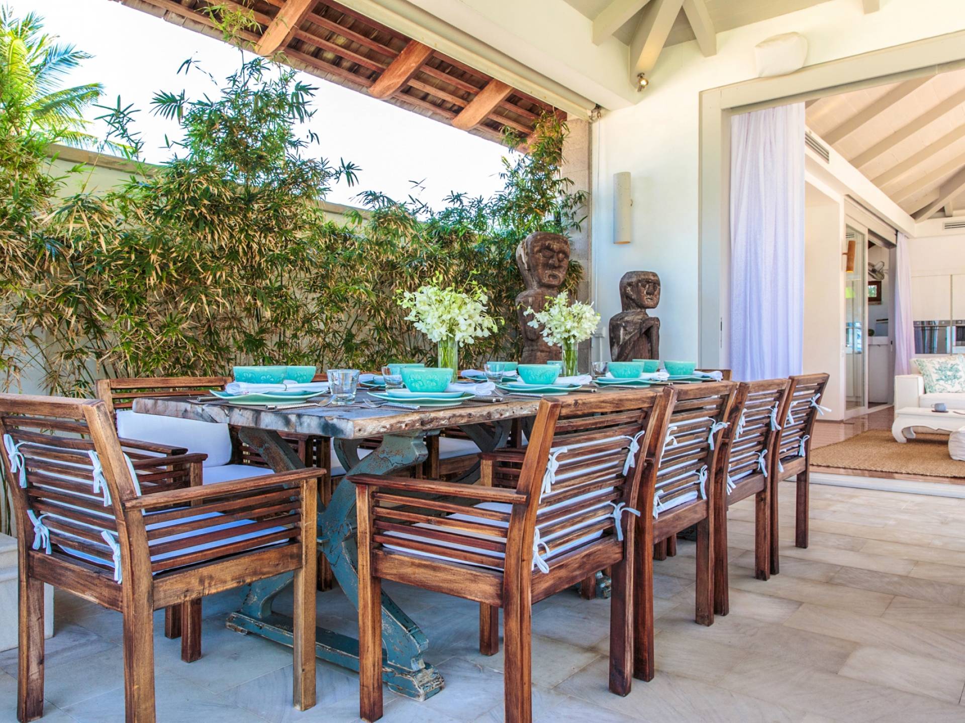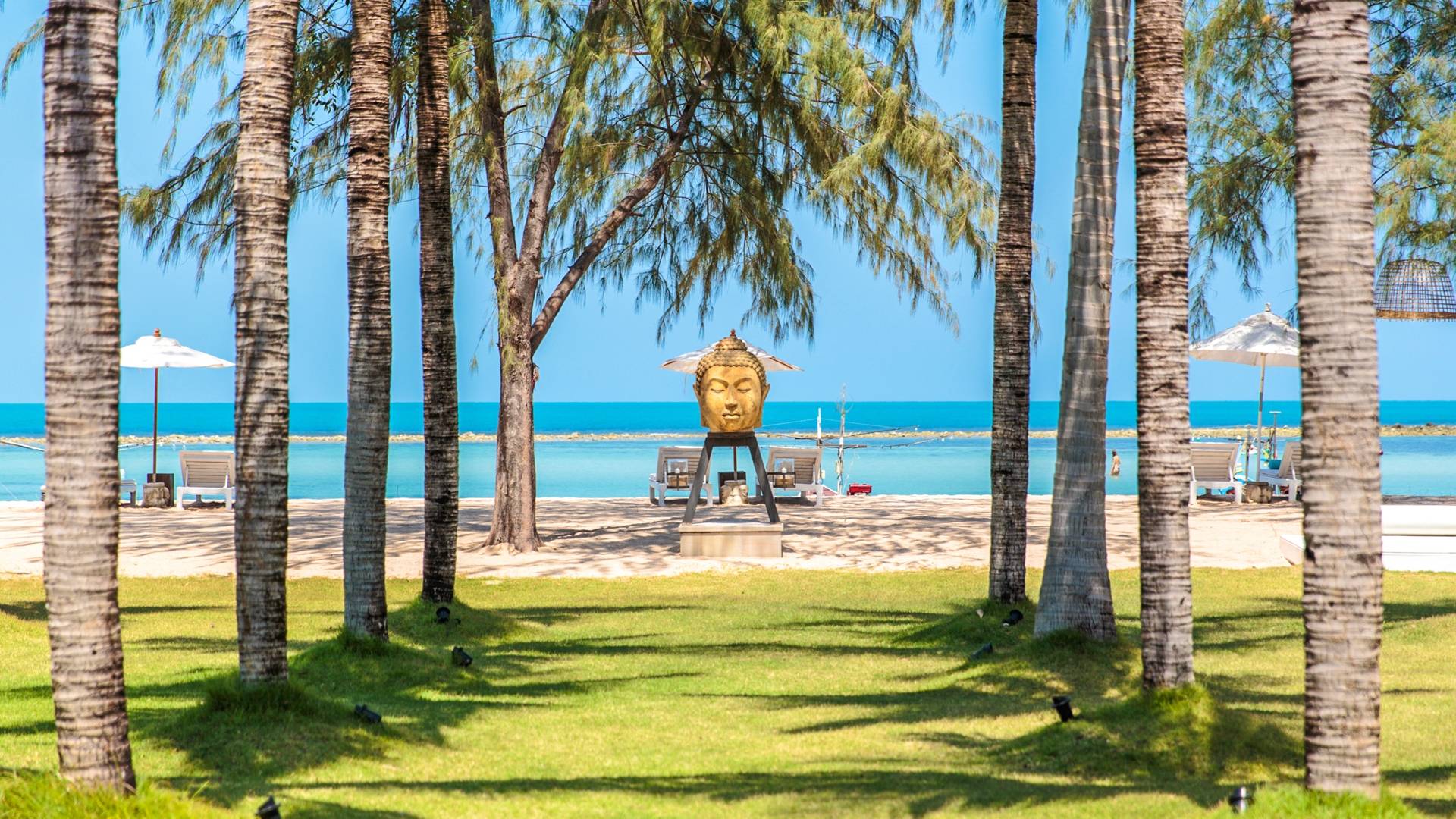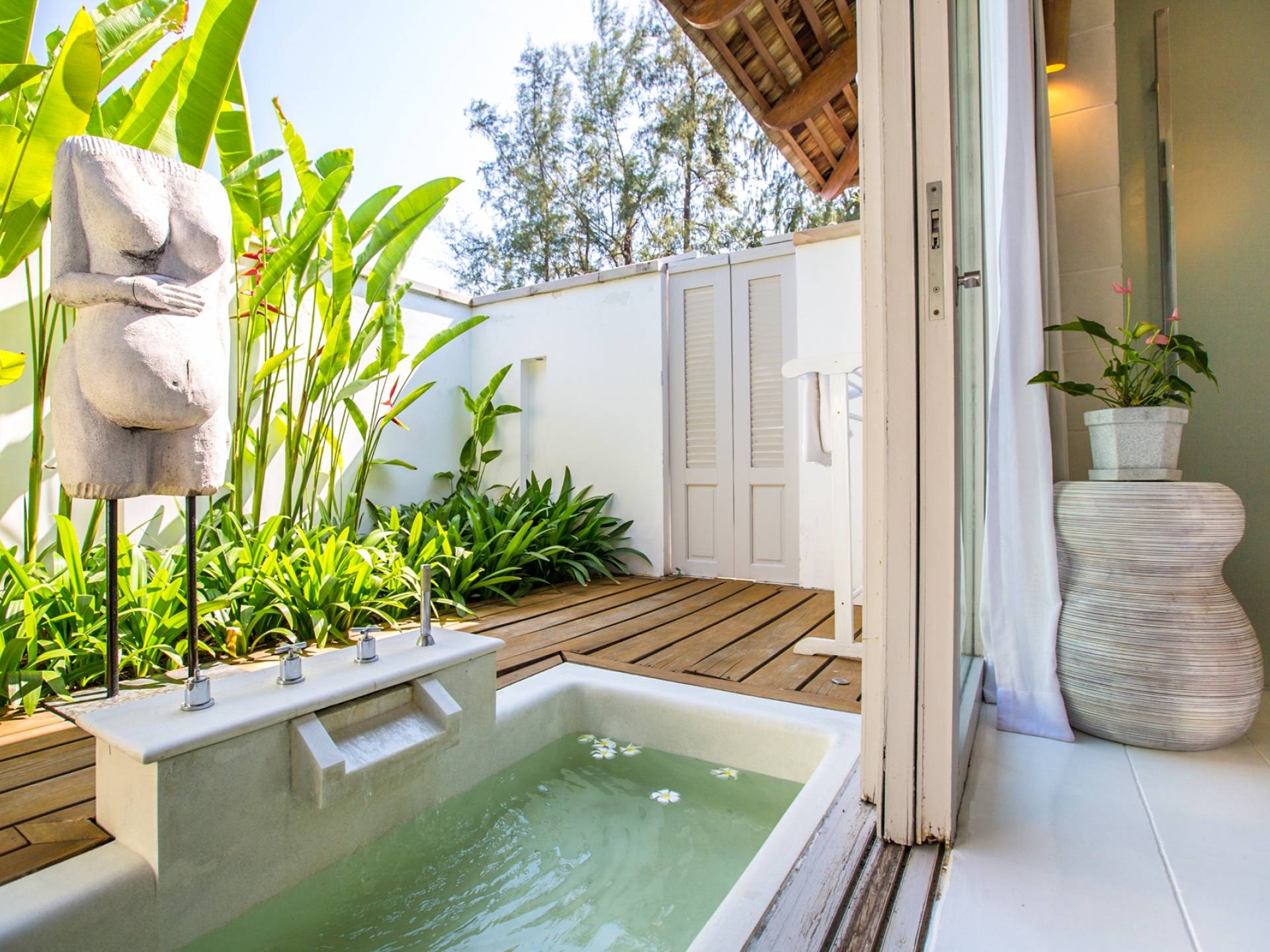 На пляже по обеим сторонам бассейна расположены большие веранды с дополнительными зонами отдыха на свежем воздухе и обеденным столом на открытом воздухе. За бассейном и верандой гостиные представляют собой плоскую травяную лужайку с шезлонгами и зонтиками, засаженную кокосовыми пальмами. Посреди пляжа большая голова Будды благосклонно улыбается вилле. По обеим сторонам пляжа установлены большие двуспальные кушетки для отдыха. Бассейн и зона отдыха Резиденция состоит из трех павильонов, расположенных вокруг великолепного 23-метрового плавательного бассейна, выложенного балийскими зелеными камнями. Бассейн окружает огромную крытую беседку с удобными креслами. В дальнем конце бассейн становится мельче и позволяет маленьким детям безопасно плавать.