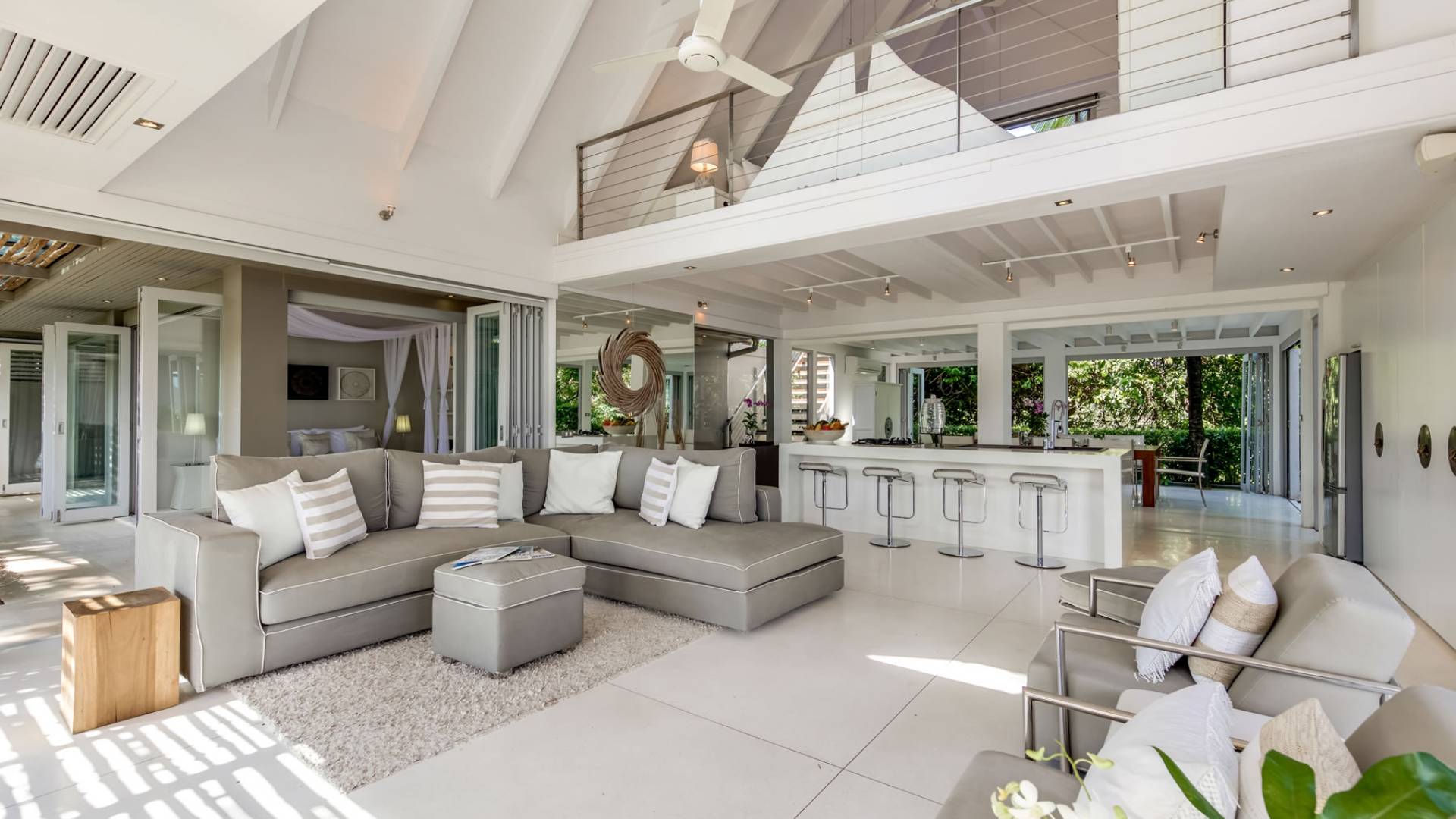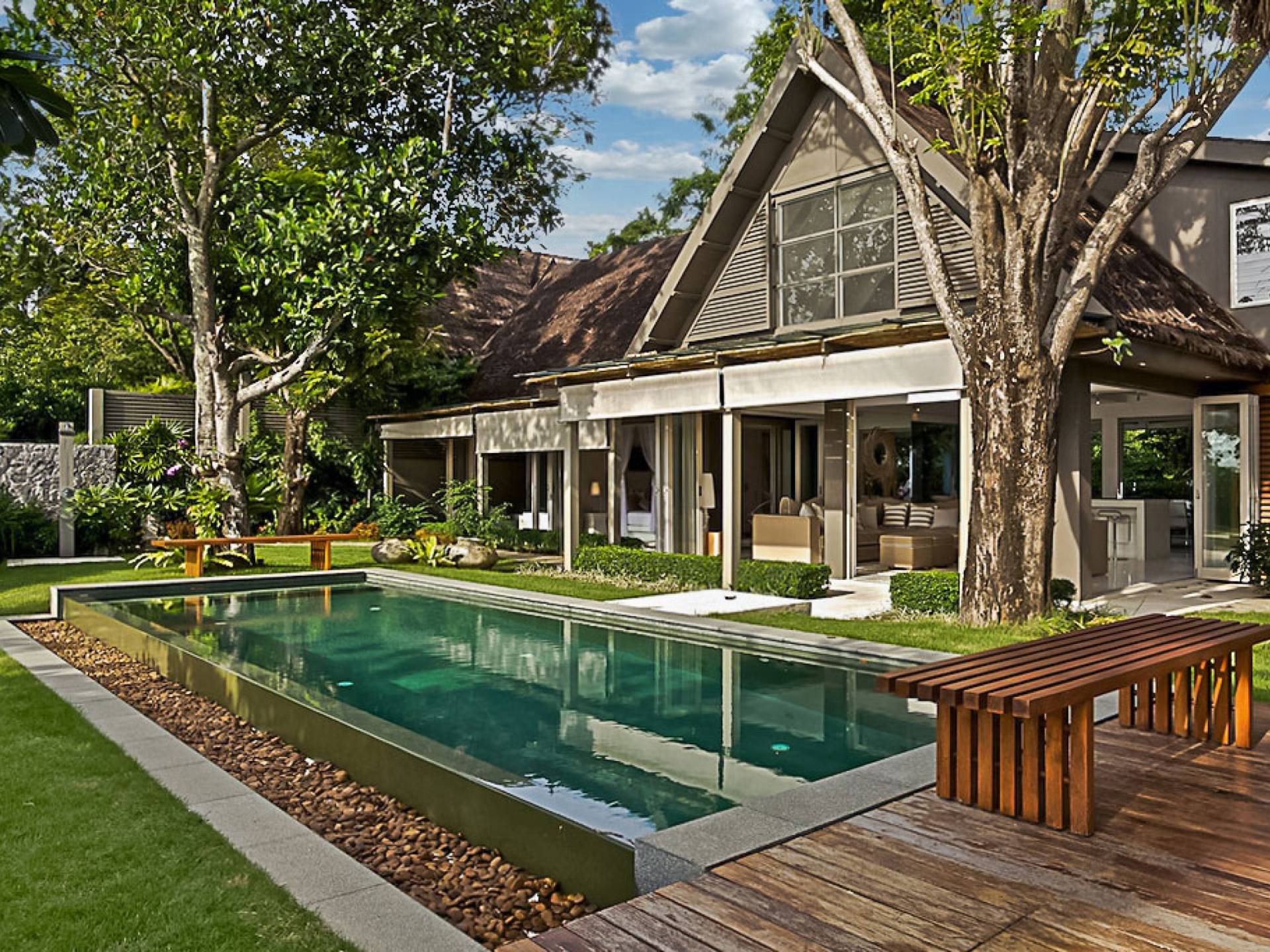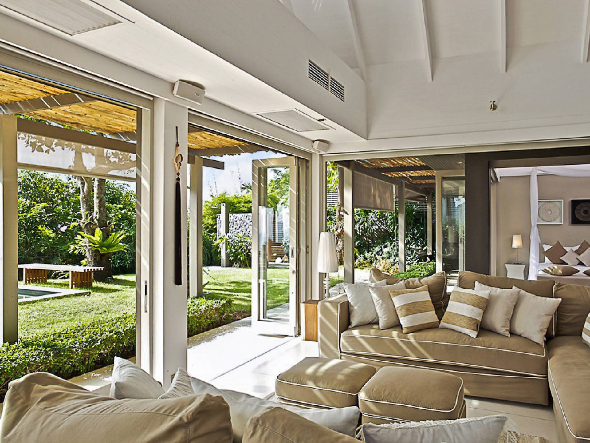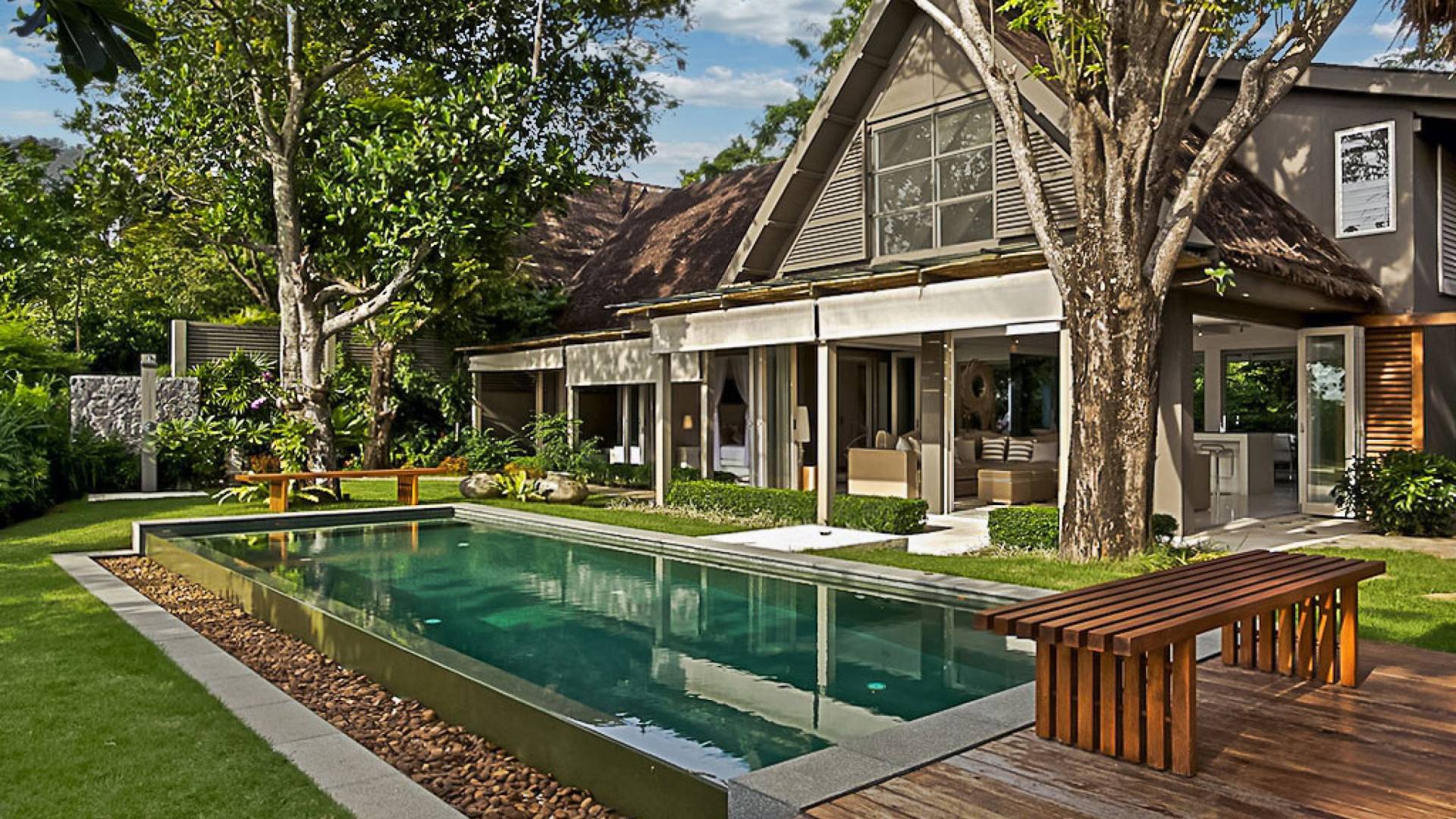Гостиные и спальни буквально открываются на тропические виды с красивым садовым бассейном, обеспечивающим уединенное уединение от жары.
