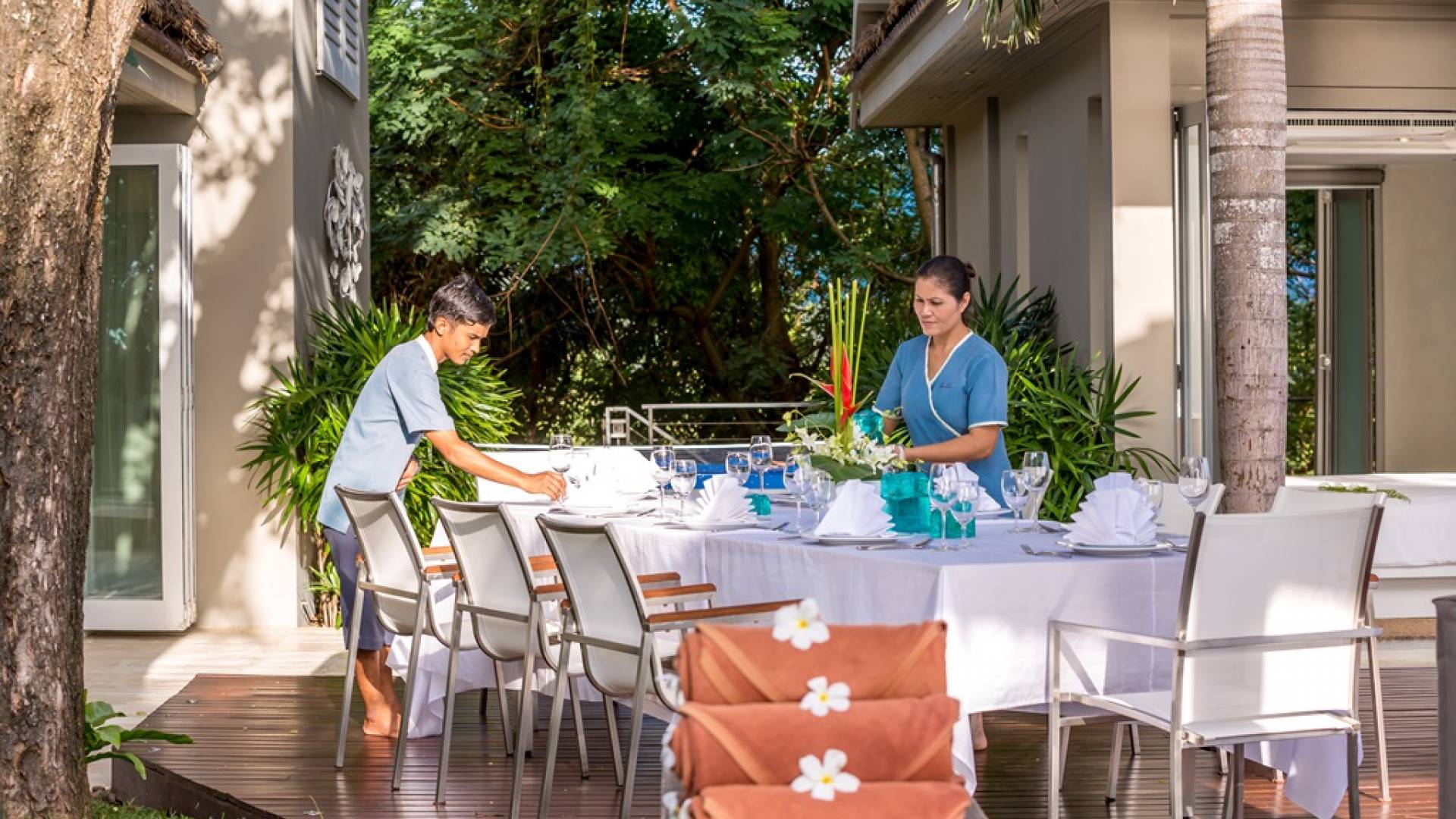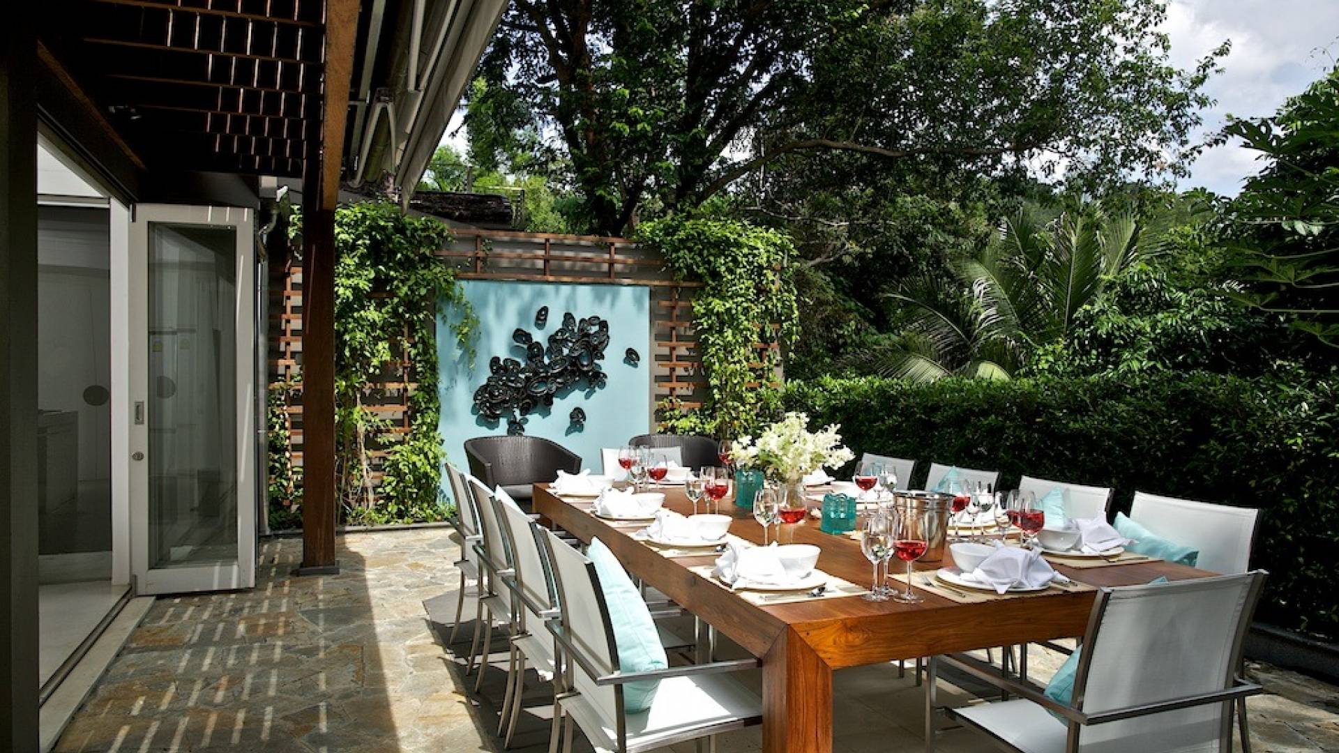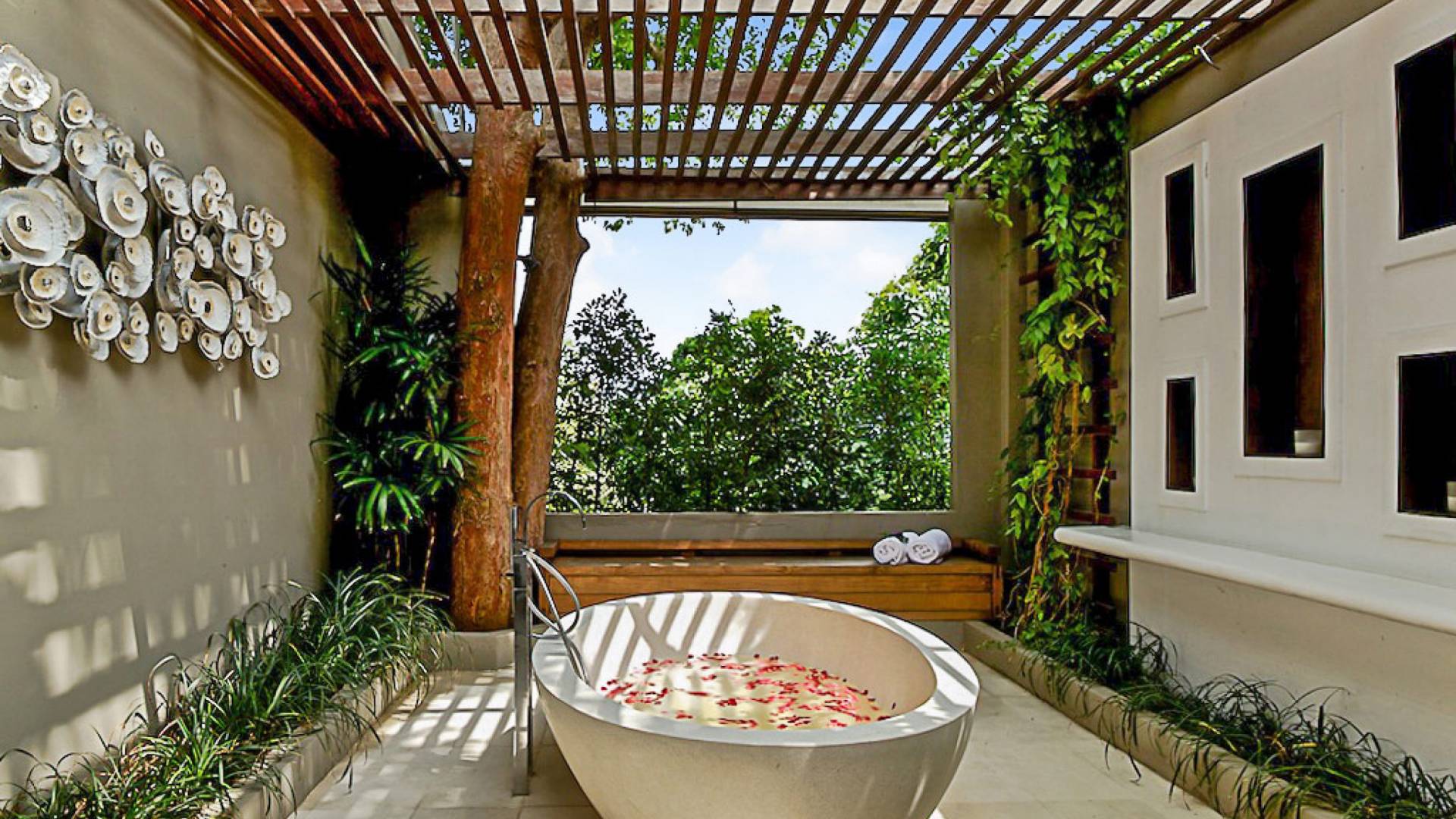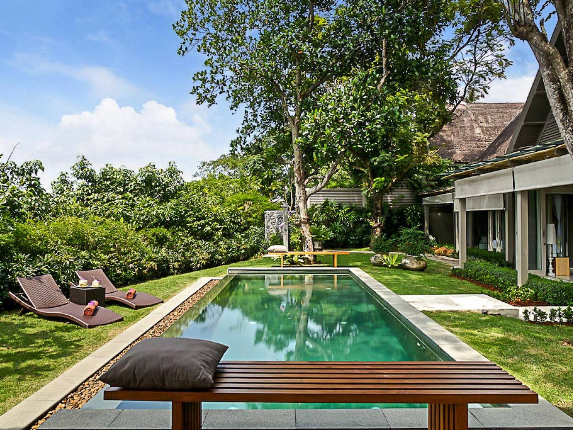 Гостиные и спальни буквально открываются на тропические виды с красивым садовым бассейном, обеспечивающим уединенное уединение от жары.