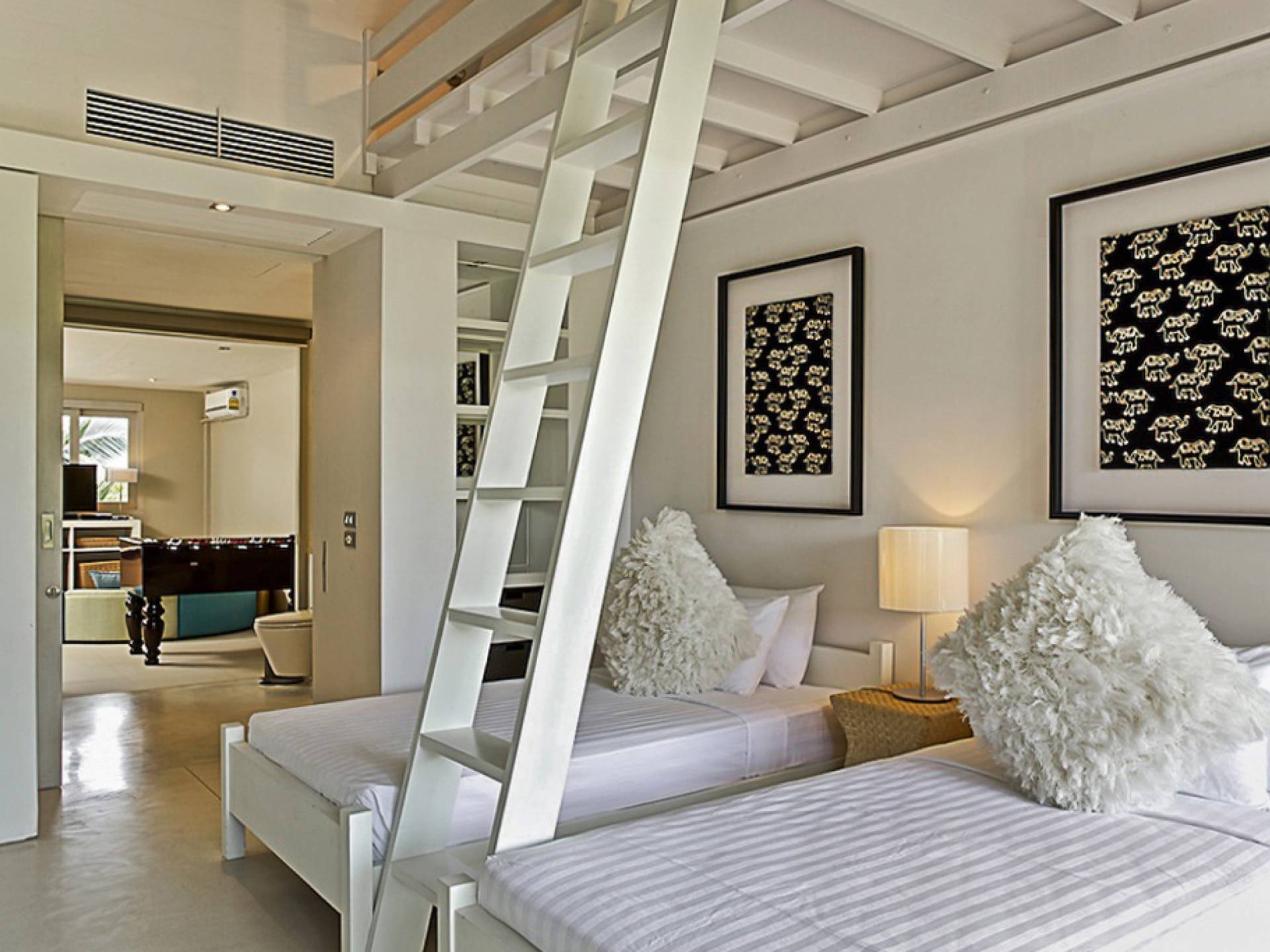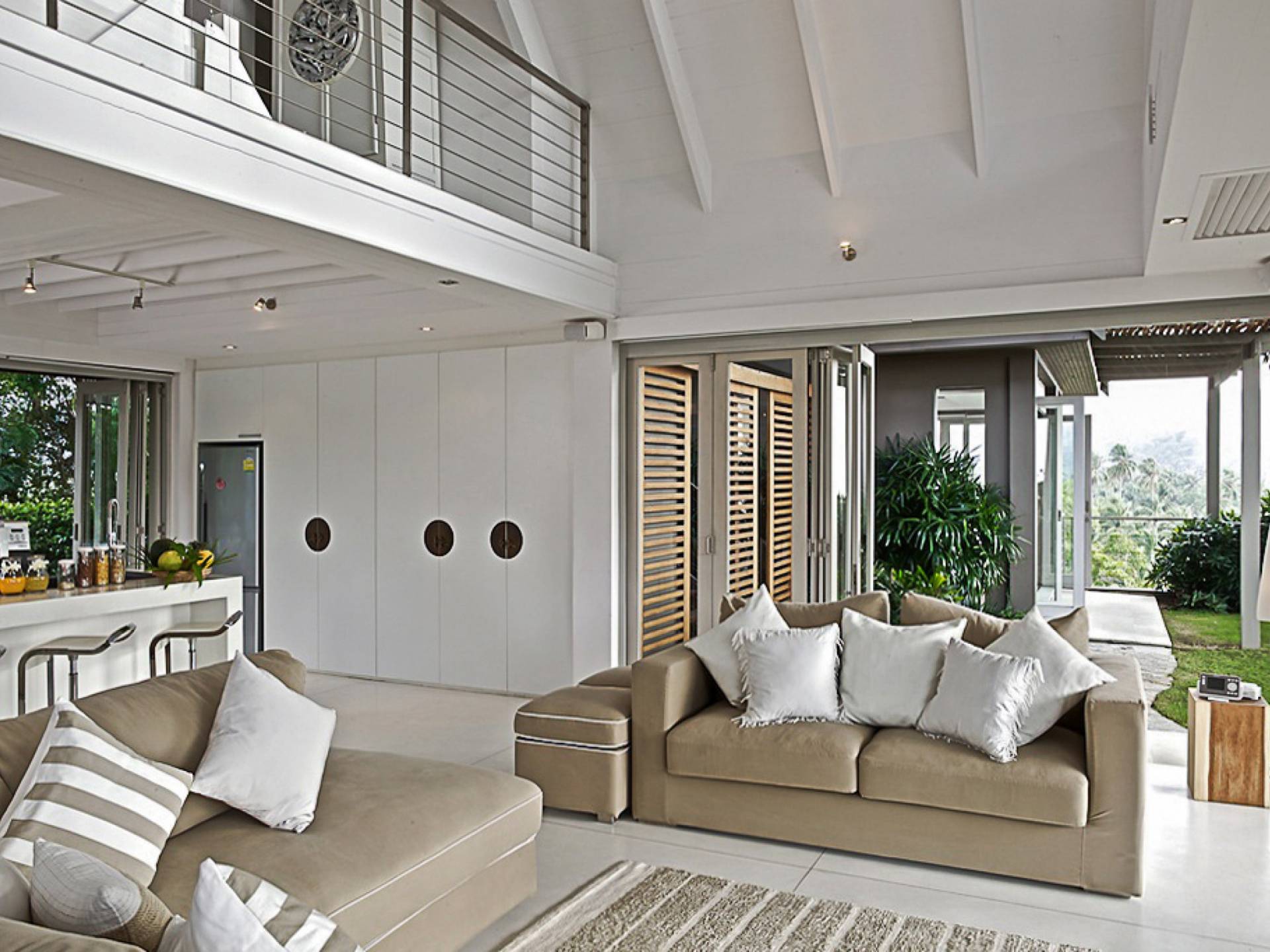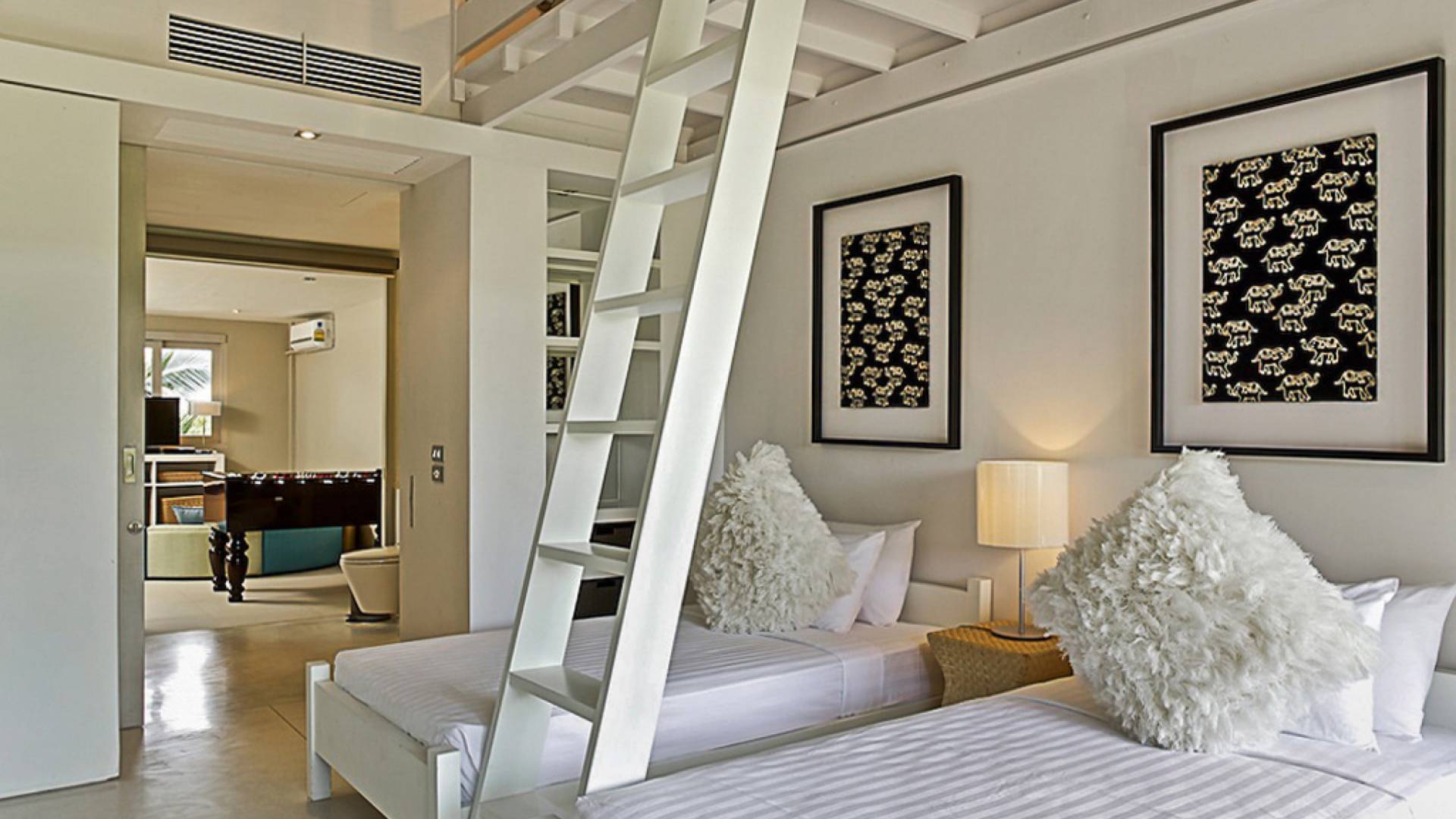 Комфортные и просторные спальни (2 двуспальные, 2 односпальные кровати) переходят в просторные ванные комнаты с тропическим душем, а в одной спальне с двумя односпальными кроватями также есть встроенная верхняя койка, идеально подходящая для детей. Вилла со вкусом обставлена с ловкими деталями, добавляющими азиатские акценты к современному минималистичному стилю, а также полным комплектом ультрасовременной бытовой техники, делающей повседневную жизнь легкой и непринужденной. Раскладывающиеся стеклянные двери во всю высоту стирают границы внутреннего и внешнего пространства, позволяя гостям в полной мере использовать великолепный вид на море со ступеньками, ведущими от виллы к тихой бухте с получастным пляжем, который еще может похвастаться еще больше захватывающих видов на близлежащие острова морского парка Анг Тонг.
