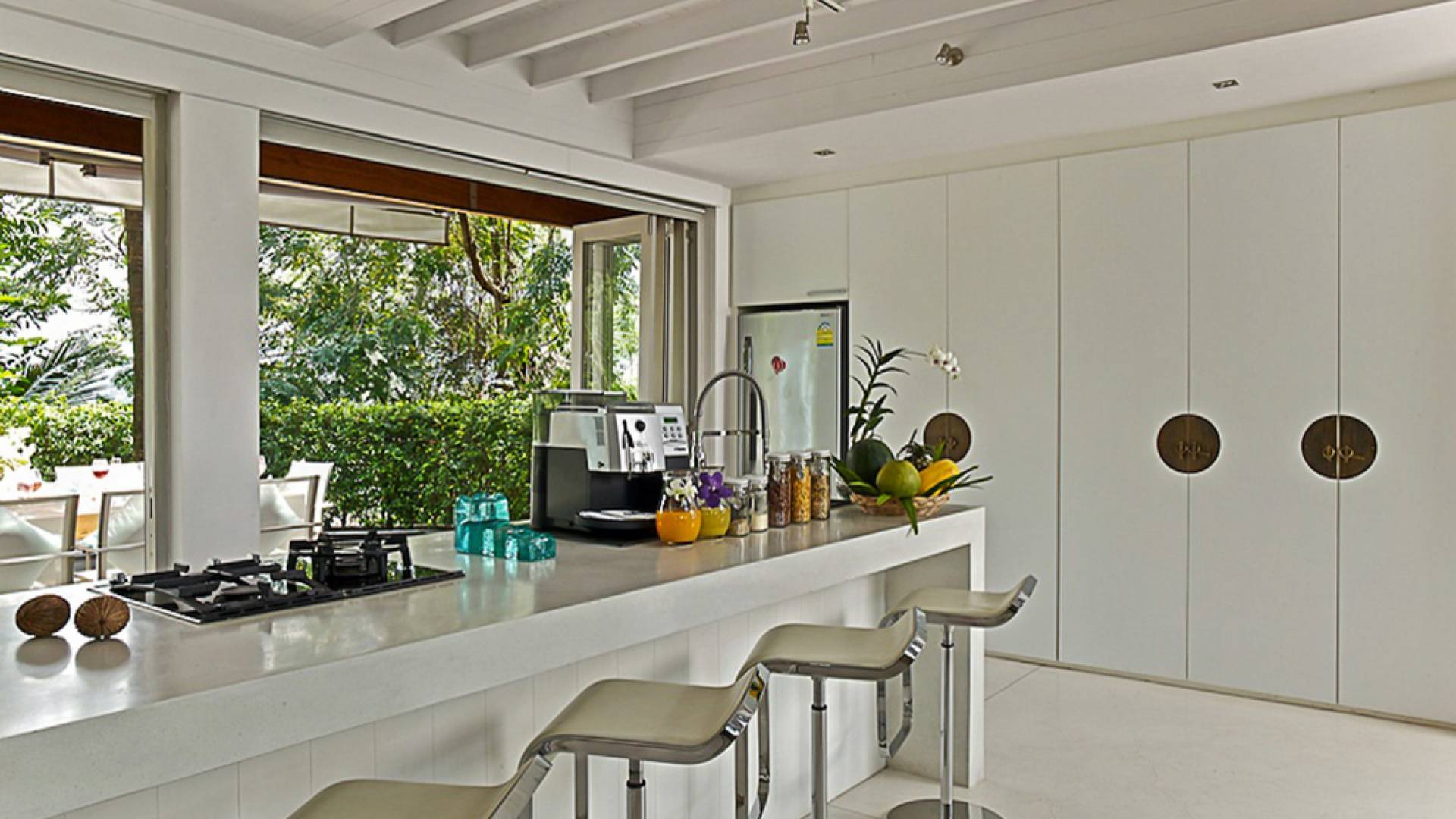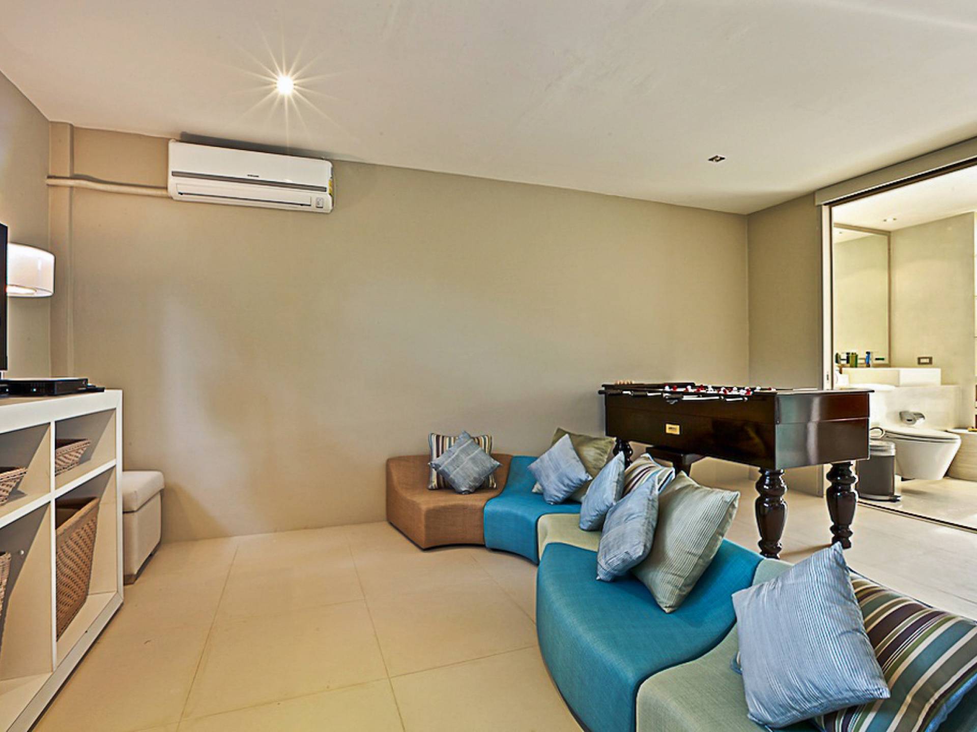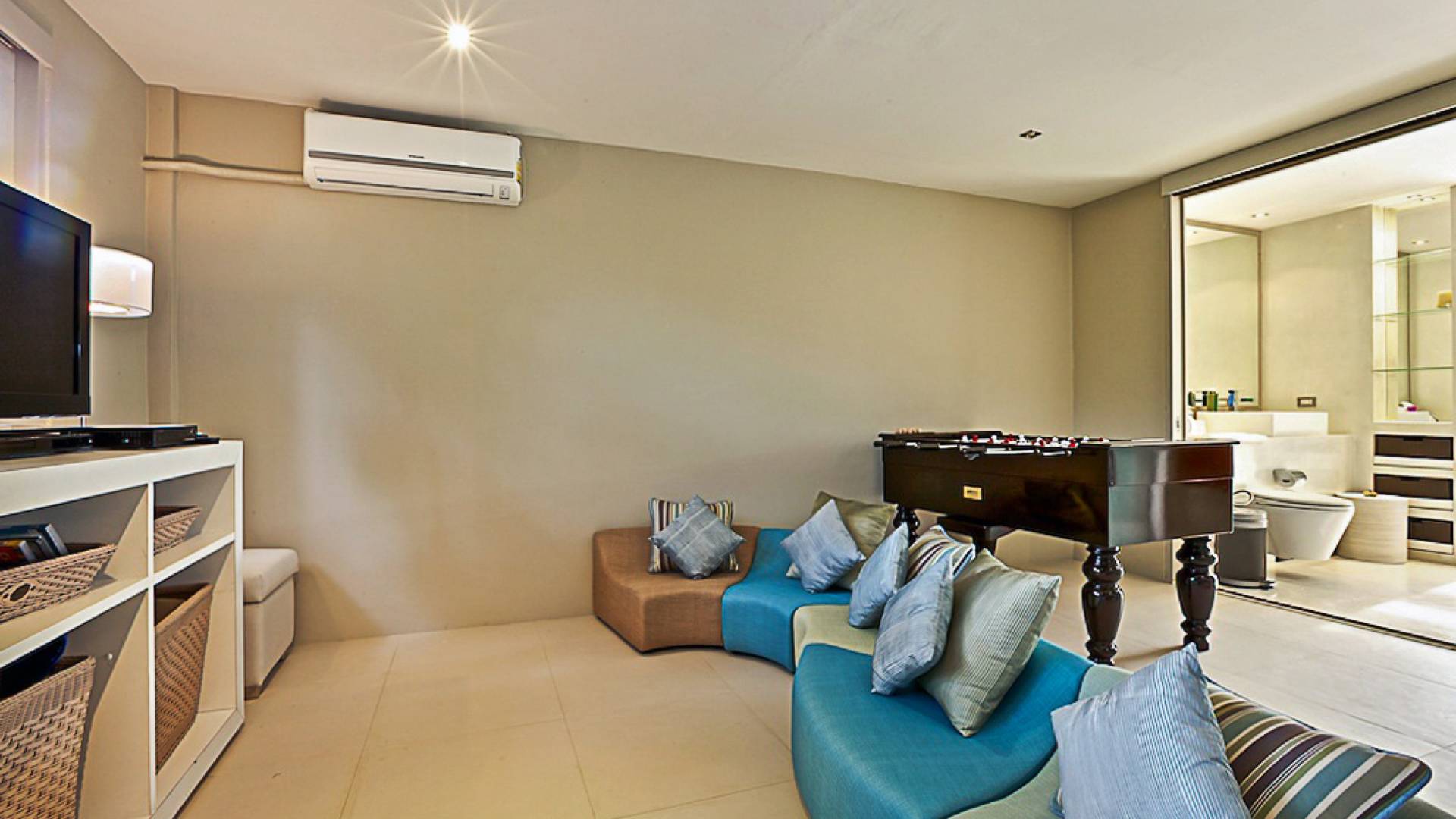 Комфортные и просторные спальни (2 двуспальные, 2 односпальные кровати) переходят в просторные ванные комнаты с тропическим душем, а в одной спальне с двумя односпальными кроватями также есть встроенная верхняя койка, идеально подходящая для детей. Вилла со вкусом обставлена с ловкими деталями, добавляющими азиатские акценты к современному минималистичному стилю, а также полным комплектом ультрасовременной бытовой техники, делающей повседневную жизнь легкой и непринужденной. Раскладывающиеся стеклянные двери во всю высоту стирают границы внутреннего и внешнего пространства, позволяя гостям в полной мере использовать великолепный вид на море со ступеньками, ведущими от виллы к тихой бухте с получастным пляжем, который еще может похвастаться еще больше захватывающих видов на близлежащие острова морского парка Анг Тонг.