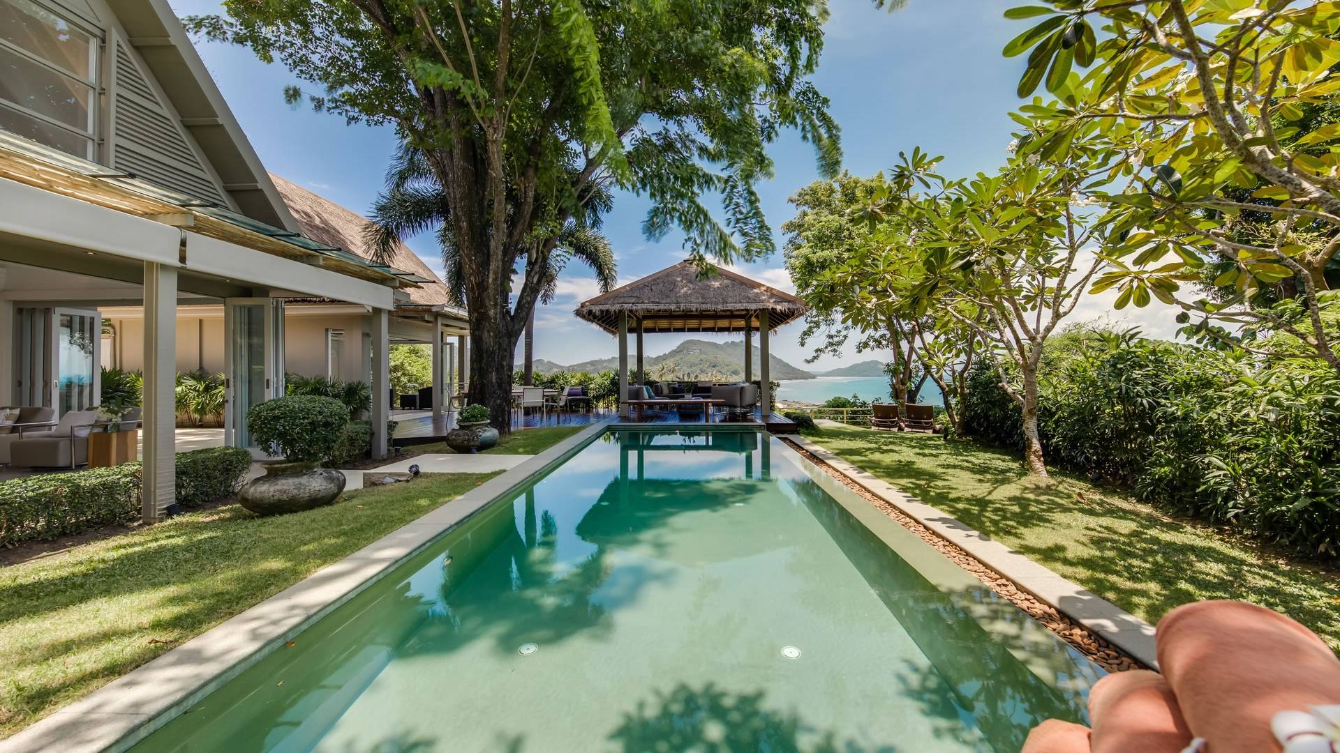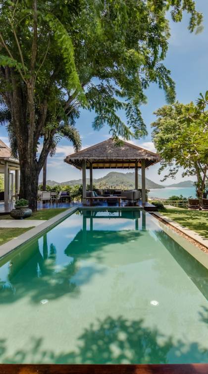The Headland Villa 5 Samui - это шикарная, комфортабельная резиденция с 4 спальнями и захватывающим видом на океан и живописную бухту. Идеально подходит для семей или небольших групп, которые хотят приятно провести время вдали от толпы, передовой дизайн сочетается с природой в уникальном уединенном месте. Интеллектуальная многоуровневая планировка виллы включает отдельные пространства для взрослых и детей, с ярким белым интерьером, удобной мебелью и возможностью выбора обеденных зон внутри и на открытом воздухе.
