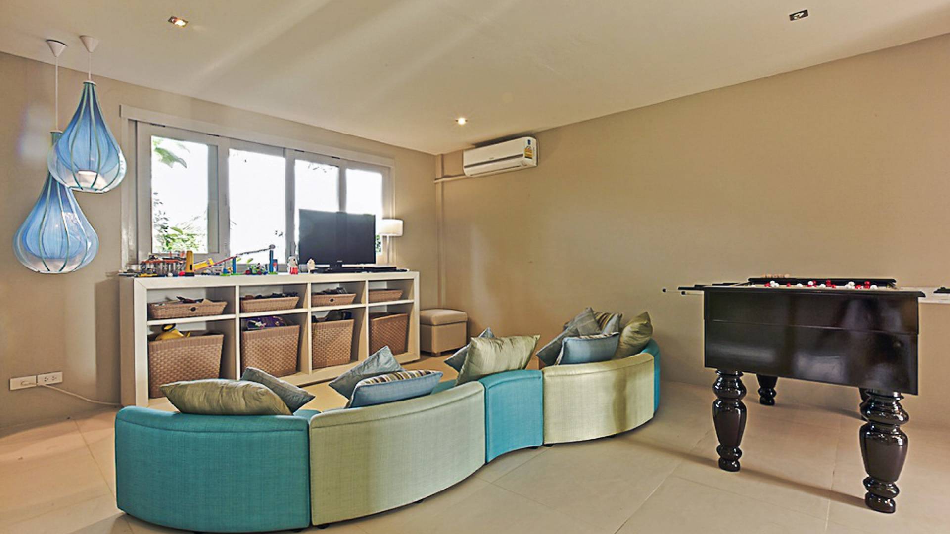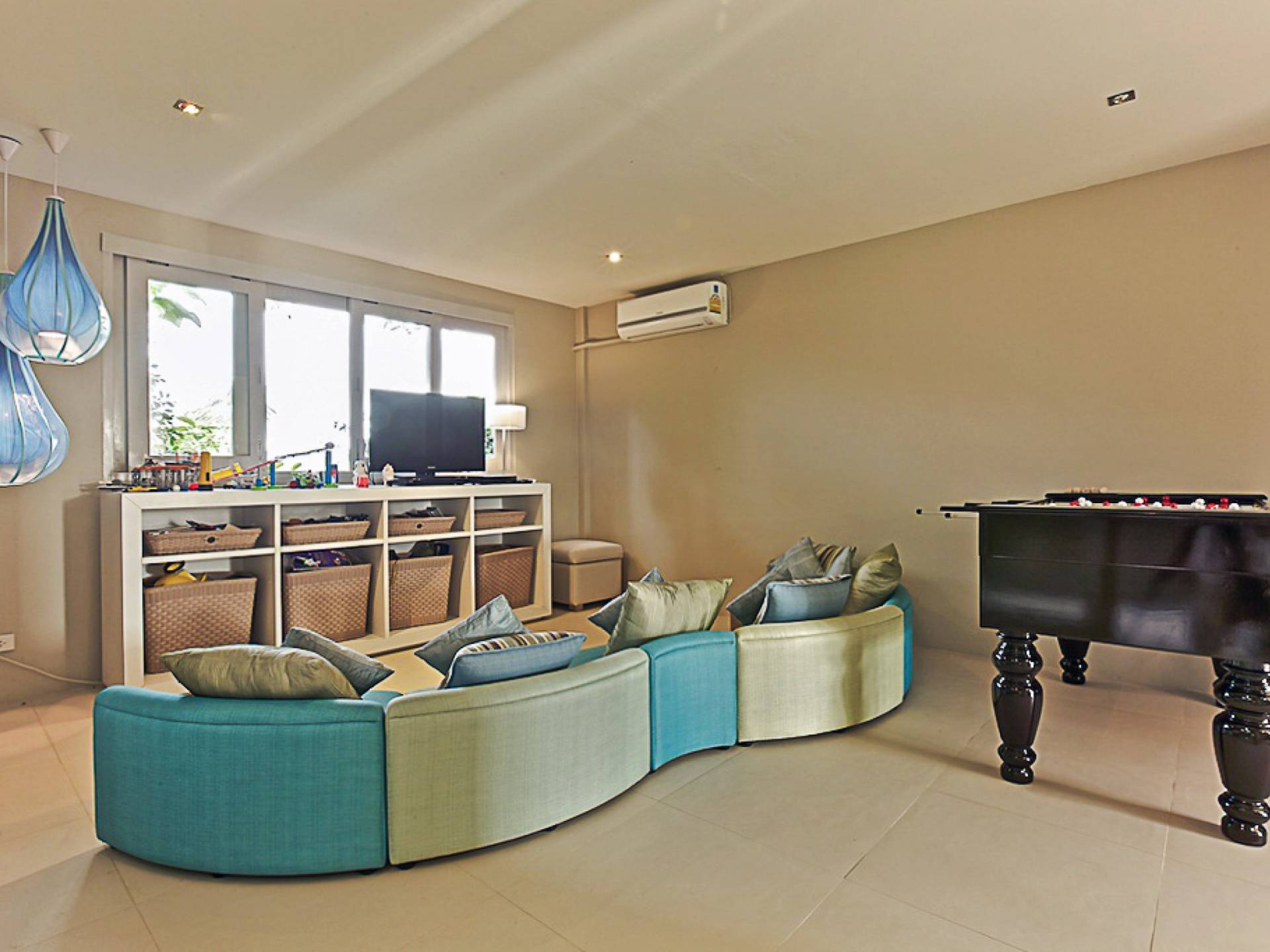 Вилла Headland 5 Samui, построенная на 3 уровнях, практична и роскошна. Прохладная белая гостиная и обеденная зона в атриуме (на 10 мест) открываются прямо на живописные окрестности и прохладные морские бризы. В просторной гостиной есть плюшевые диваны и кресла, а пристроенная к ней пристройка с телевизором - фаворит среди детей, обставленная длинным мягким диваном, расположенным перед большим настенным телевизором с плоским экраном. Столовая обслуживается западной кухней открытой планировки, оснащенной полным набором современной бытовой техники, а снаружи тропический сад с лужайкой обрамляет восхитительную 10-ю виллу у 3-метрового частного бассейна.