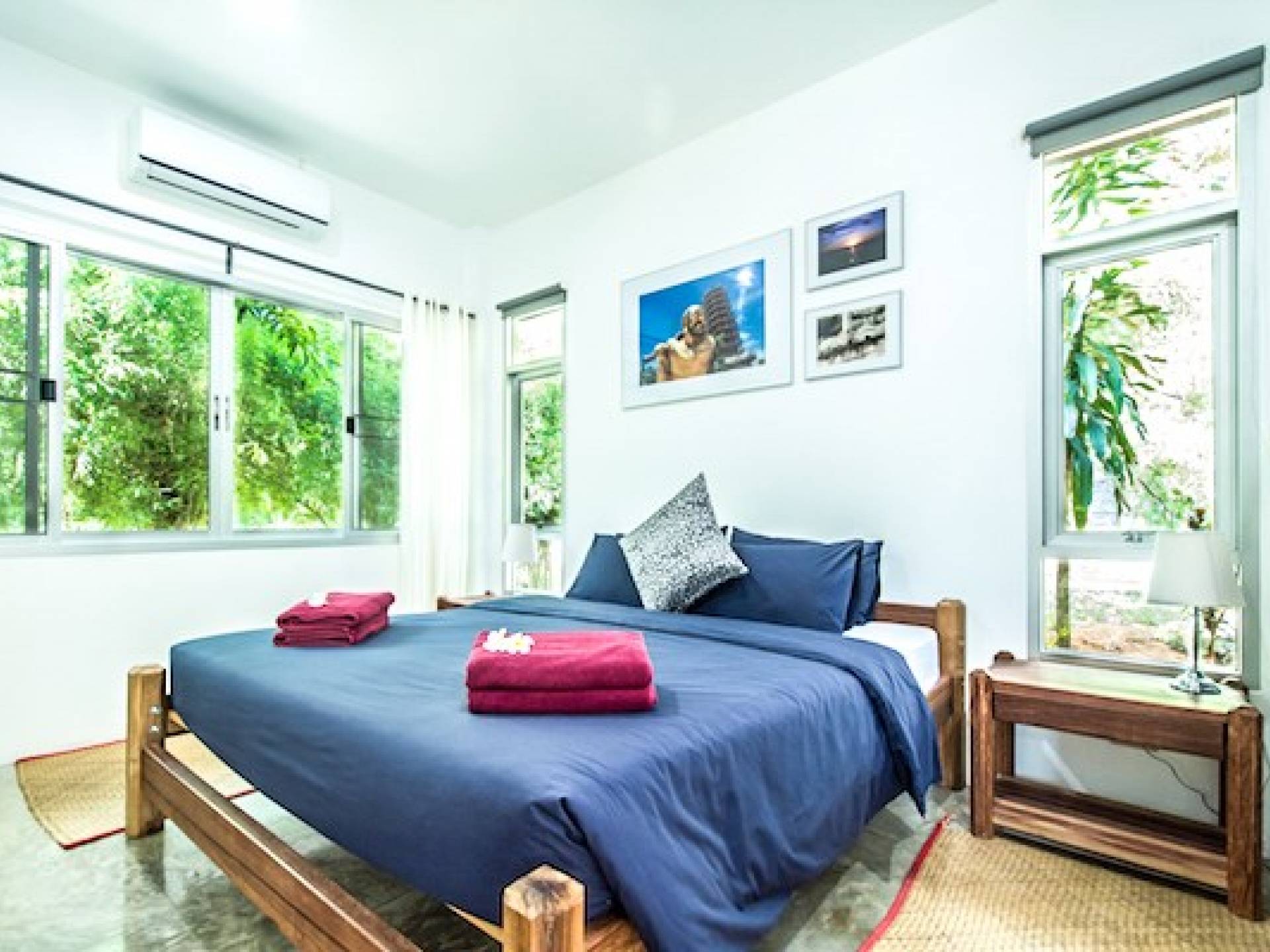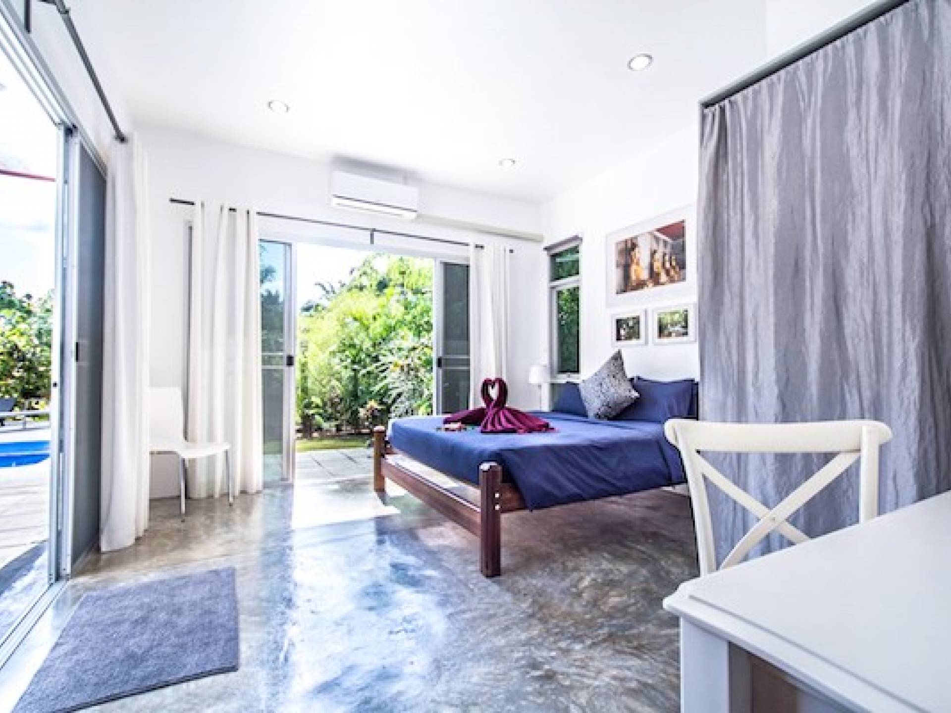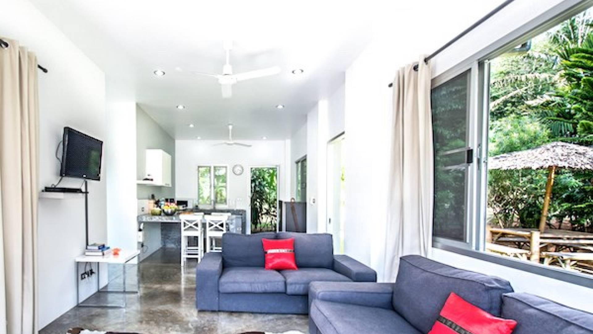 В апартаментах есть полностью оборудованная кухня, обеденная и гостиная зоны со всеми функциями и удобствами, необходимыми для полноценного отпуска с самообслуживанием. Вилла с видом на горы состоит из 3 спален, в каждой из которых установлены кровати размера «king-size». Есть две современные ванные комнаты в западном стиле с душем с горячей водой. Создан для уединения с ощущением простора и простора; Общая площадь здания составляет 270 кв. метров, а площадь частного сада - 650 кв. метров.
