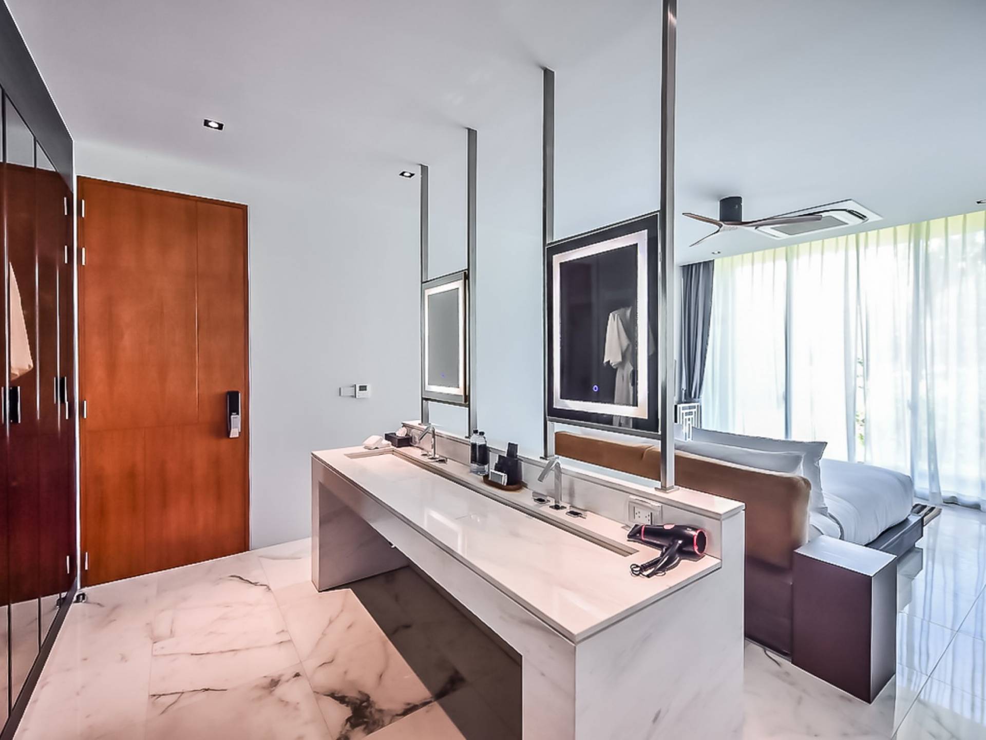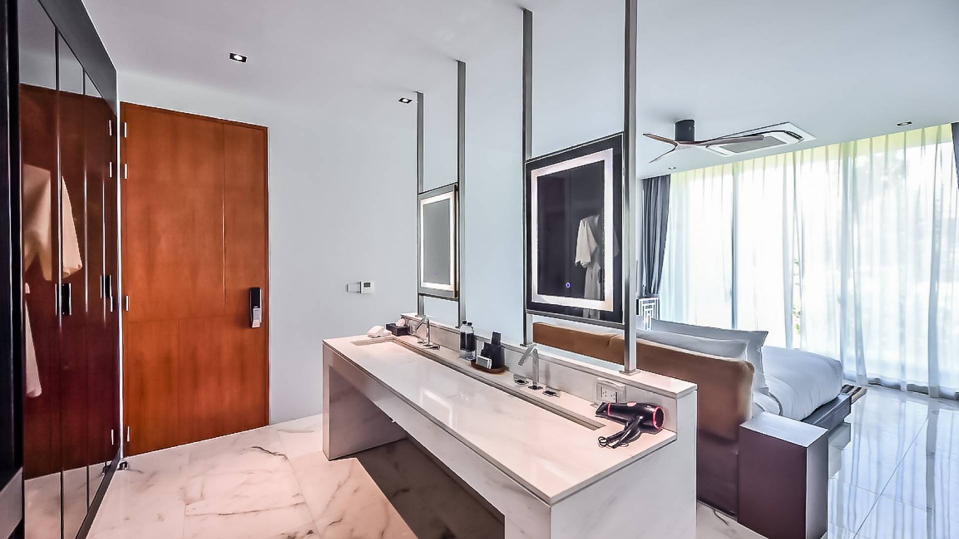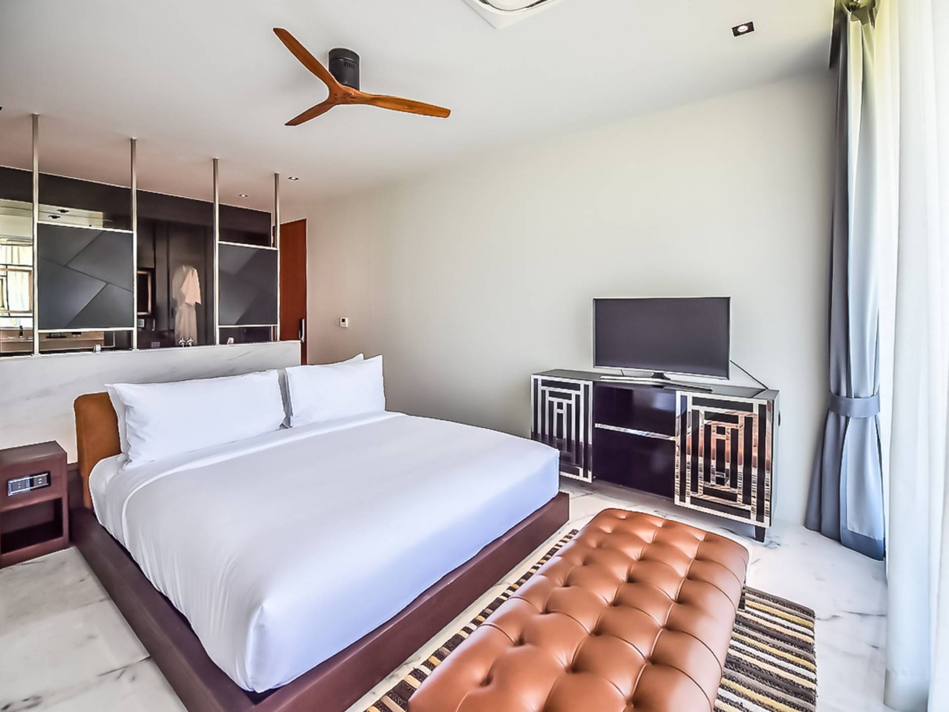 Просторная вилла с 4 спальнями и бассейном - ваш дом вдали от дома. Вилла Pearl предлагает два частных бассейна и частную парковку, окруженную садом, чтобы обеспечить вам абсолютную конфиденциальность. Вилла Pearl состоит из двух гостиных с туалетом, 3 ванных комнат с ванной в каждой спальне и совмещенной душевой. Вы можете приготовить свое любимое блюдо на полностью оборудованной кухне и наслаждаться им со своими близкими, как дома, или посетить наш ресторан Sapphire, где вам предложат блюда местной и интернациональной кухни, которые, несомненно, заставят вас захотеть большего. Устройства для умного дома, такие как XBOX, Android Box, звуковая панель и сабвуфер, также предоставят вам неограниченное количество развлечений. Давайте оставим прекрасные воспоминания на всю жизнь на этом райском острове Пхукет.