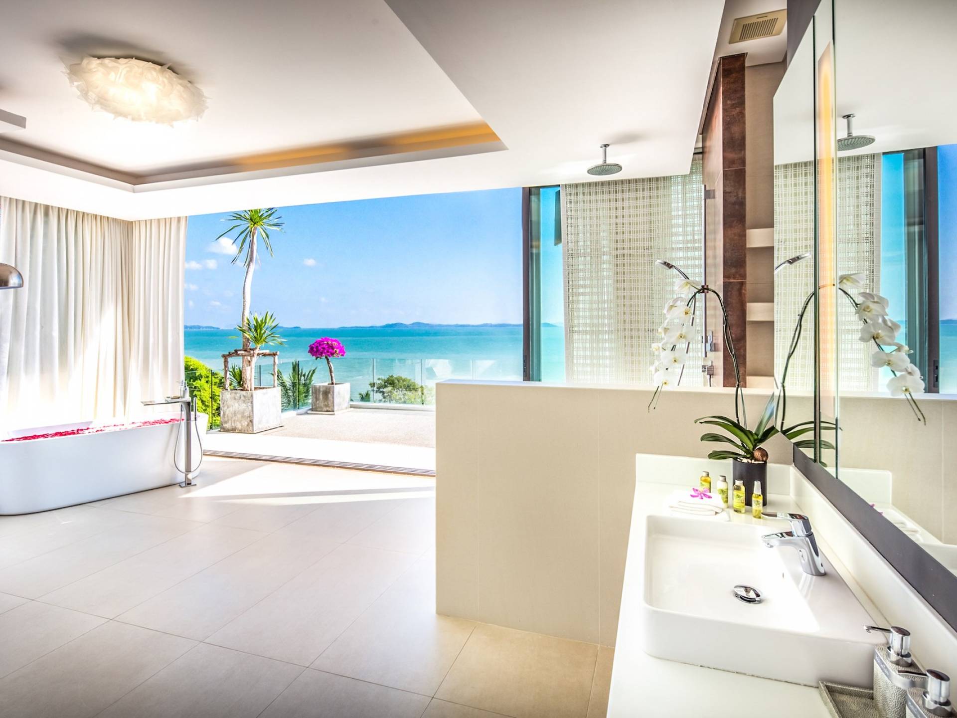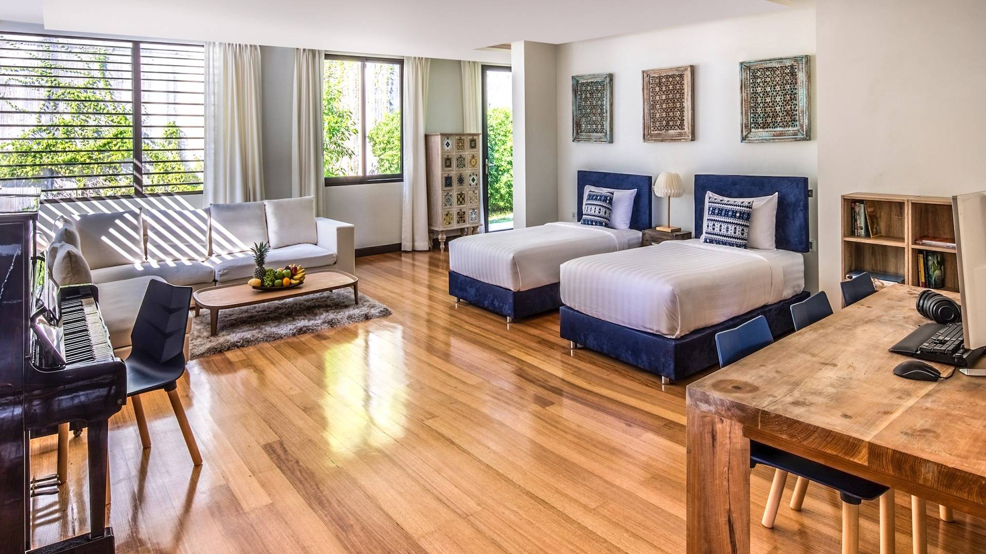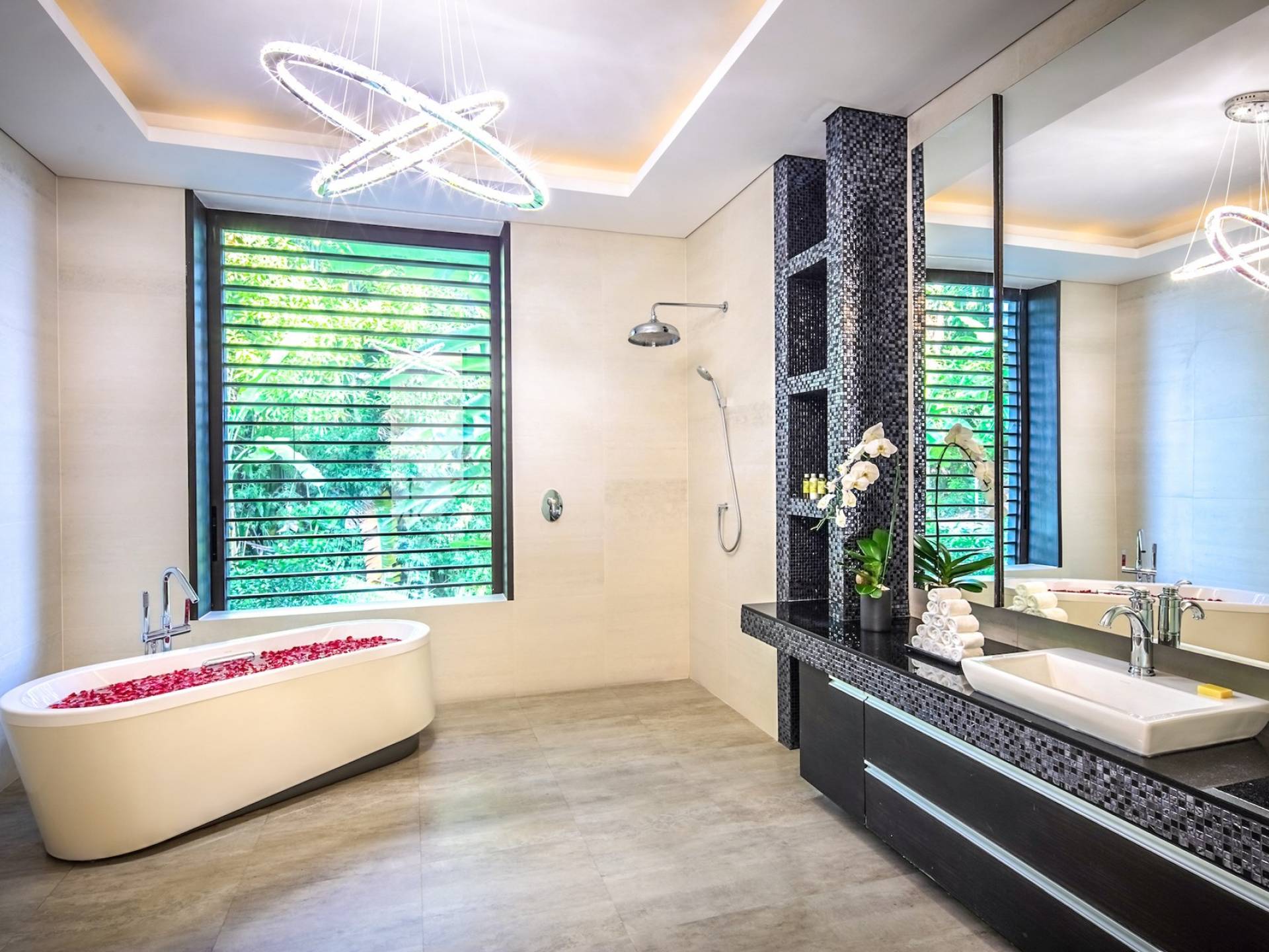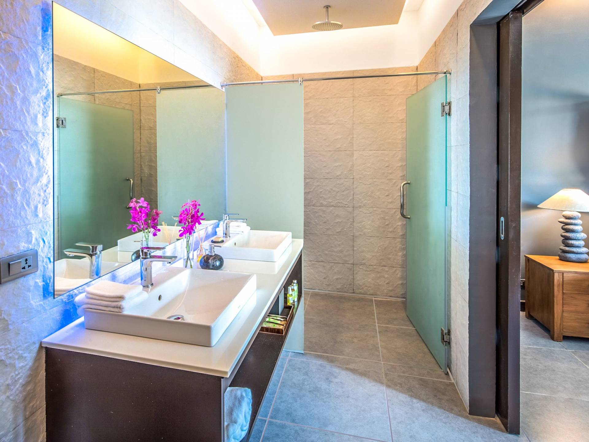 Кроме того, вилла Alchemy сочетает в себе современный дизайн с акцентами в тайском стиле и впечатляющие удобства для развлечения гостей, включая красиво оформленный домашний кинотеатр, полностью оборудованный тренажерный зал, спа-центр и бильярдный стол. Прямо рядом с этими внутренними изысками находятся пейзажные бассейны виллы, великолепно сверкающие под прямым солнцем Таиланда. На вилле есть два отдельных бассейна на двух разных уровнях, один из которых с морской водой. В большей на главном уровне есть неглубокая секция для детей, а также джакузи.