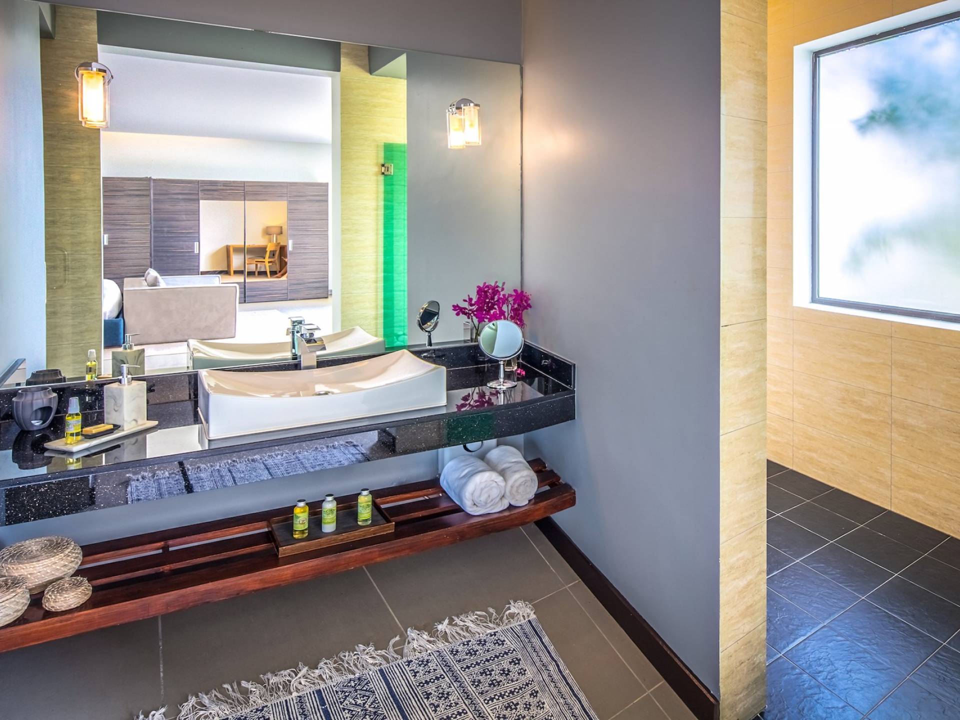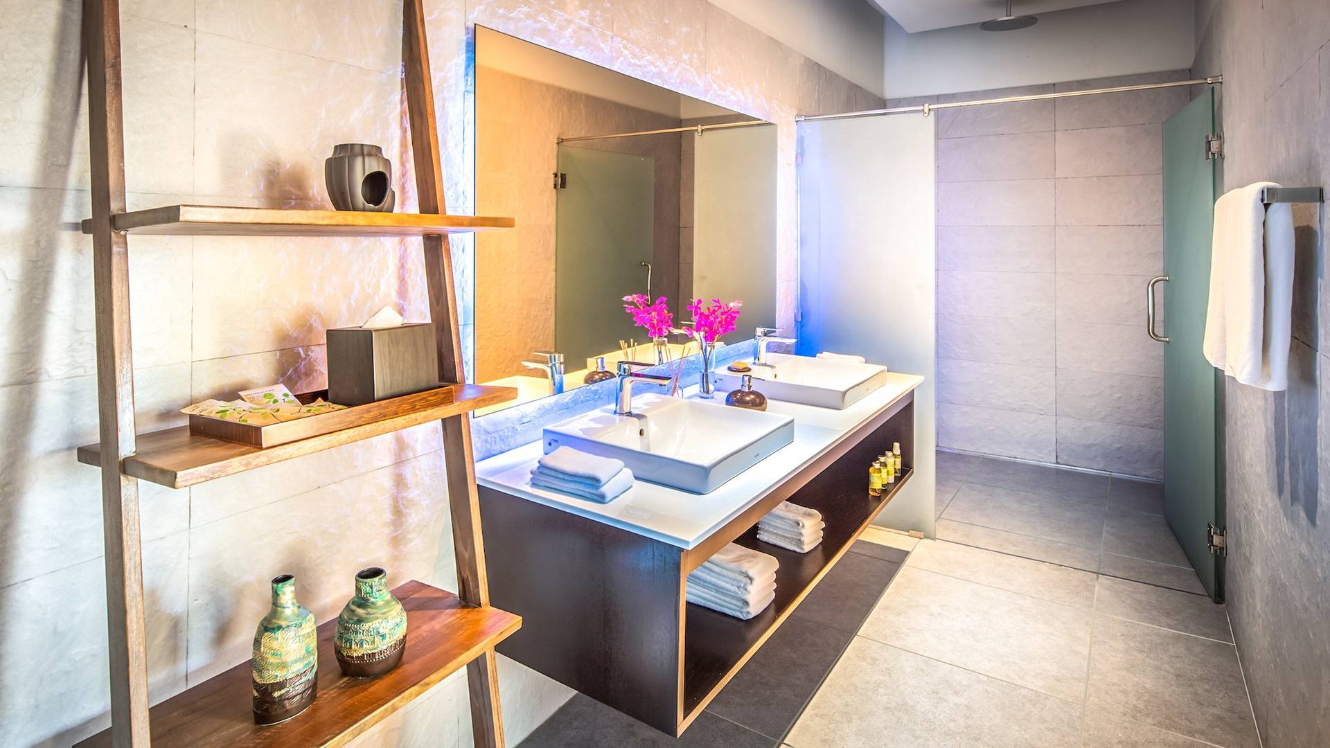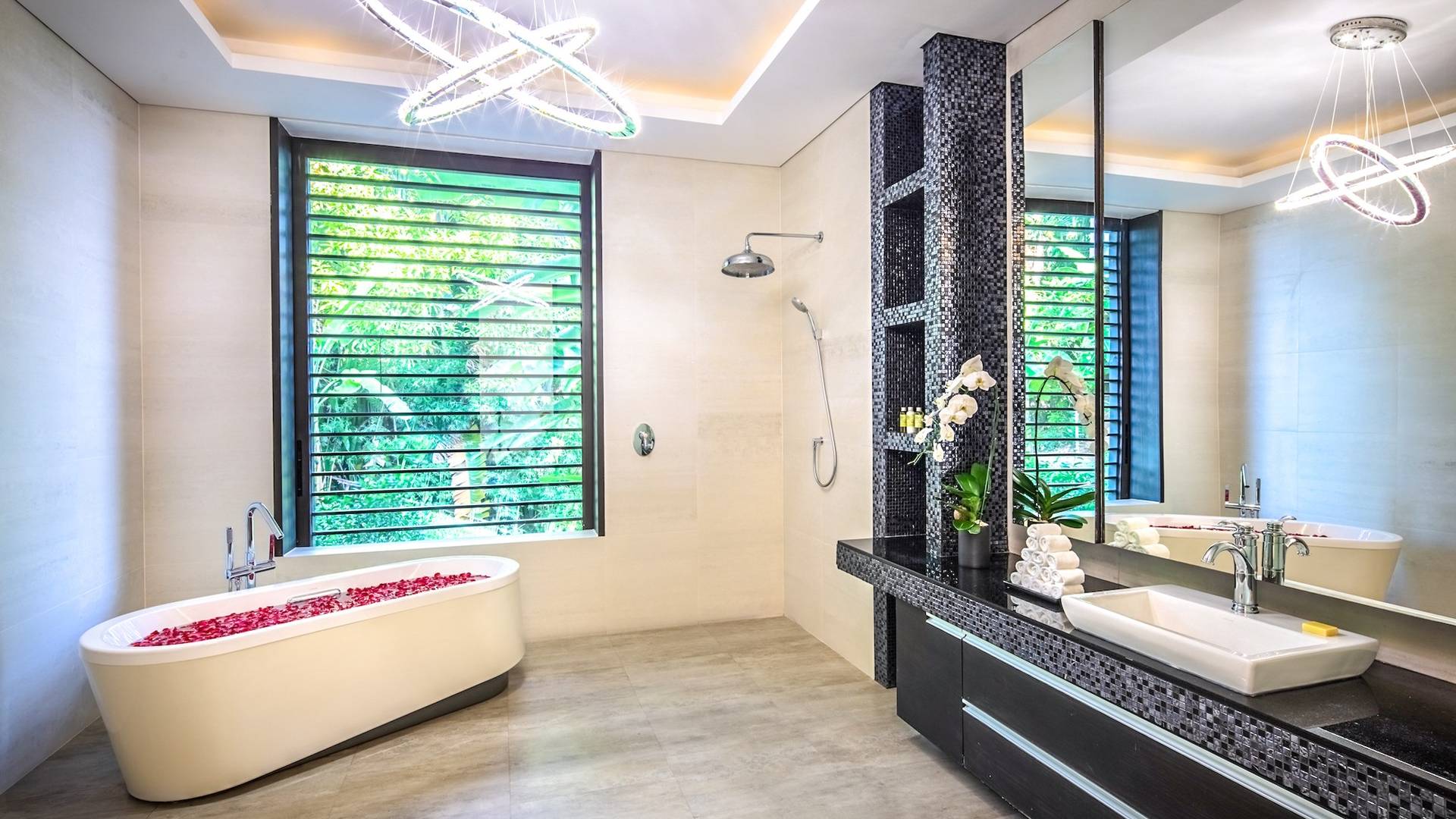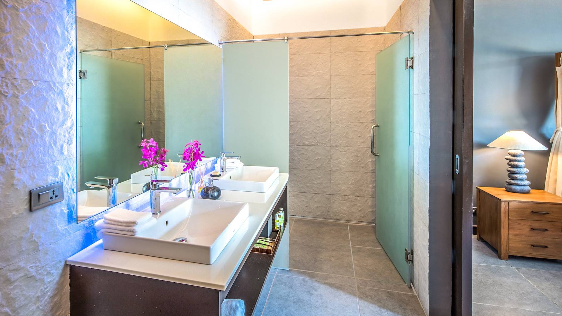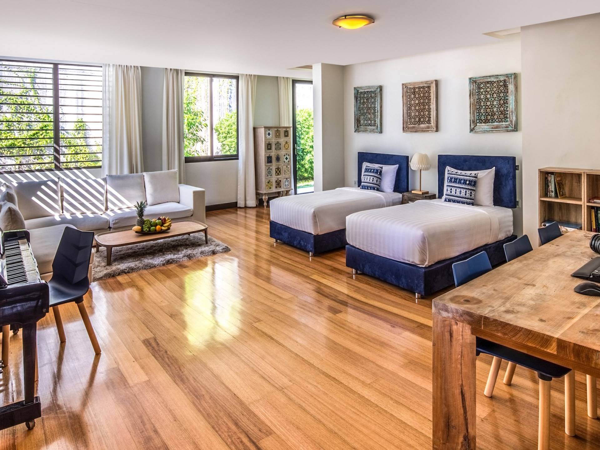 Кроме того, вилла Alchemy сочетает в себе современный дизайн с акцентами в тайском стиле и впечатляющие удобства для развлечения гостей, включая красиво оформленный домашний кинотеатр, полностью оборудованный тренажерный зал, спа-центр и бильярдный стол. Прямо рядом с этими внутренними изысками находятся пейзажные бассейны виллы, великолепно сверкающие под прямым солнцем Таиланда. На вилле есть два отдельных бассейна на двух разных уровнях, один из которых с морской водой. В большей на главном уровне есть неглубокая секция для детей, а также джакузи.