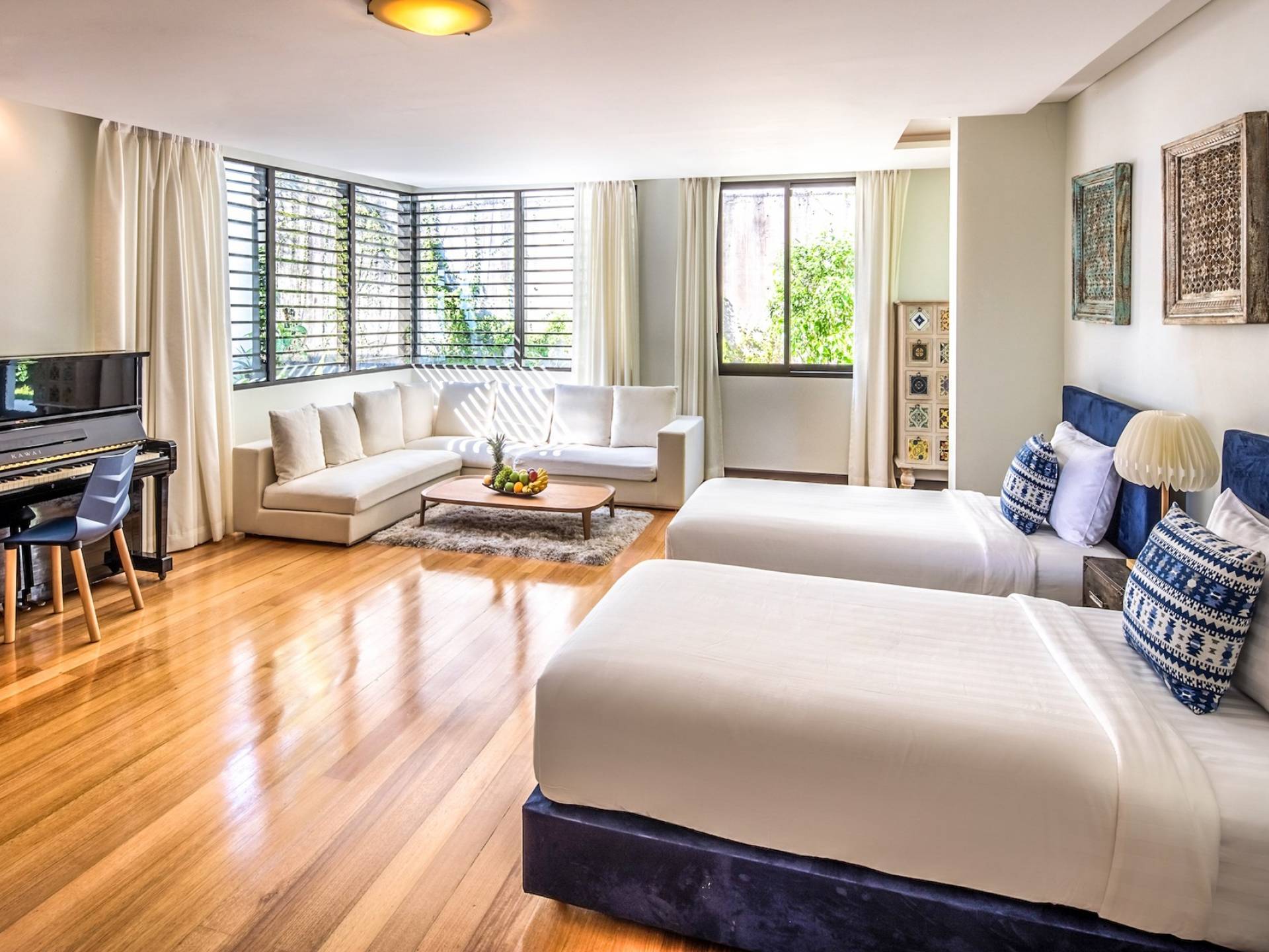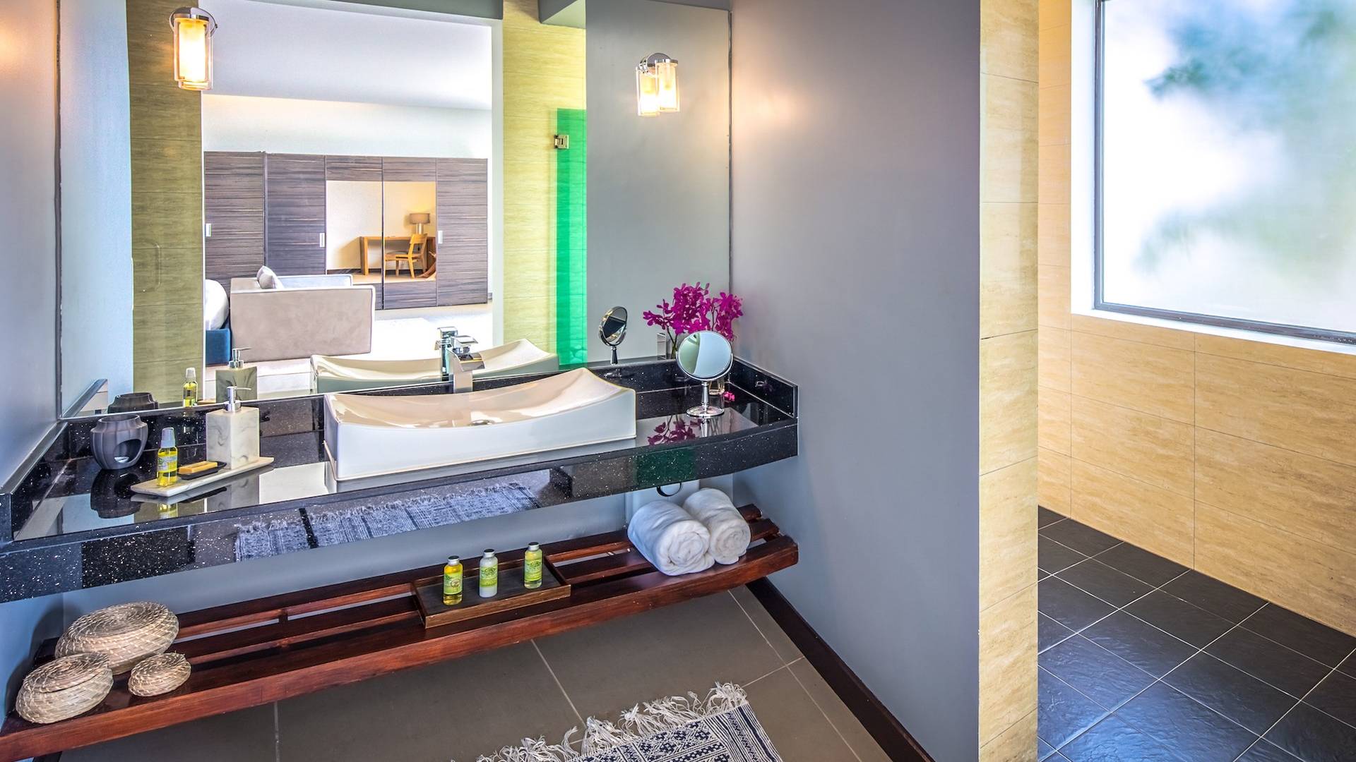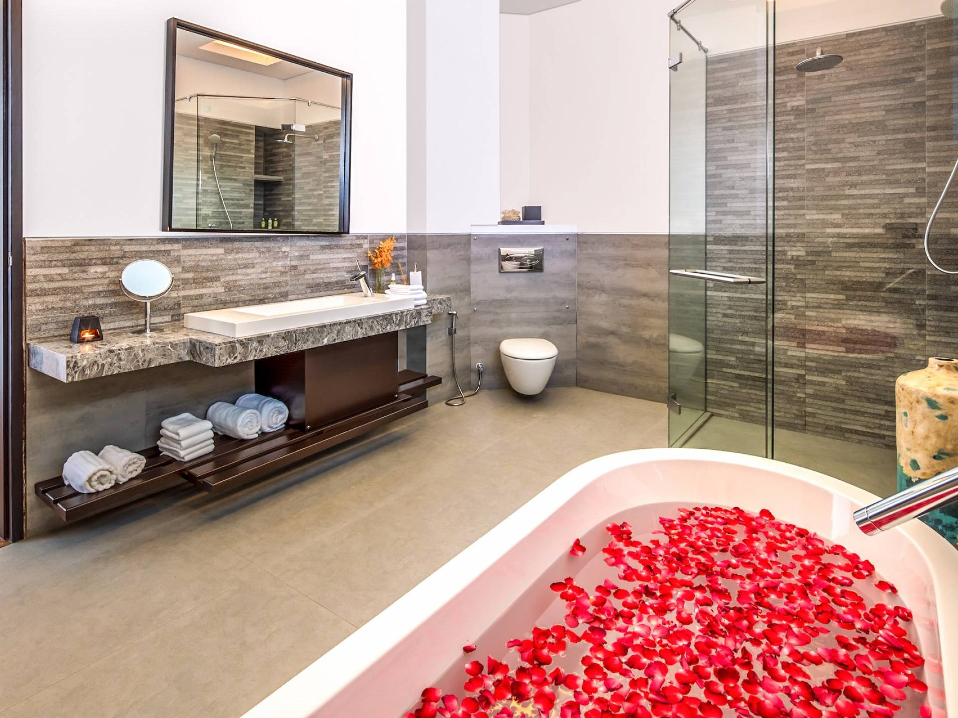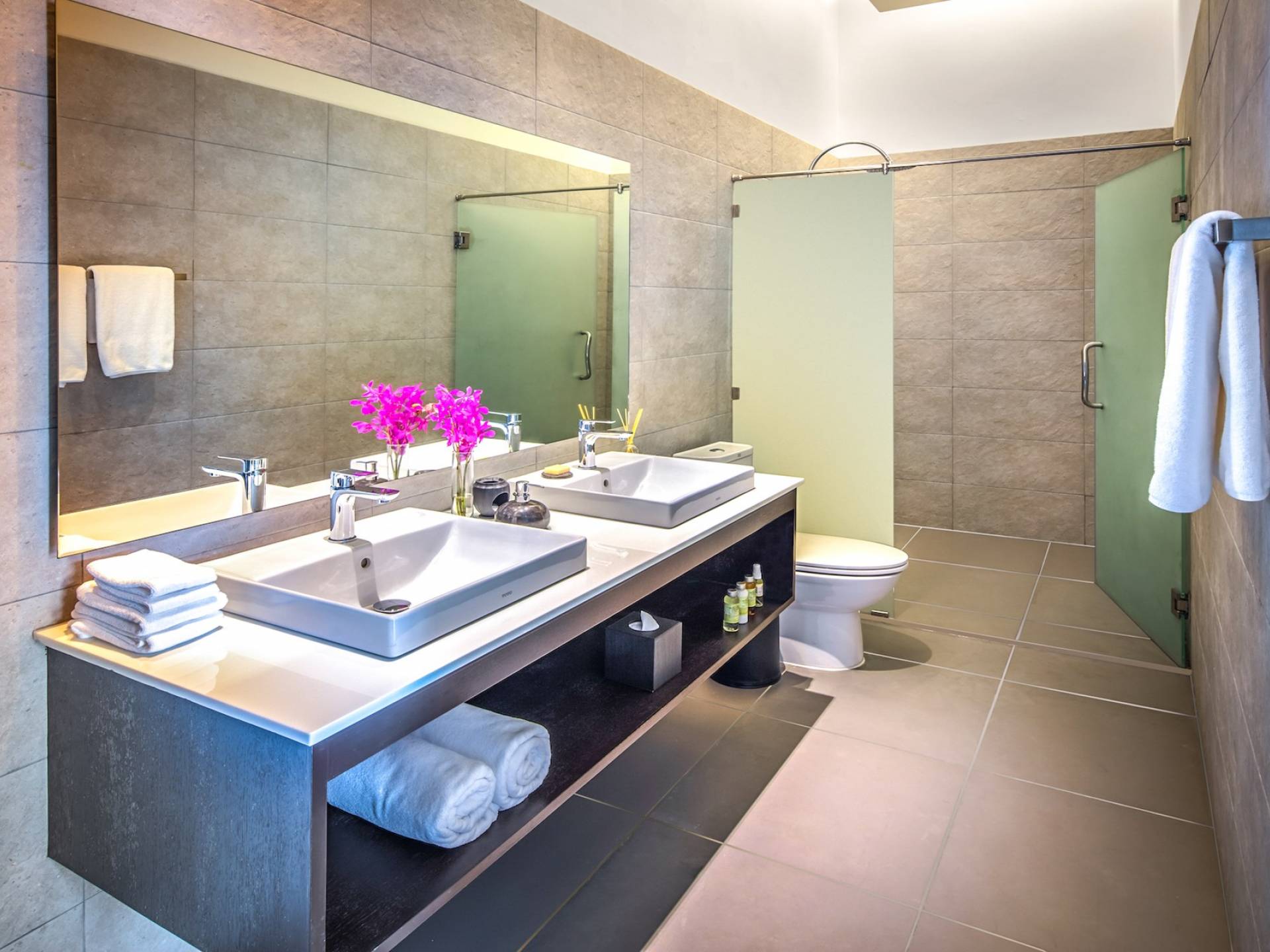 Кроме того, вилла Alchemy сочетает в себе современный дизайн с акцентами в тайском стиле и впечатляющие удобства для развлечения гостей, включая красиво оформленный домашний кинотеатр, полностью оборудованный тренажерный зал, спа-центр и бильярдный стол. Прямо рядом с этими внутренними изысками находятся пейзажные бассейны виллы, великолепно сверкающие под прямым солнцем Таиланда. На вилле есть два отдельных бассейна на двух разных уровнях, один из которых с морской водой. В большей на главном уровне есть неглубокая секция для детей, а также джакузи.