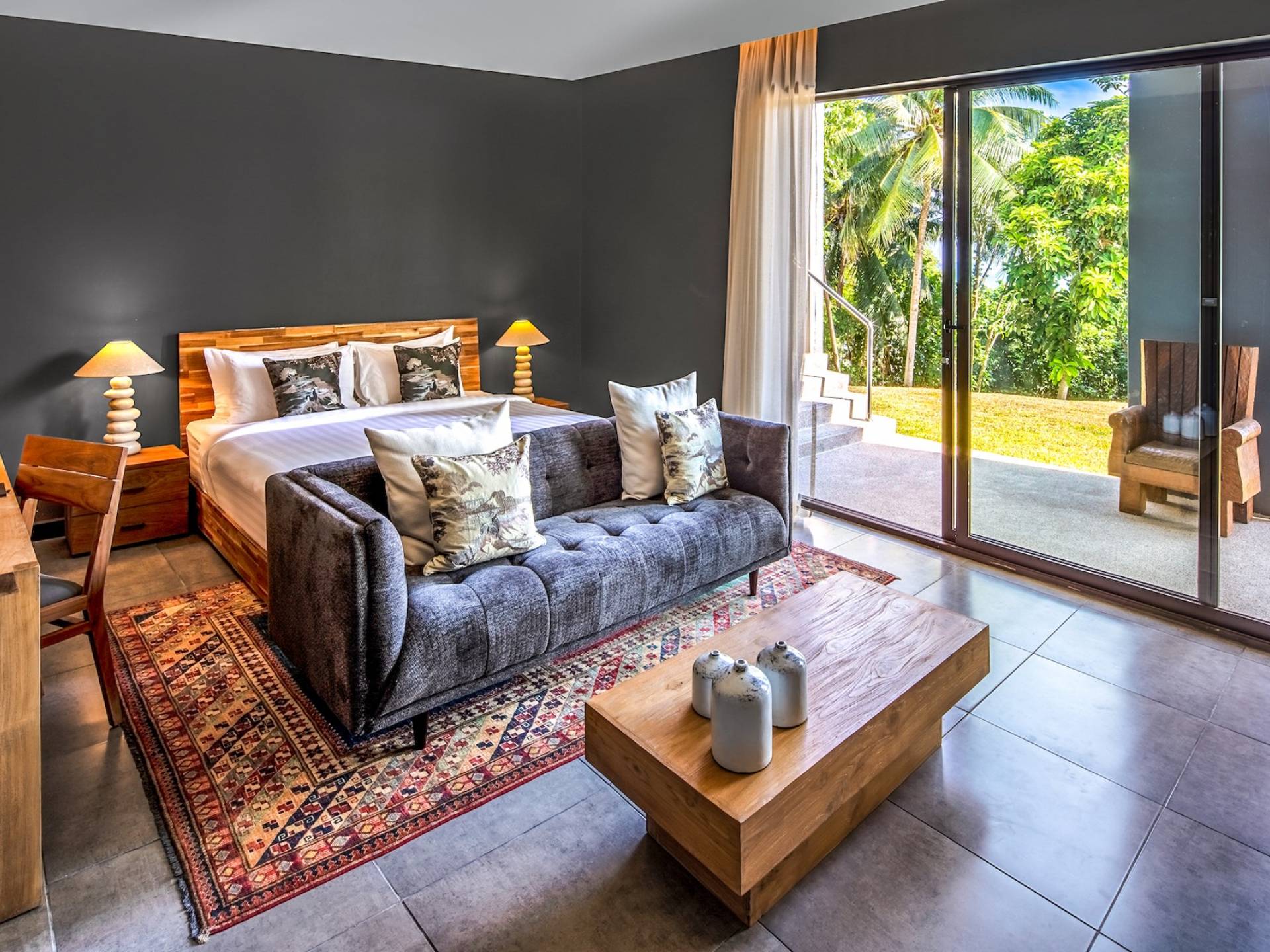 Немного дальше вниз по склону ряд деревьев скрывает песчаный пляж, идеально подходящий для вечерних прогулок. Расположенная на тихом восточном побережье Пхукета, вилла Alchemy предлагает полное уединение. Шесть профессионально обученных сотрудников предоставят первоклассные услуги, а личный шеф-повар готов подавать вам блюда ресторанного уровня.
