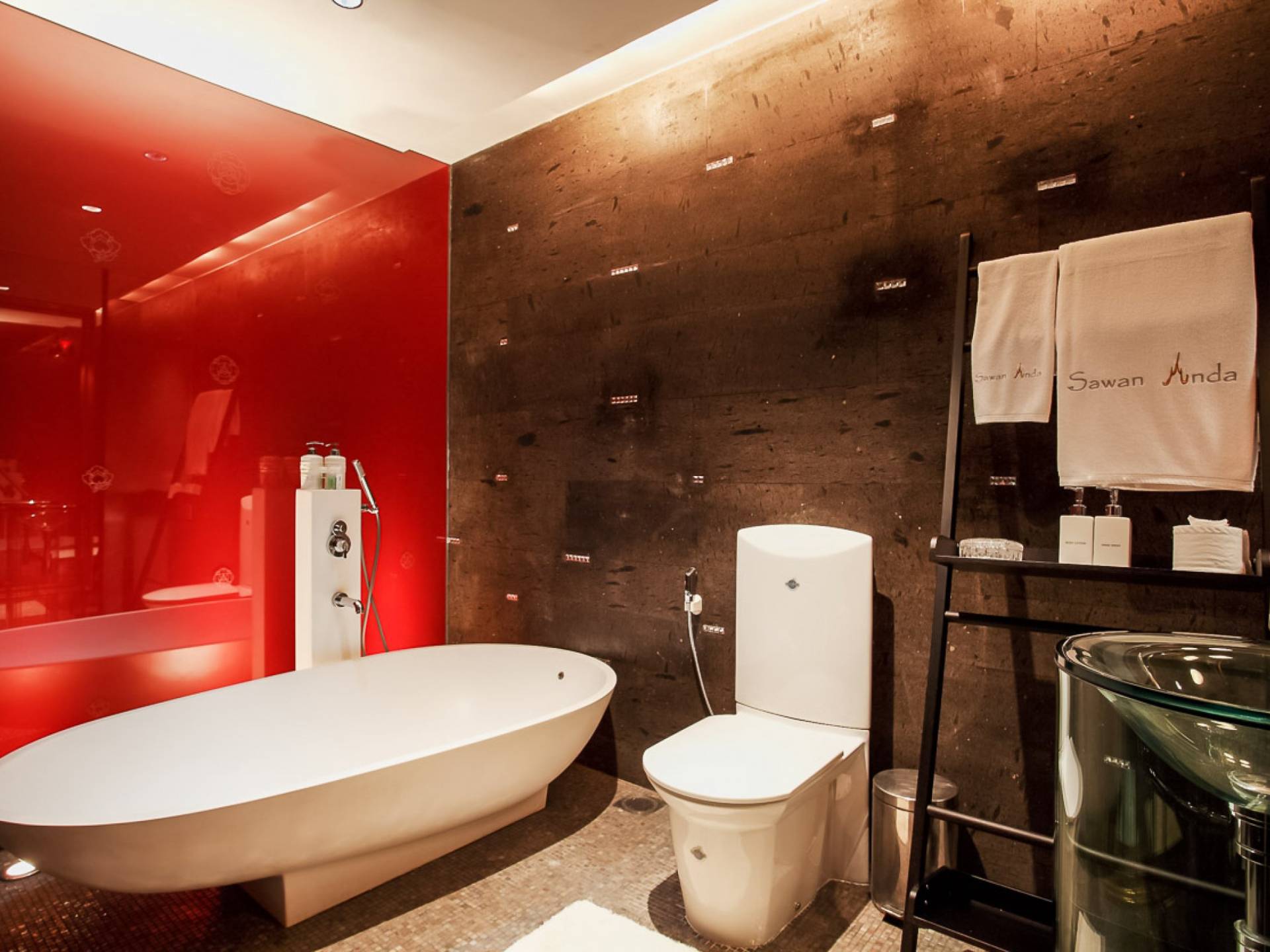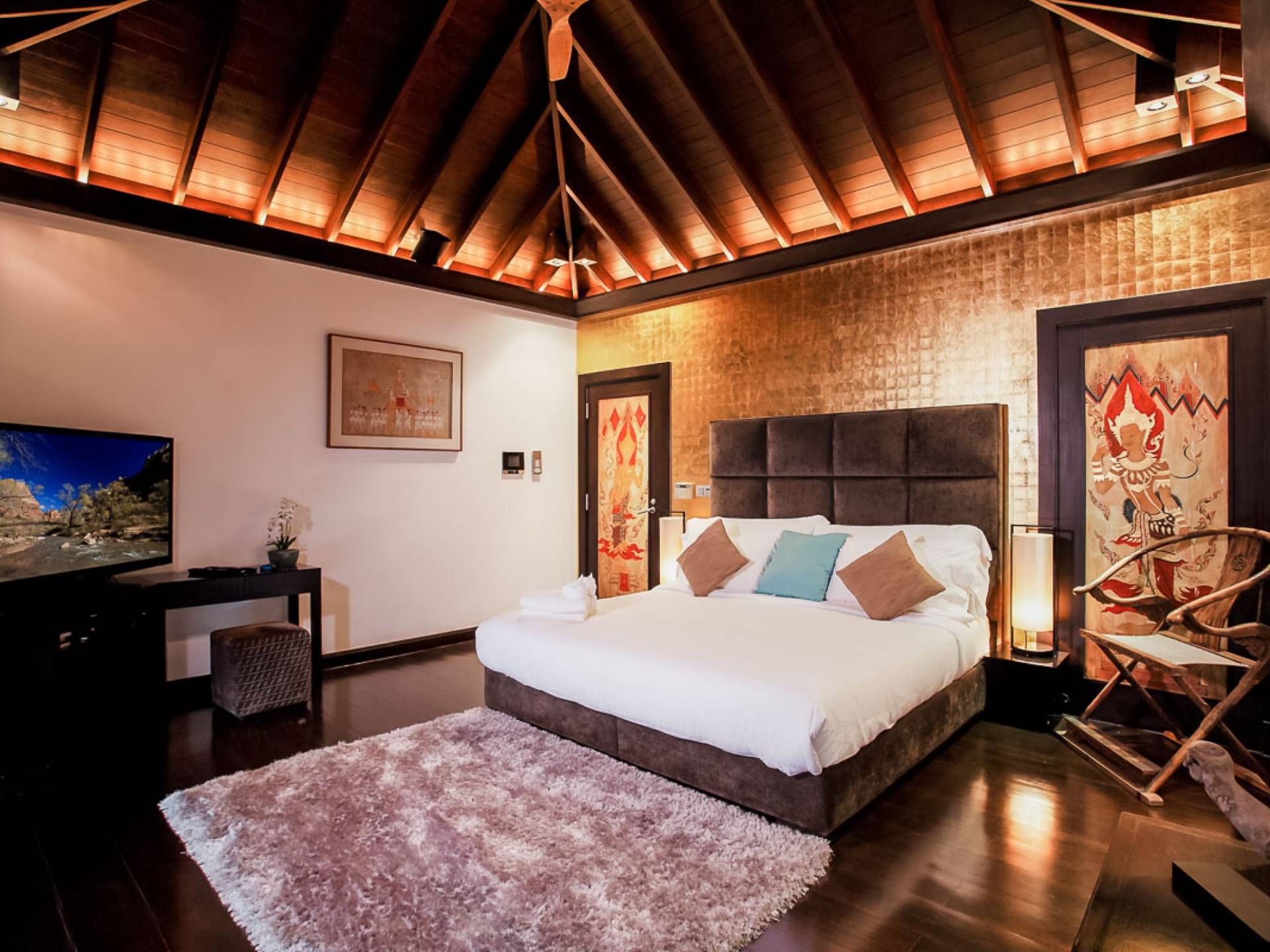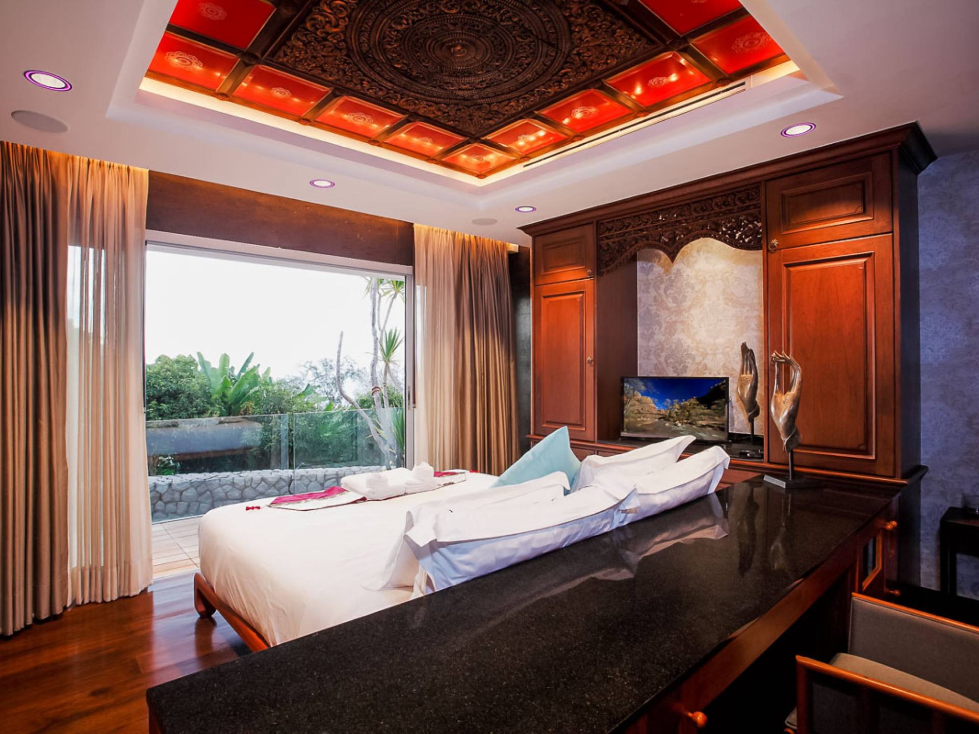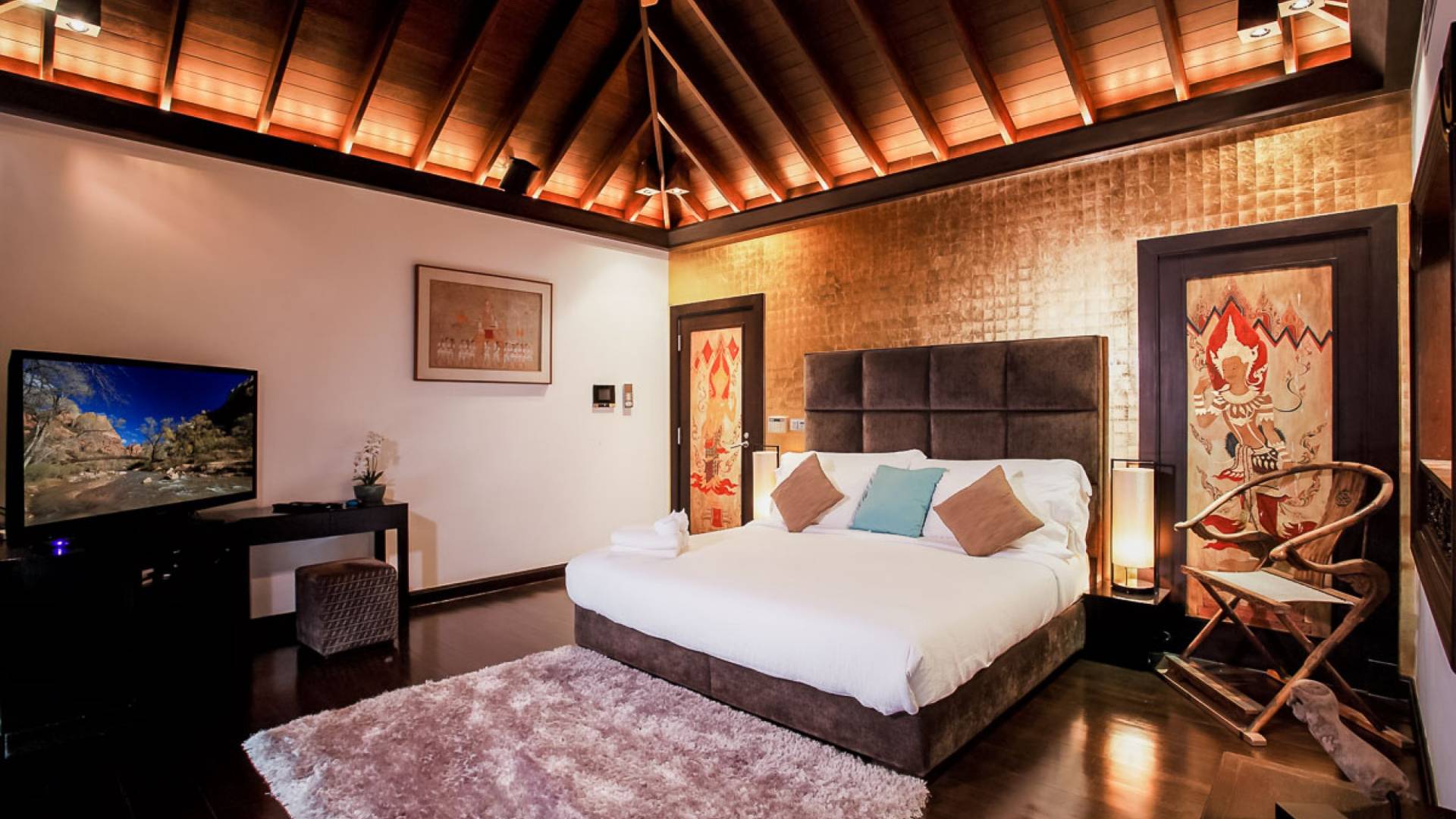 Sawan Anda Villa Phuket находится на территории сестринской виллы (Bluesiam Villa) с высококачественным декором и произведениями искусства. От замысловатых входных дверей и каменных стен до скульптурных рук, удерживающих перила лестницы, Sawan Anda наполнен интригующими деталями, вдохновленными классической тайской архитектурой. Традиции сочетаются с современной роскошью в большом зале, где старинные деревянные стулья и скульптуры выставлены рядом с современными предметами с чистыми линиями. Современная гостиная и обеденная зона открытой планировки и полностью оборудованная кухня выходят на террасу через откидные стеклянные стены. В каждой из трех спален виллы есть кровать размера «king-size», ванная комната, гостиная и вид на океан. Две спальни имеют собственные балконы, а третья выходит на террасу. Как и в основных жилых помещениях, в спальнях красиво продуманы традиционные элементы наряду с современной мебелью и произведениями искусства.