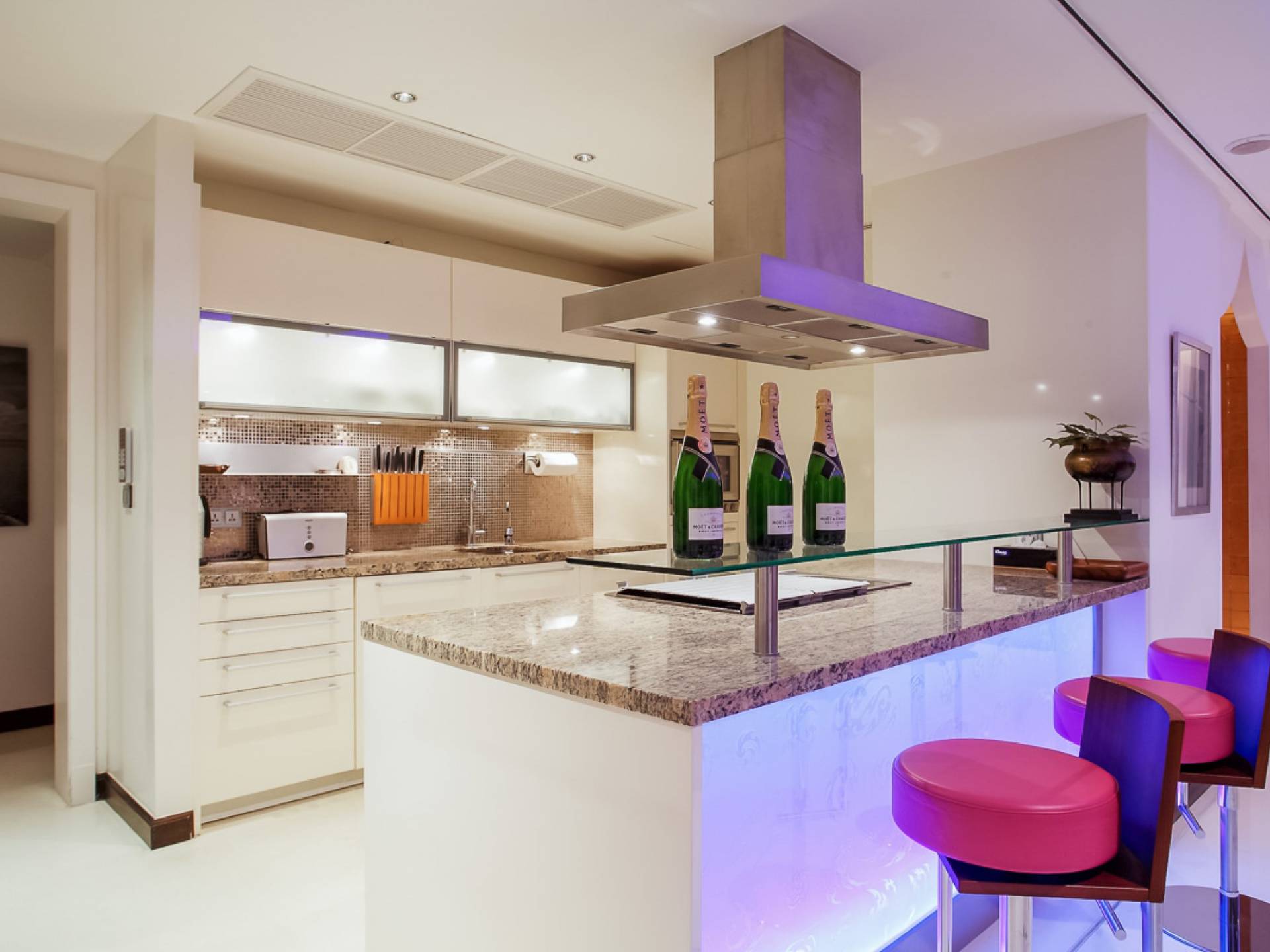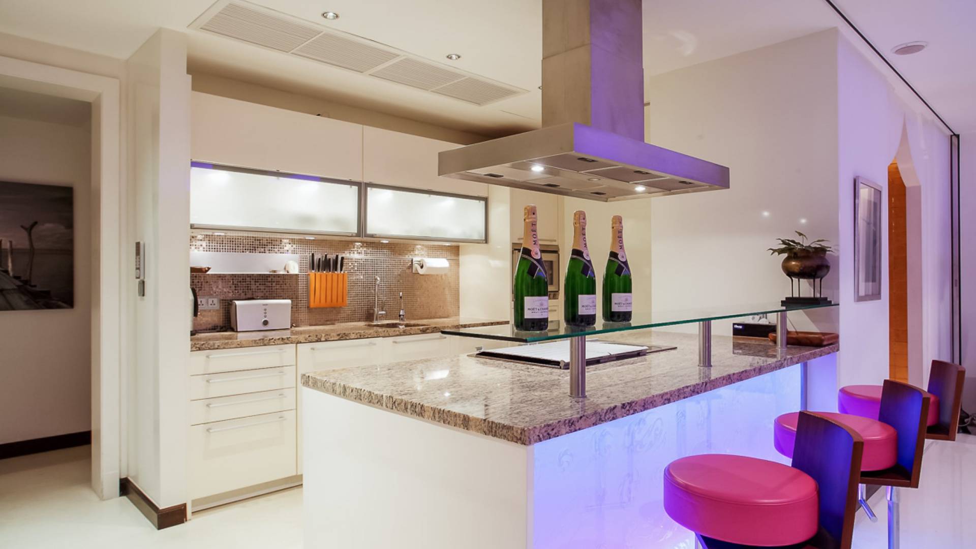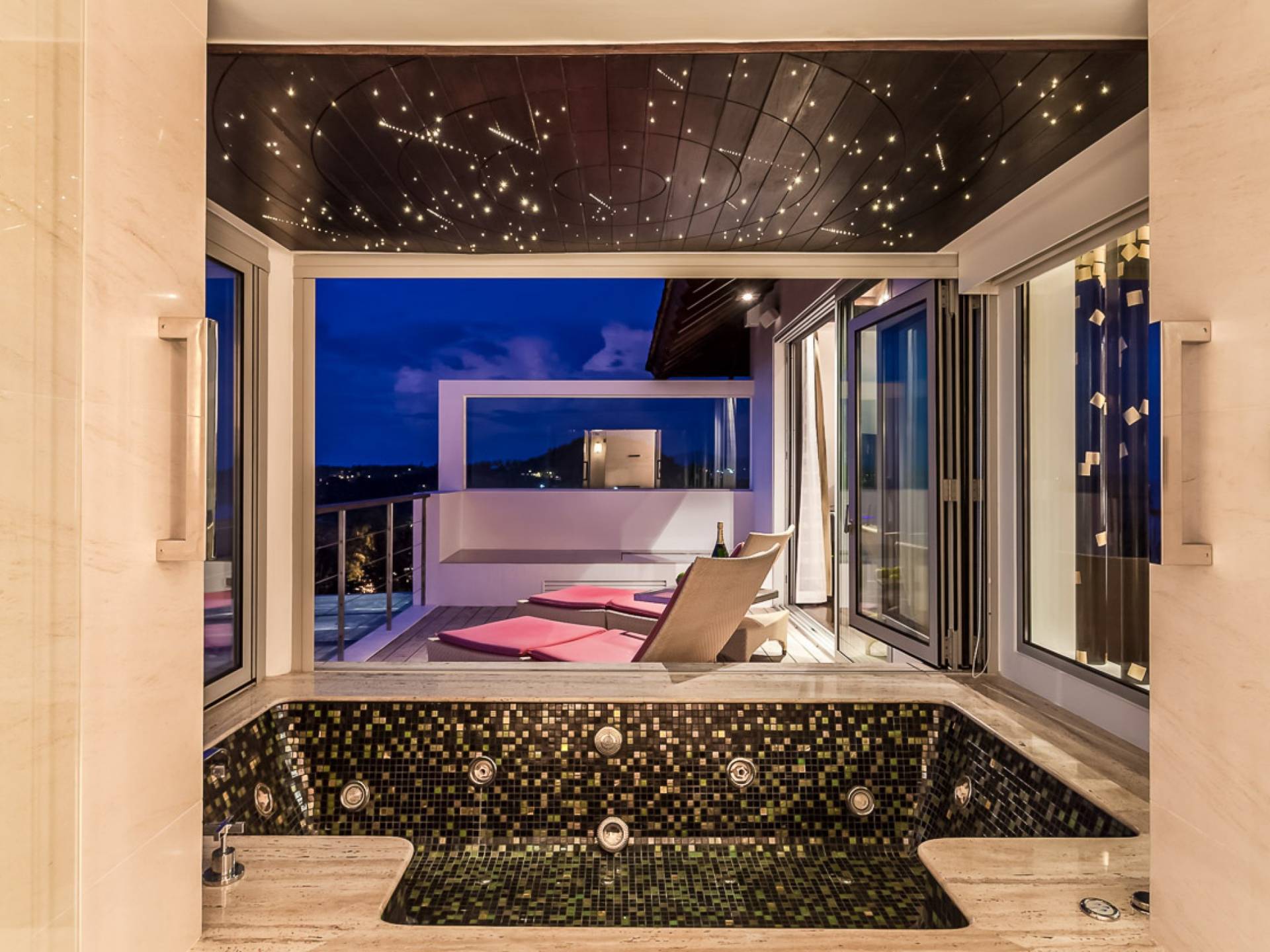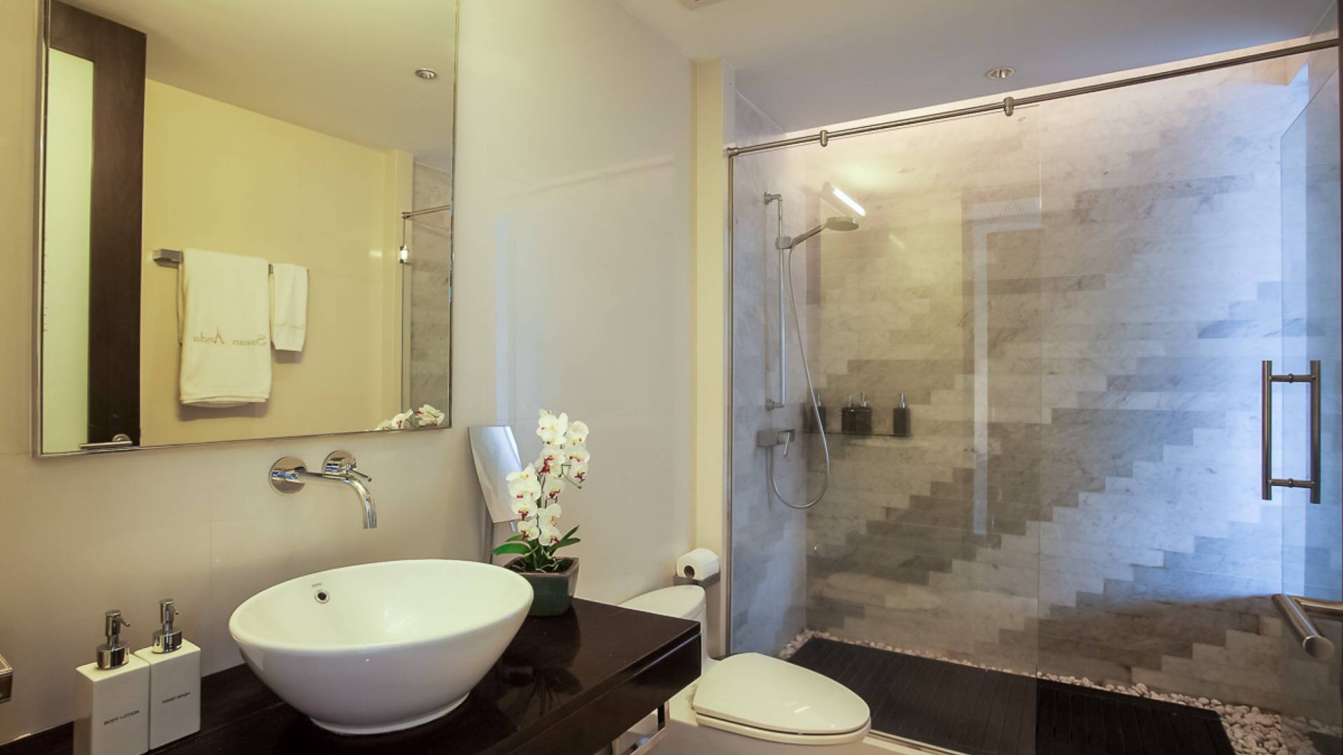 Sawan Anda Villa Phuket находится на территории сестринской виллы (Bluesiam Villa) с высококачественным декором и произведениями искусства. От замысловатых входных дверей и каменных стен до скульптурных рук, удерживающих перила лестницы, Sawan Anda наполнен интригующими деталями, вдохновленными классической тайской архитектурой. Традиции сочетаются с современной роскошью в большом зале, где старинные деревянные стулья и скульптуры выставлены рядом с современными предметами с чистыми линиями. Современная гостиная и обеденная зона открытой планировки и полностью оборудованная кухня выходят на террасу через откидные стеклянные стены. В каждой из трех спален виллы есть кровать размера «king-size», ванная комната, гостиная и вид на океан. Две спальни имеют собственные балконы, а третья выходит на террасу. Как и в основных жилых помещениях, в спальнях красиво продуманы традиционные элементы наряду с современной мебелью и произведениями искусства.