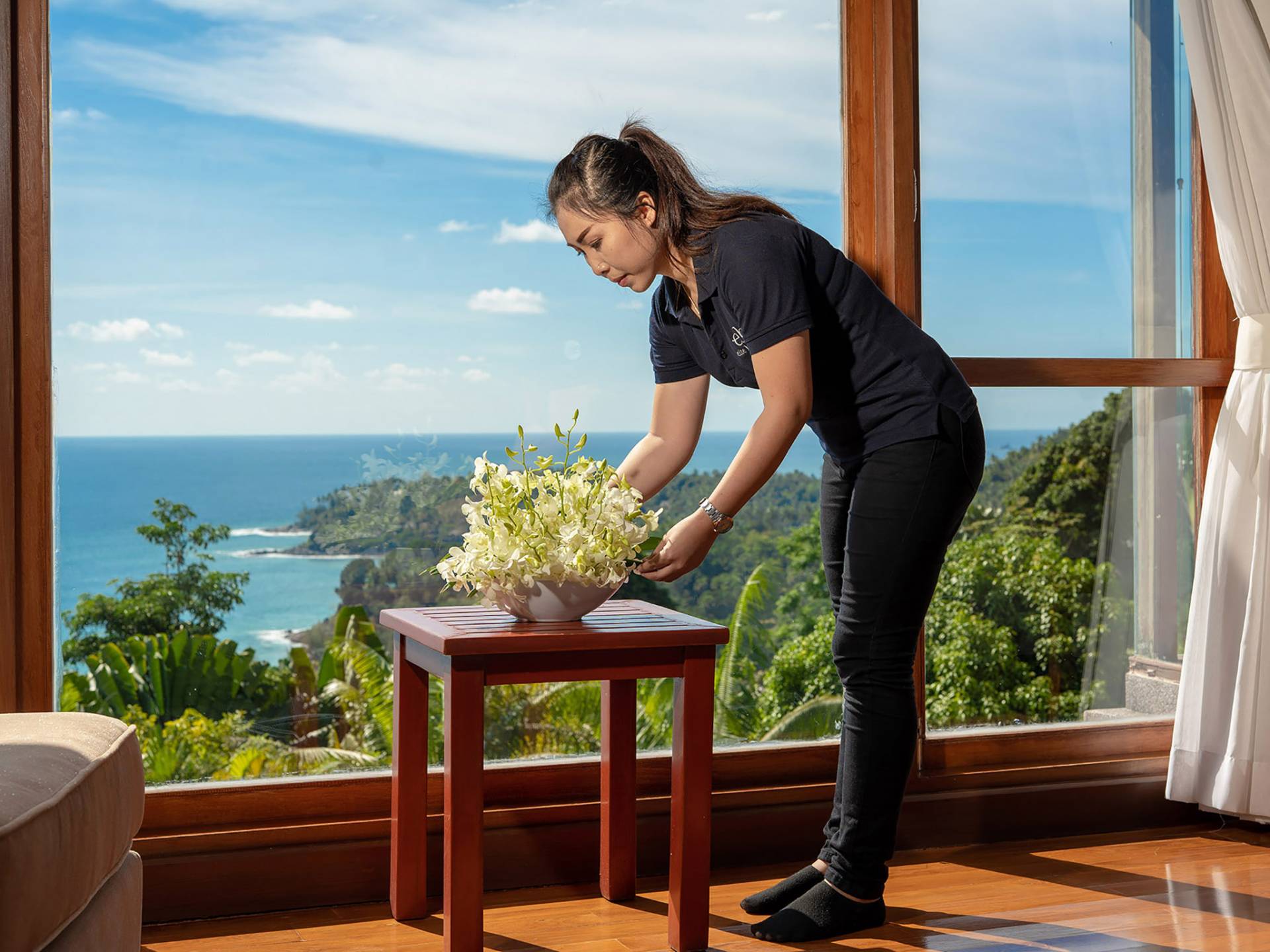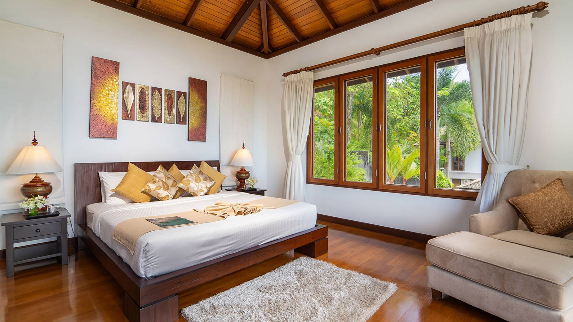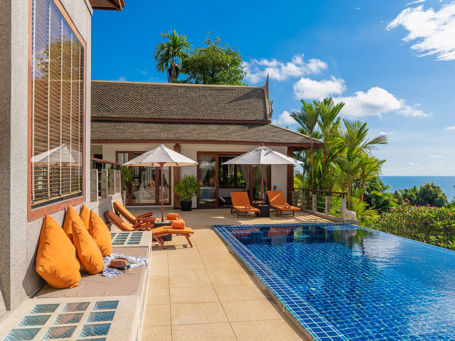 Расположенная на склоне холма над пляжем Сурин, вилла Baan Bon Khao Phuket - это спокойное место для отдыха с потрясающим видом на море. Эта величественная вилла с четырьмя спальнями сочетает в себе северный тайский и современный стиль и понравится семьям и компаниям друзей. Пейзажный бассейн - это место, где можно полюбоваться захватывающими закатами, а окружающие террасы, обеденные зоны и павильоны гостиной предлагают роскошные места для отдыха. Джакузи в главной спальне и ванны в номерах-люксах еще больше усиливают расслабляющую и романтическую атмосферу. Сервис здесь на высшем уровне, с полным набором персонала, включая менеджера виллы, шеф-повара и водителя.