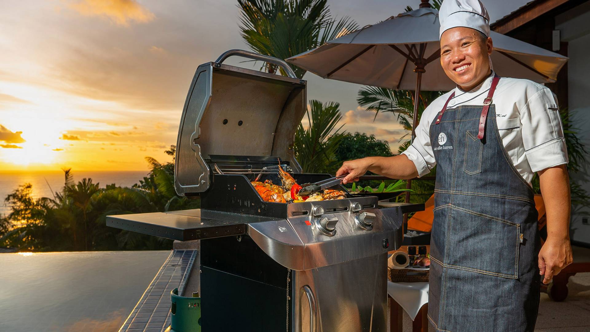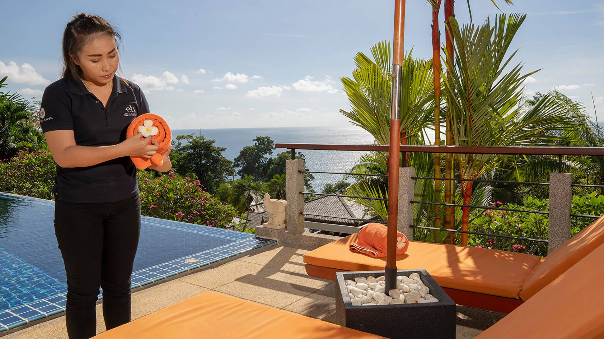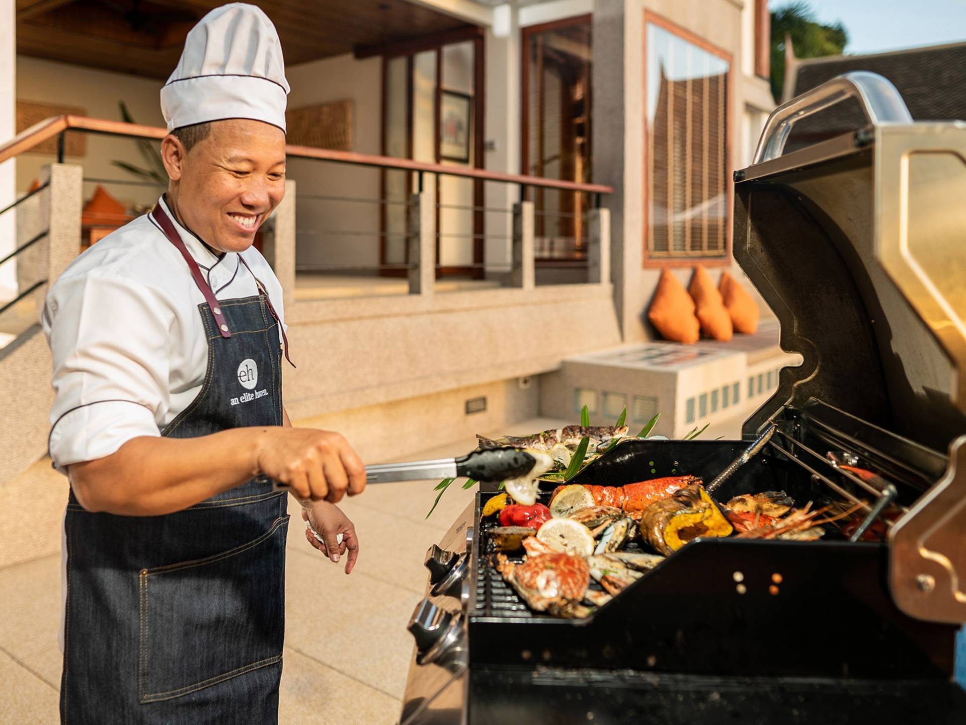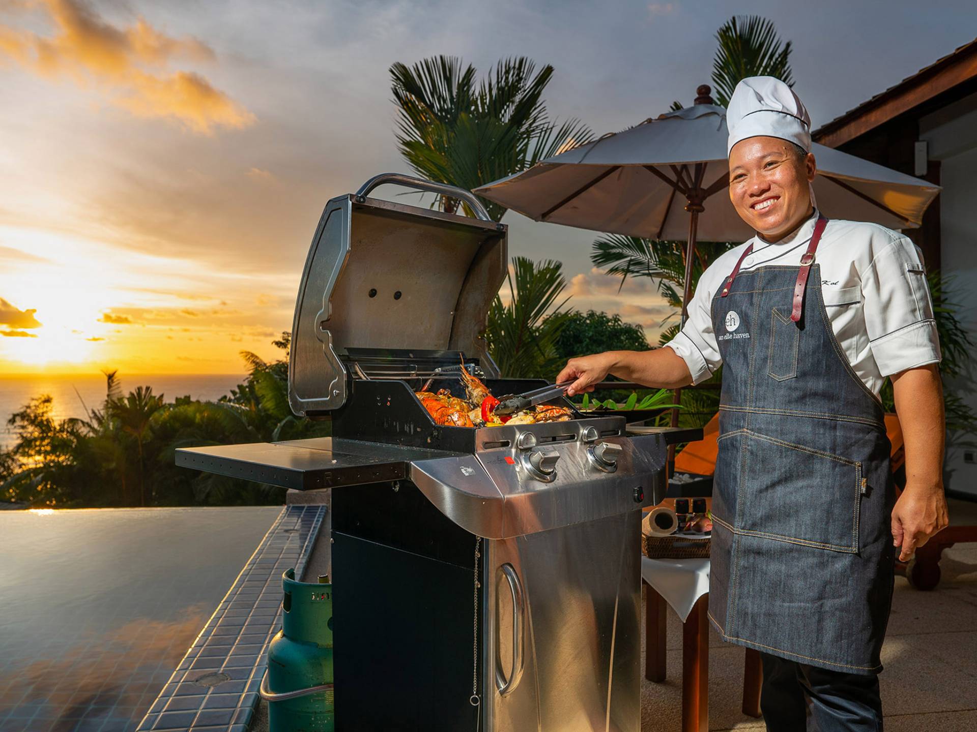 Расположенная на склоне холма над пляжем Сурин, вилла Baan Bon Khao Phuket - это спокойное место для отдыха с потрясающим видом на море. Эта величественная вилла с четырьмя спальнями сочетает в себе северный тайский и современный стиль и понравится семьям и компаниям друзей. Пейзажный бассейн - это место, где можно полюбоваться захватывающими закатами, а окружающие террасы, обеденные зоны и павильоны гостиной предлагают роскошные места для отдыха. Джакузи в главной спальне и ванны в номерах-люксах еще больше усиливают расслабляющую и романтическую атмосферу. Сервис здесь на высшем уровне, с полным набором персонала, включая менеджера виллы, шеф-повара и водителя.