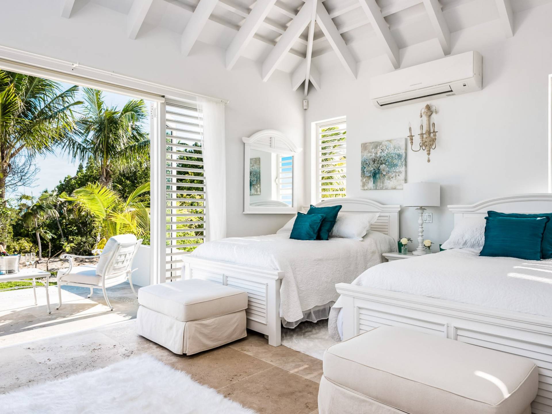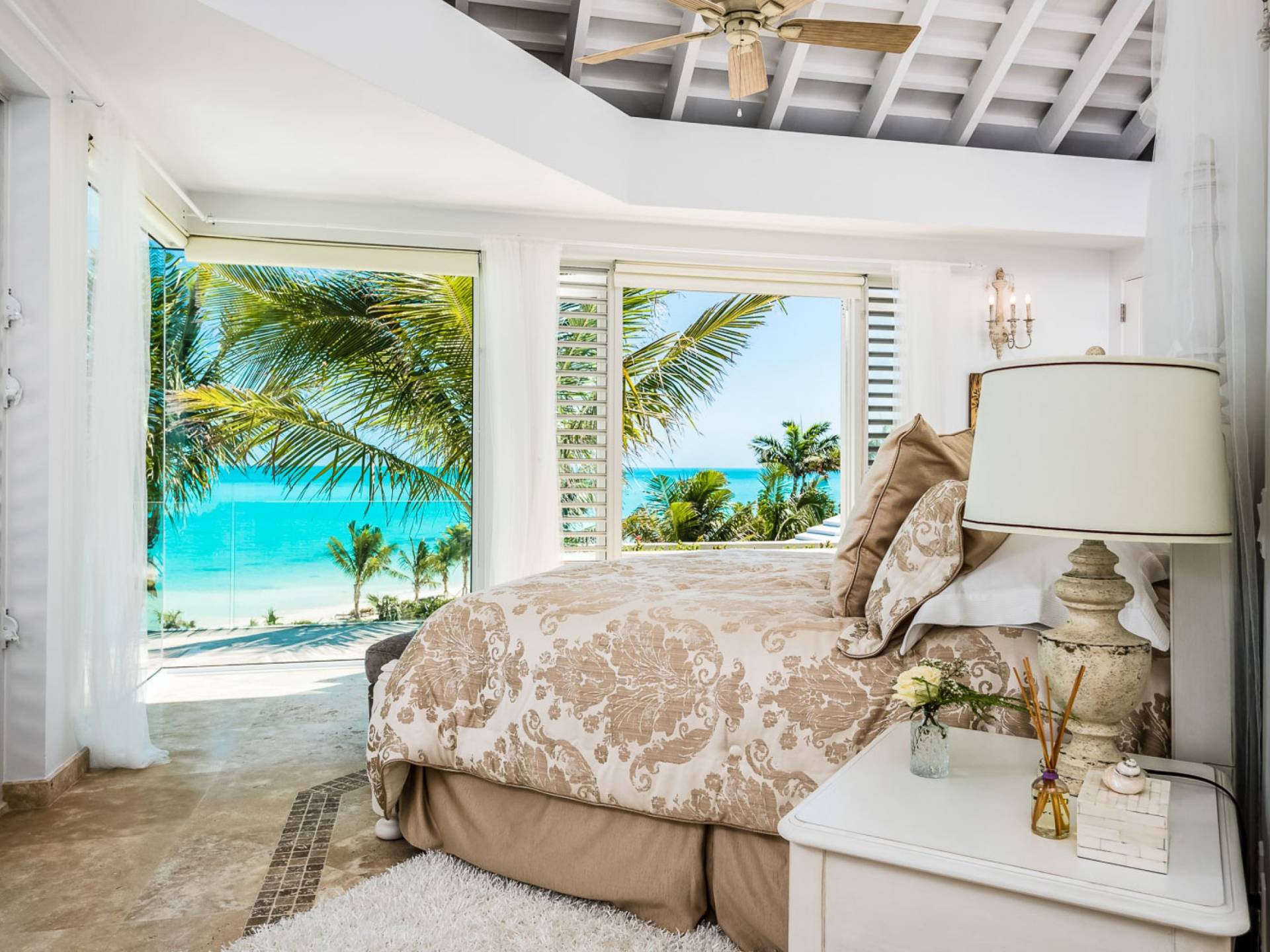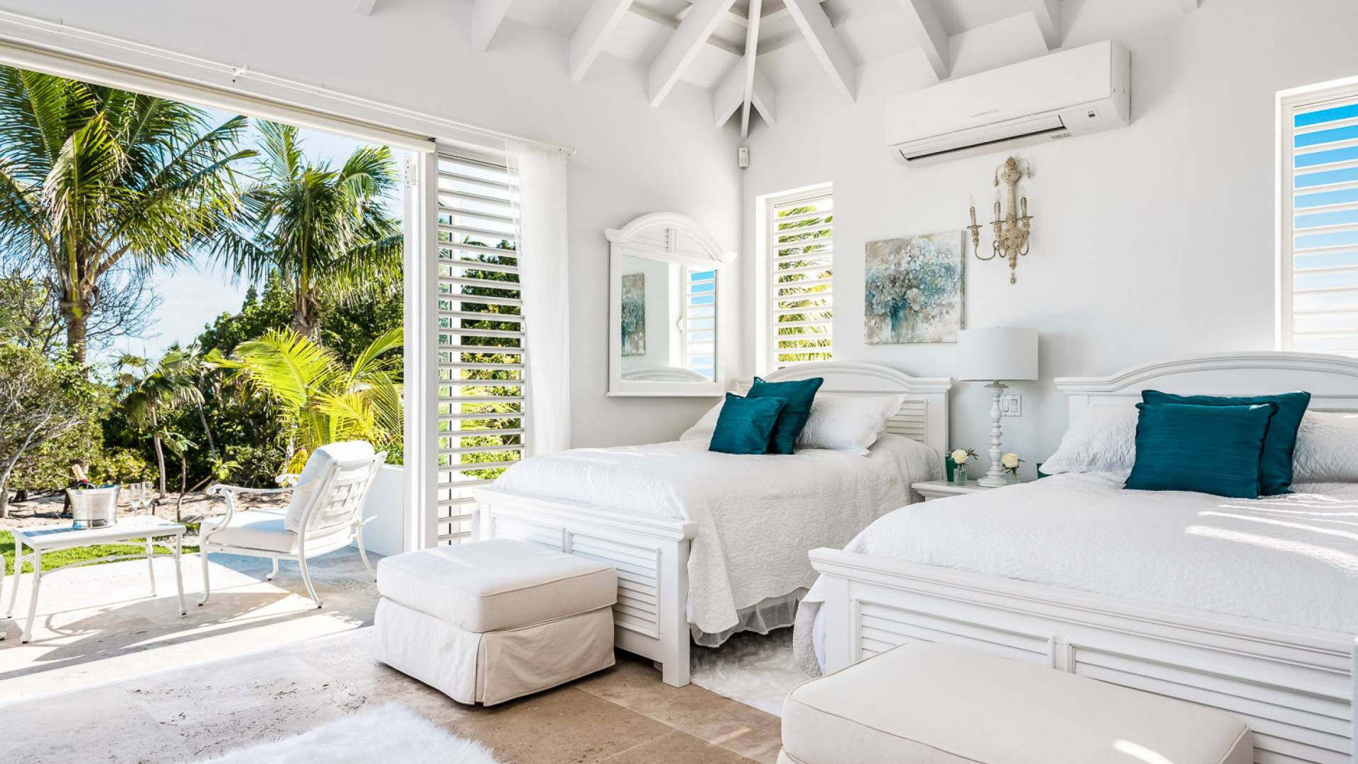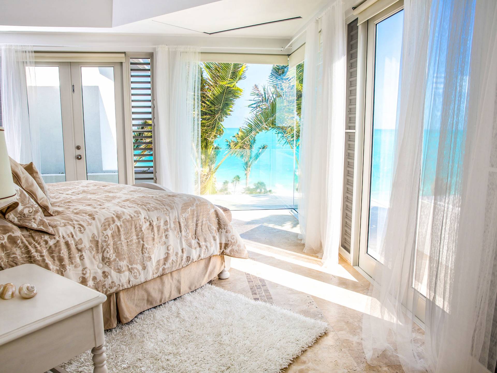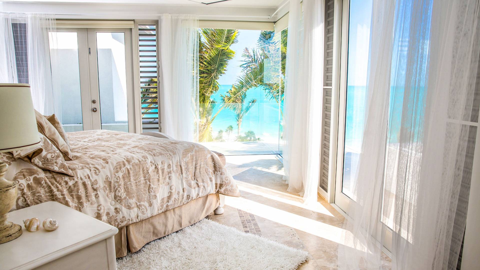 Вилла Pearl West имеет восемь великолепных спален с ванными комнатами, которые отражают волшебную красоту островов Теркс и Кайкос. Просторная главная спальня с раздвижными стеклянными дверями выходит на красивый балкон с потрясающими видами. В остальных гостевых спальнях, также роскошно обставленных, также есть ванная комната, потолочные вентиляторы, кондиционер, телевизор с плоским 55-дюймовым экраном, Apple TV, Netflix, Wi-Fi, сейф и холодильник.