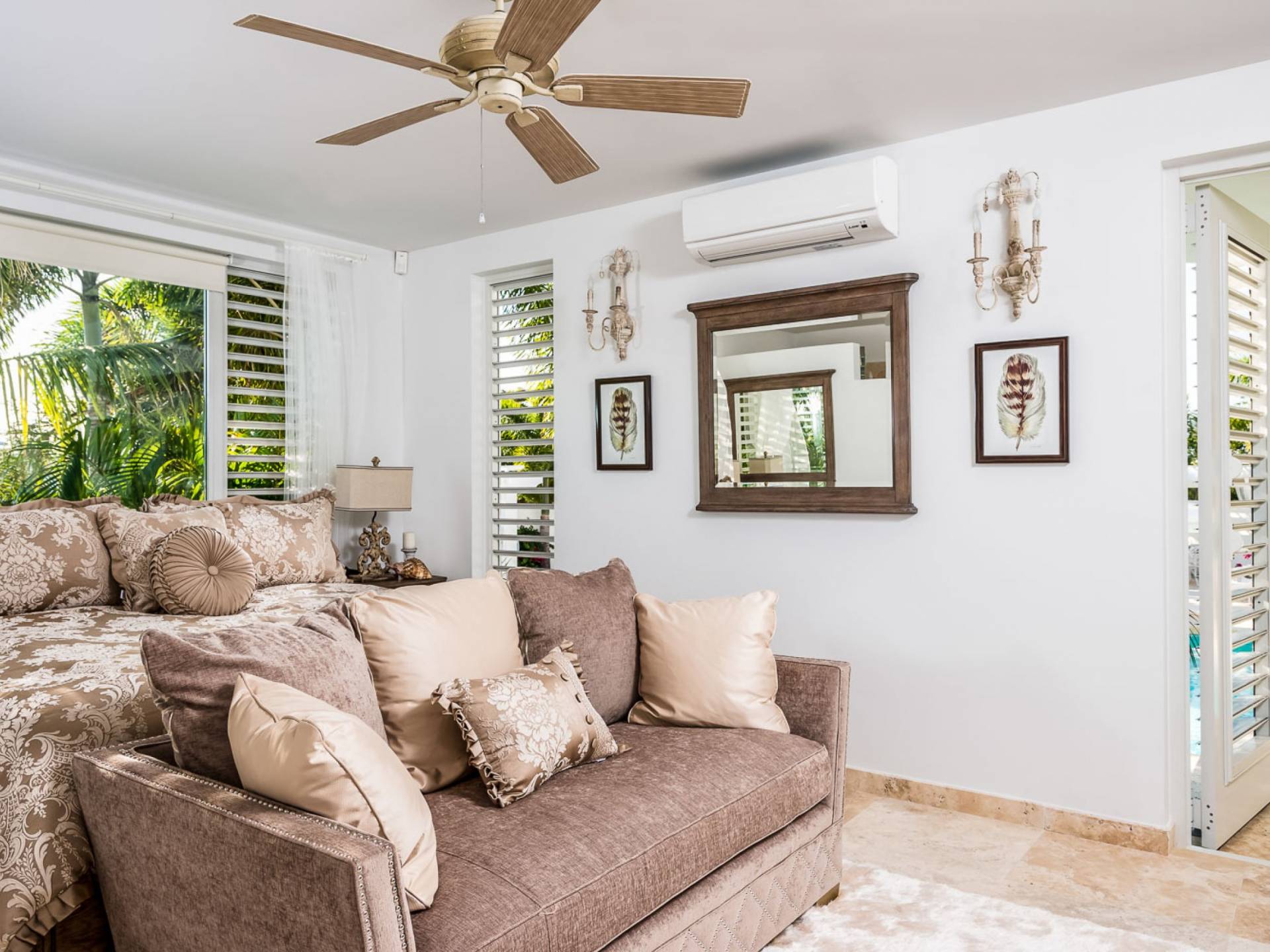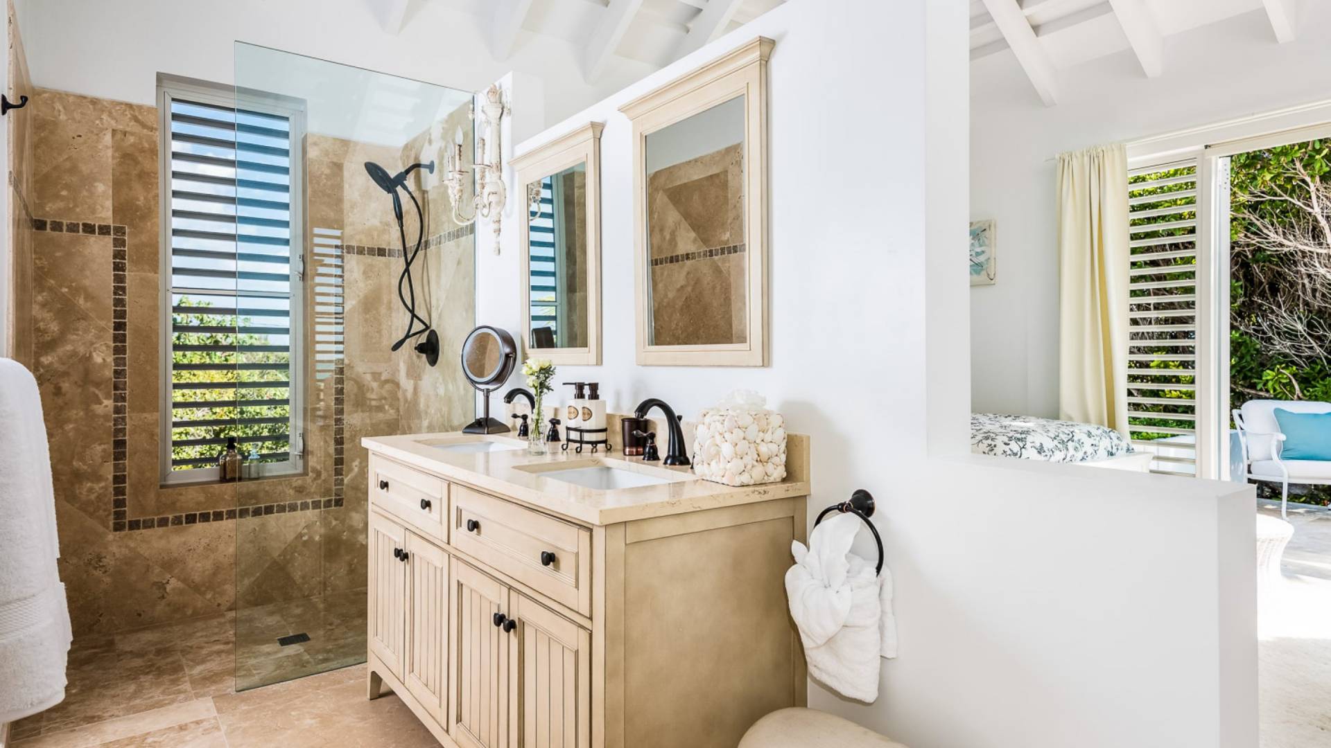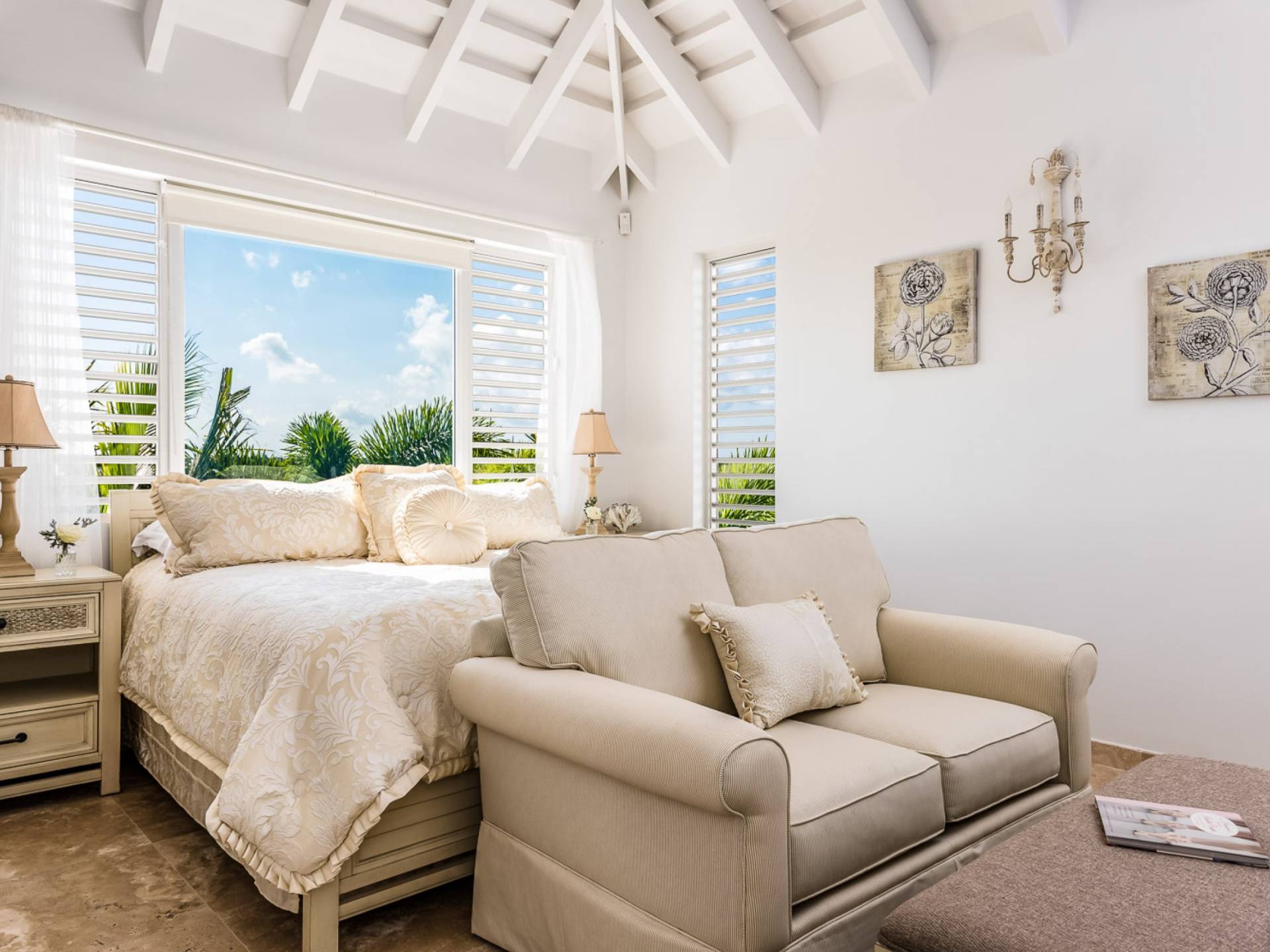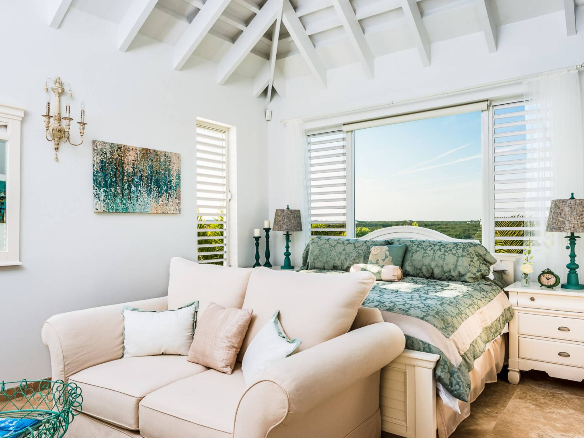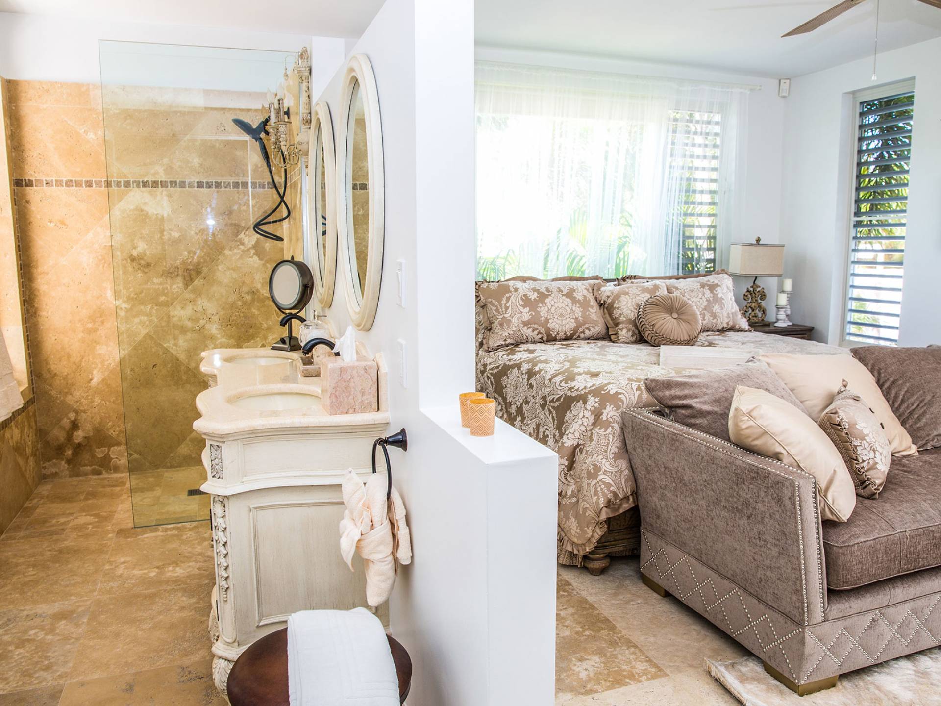 Вилла Pearl West имеет восемь великолепных спален с ванными комнатами, которые отражают волшебную красоту островов Теркс и Кайкос. Просторная главная спальня с раздвижными стеклянными дверями выходит на красивый балкон с потрясающими видами. В остальных гостевых спальнях, также роскошно обставленных, также есть ванная комната, потолочные вентиляторы, кондиционер, телевизор с плоским 55-дюймовым экраном, Apple TV, Netflix, Wi-Fi, сейф и холодильник.
