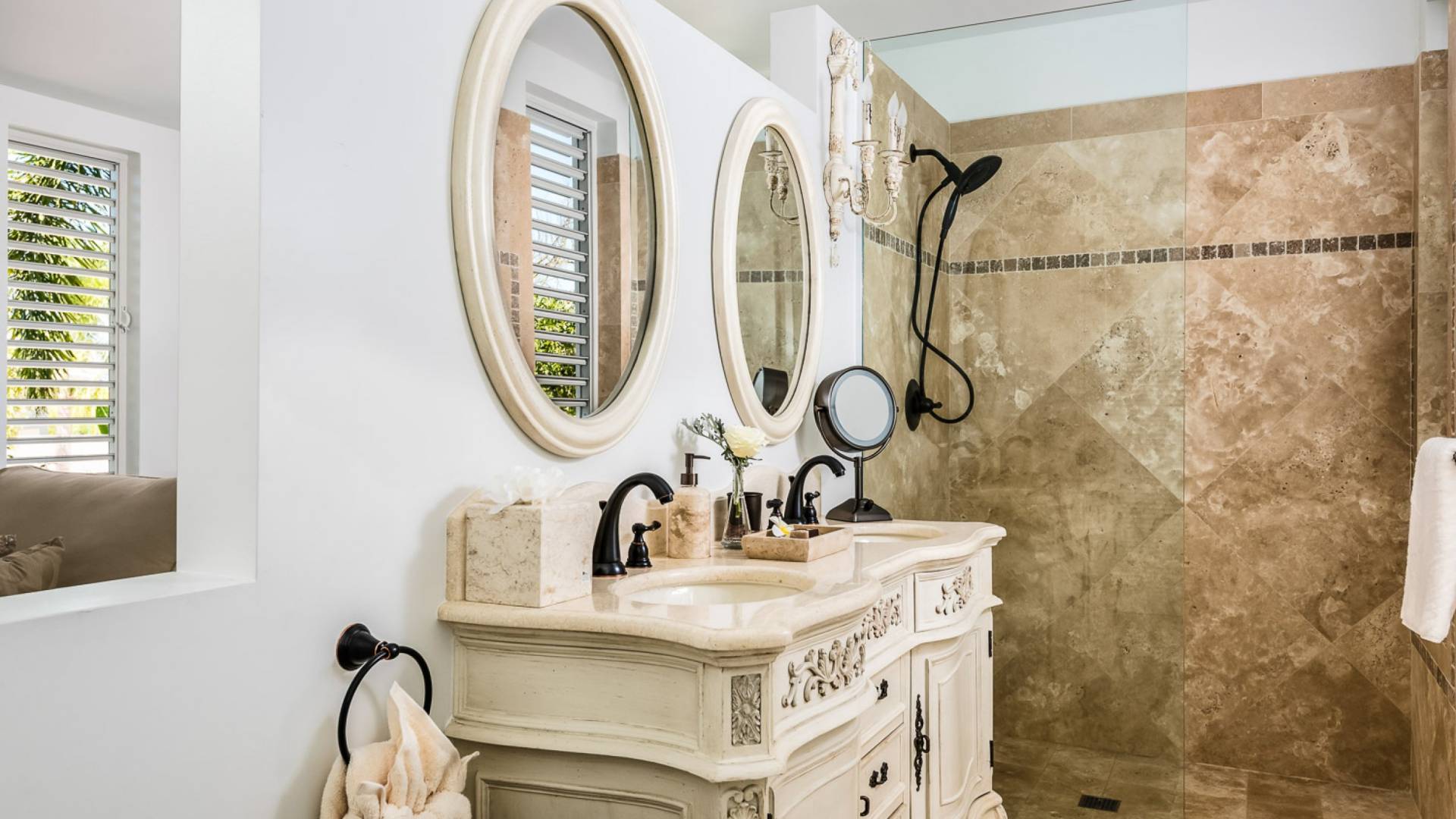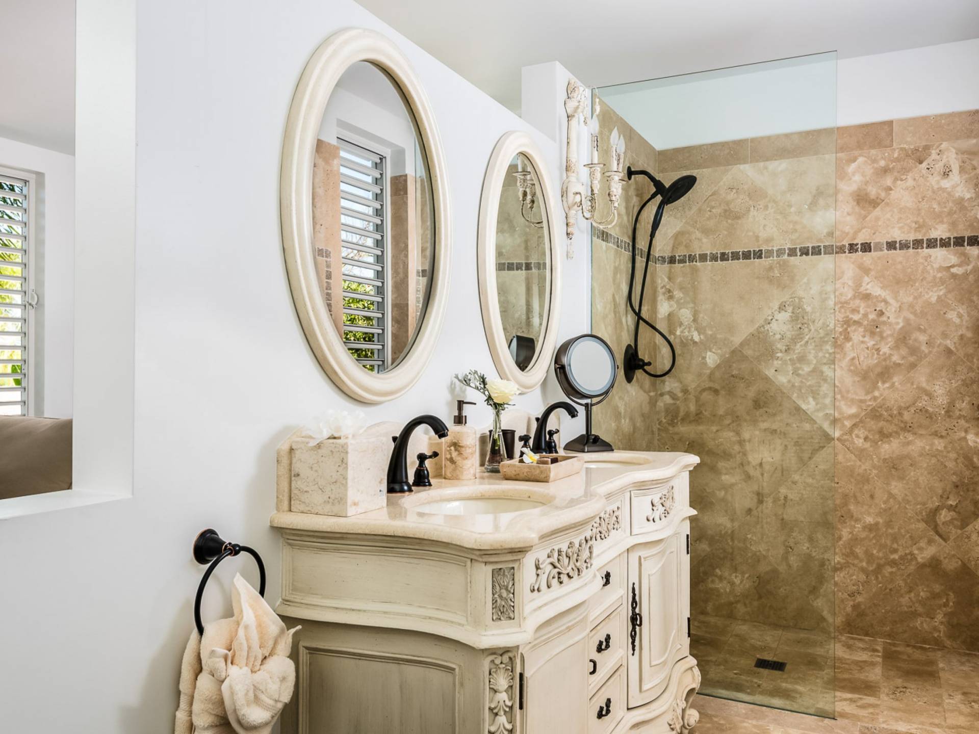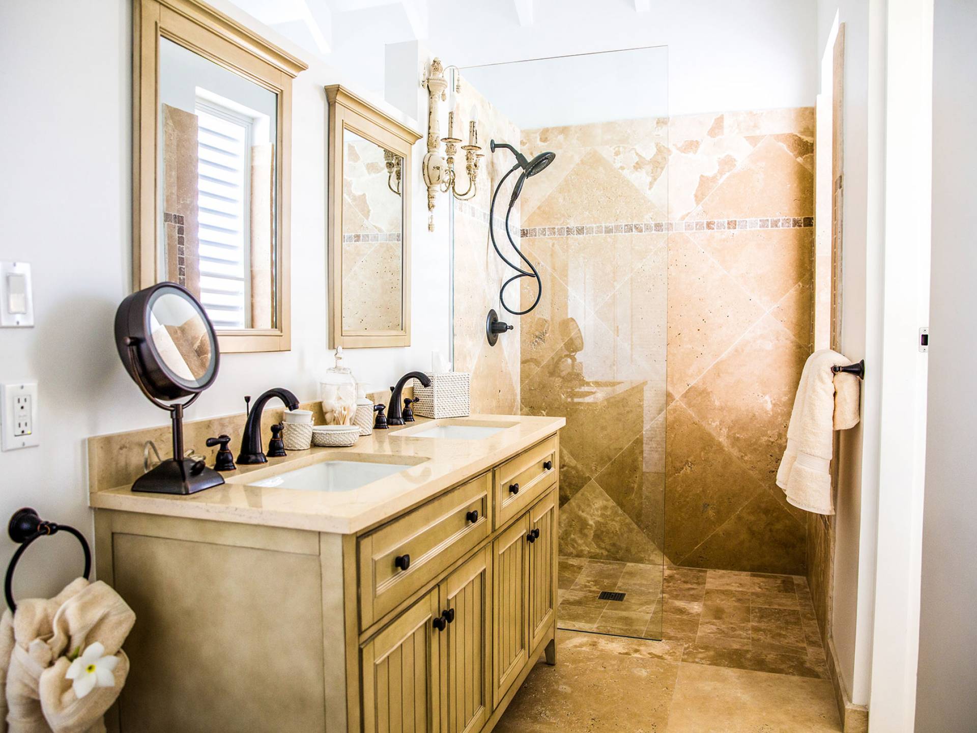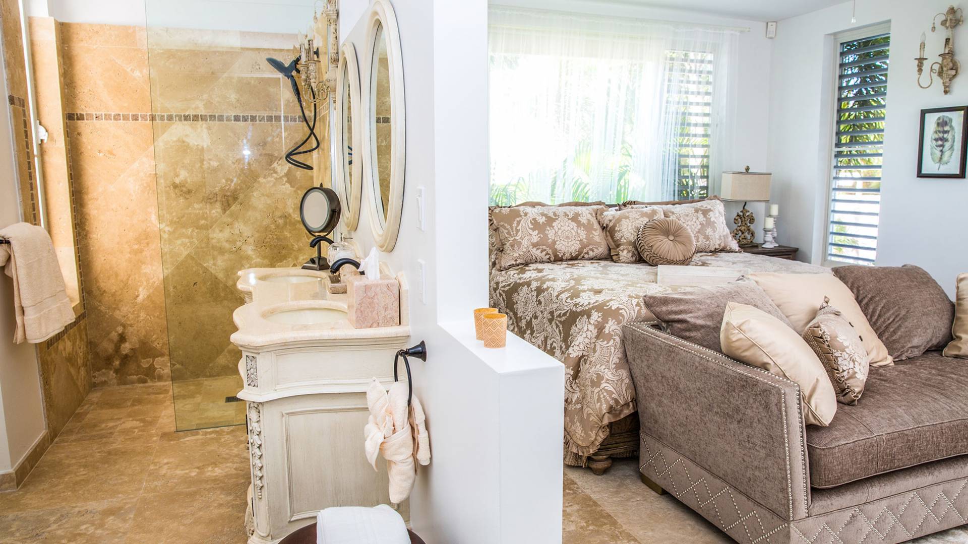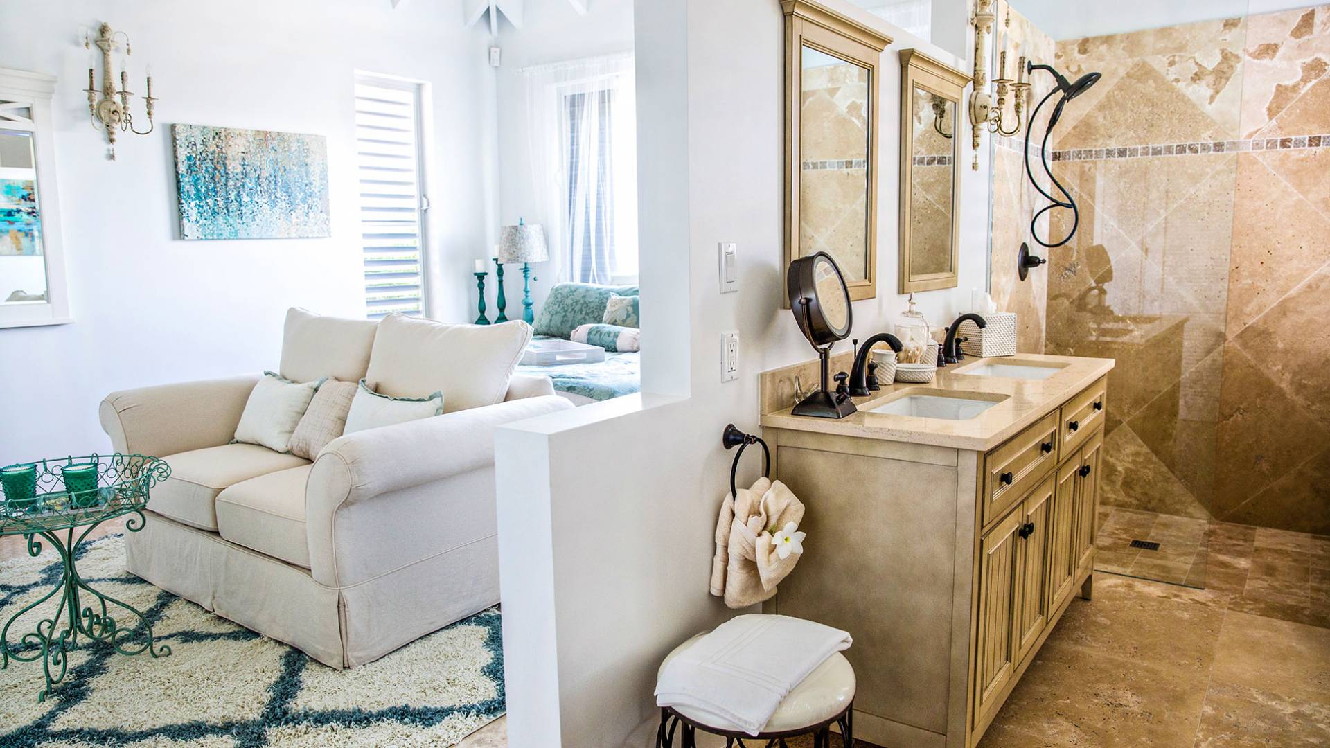 Вилла Pearl West имеет восемь великолепных спален с ванными комнатами, которые отражают волшебную красоту островов Теркс и Кайкос. Просторная главная спальня с раздвижными стеклянными дверями выходит на красивый балкон с потрясающими видами. В остальных гостевых спальнях, также роскошно обставленных, также есть ванная комната, потолочные вентиляторы, кондиционер, телевизор с плоским 55-дюймовым экраном, Apple TV, Netflix, Wi-Fi, сейф и холодильник.