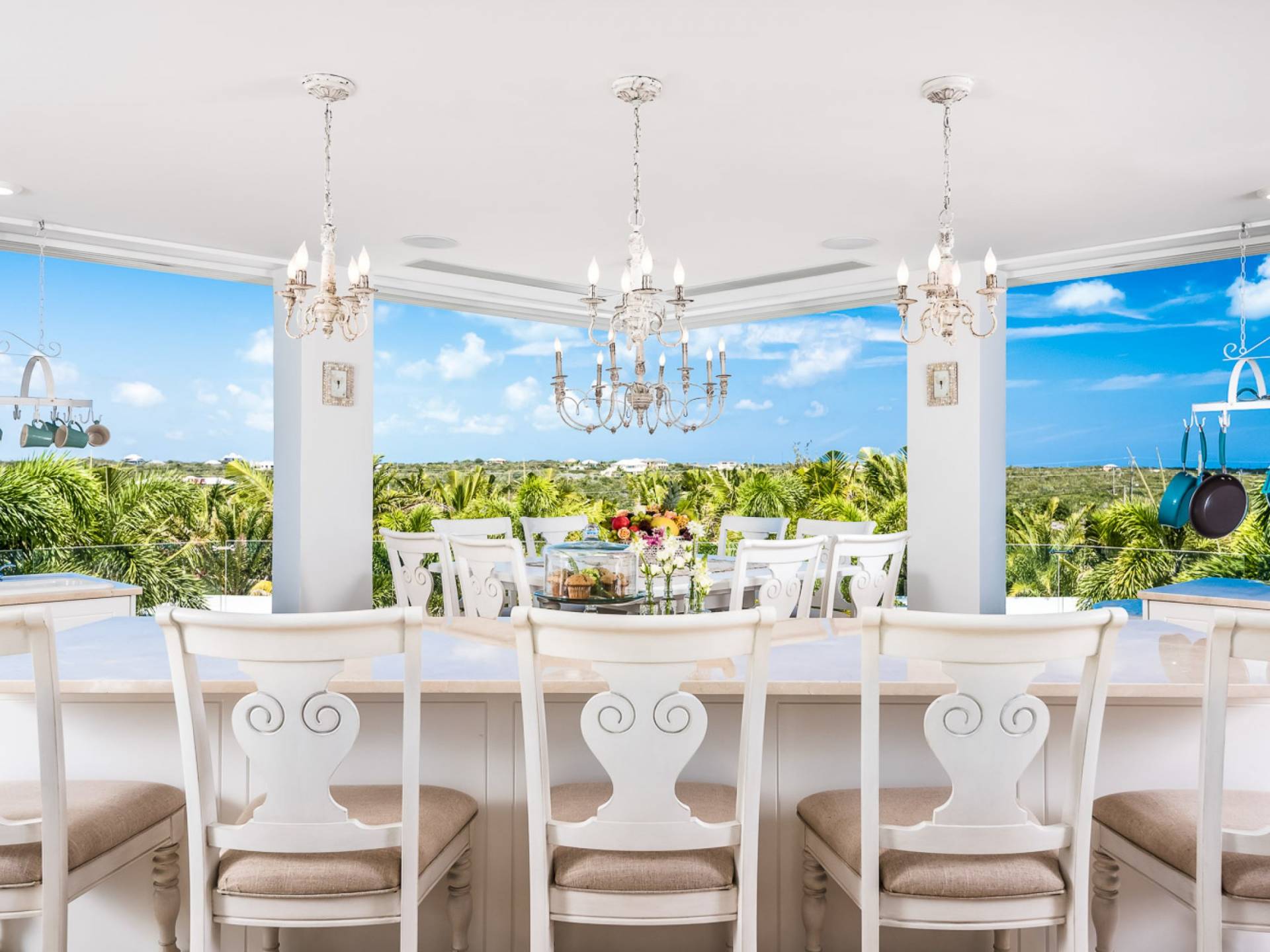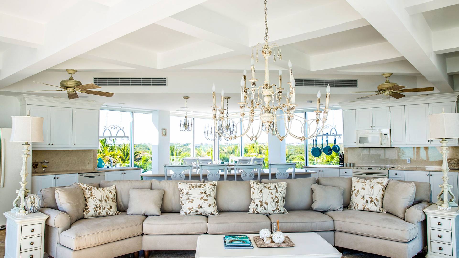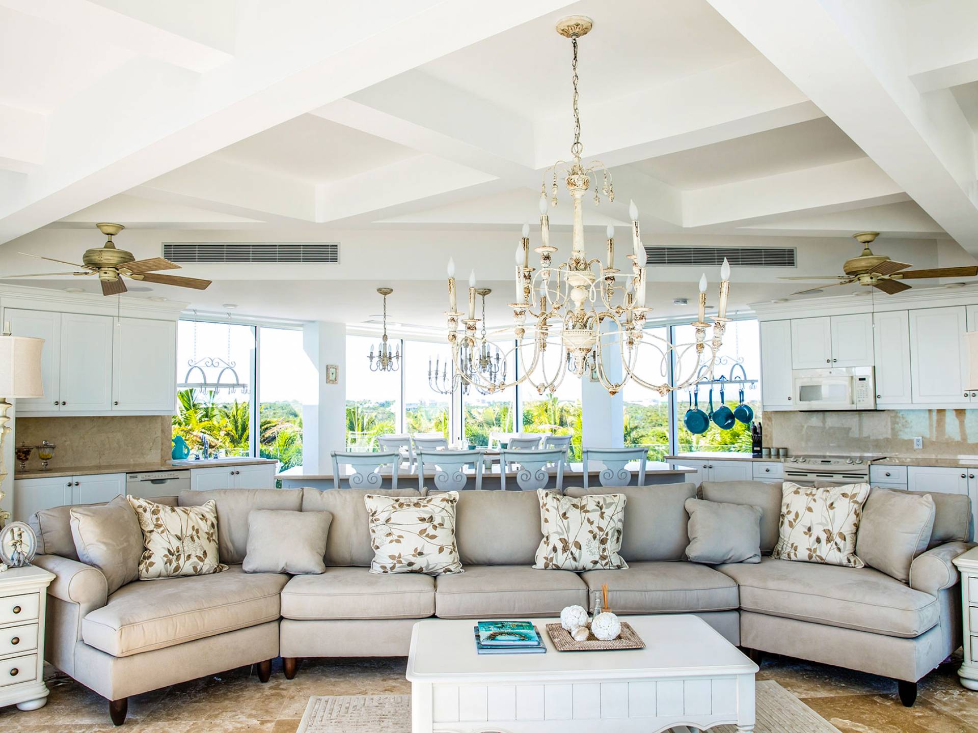 В сумерках вас ждут незабываемые закаты. А когда сгустится темнота, красивое индивидуальное освещение будет окутывать вас волшебным сиянием, пока музыка разносится по воздуху через динамики, которые расположены отдельно, с клавиатурами повсюду. В то время как мягкая современная мебель обеспечивает ваш комфорт, просторная гостиная площадью 700 кв. Футов с раздвижными стеклянными окнами от стены до стены позволяет вам наслаждаться естественным светом и свежим бризом, наслаждаясь захватывающими видами. В каждом номере есть полностью оборудованная внутренняя кухня, которой повар мог бы гордиться. Самая современная техника (холодильник, морозильная камера, ледогенератор, духовка, посудомоечная машина, микроволновая печь, холодильник для вина) сочетается с кофеваркой Nespresso, блендером, тостером ... и практически всем, что может понадобиться для приготовления изысканных блюд. В каждом кинозале есть 10 мест, а также автомат для попкорна, холодильник, DVD-плеер, проигрыватель Blu-ray, Apple TV и потрясающий 95-дюймовый телевизор Hi-Definition.