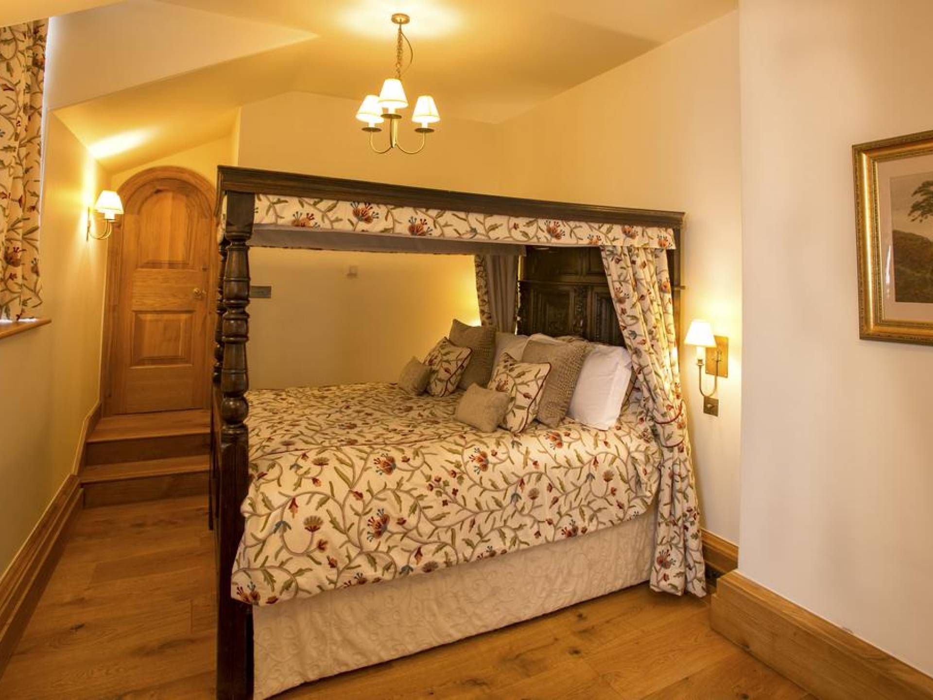 Mingary Castle предлагает четыре уникальных люкса (10 спальных мест) с прекрасными ванными комнатами и кроватями с балдахином. Вас встретят с сердечным приемом в конце вашего путешествия, где вам проведут экскурсию по замку и возможность исследовать его, а затем вы сможете расслабиться, расслабиться и позволить нам позаботиться о вас. Прогуляйтесь через возвышающиеся стены главного двора к входной двери MacDonald Suite, автономных апартаментов в западной части замка. Зайдите внутрь, и вы обнаружите уютную, красиво обставленную обстановку с открытым каменным камином и дровяной печью, перед которой немногие могут устоять. Дубовая лестница ручной работы ведет в спальню на первом этаже с большой старинной кроватью с балдахином и собственной ванной комнатой с душем над ванной. Любимец двуногих и четвероногих гостей.
